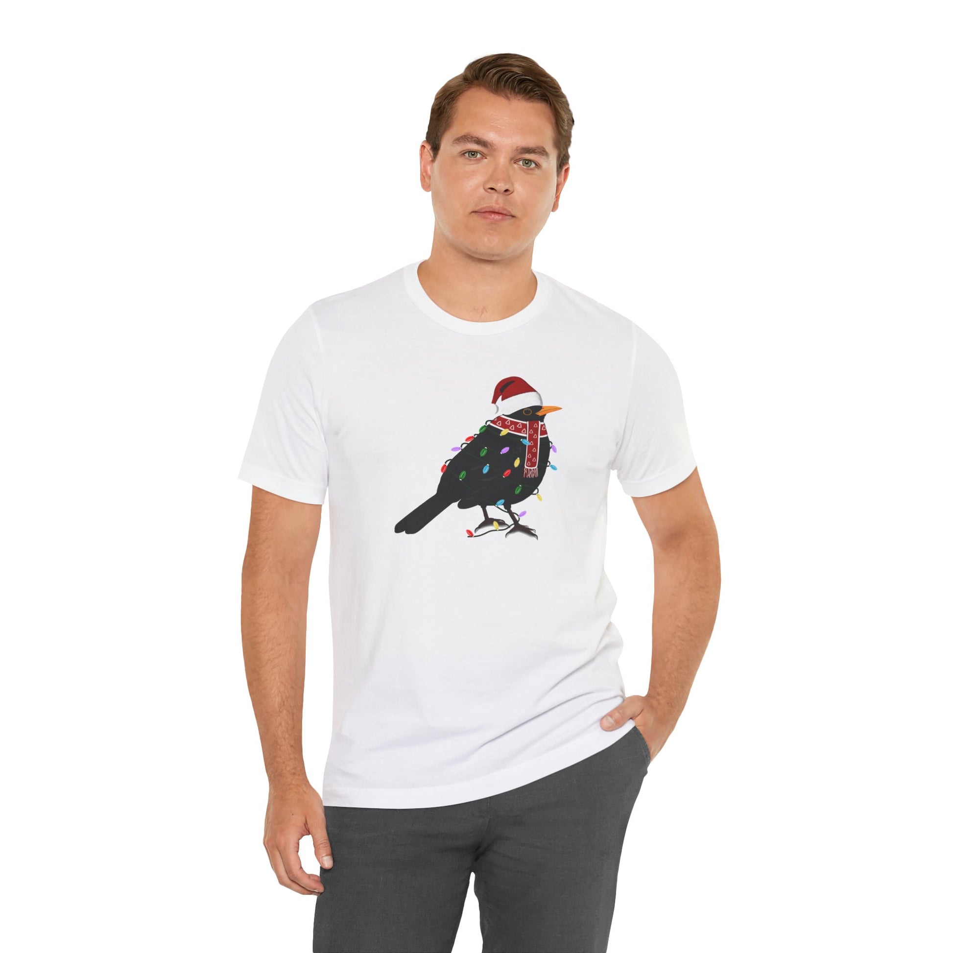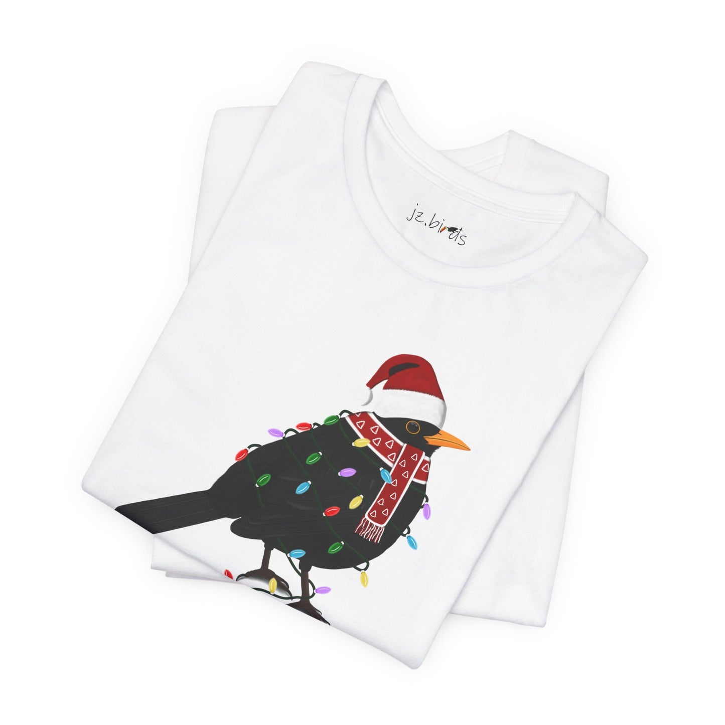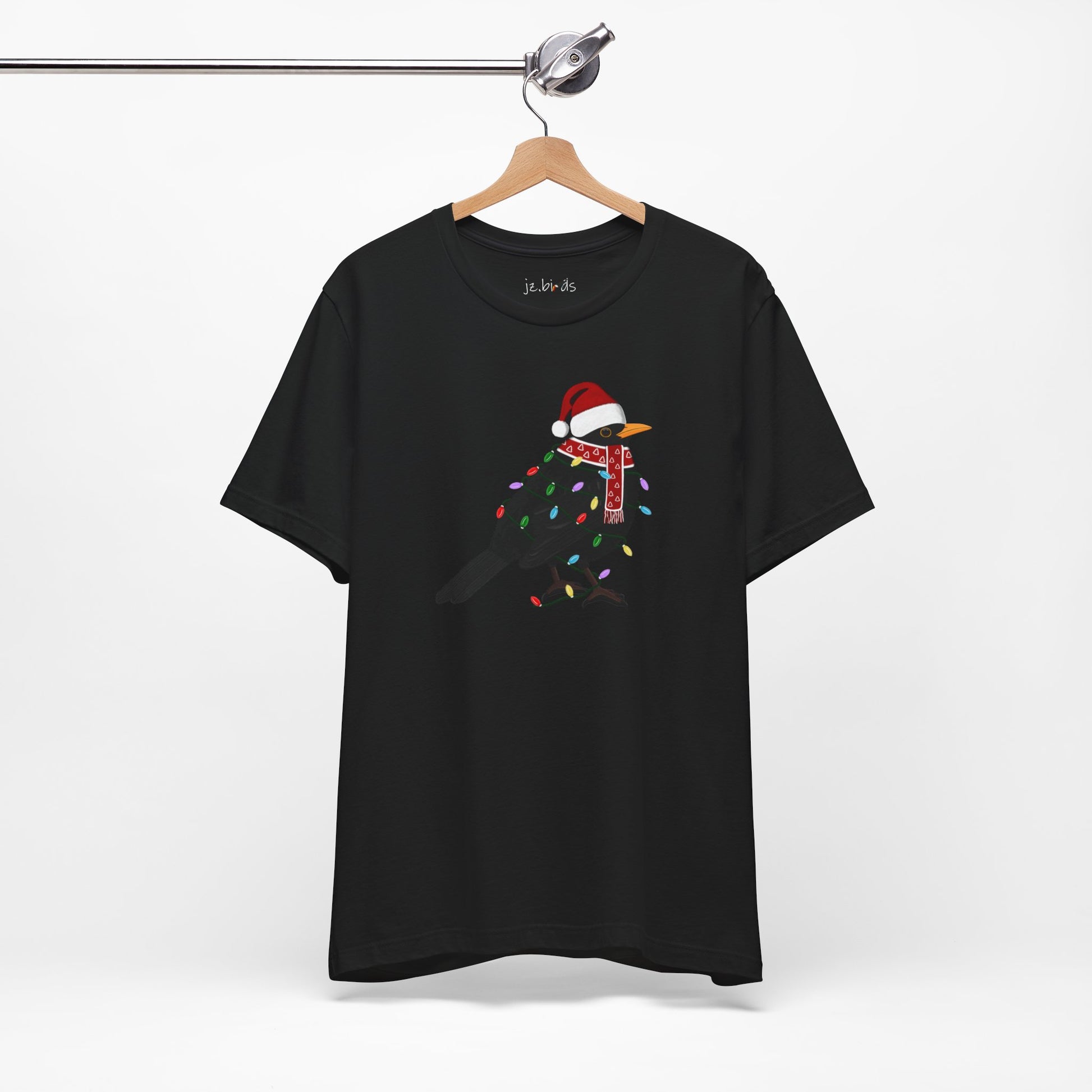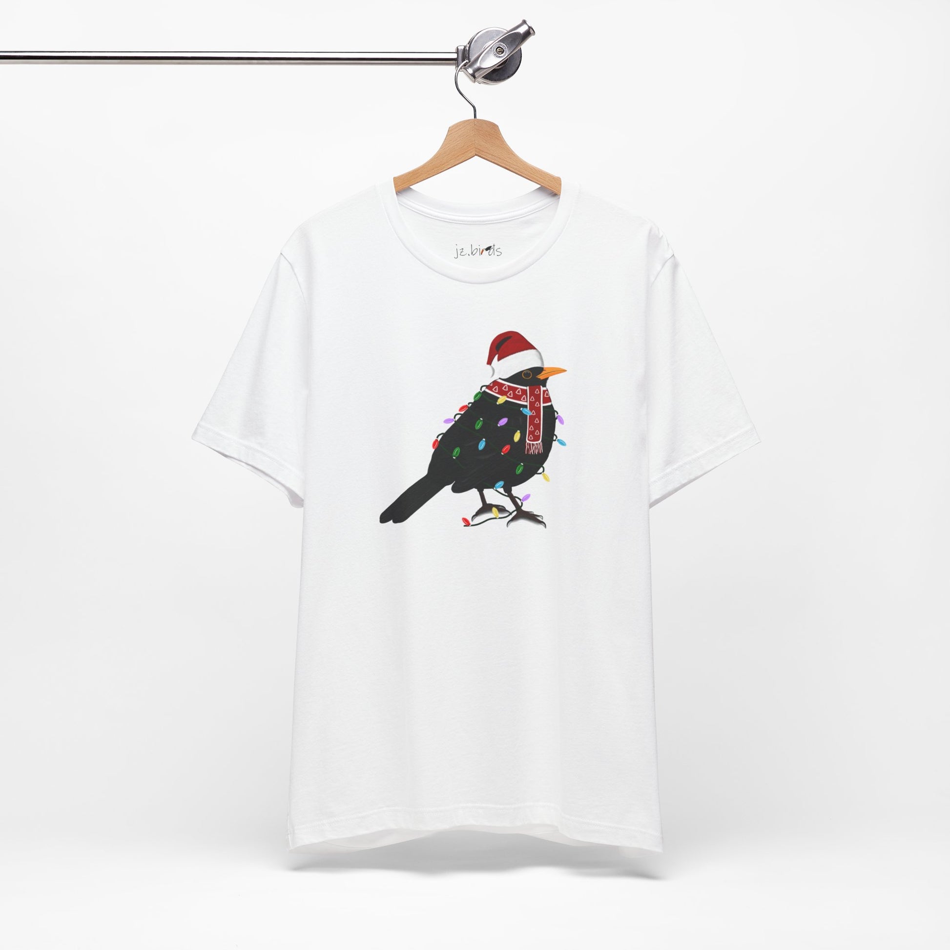 Blackbird with Fairy Lights Christmas Bird T-Shirt