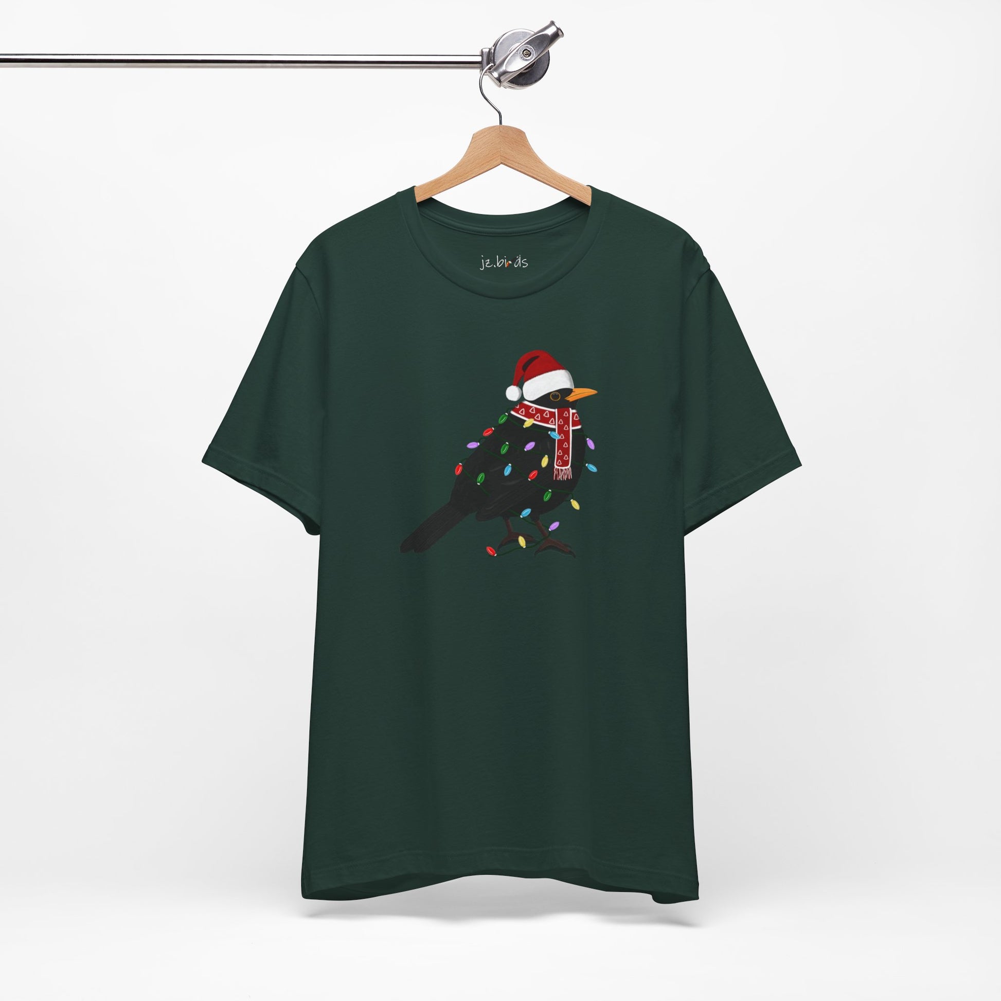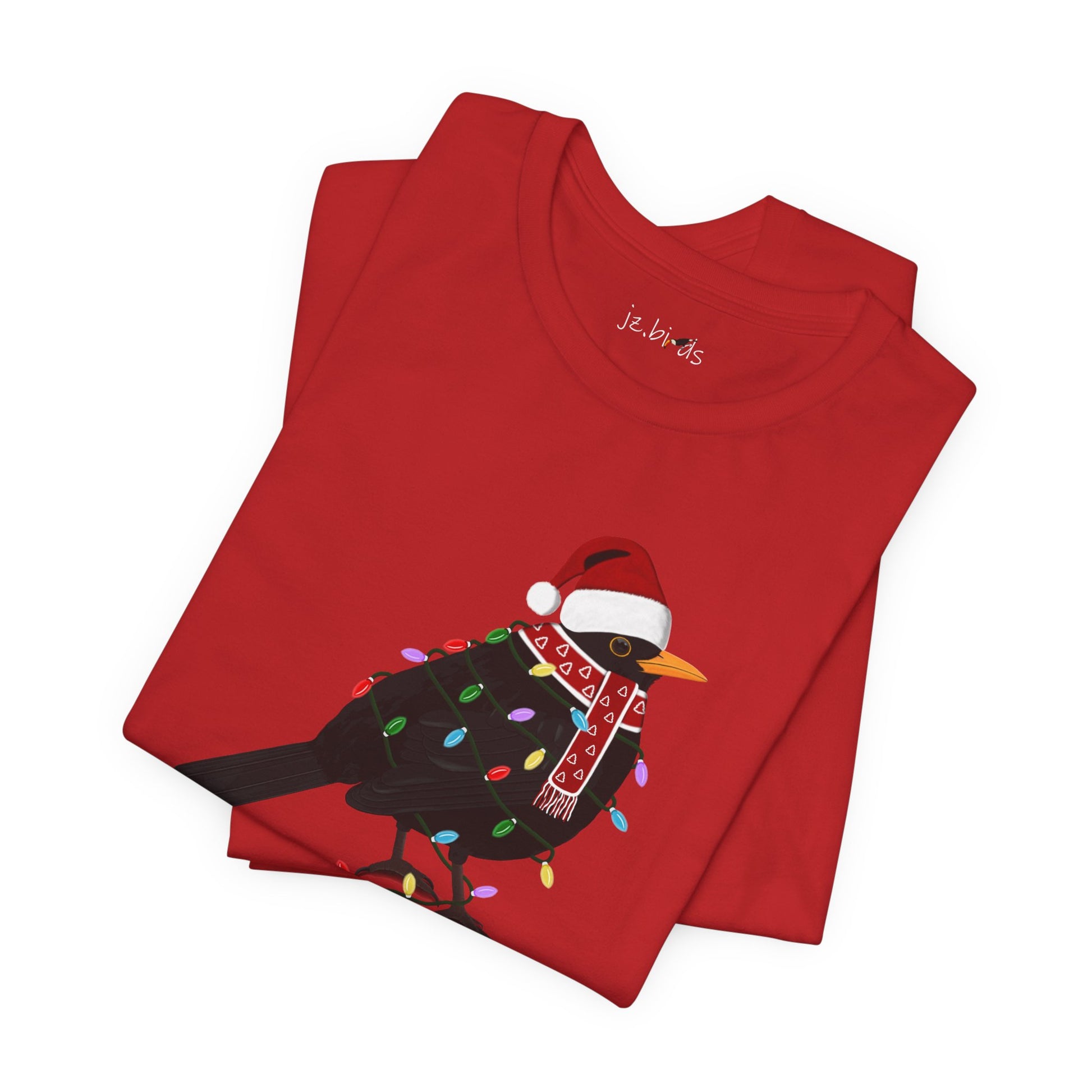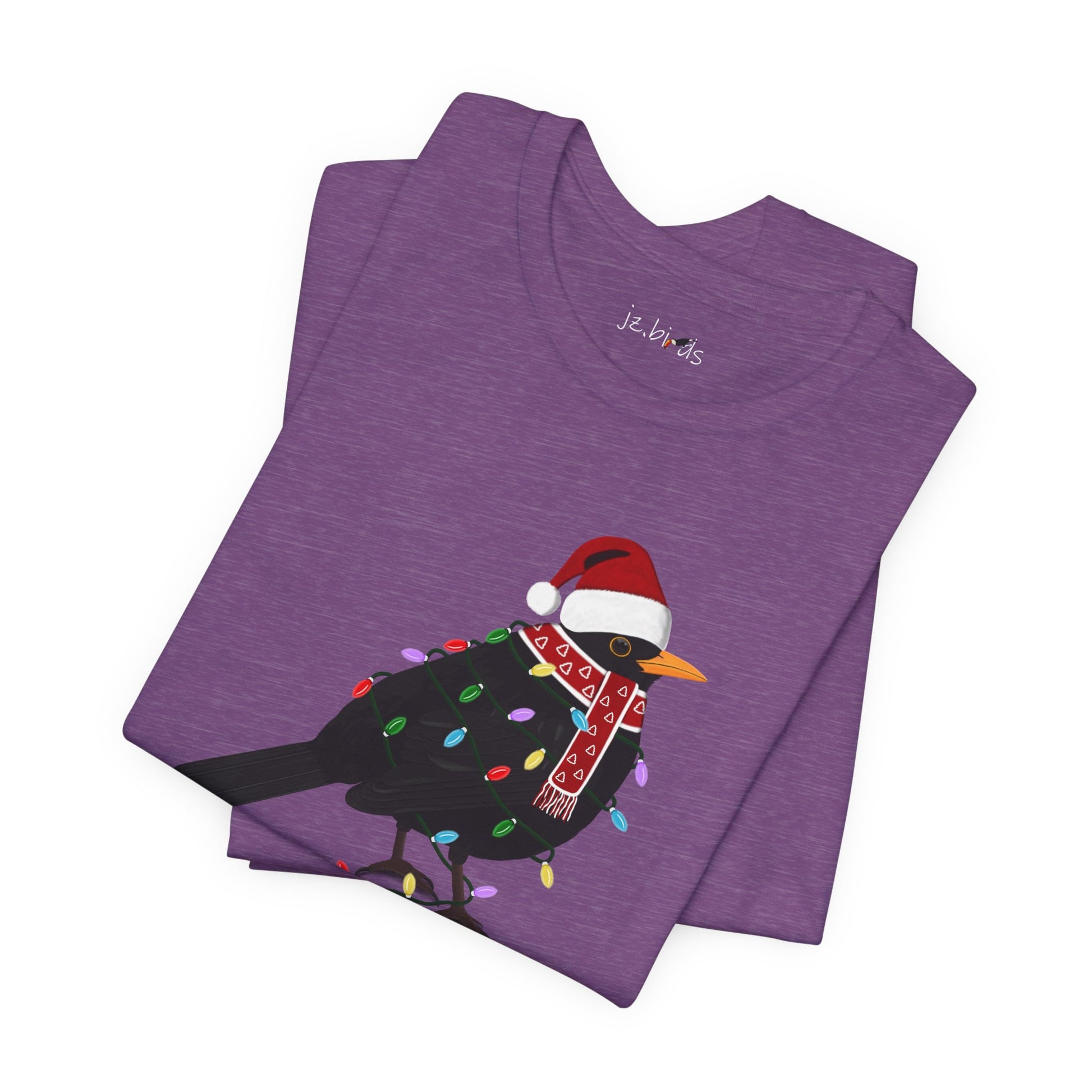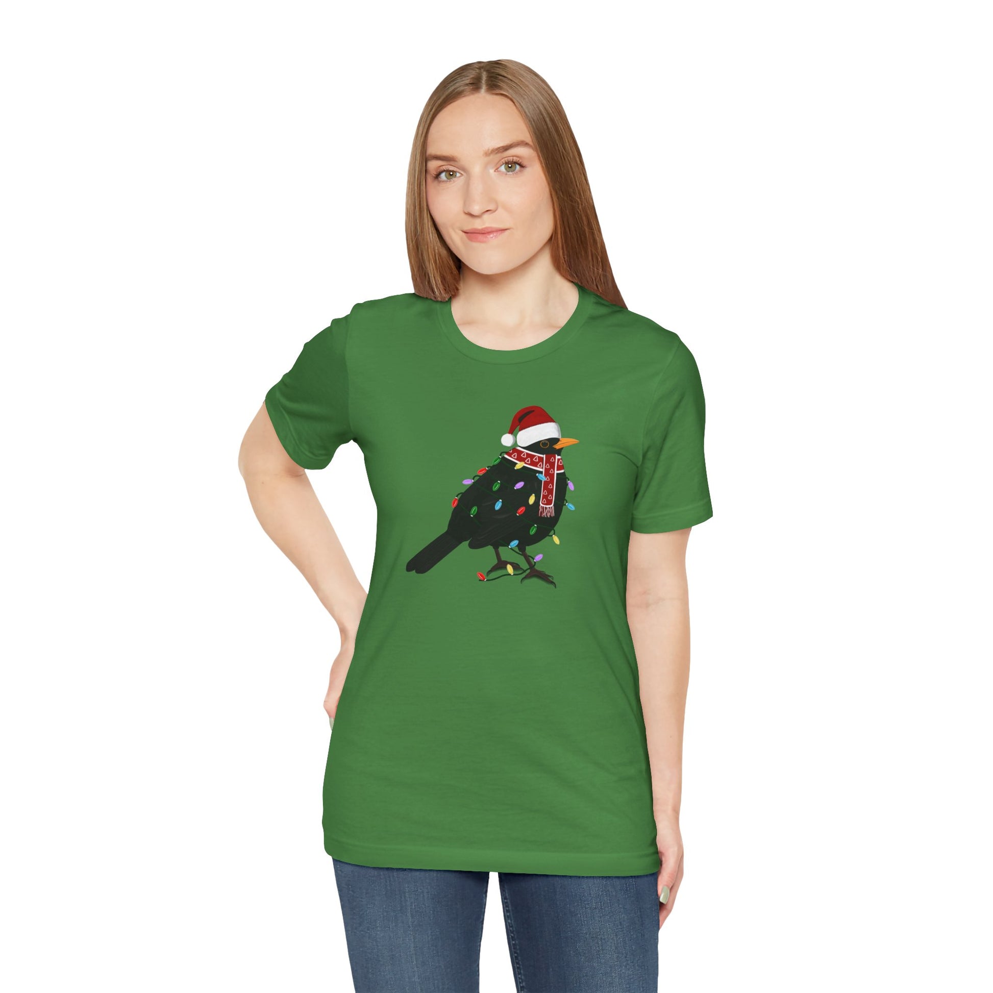 Blackbird with Fairy Lights Christmas Bird T-Shirt