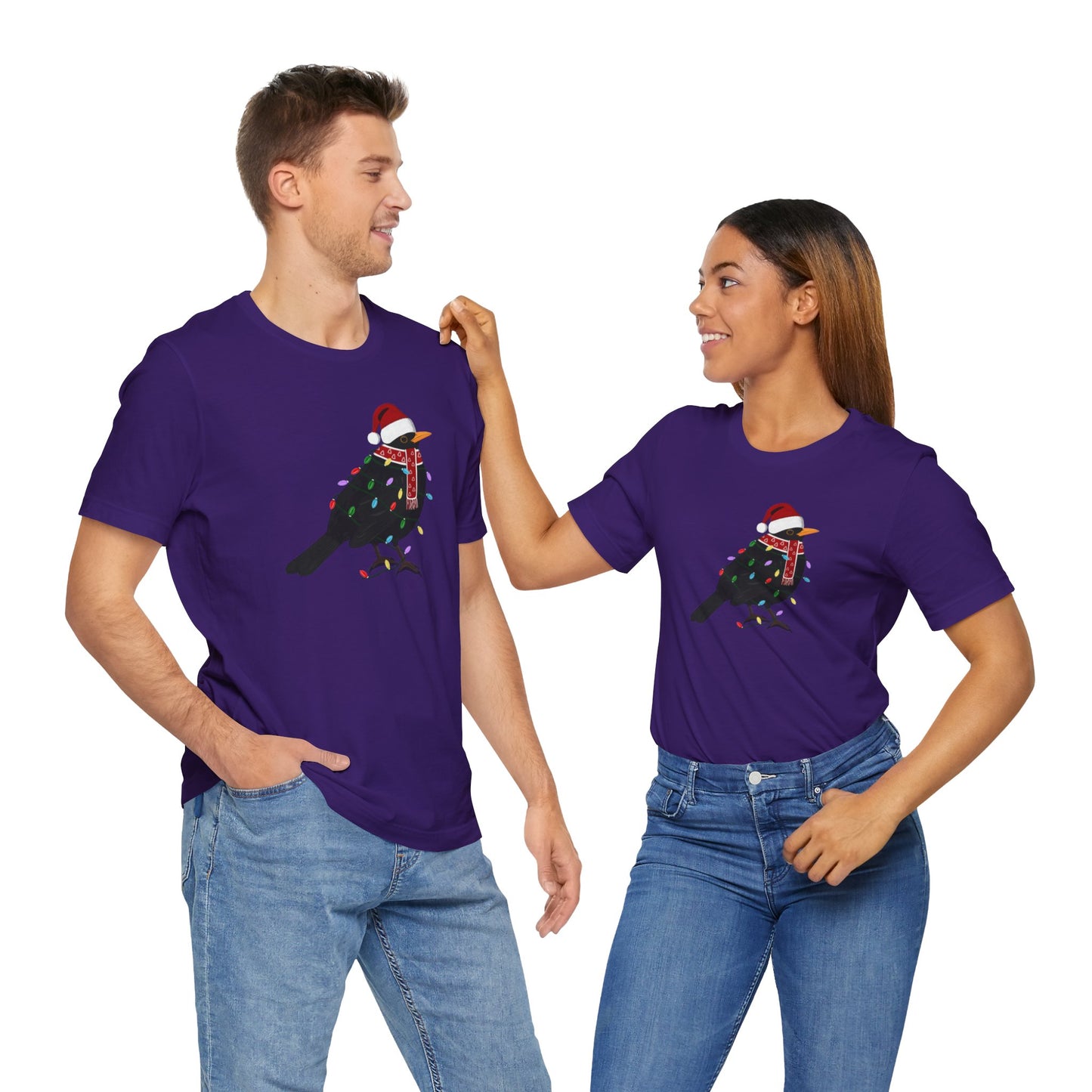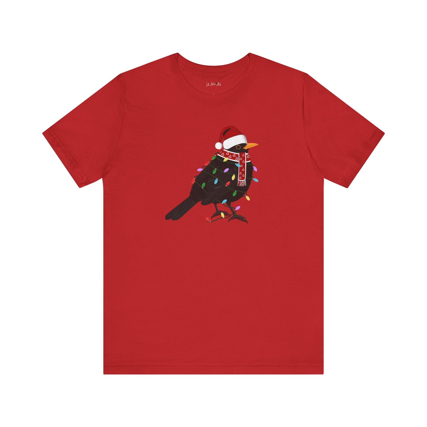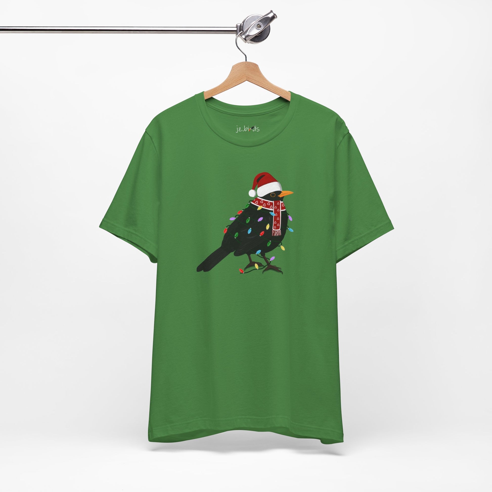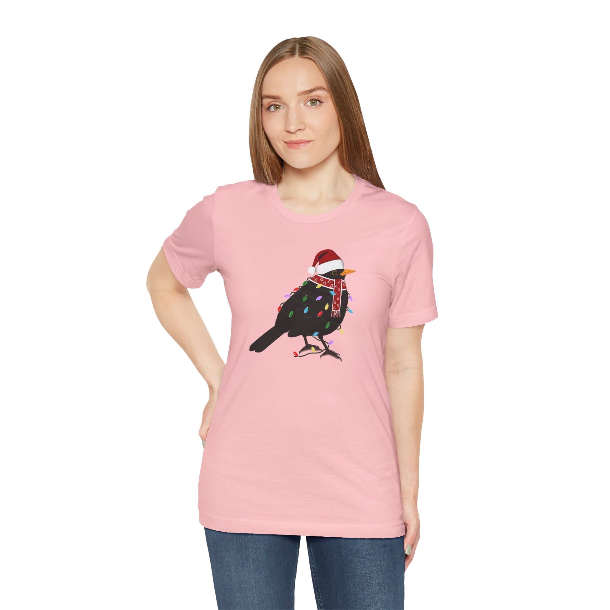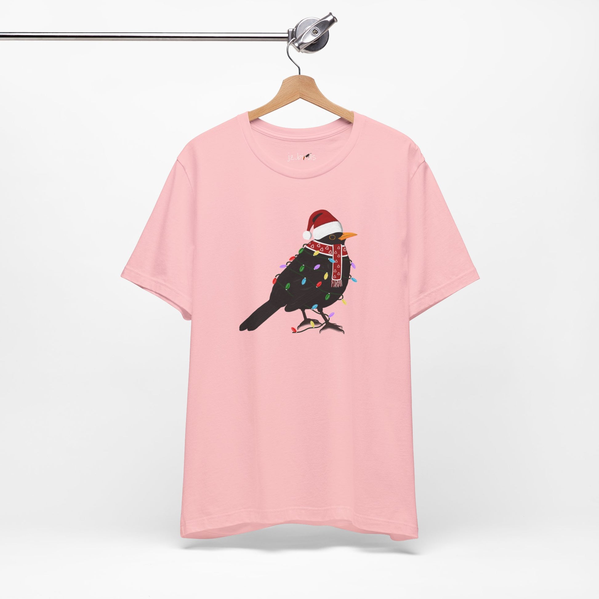 Blackbird with Fairy Lights Christmas Bird T-Shirt