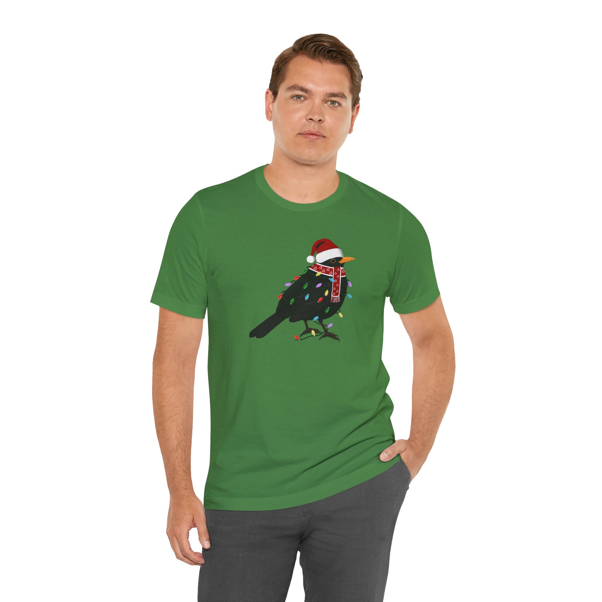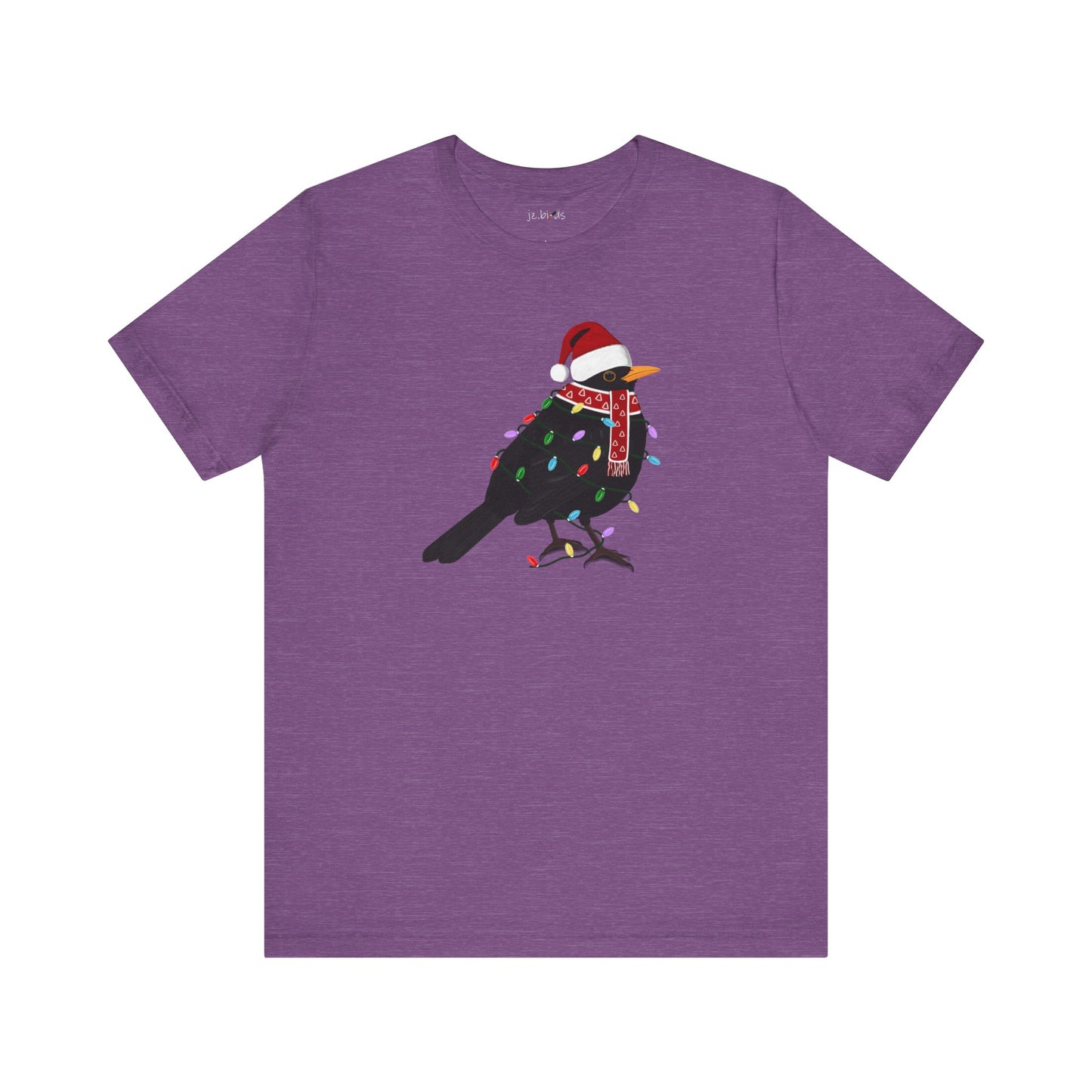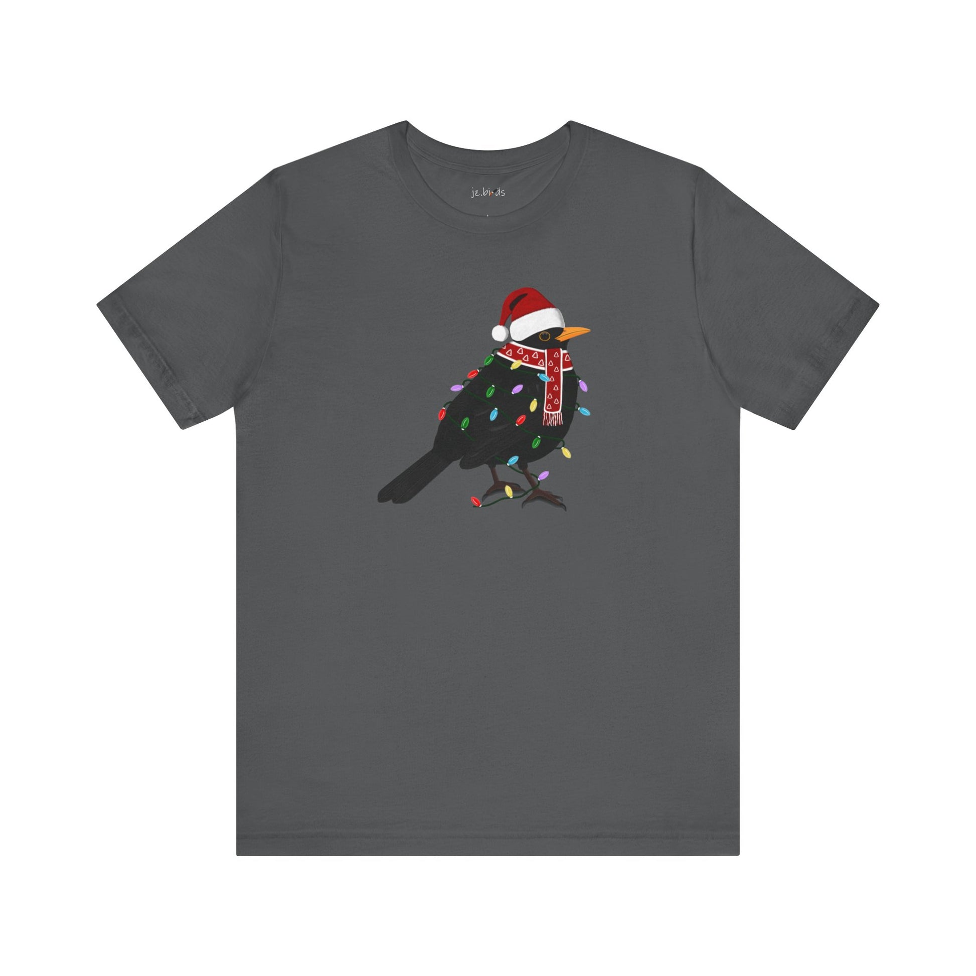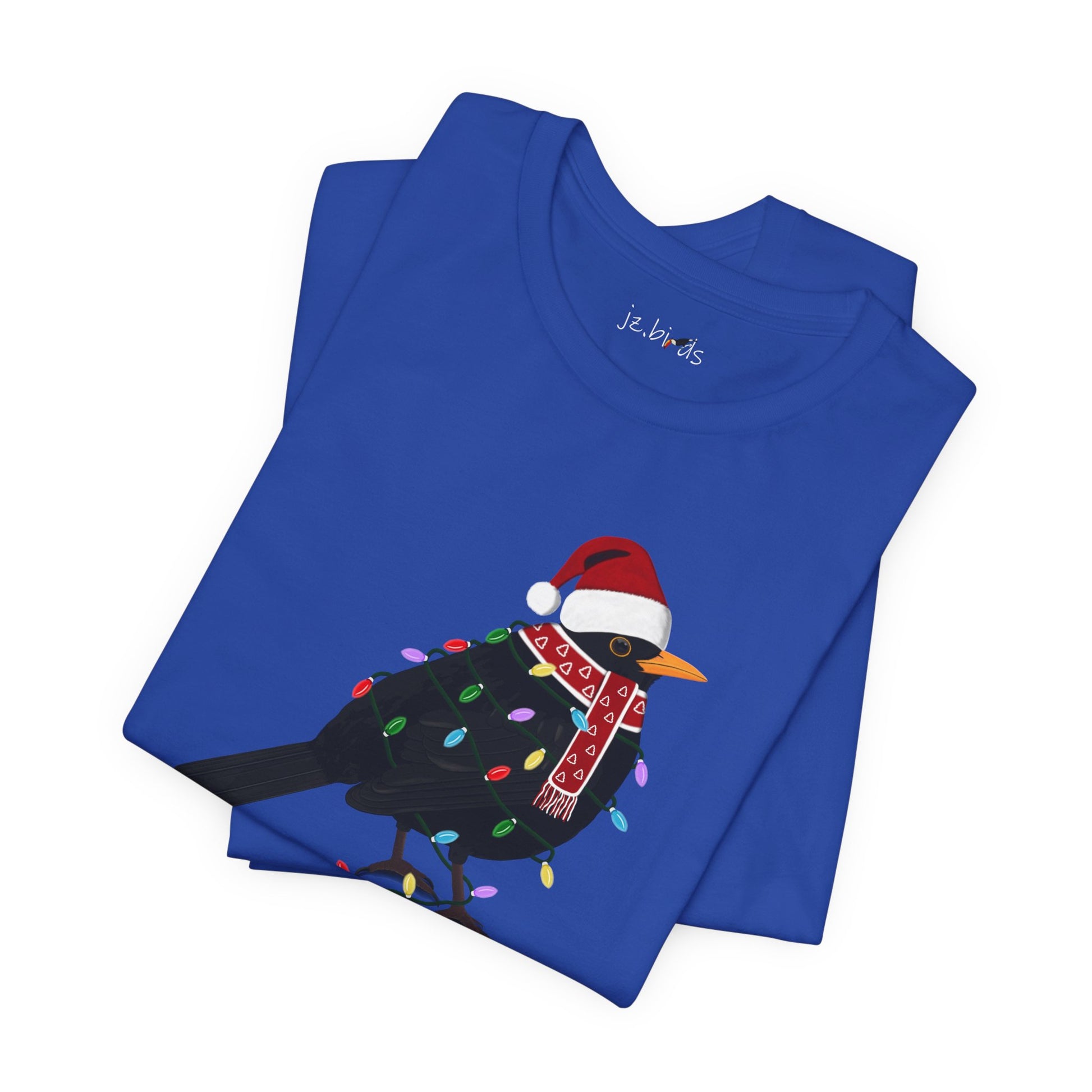 Blackbird with Fairy Lights Christmas Bird T-Shirt