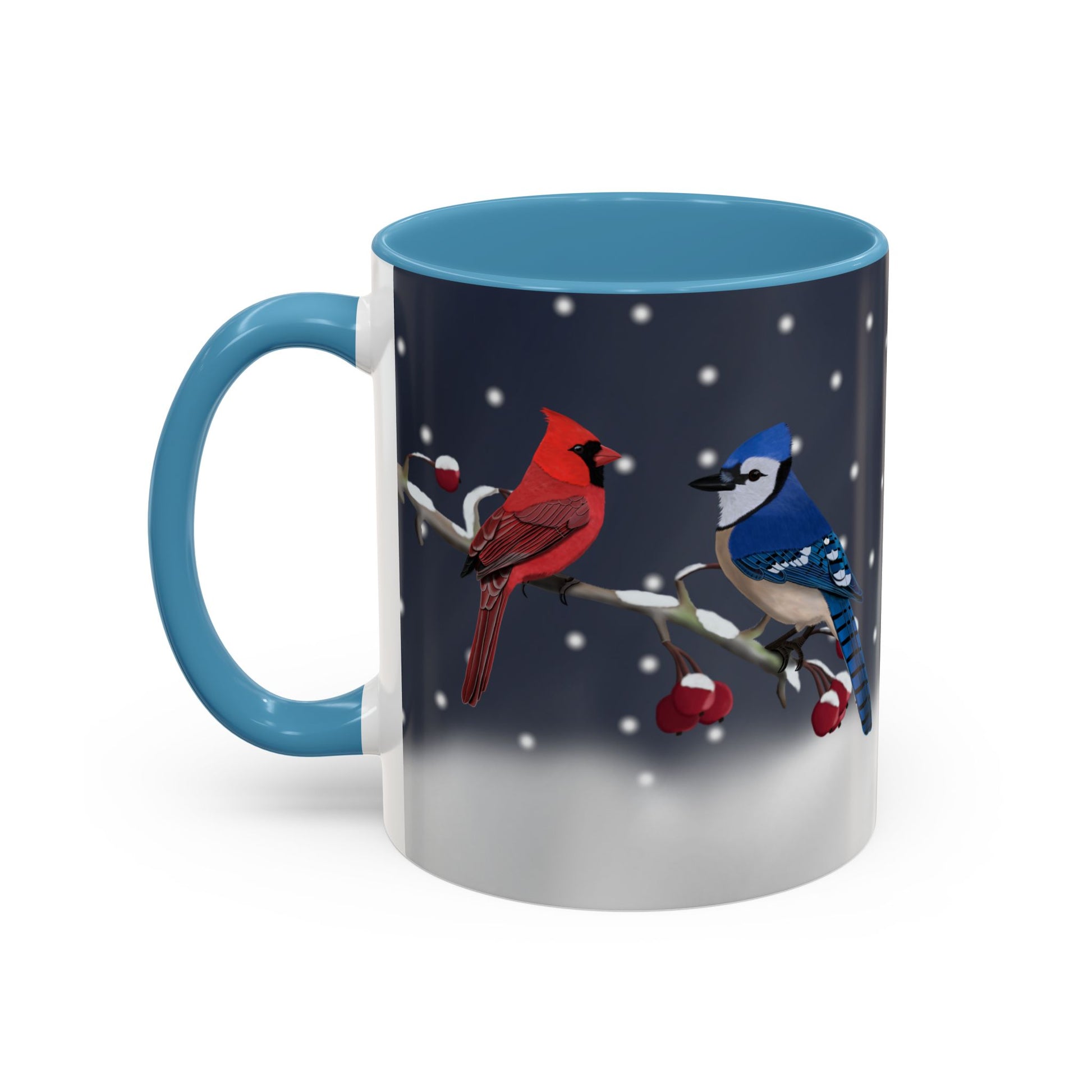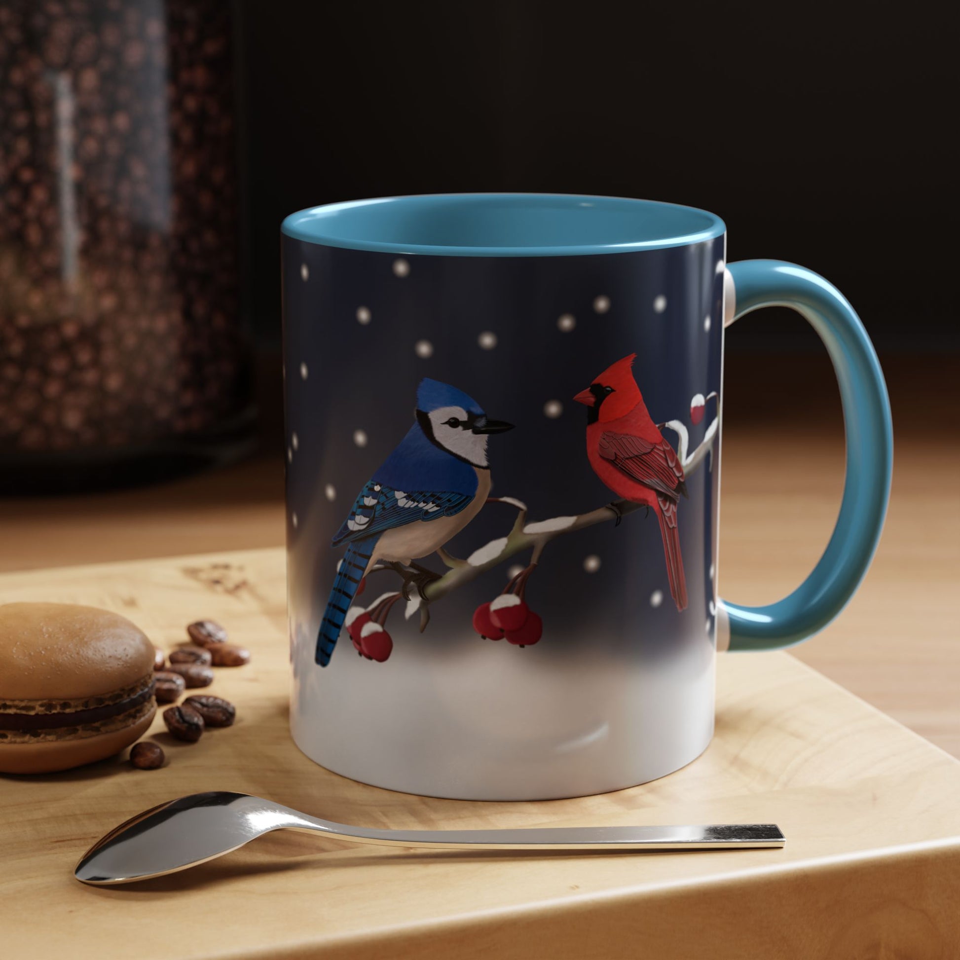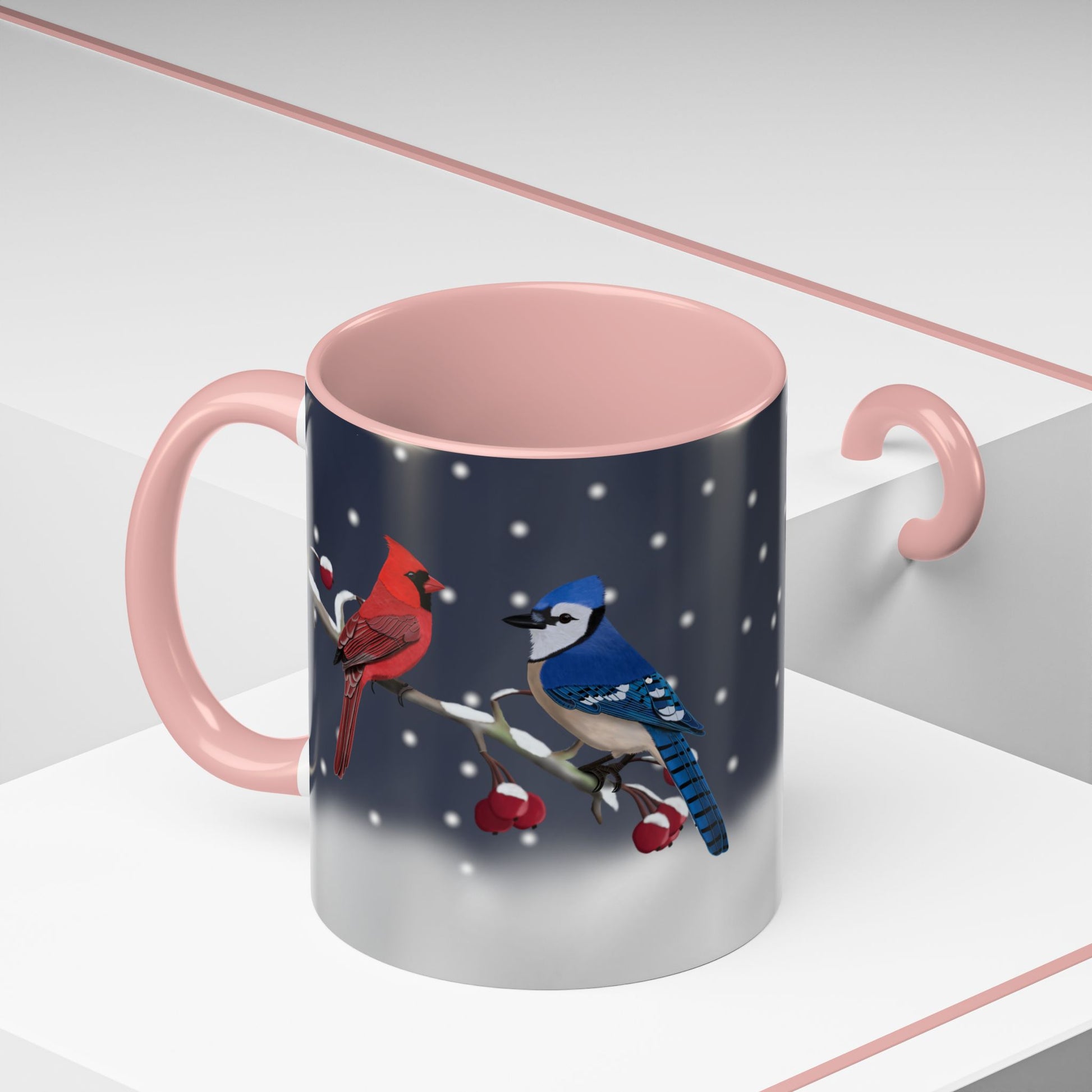 Blue Jay and Cardinal Bird Coffee Mug | Ceramic Christmas Gift for Bird Lovers