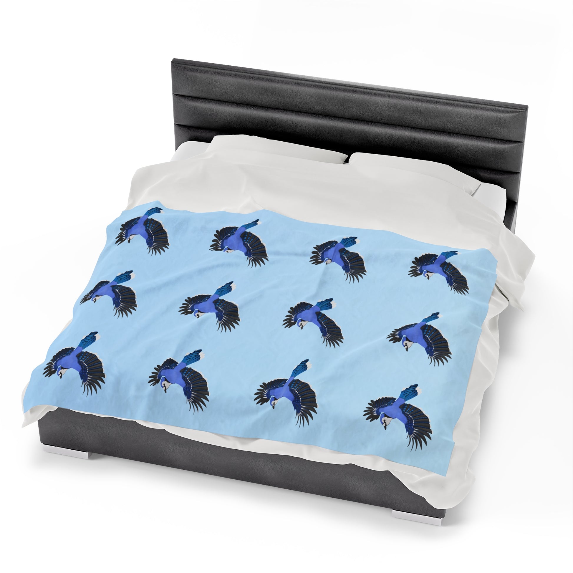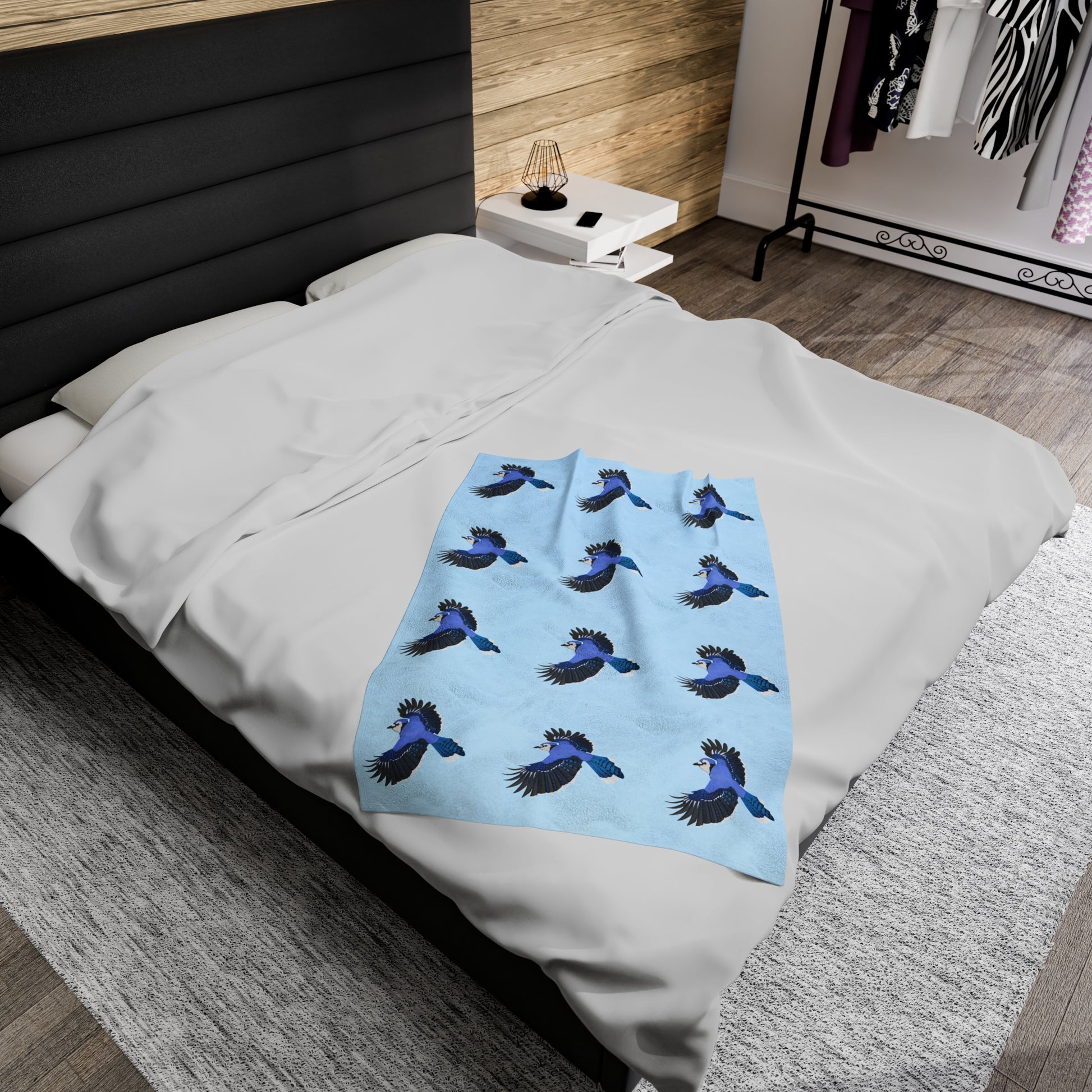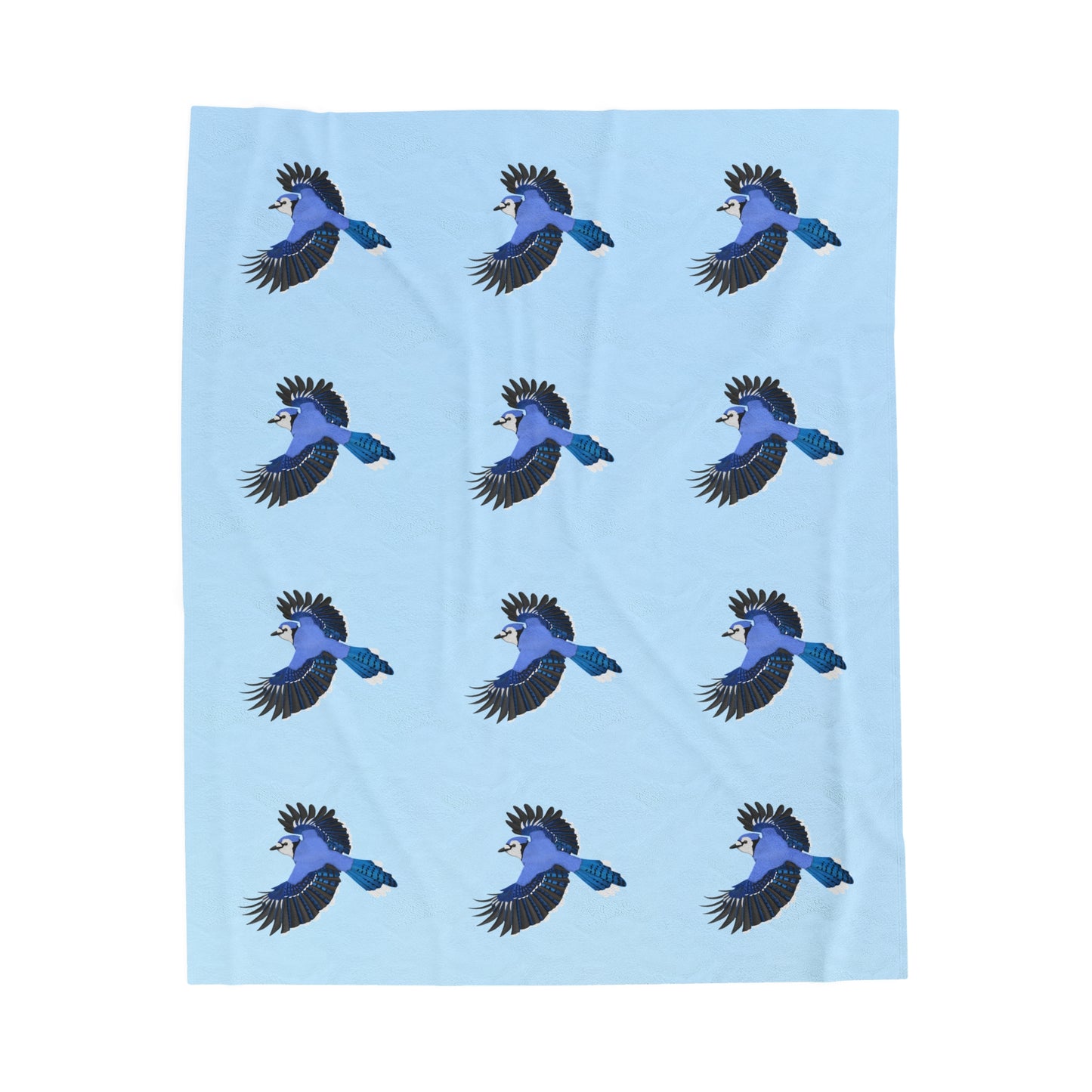 Blue Jay Backyard Bird Velveteen Plush Blanket Blue