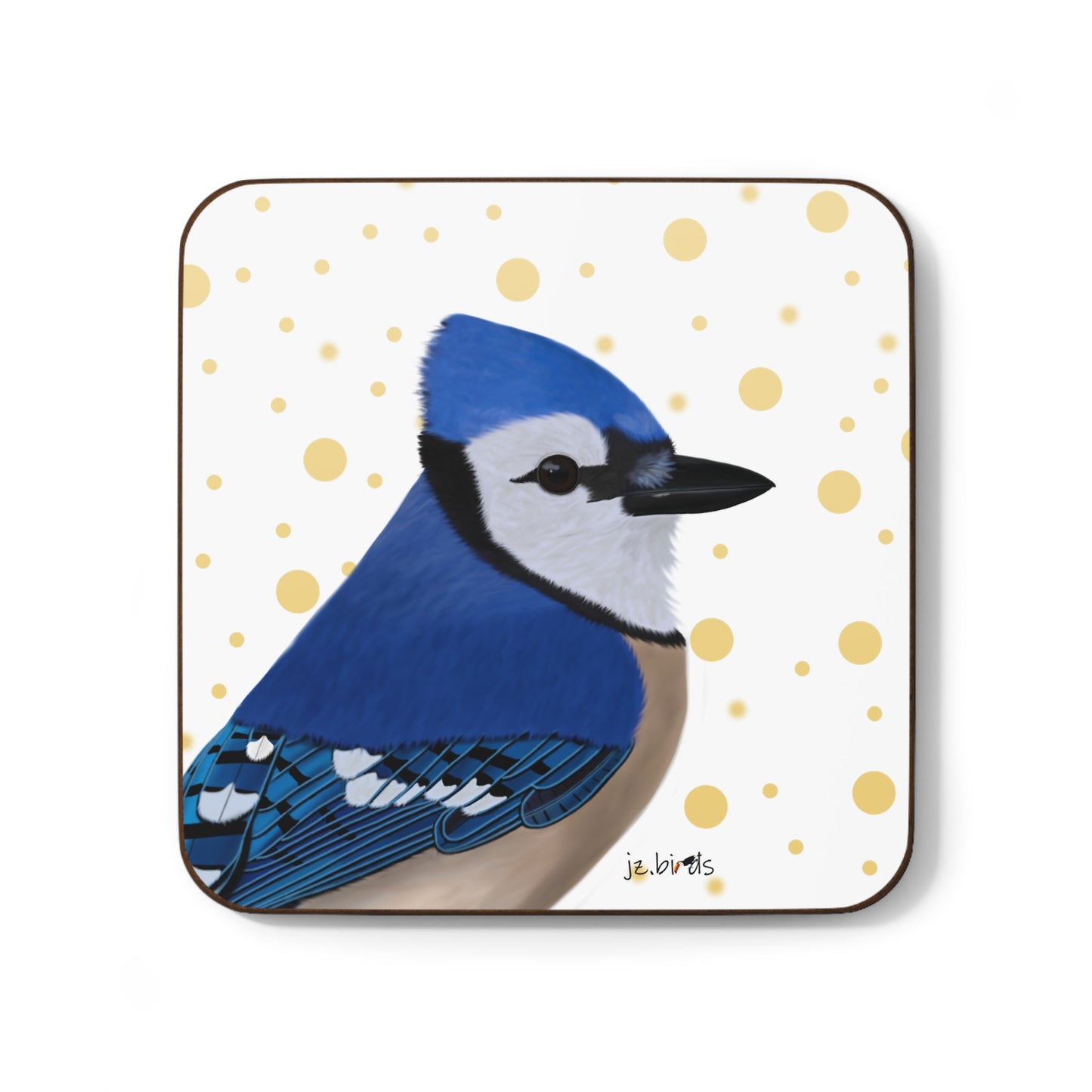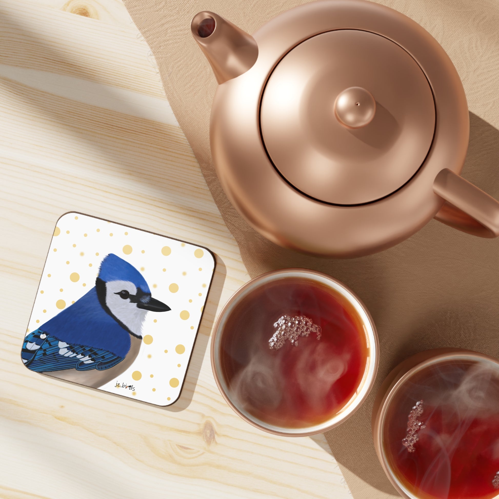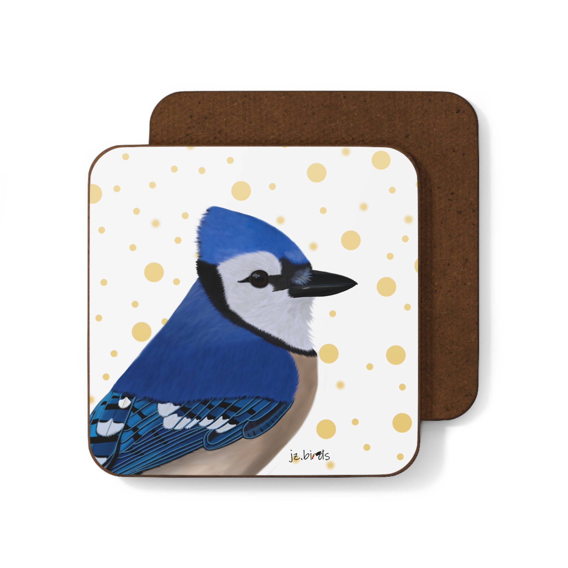 Introduce elegance to your kitchen with these unique Blue Jay bird art coasters. Made with a sturdy hardboard back, they are perfect for protecting your surfaces while adding a touch of artistry. A must-have for any bird lover or kitchen enthusiast.