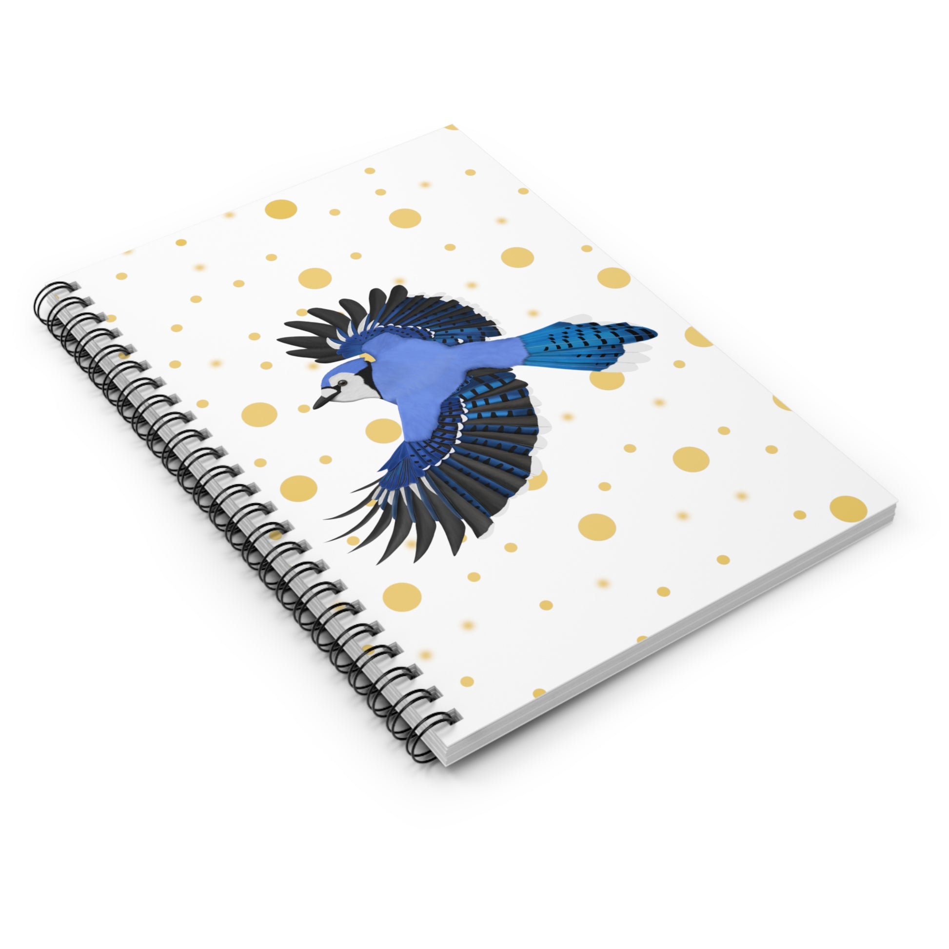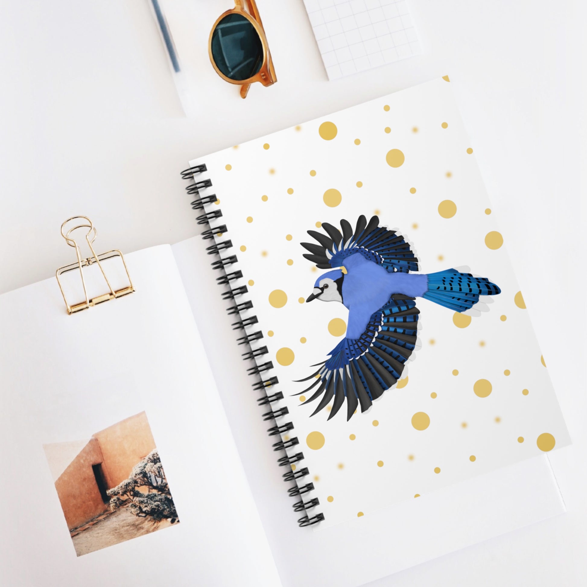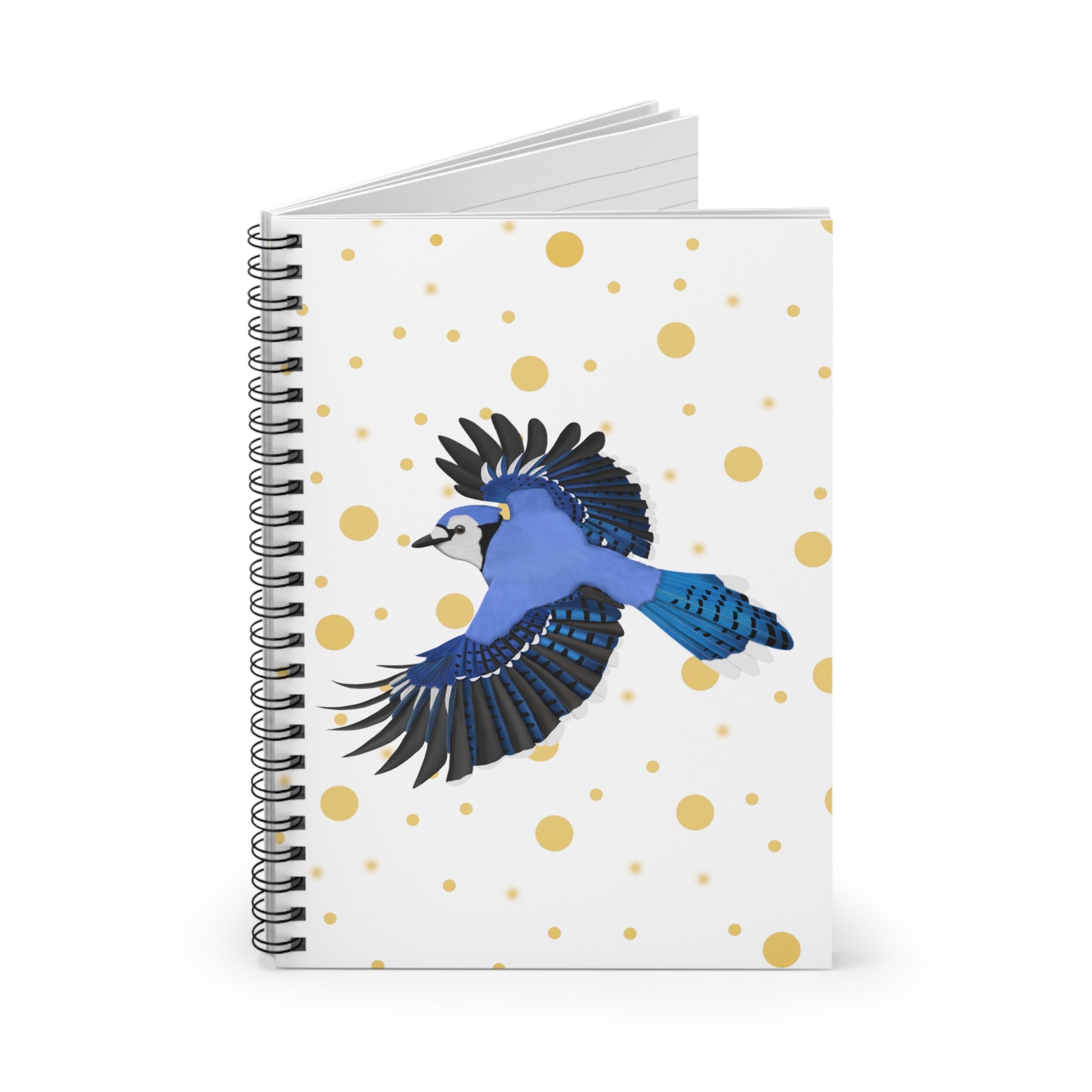 Blue Jay Bird Birdlover Spiral Notebook White Golden Dots Ruled Line 6"x8"