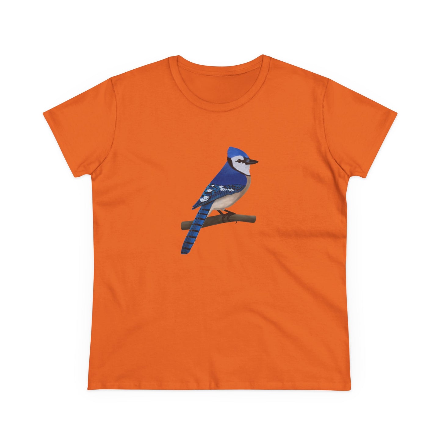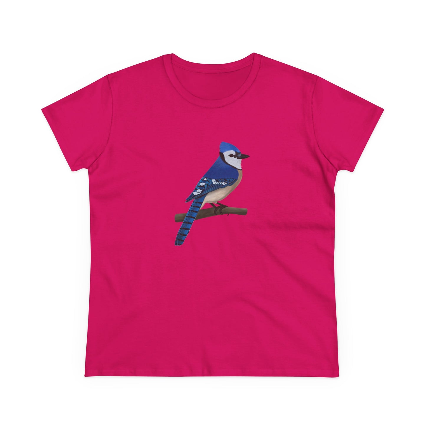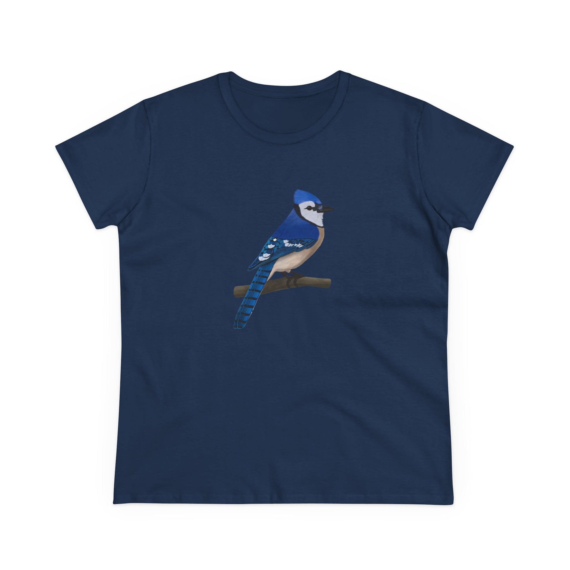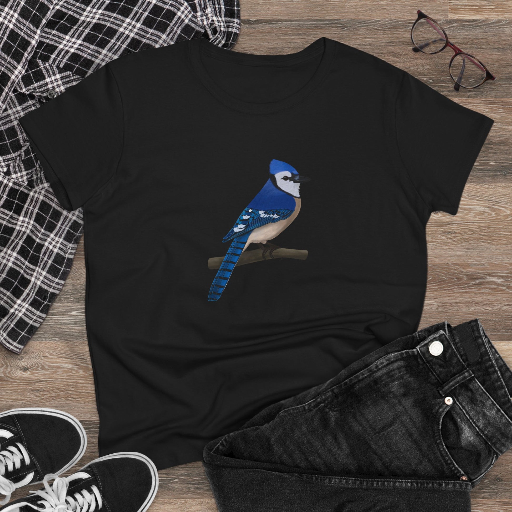 This Blue Jay bird design women's t-shirt is perfect for birdwatchers, birding enthusiasts, and bird lovers. It offers a casual and nature-inspired vibe, making it great for everyday wear or outdoor activities. Ideal for women who appreciate wildlife and nature-themed clothing. Relevant for birdwatching trips, nature walks, Earth Day, and wildlife conservation events.