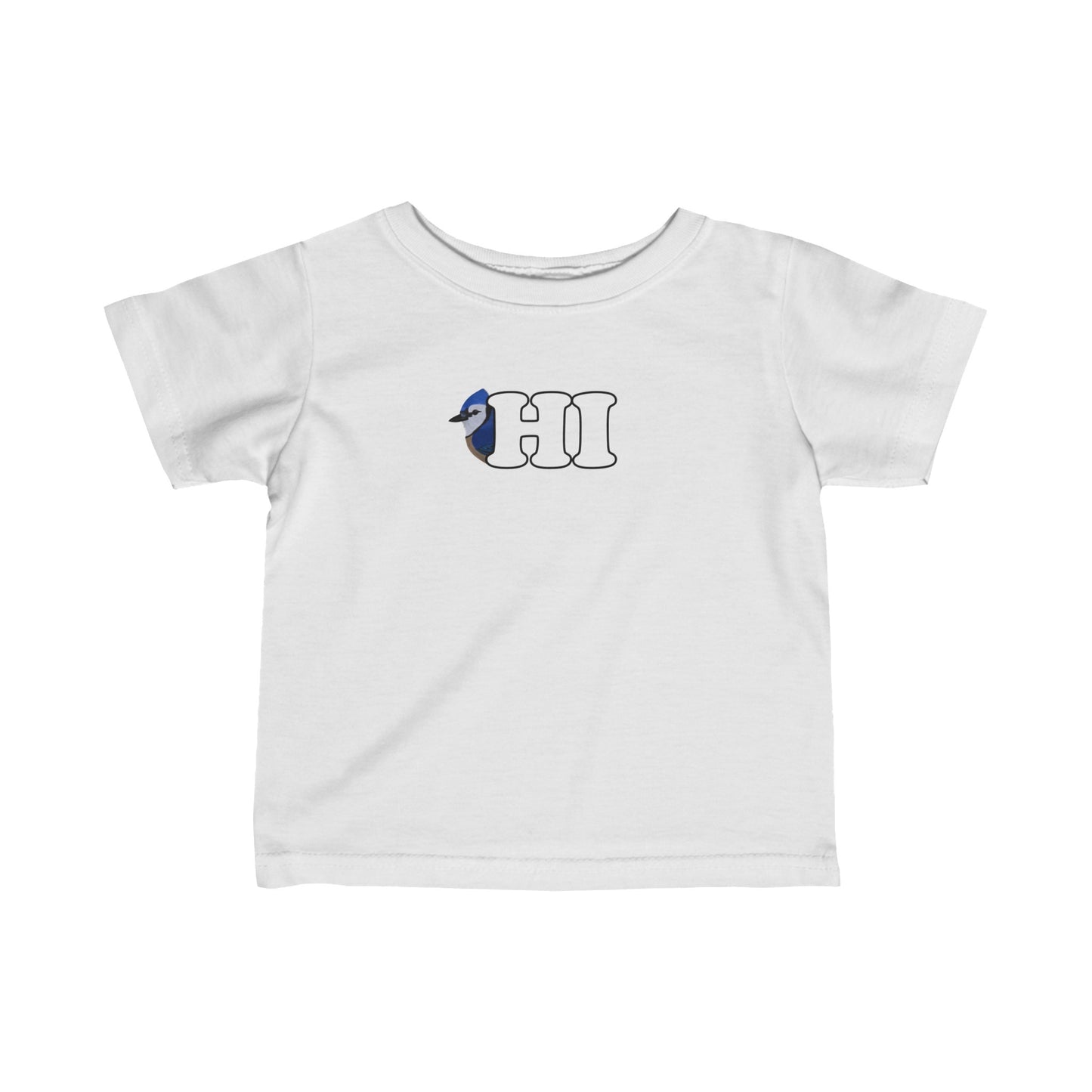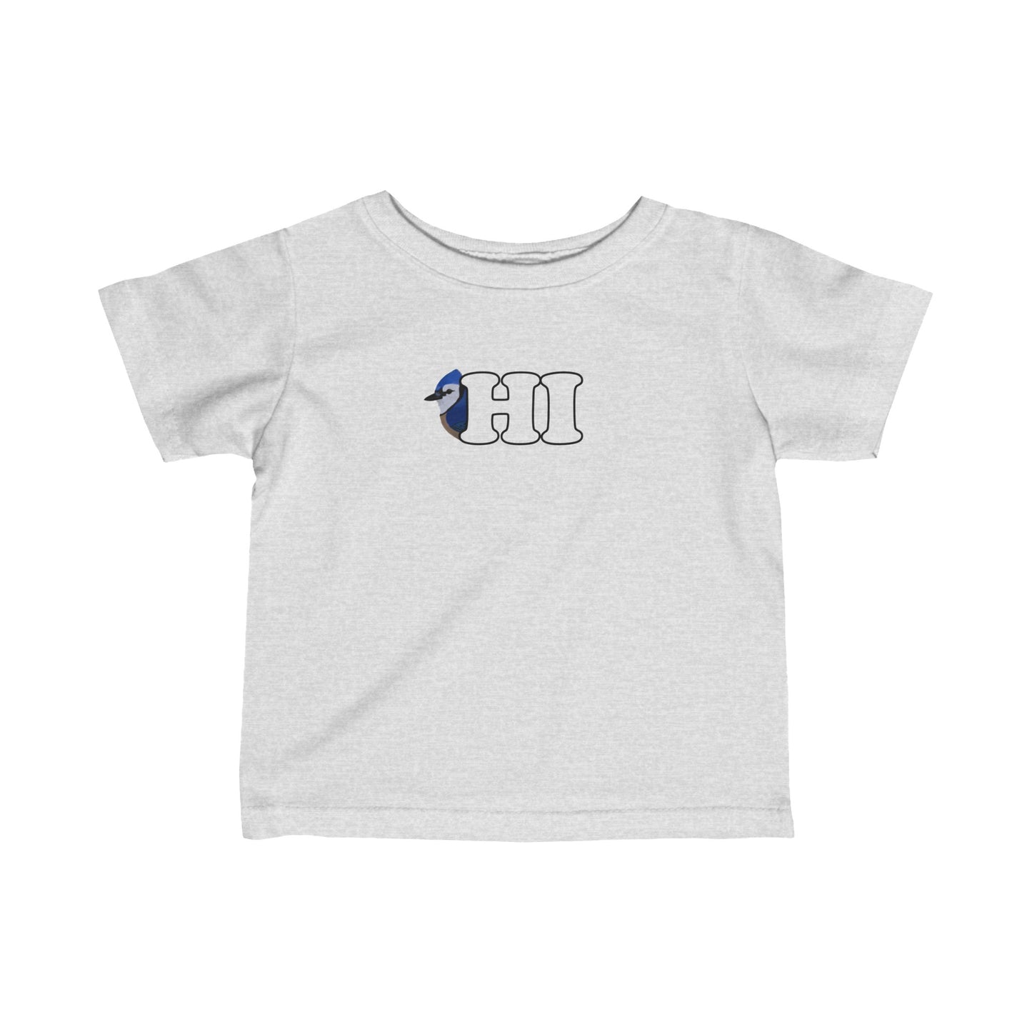 Tweet all day with our adorable Baby & Toddler Blue Jay Bird T-Shirt! Perfect for your little one, this tee features a playful 'Hi' bird design for a fun and unique look. Let your little birdie stand out in style with our comfy and cute bird tees!