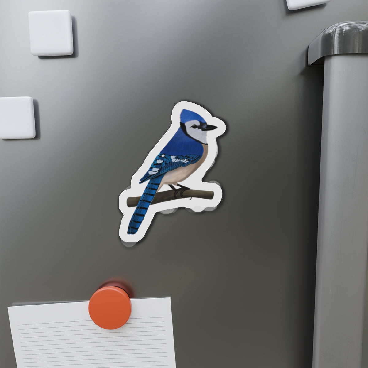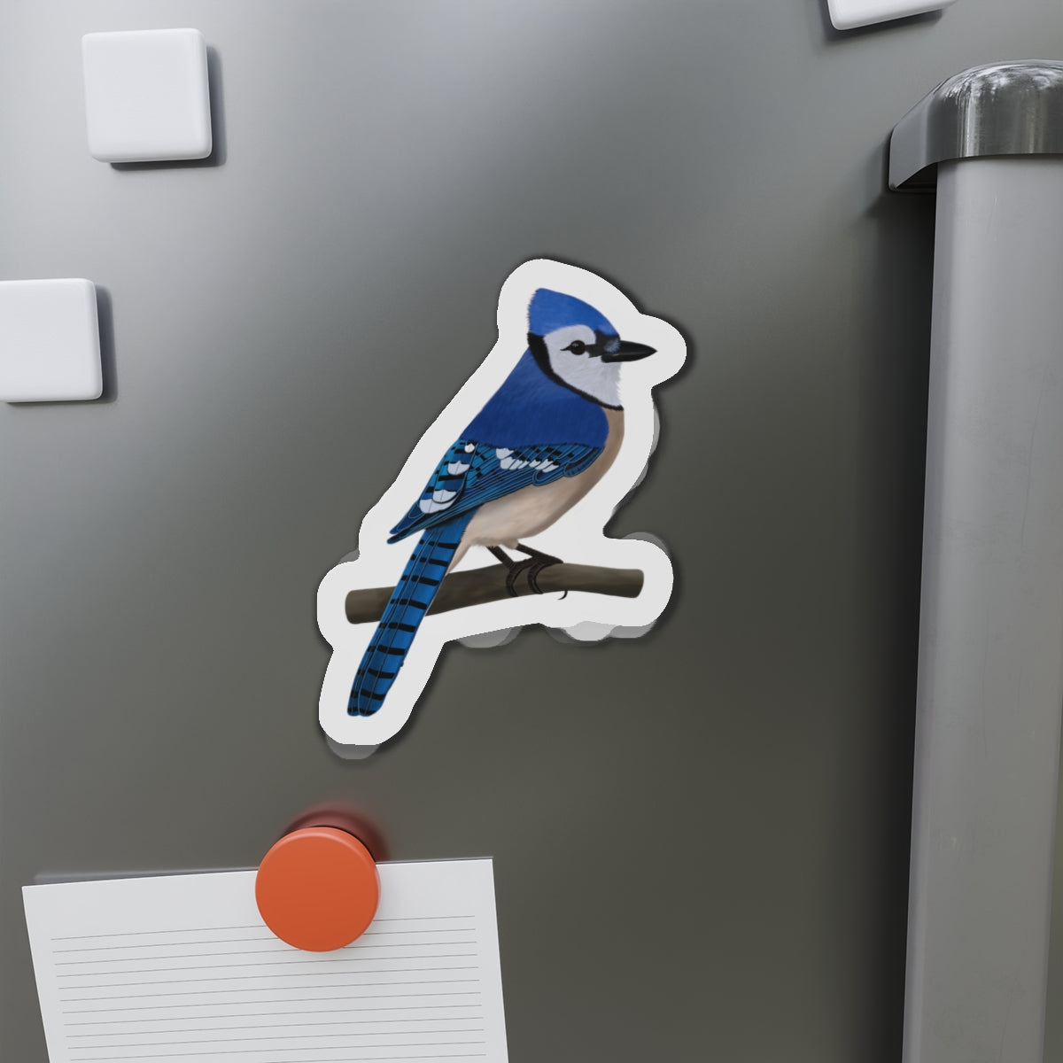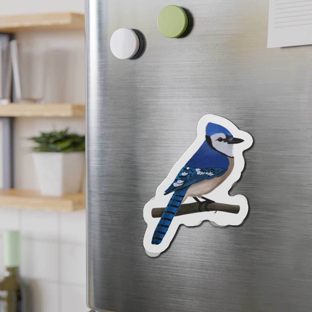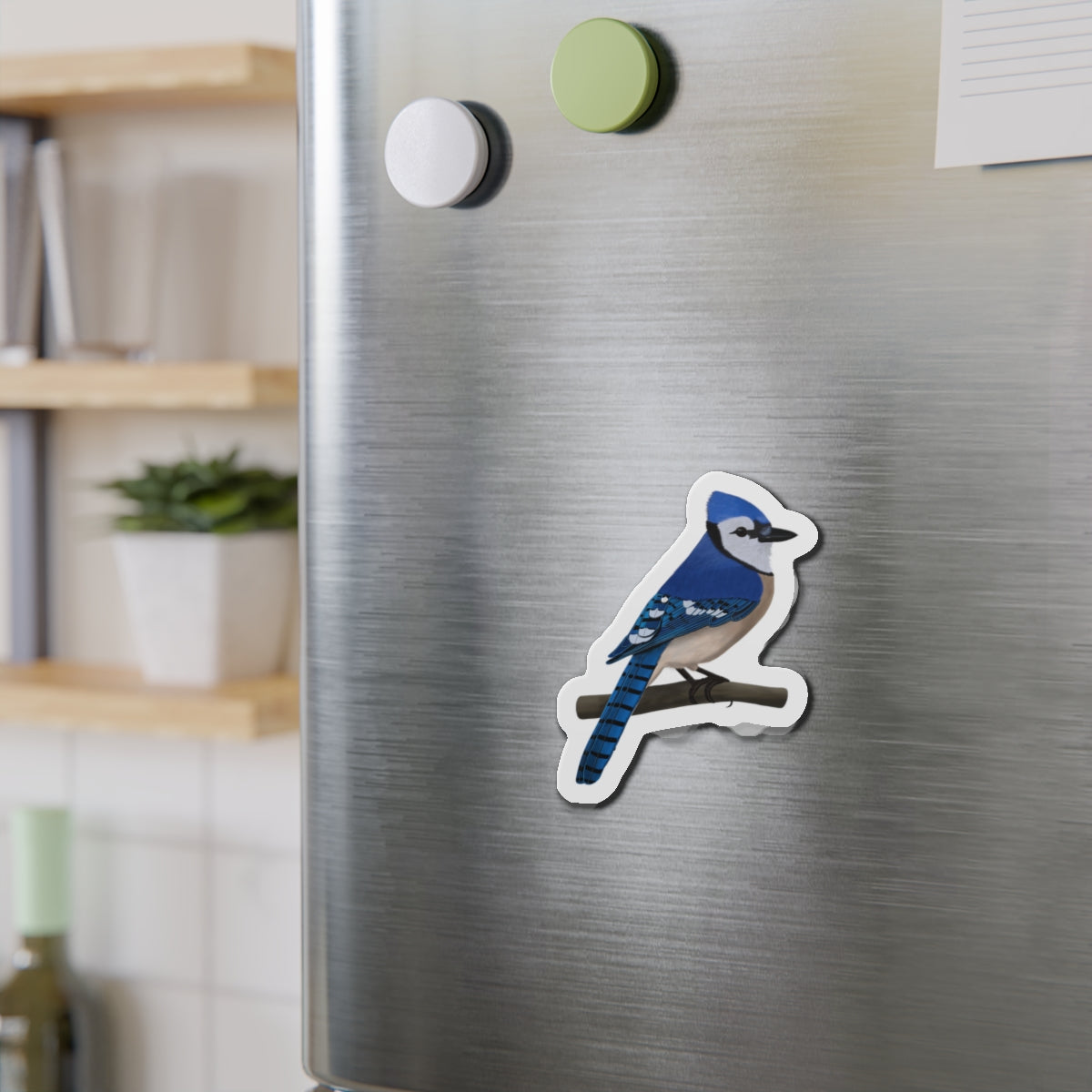 This magnet features a beautiful Blue Jay bird illustration. It serves as both a useful tool and a lovely decoration for any home or office space. Made with high-quality materials, it is sure to add a touch of elegance to any setting.