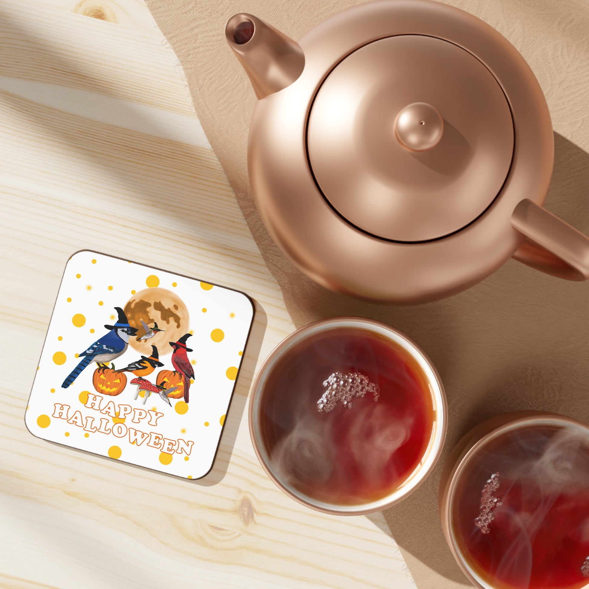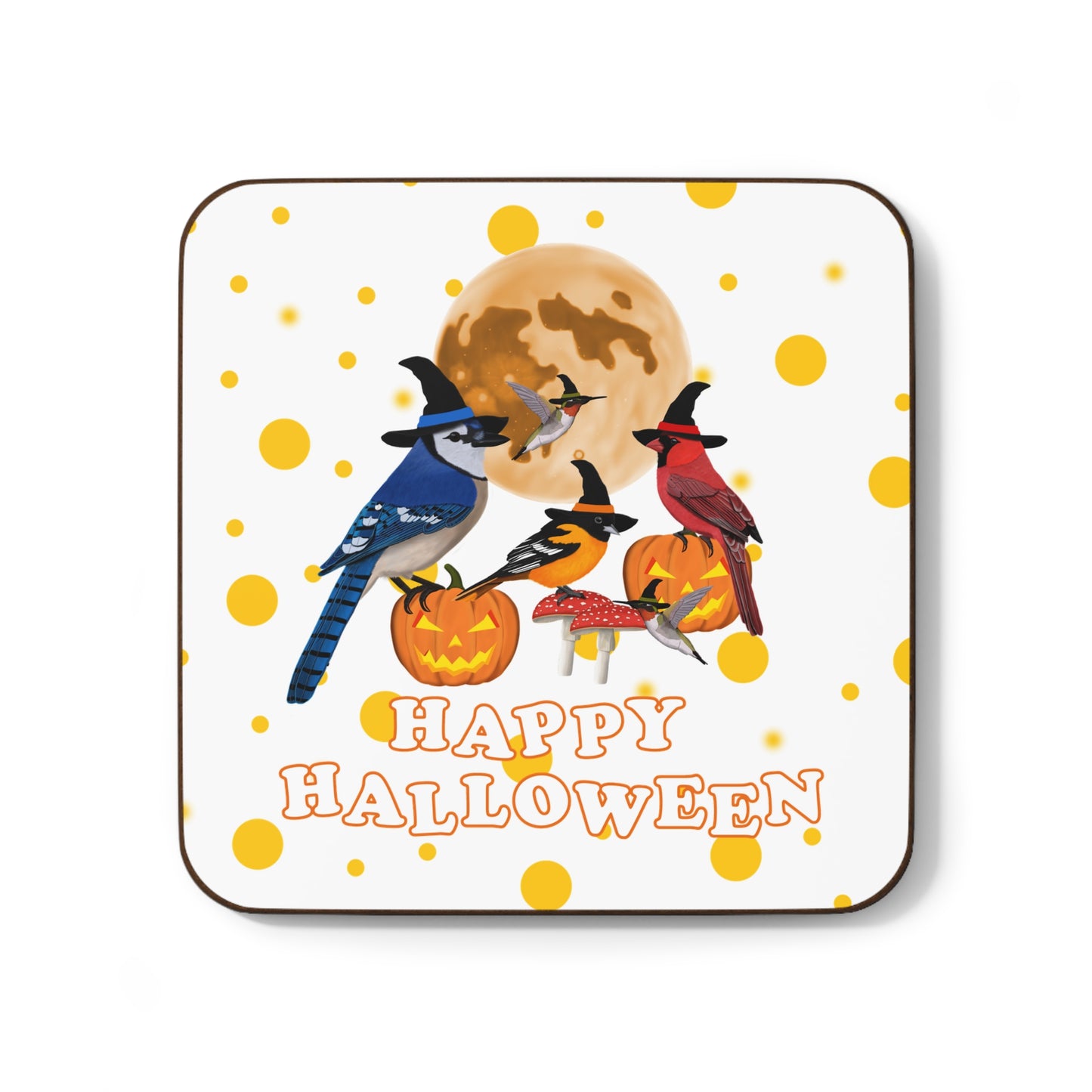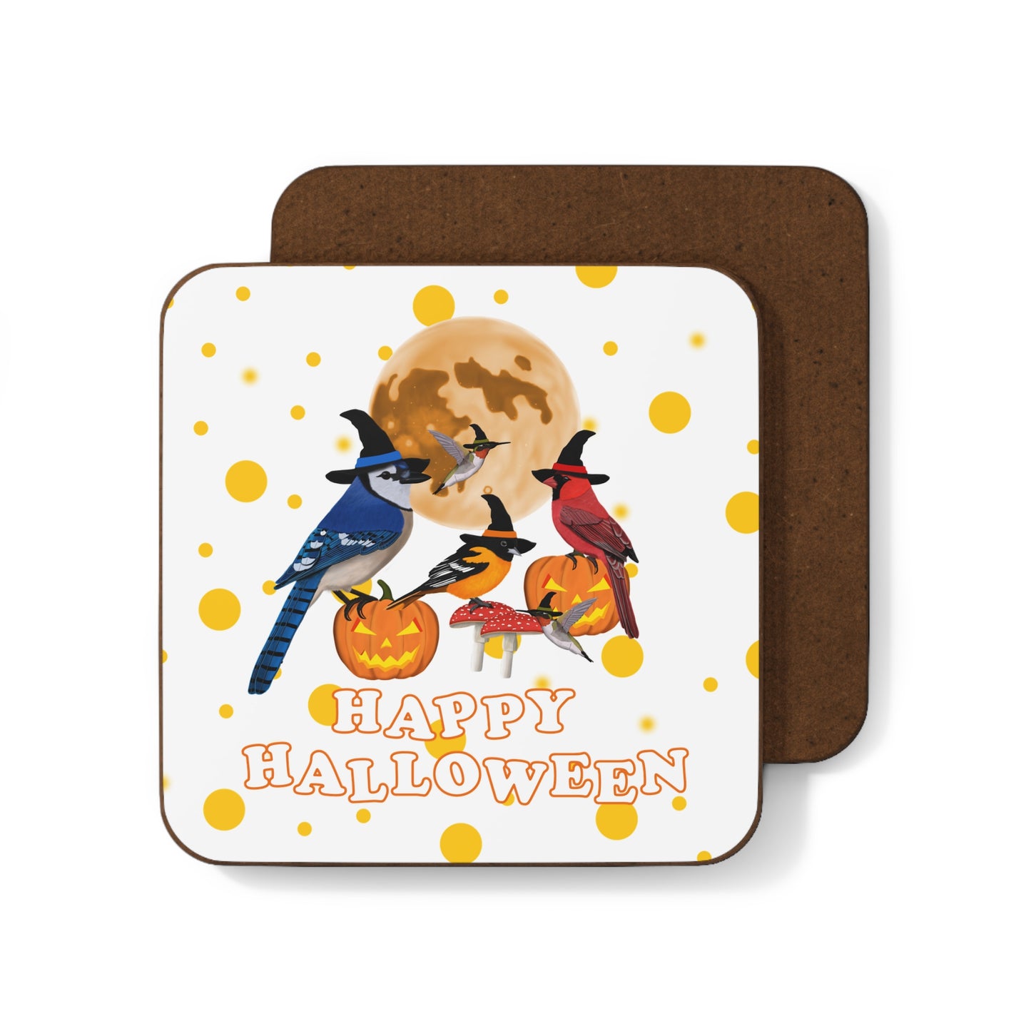 Blue Jay Cardinal Hummingbird Oriole Orange Dots Halloween Bird Hardboard Coaster