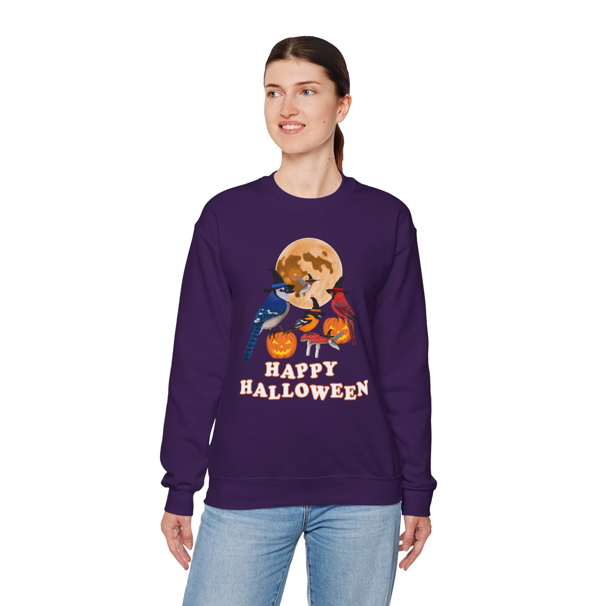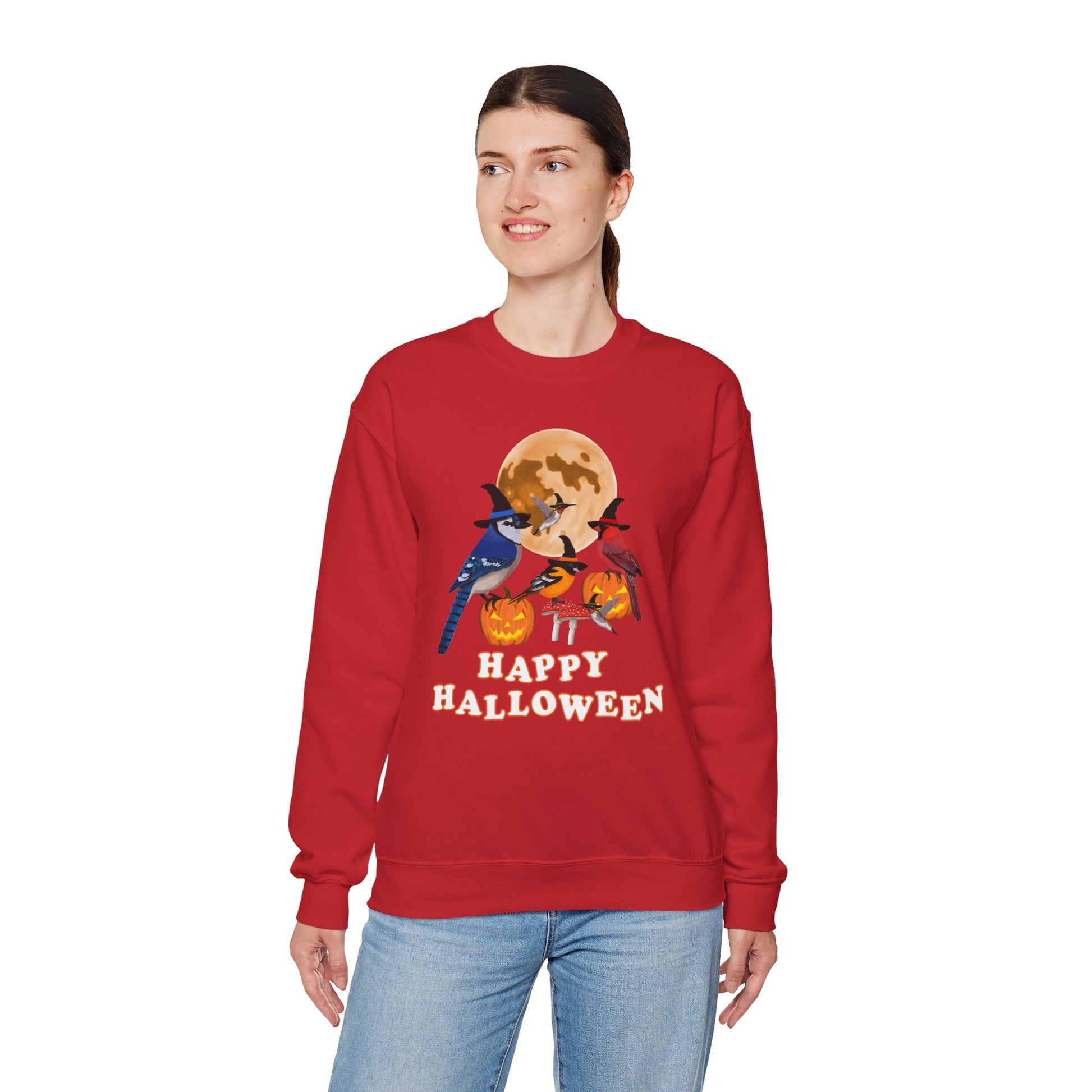 Blue Jay Cardinal Oriole Hummingbird Halloween Birds Witch Birdwatcher Sweatshirt