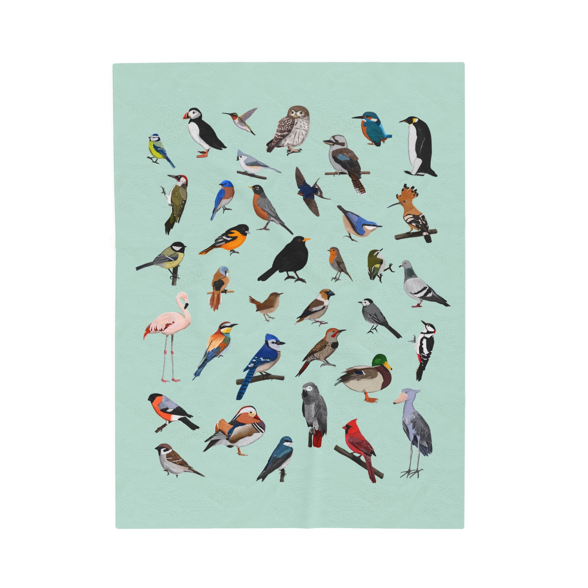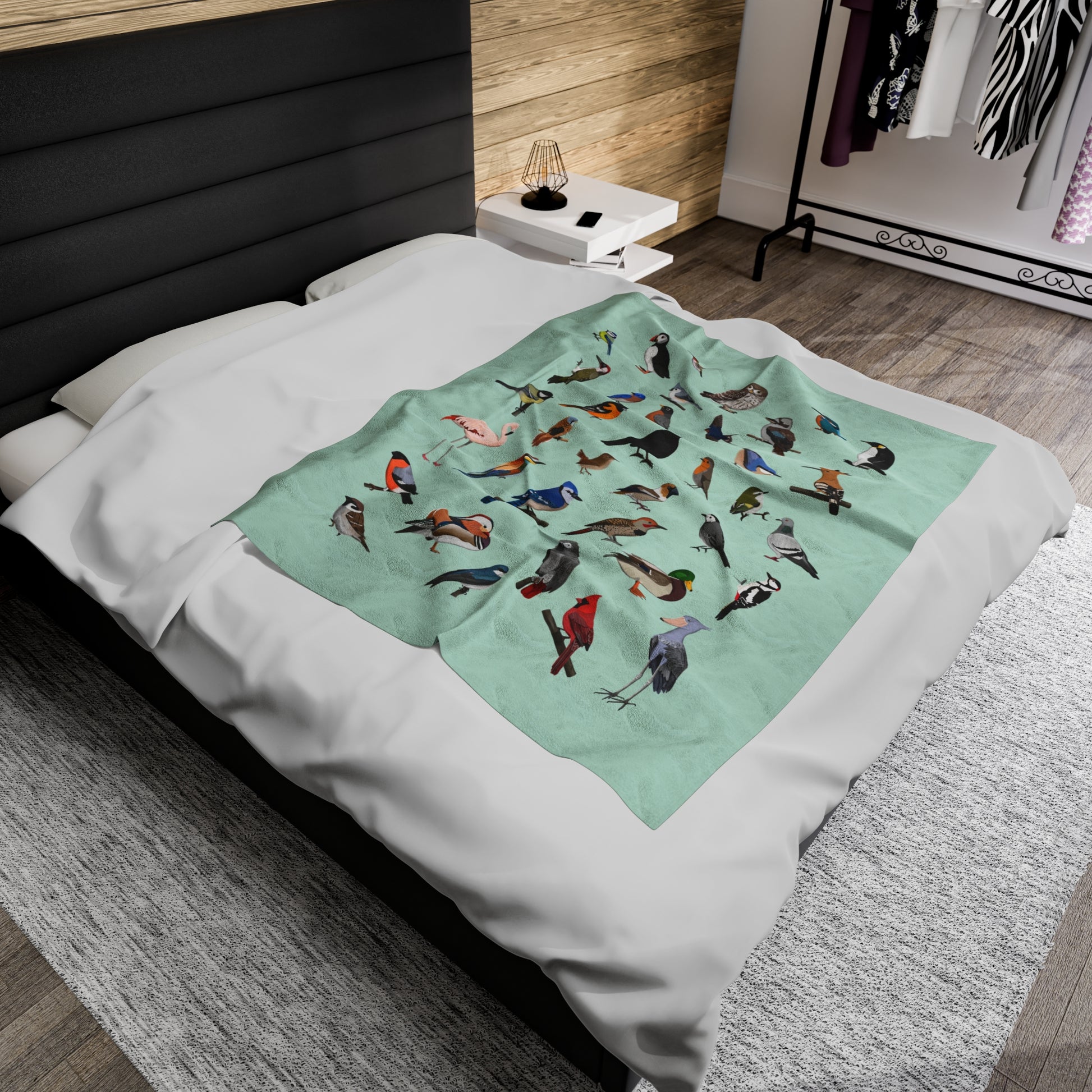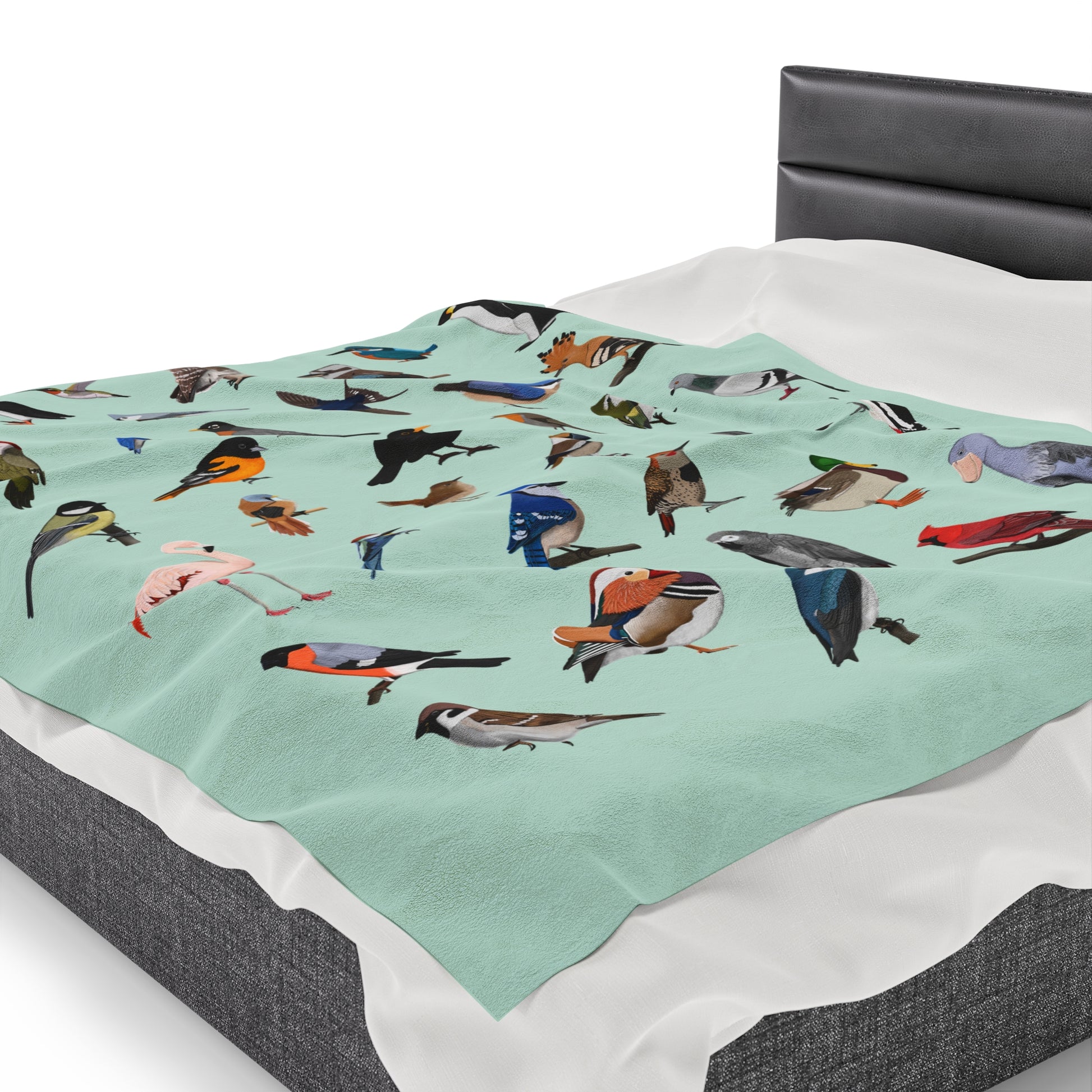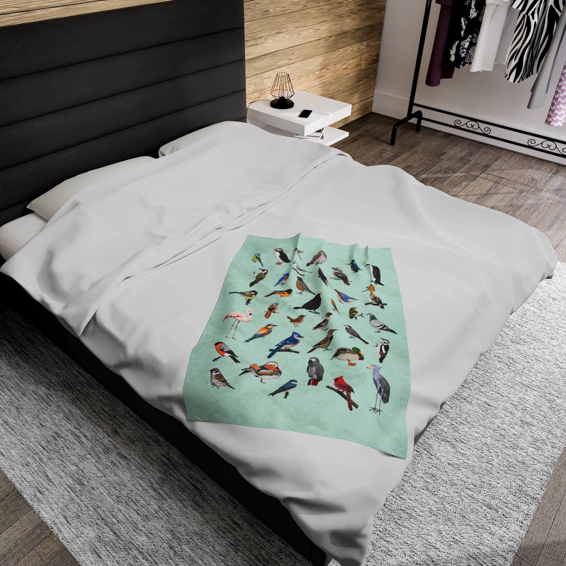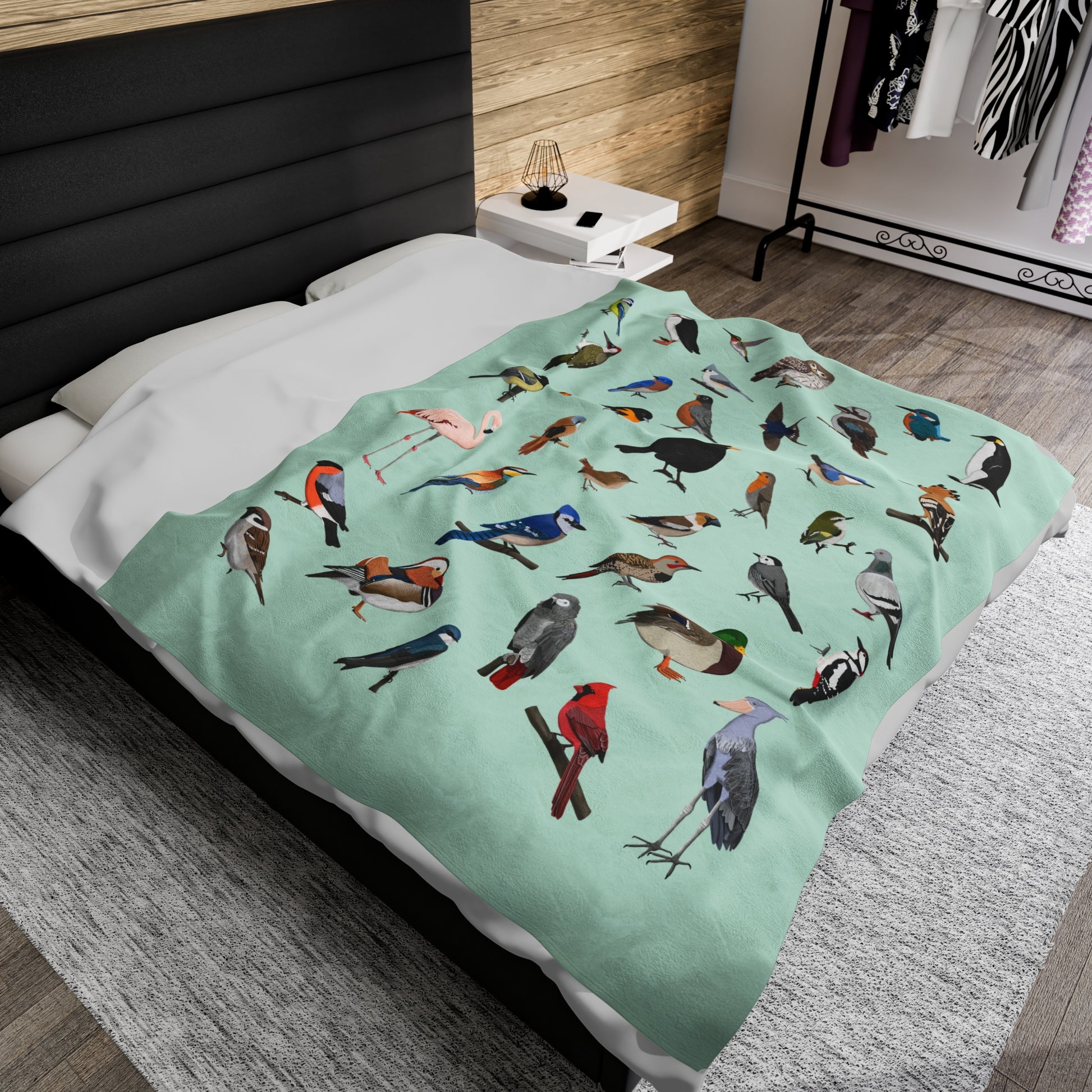 Blue Jay Cardinal Robin Bluebird Hummingbird Oriole Backyard Birds Velveteen Plush Blanket Green