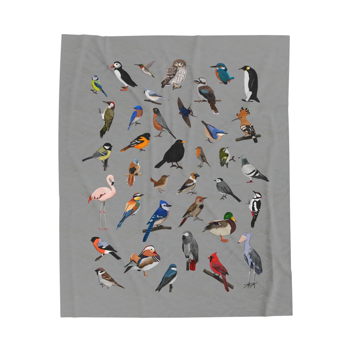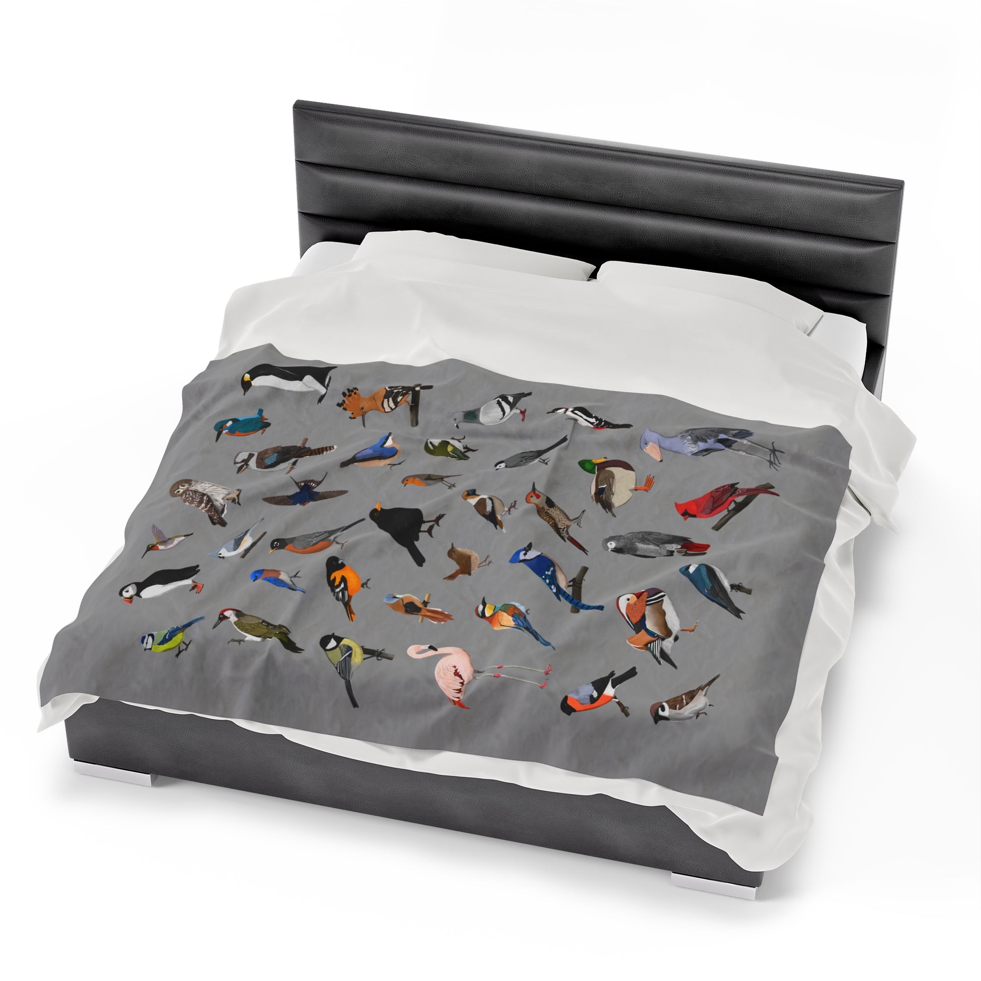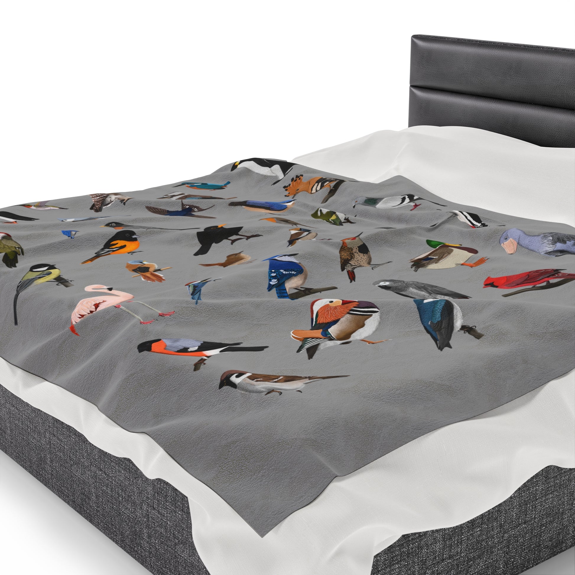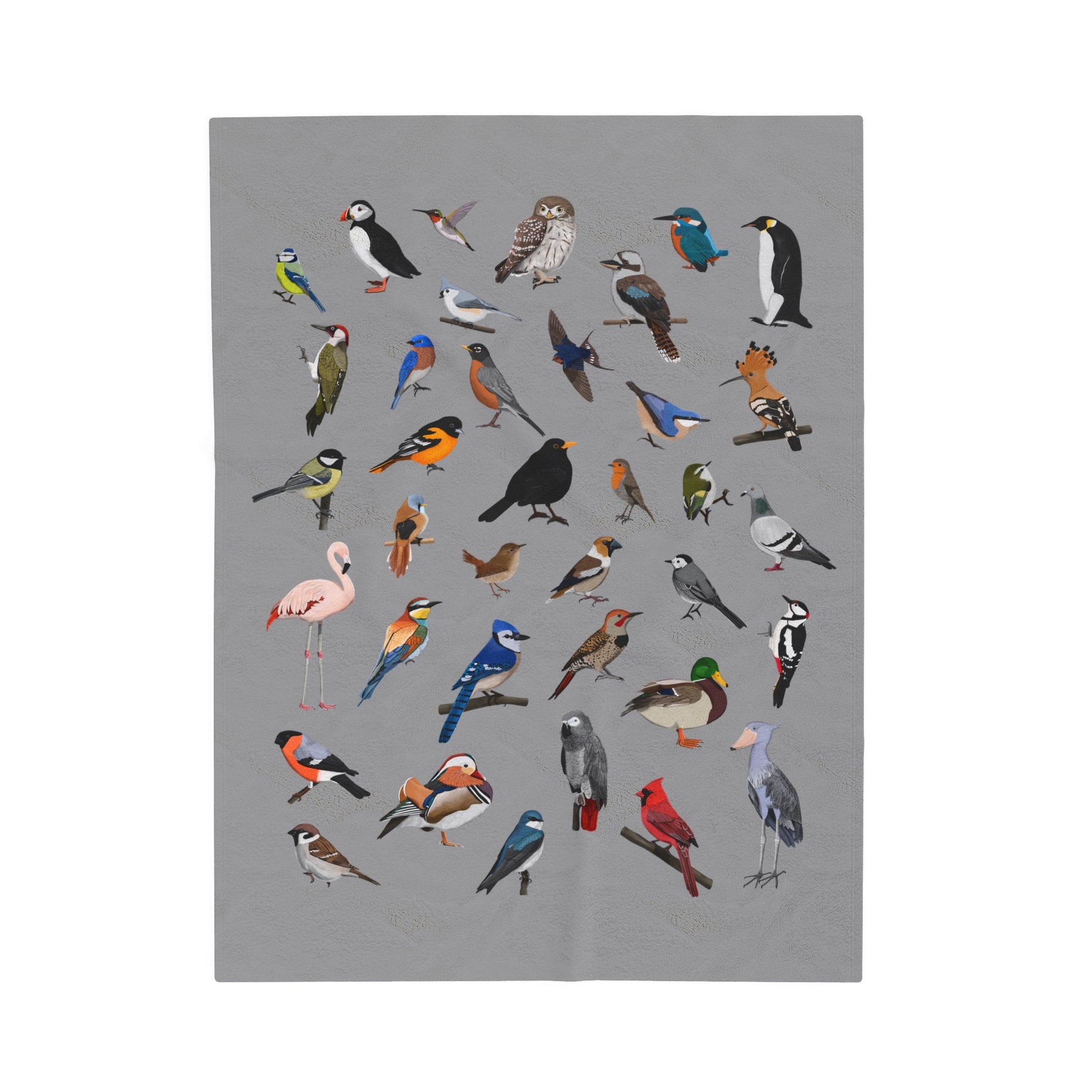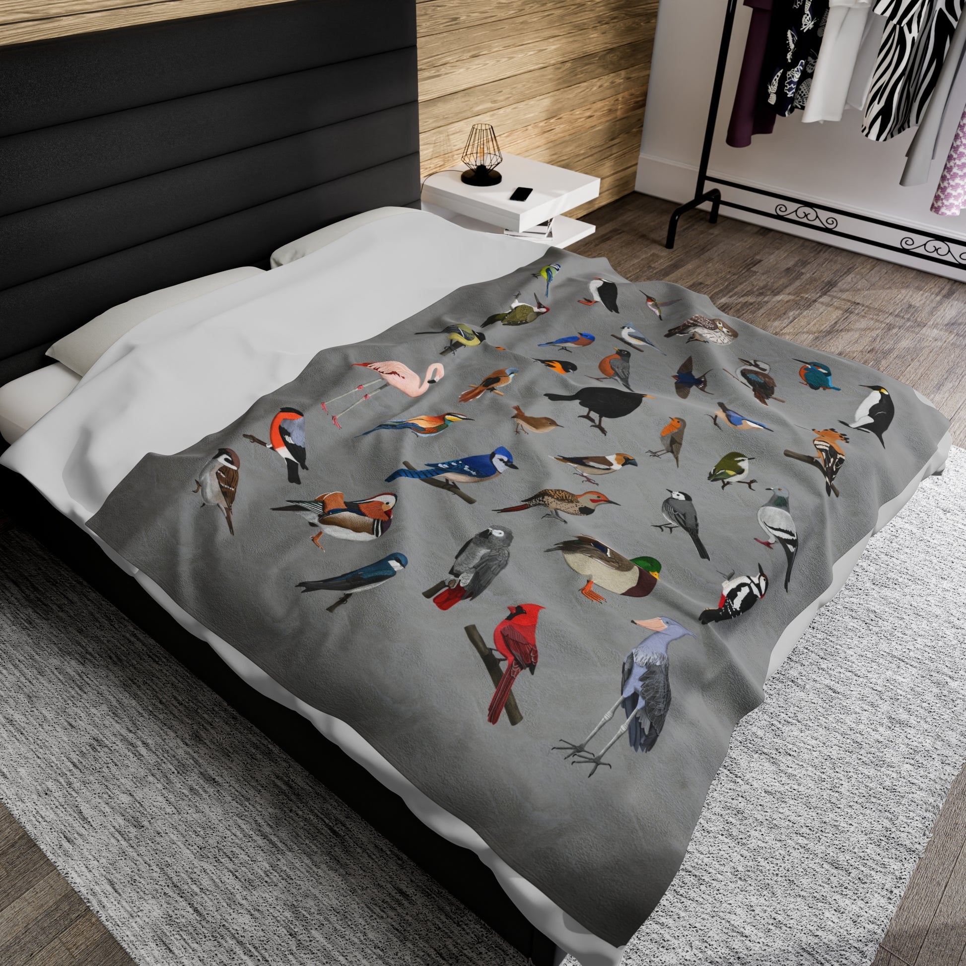 Blue Jay Cardinal Robin Bluebird Hummingbird Oriole Backyard Birds Velveteen Plush Blanket Grey