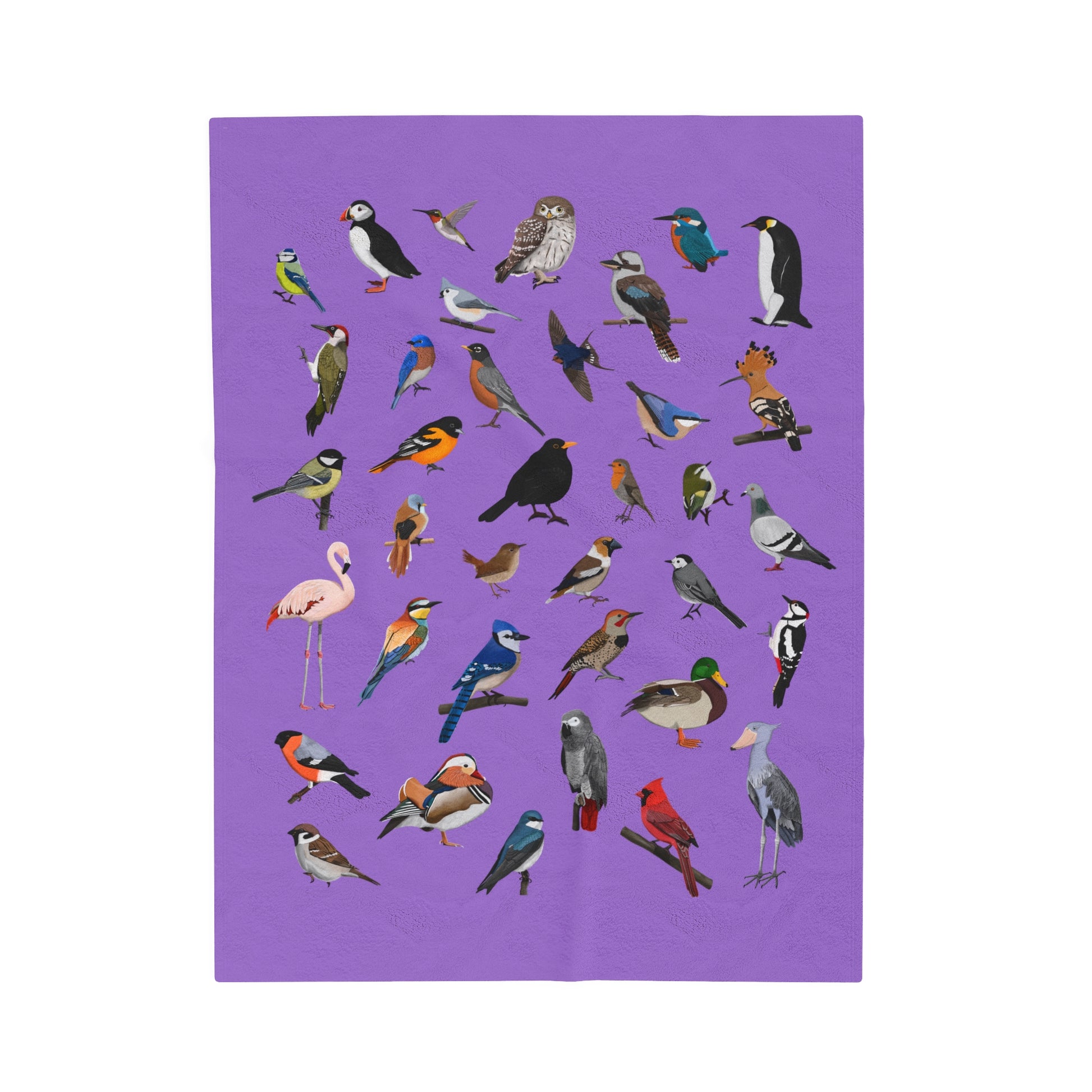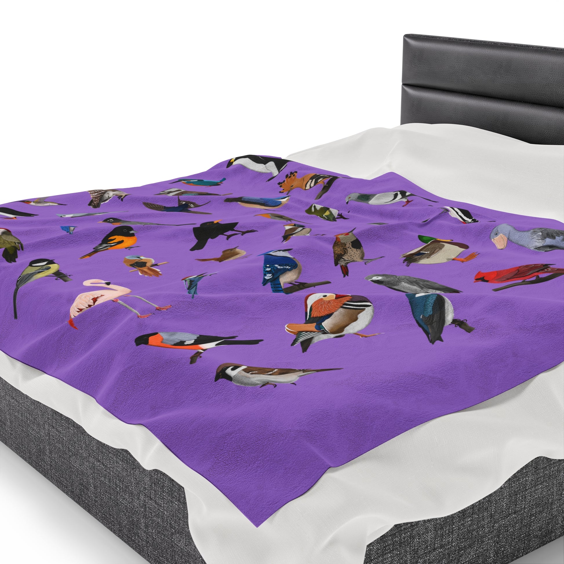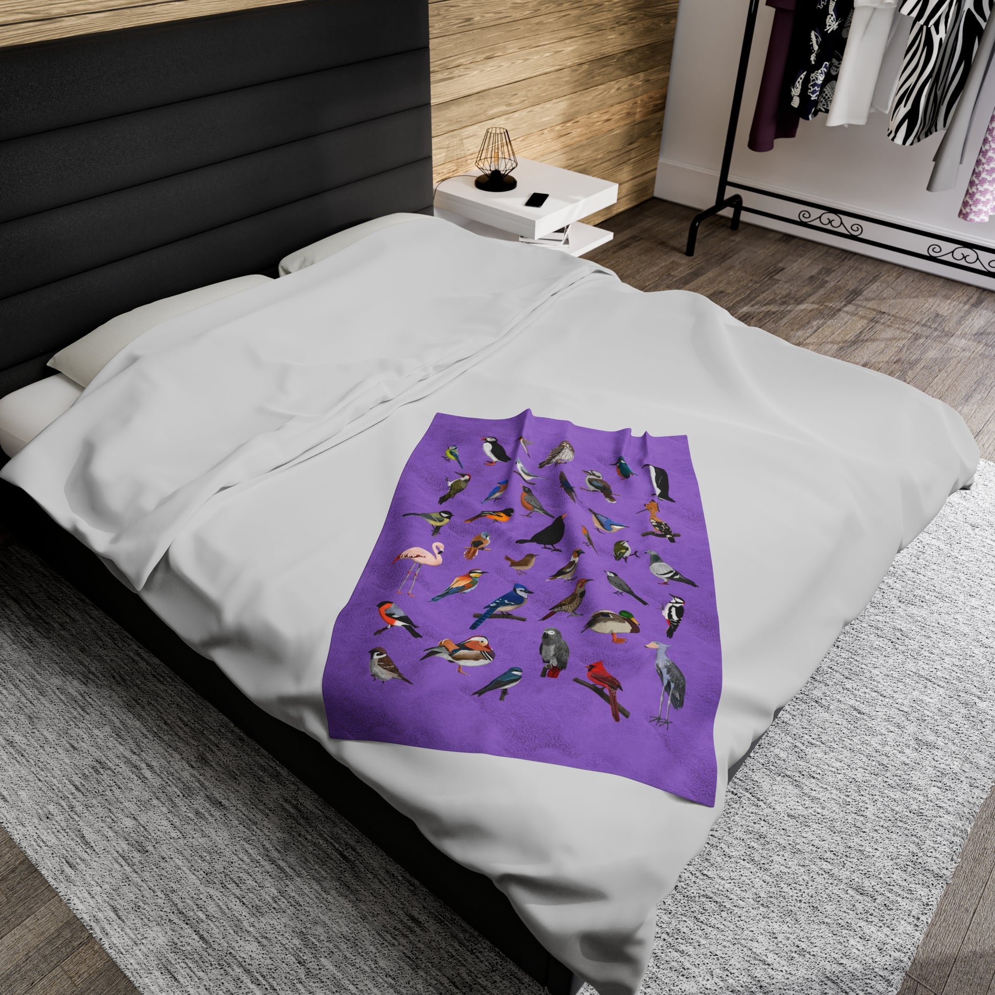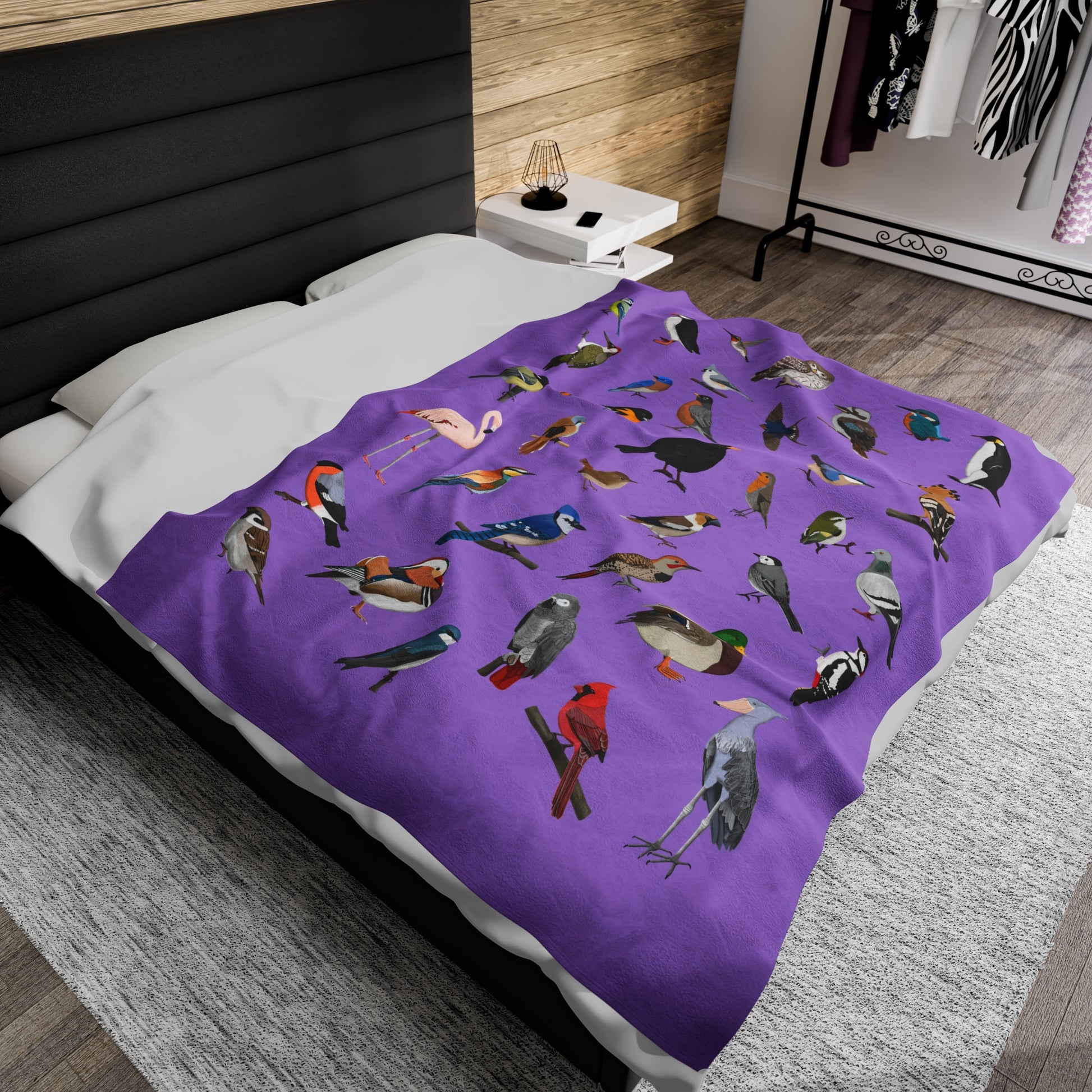 Blue Jay Cardinal Robin Bluebird Hummingbird Oriole Backyard Birds Velveteen Plush Blanket Purple