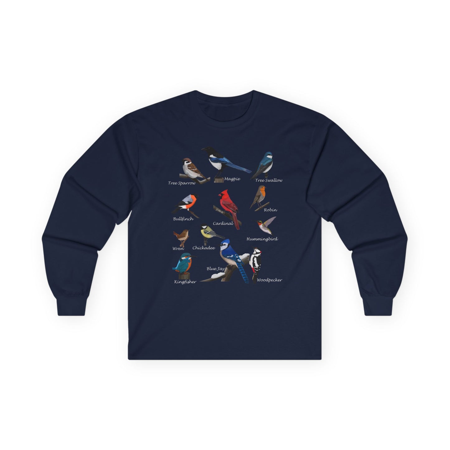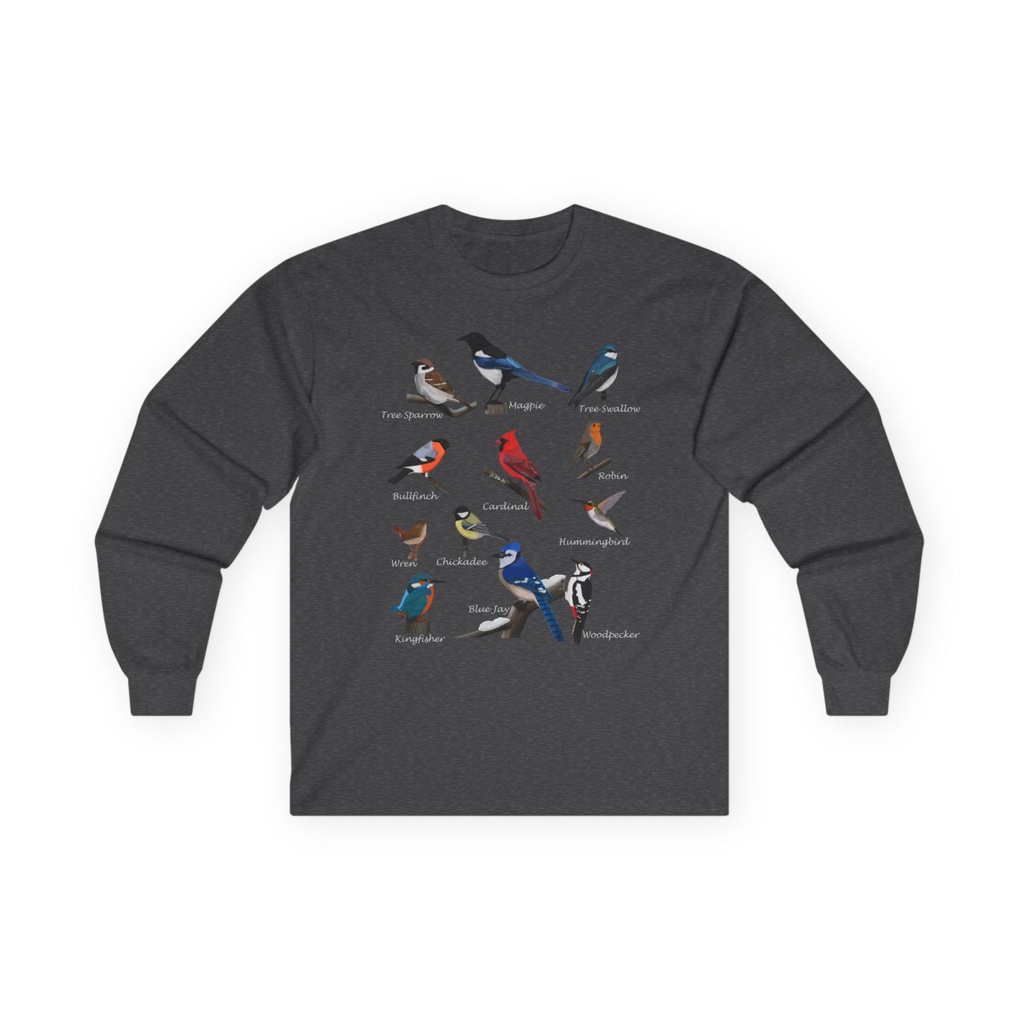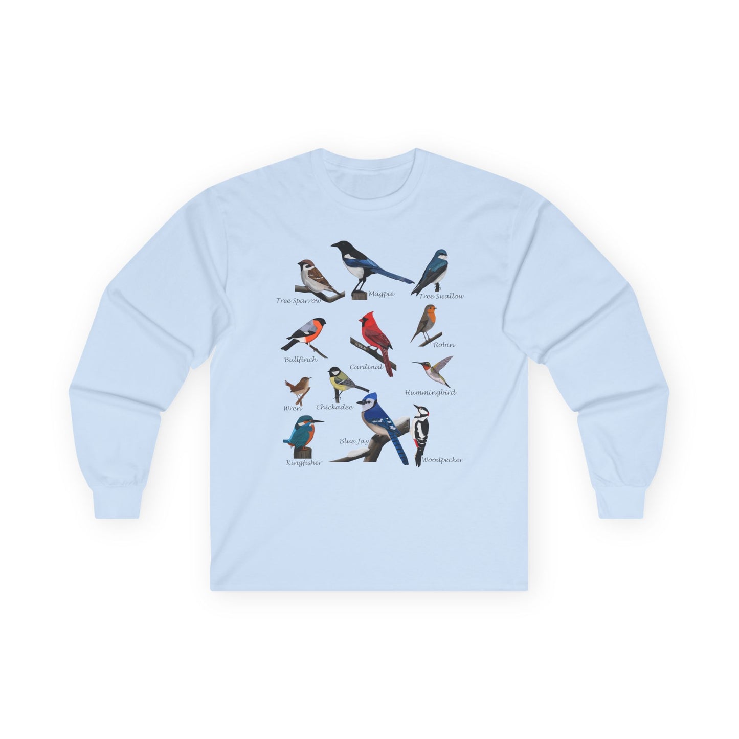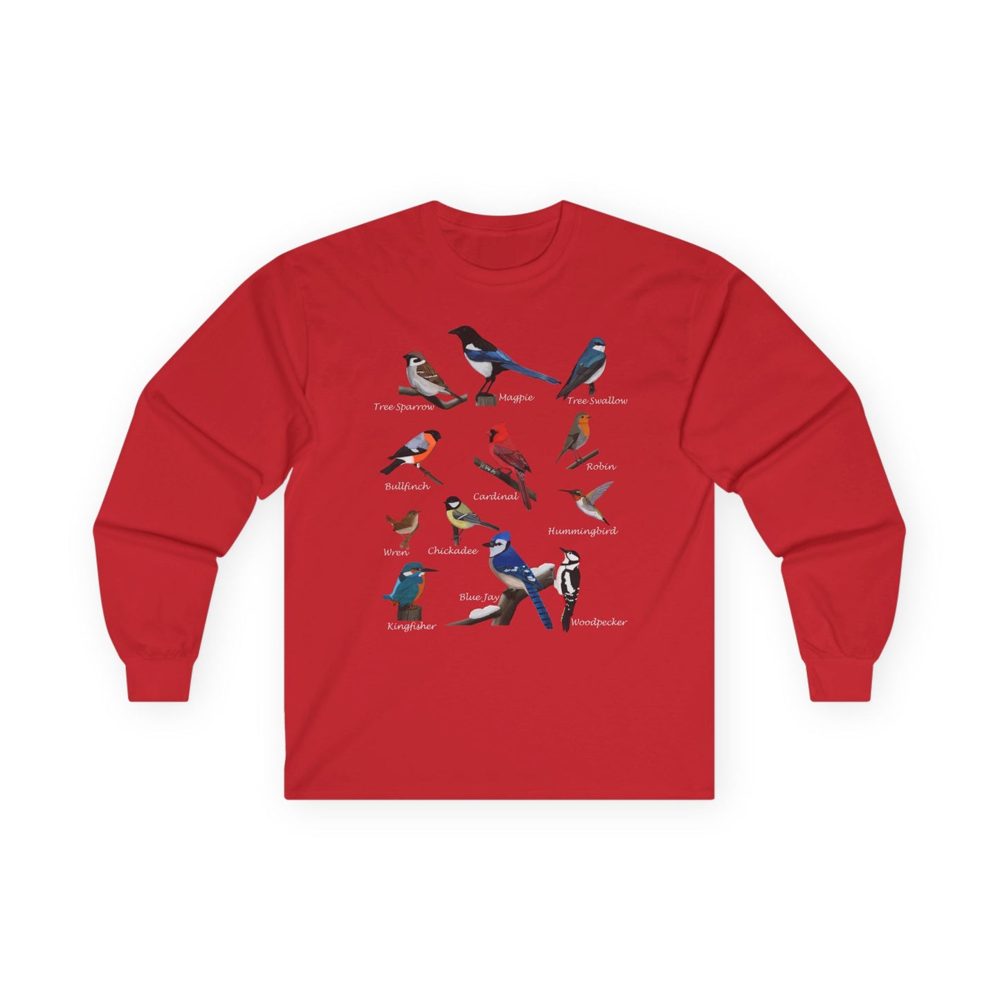 This Blue Jay, Cardinal, Robin, Hummingbird long sleeve t-shirt is made from high-quality cotton, ensuring a comfortable fit. Its bird design adds a touch of whimsy to your wardrobe. Perfect for a casual day out or a relaxed night in, this shirt is a must-have for any bird enthusiast