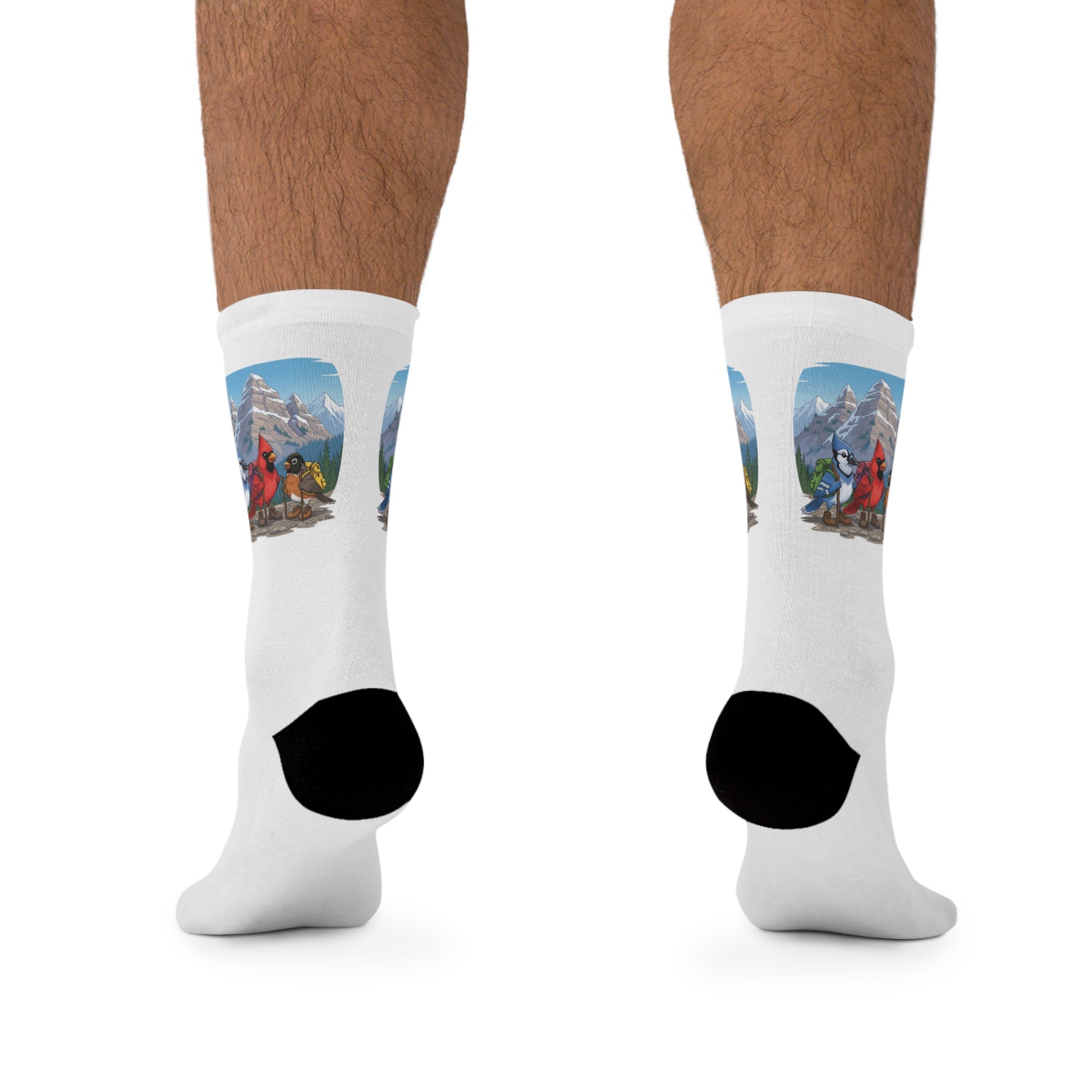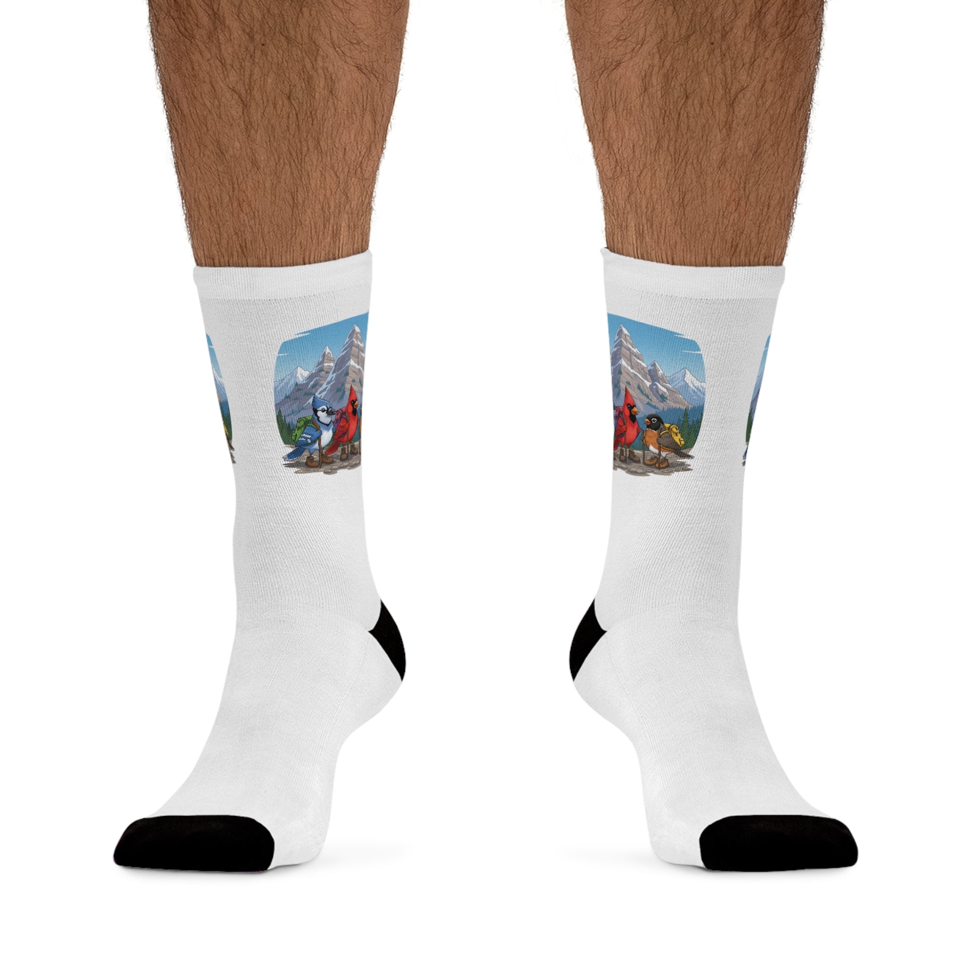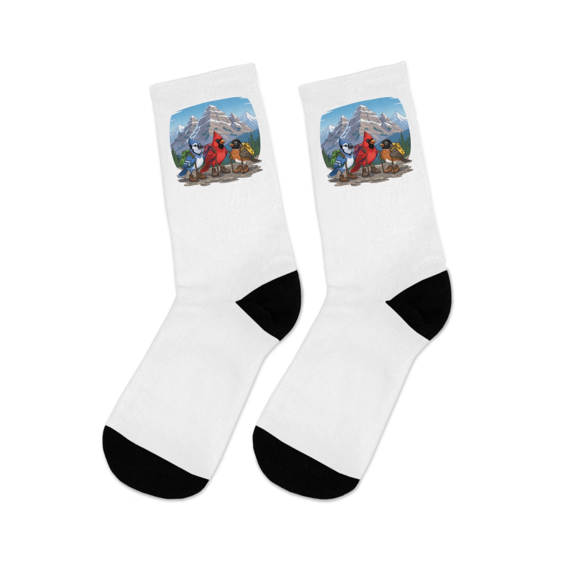 Blue Jay Cardinal Robin on a Hike Bird Socks White for Bird and Hiking Lovers One Size