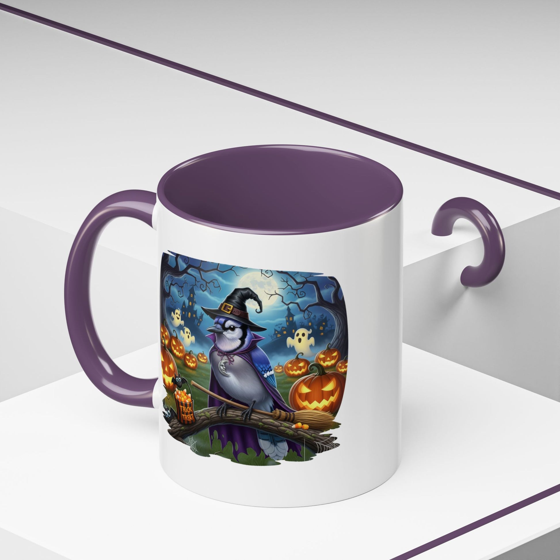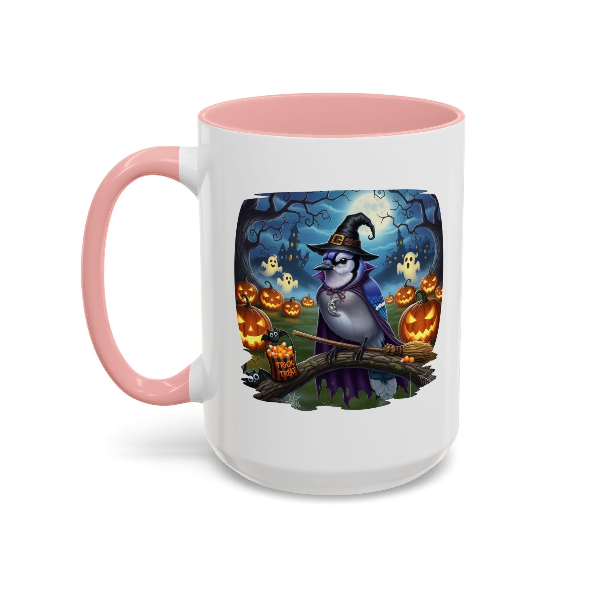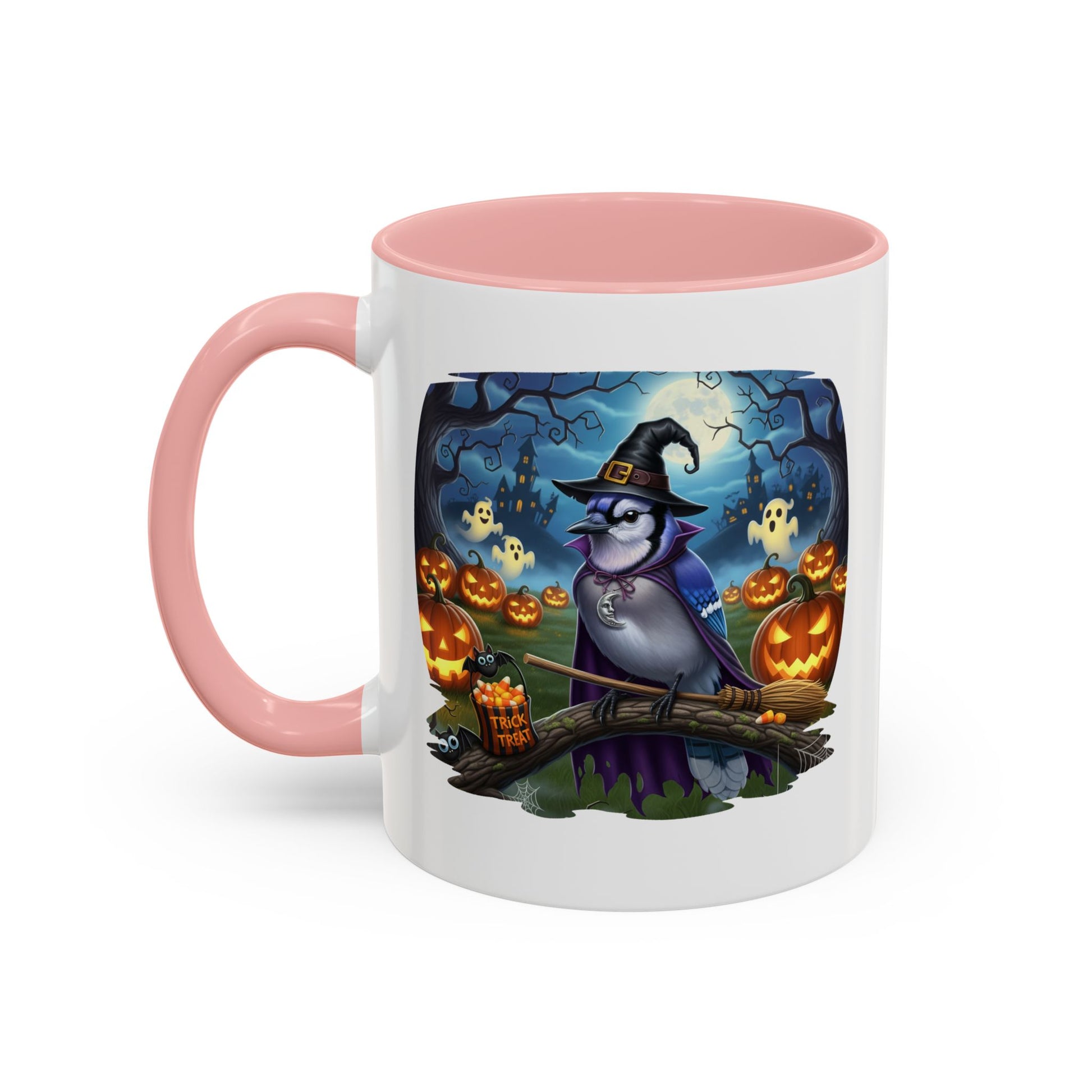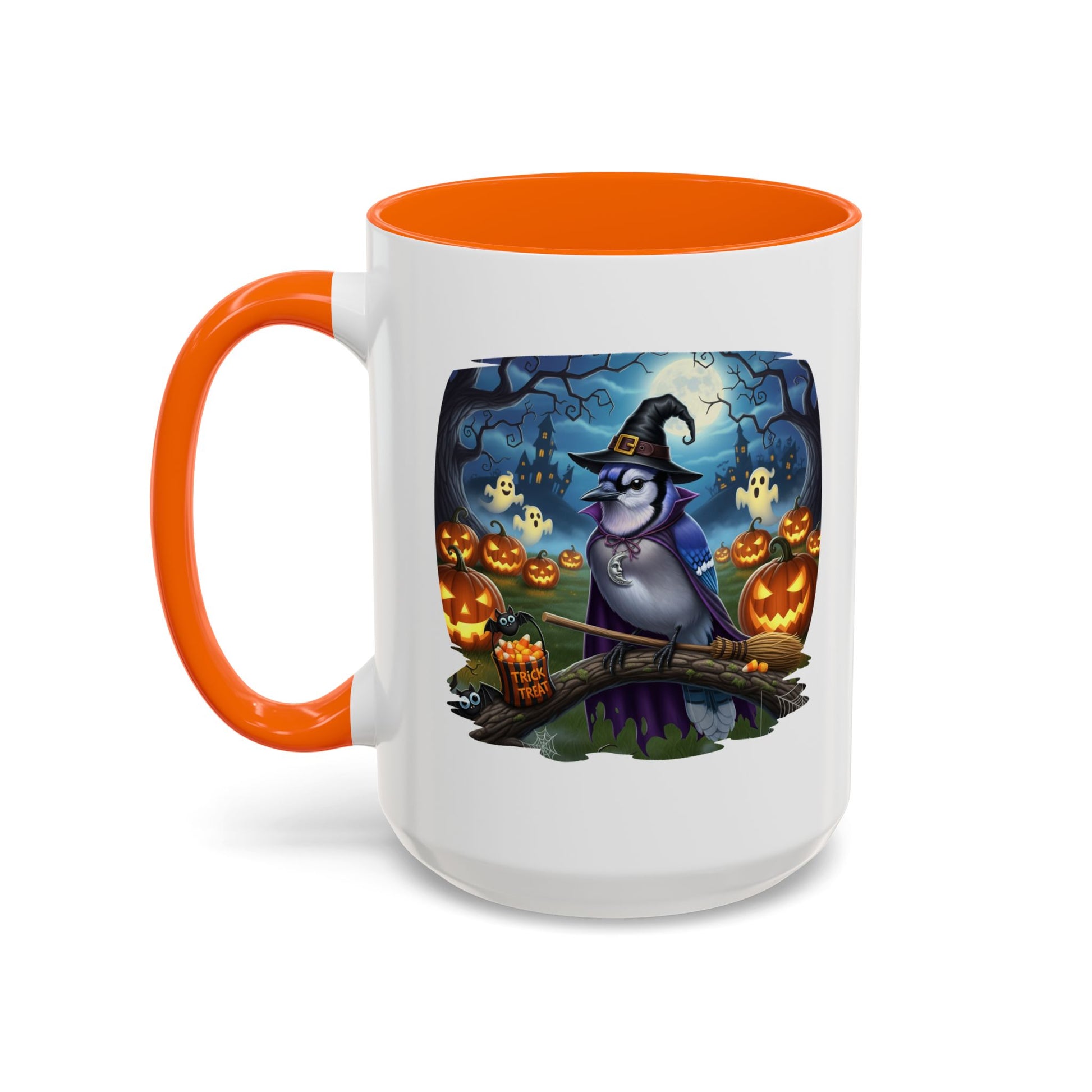Start your spooky season mornings with a dose of humor and your favorite feathered friends! Our exclusive Blue Jay Halloween bird mug brings a whimsical twist to your daily coffee or tea. This durable ceramic mug features a charmingly spooky design, showcasing a bird (like a bald eagle, cardinal, or blue jay) wearing a witch's hat and ready for a flight on a broomstick.