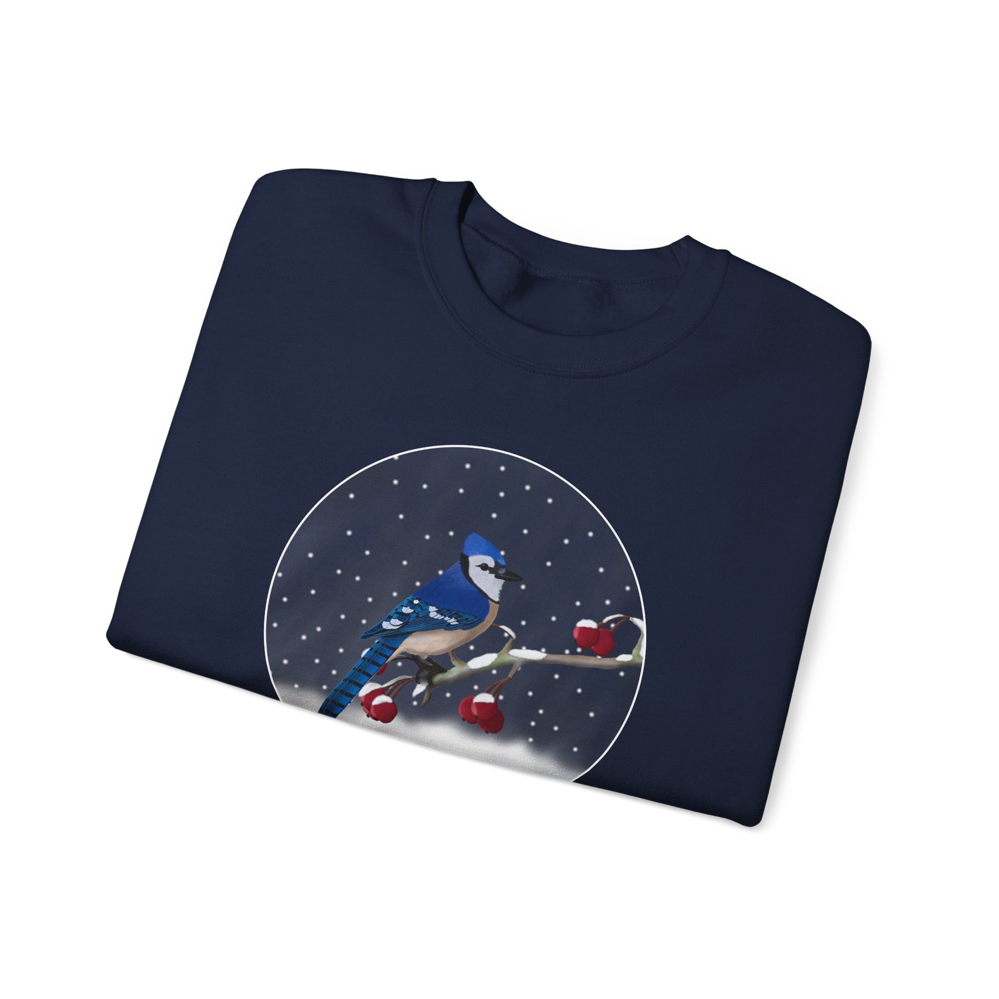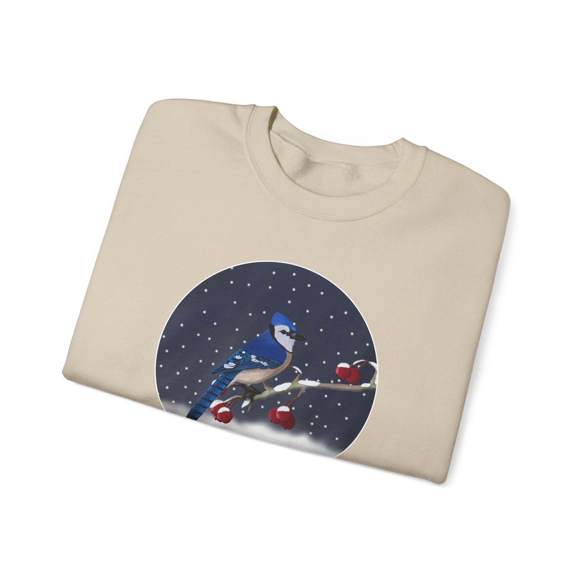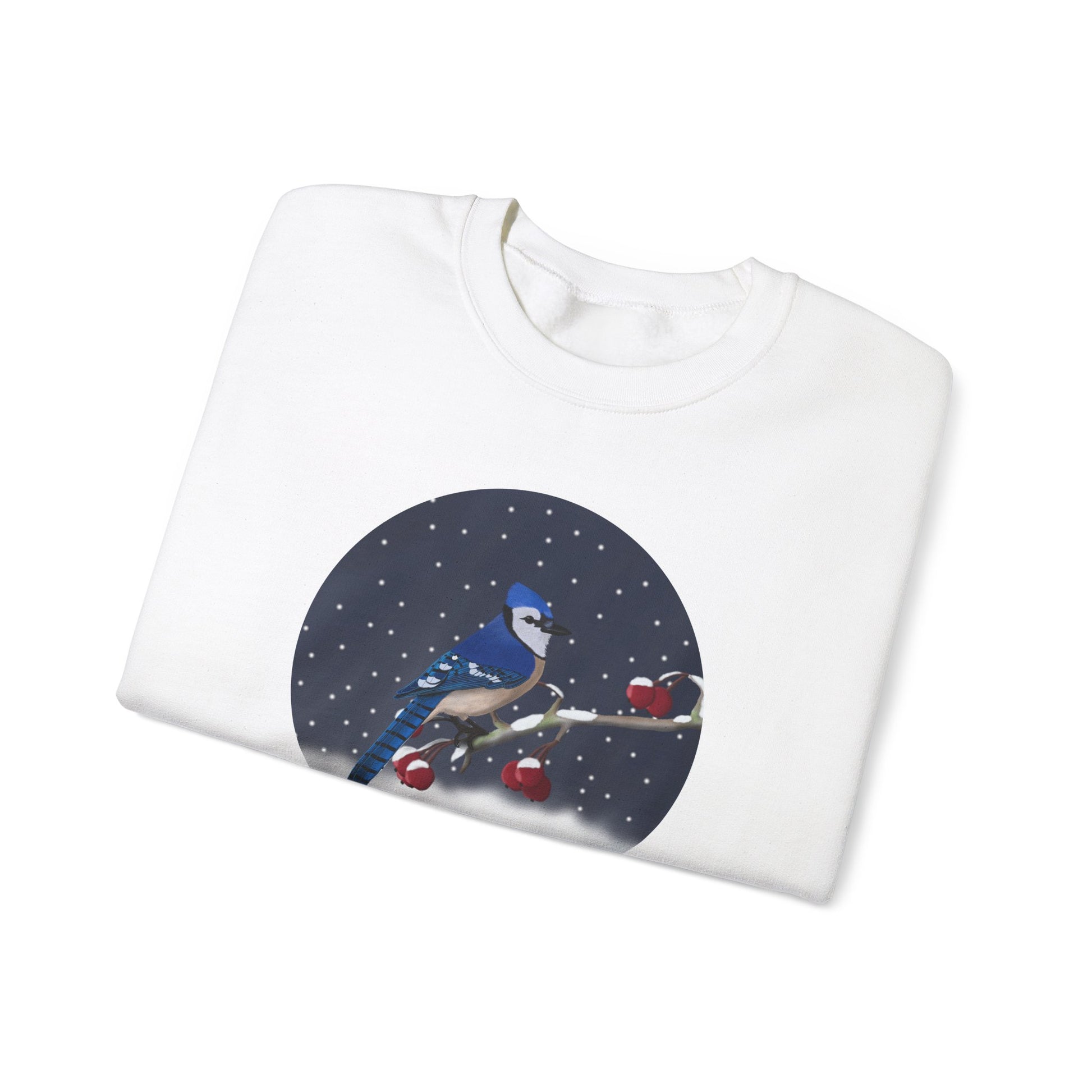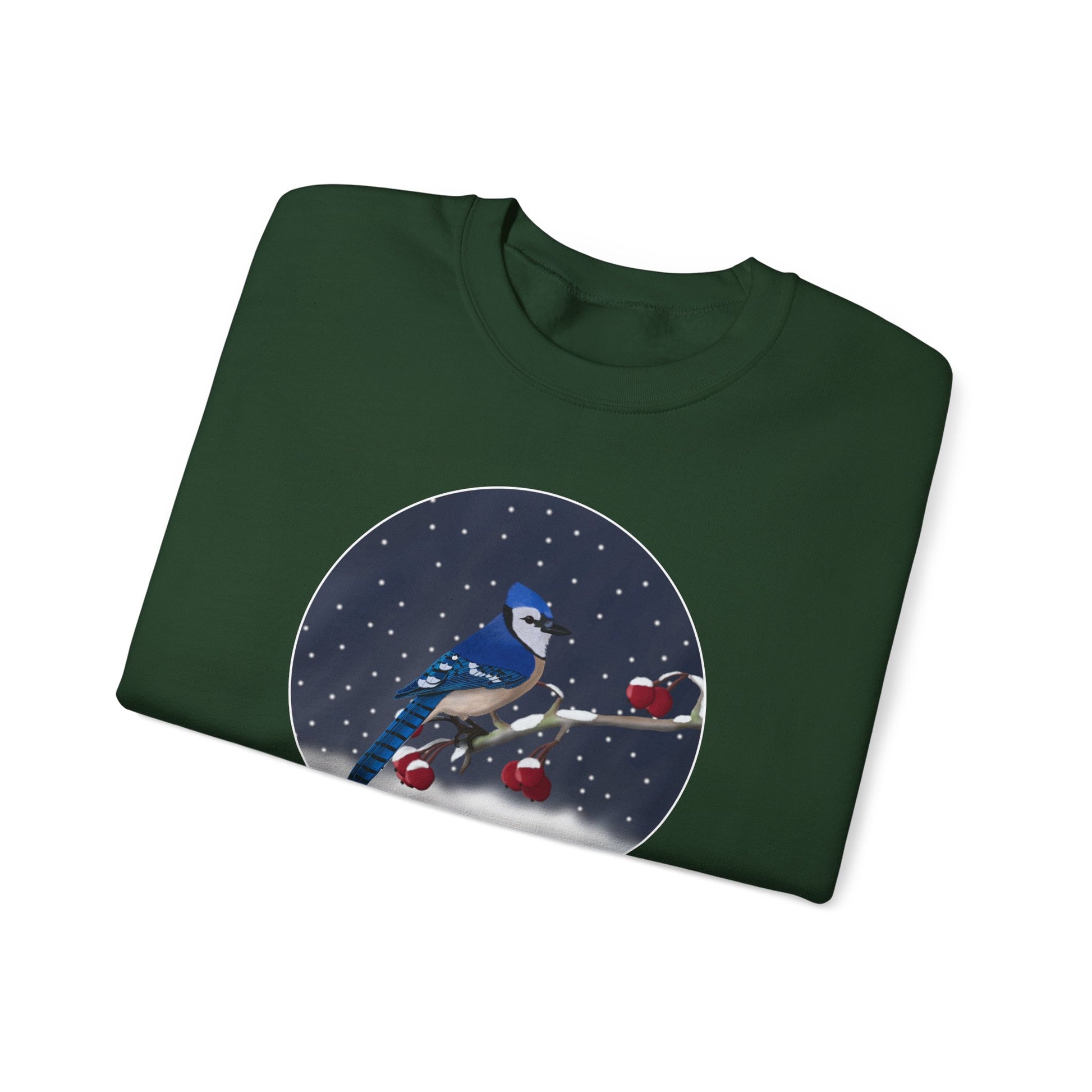 Blue Jay on a Winter Branch Christmas Bird Sweatshirt