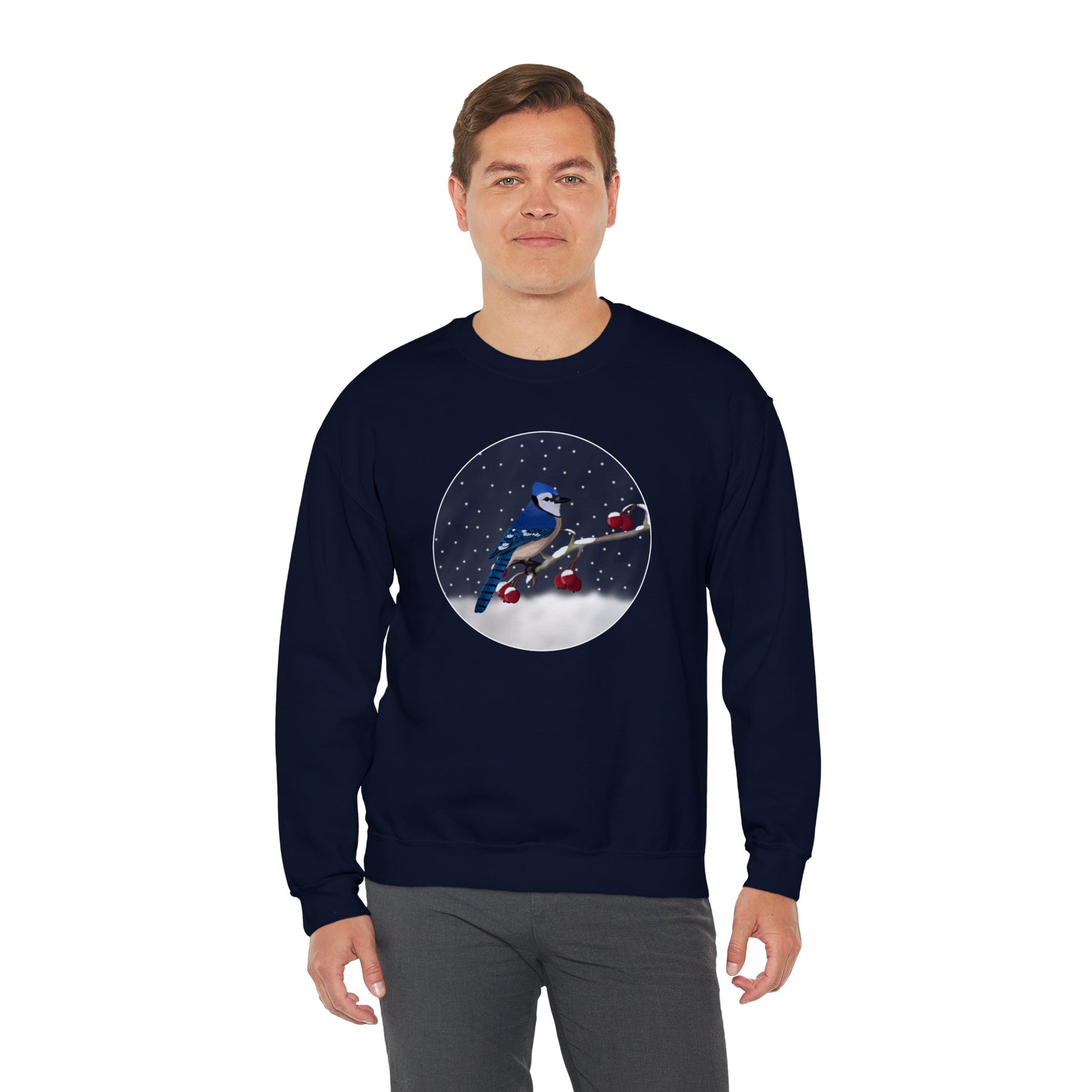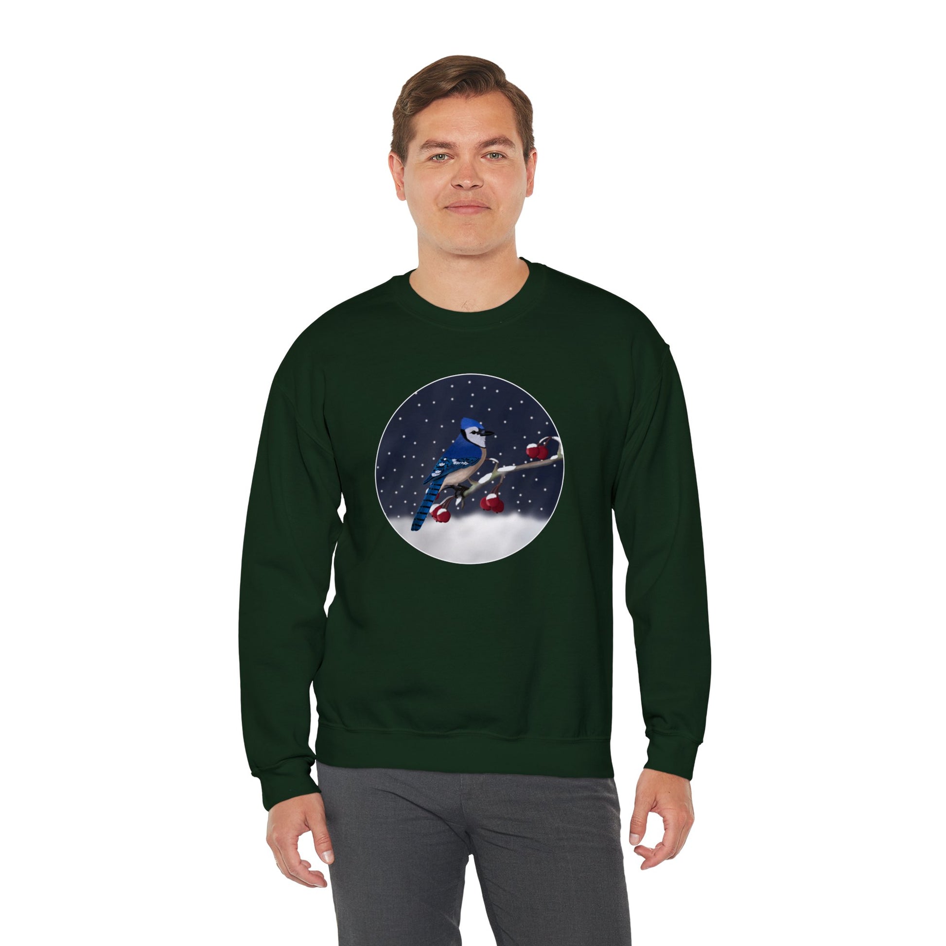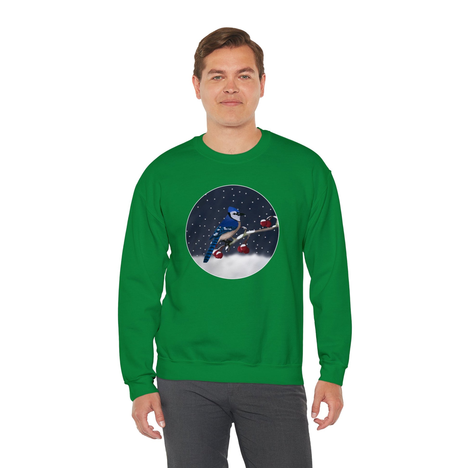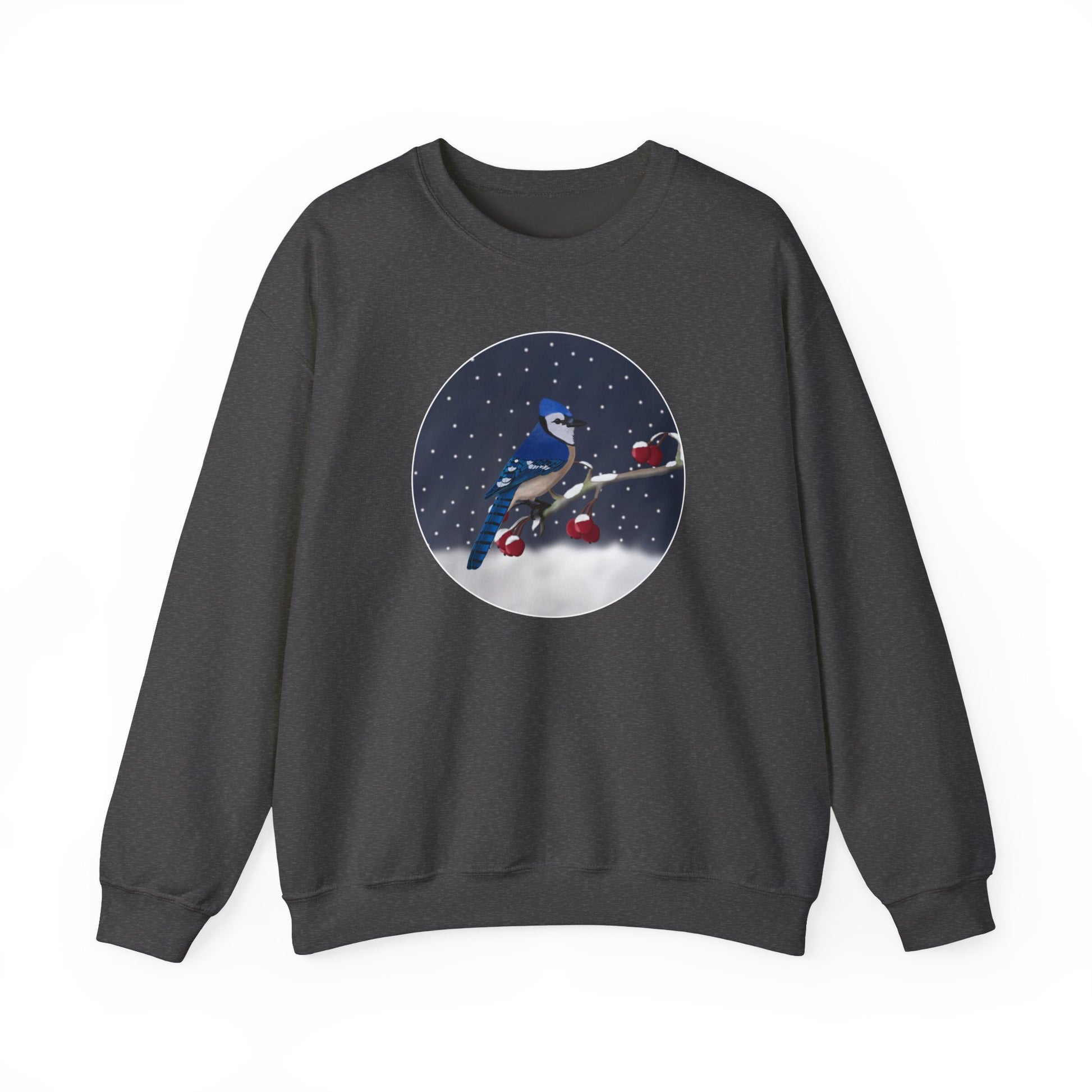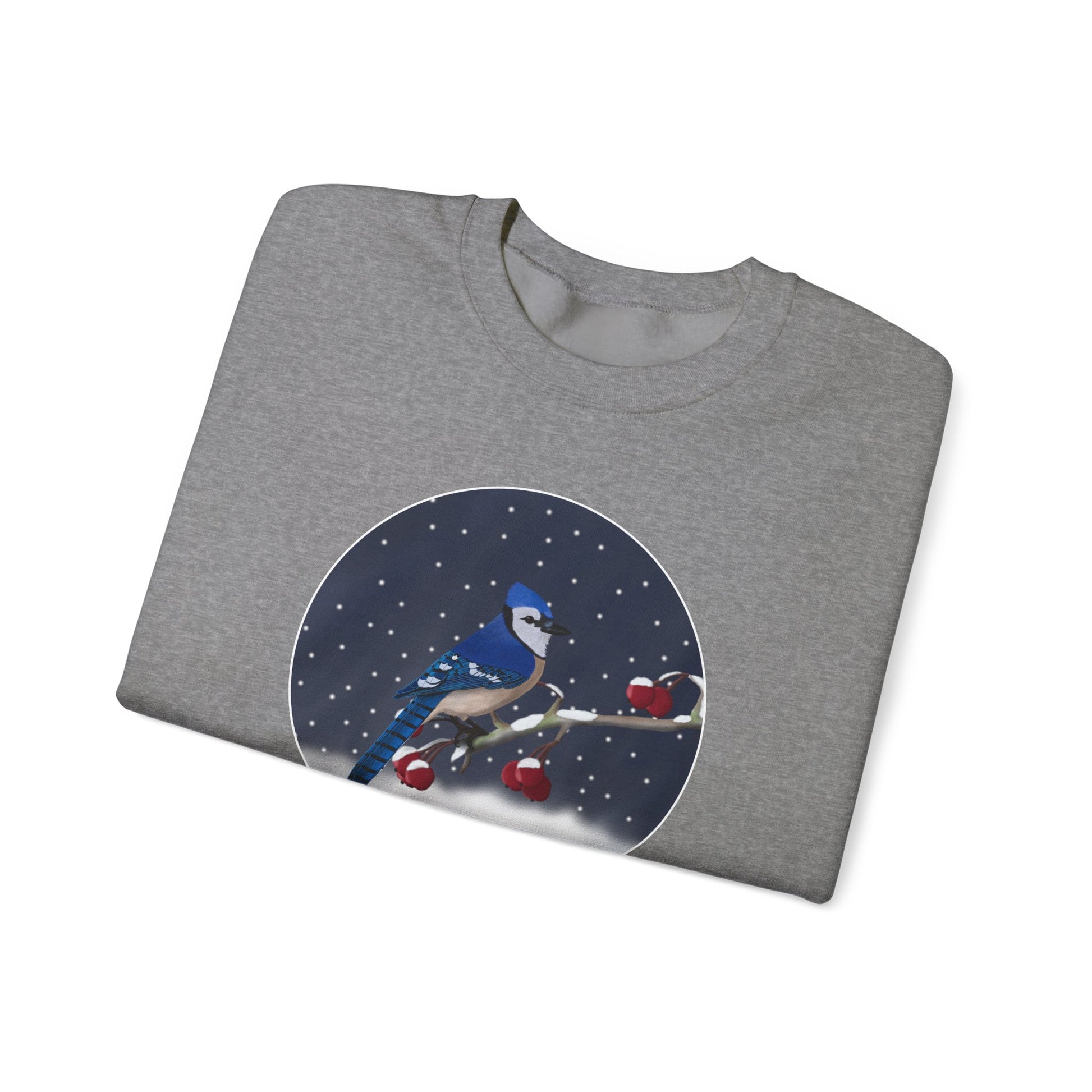Blue Jay on a Winter Branch Christmas Bird Sweatshirt