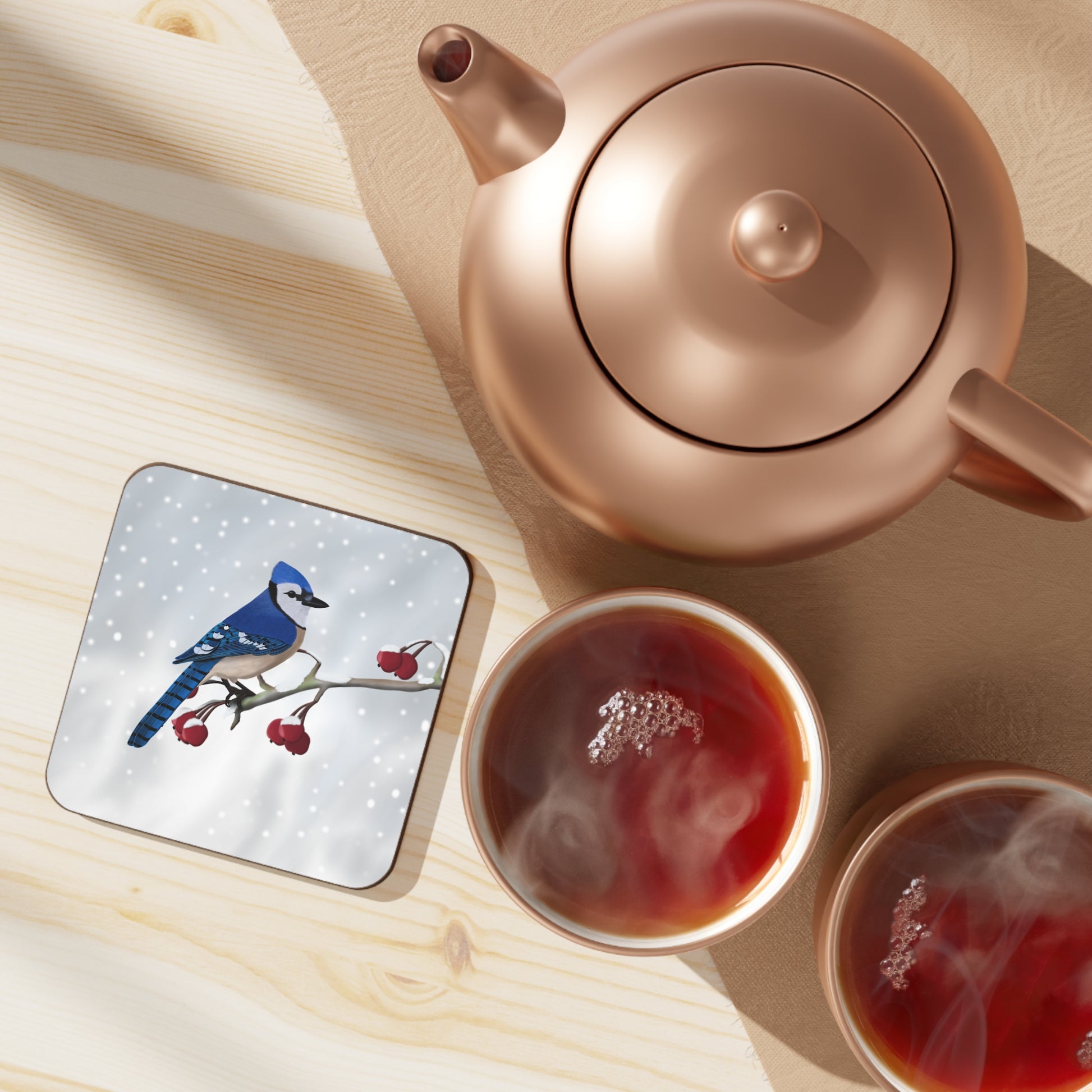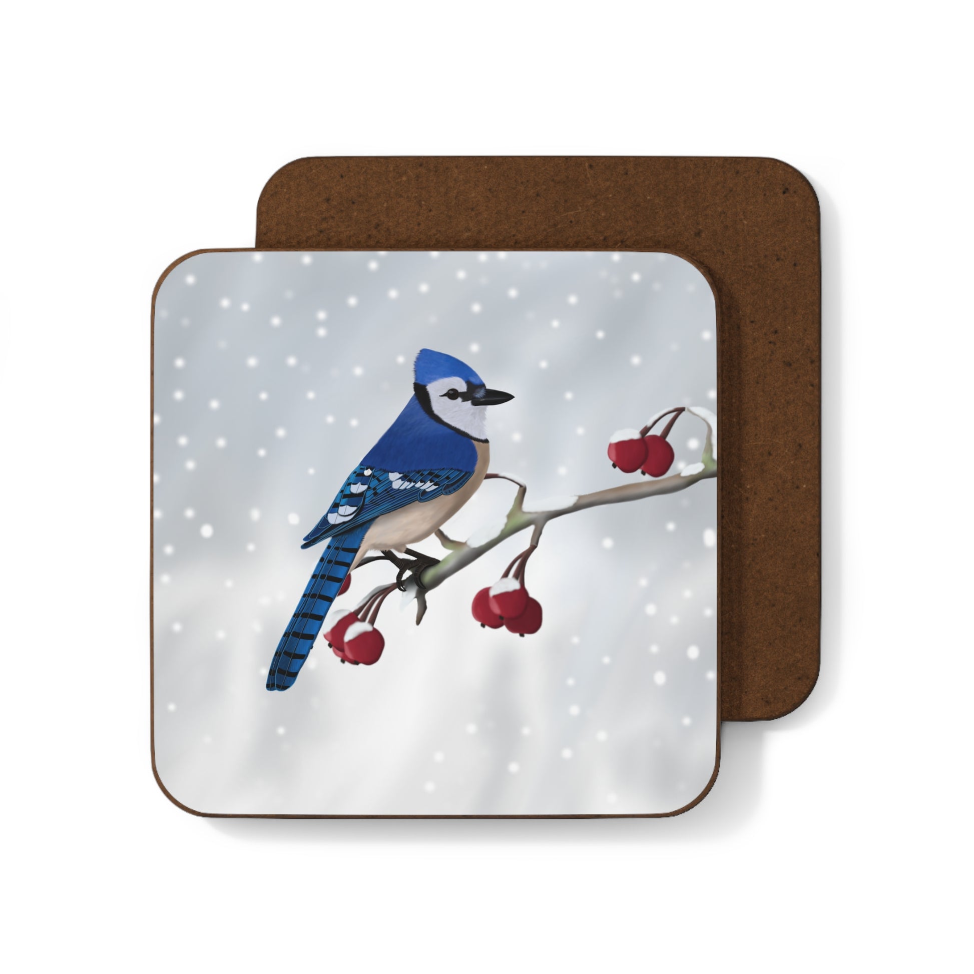 Blue Jay on a Winter Branch Christmas Bird Hardboard Coaster
