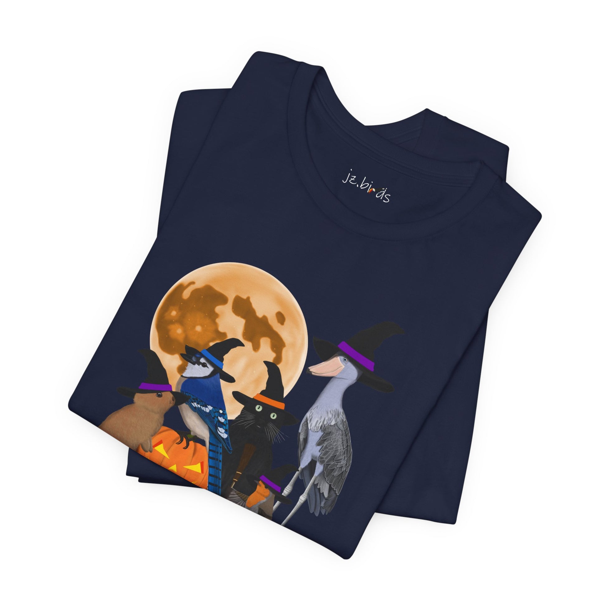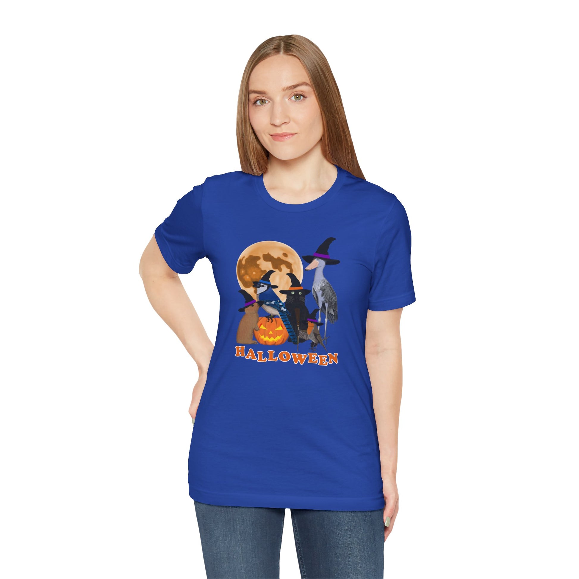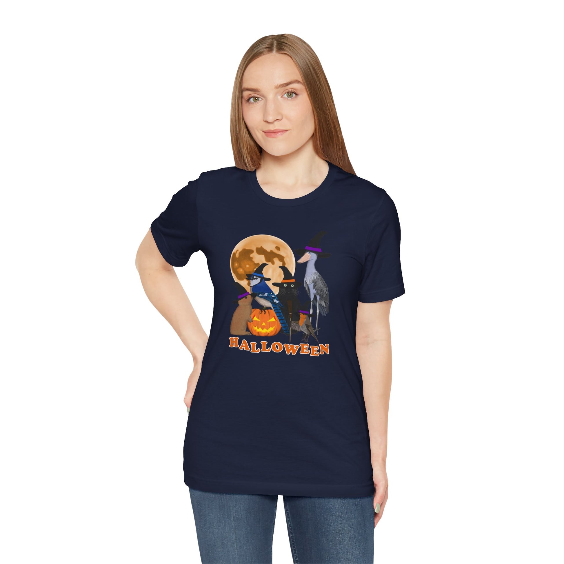 Blue Jay Robin Shoebill with Cat and Bunny Halloween Bird T-Shirt