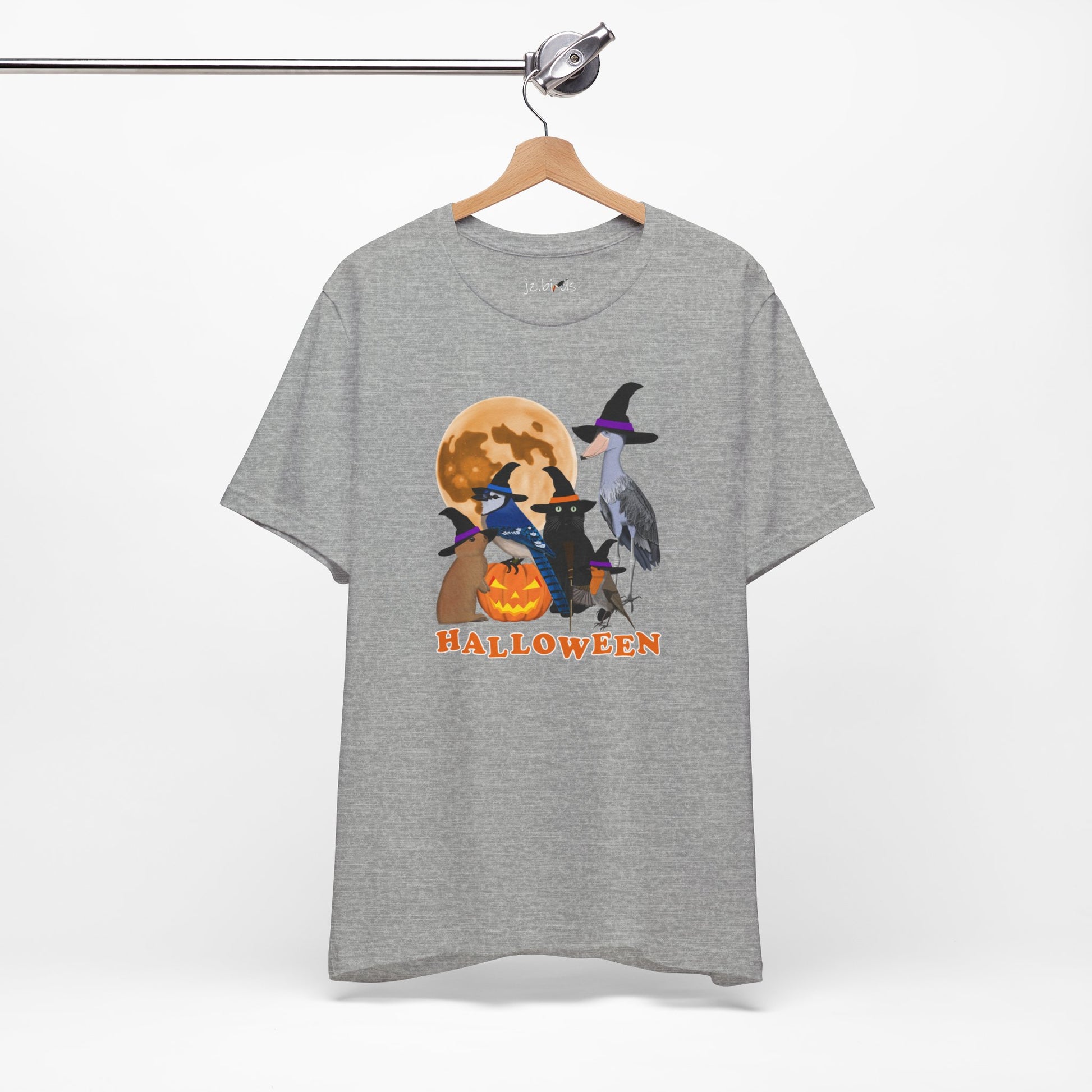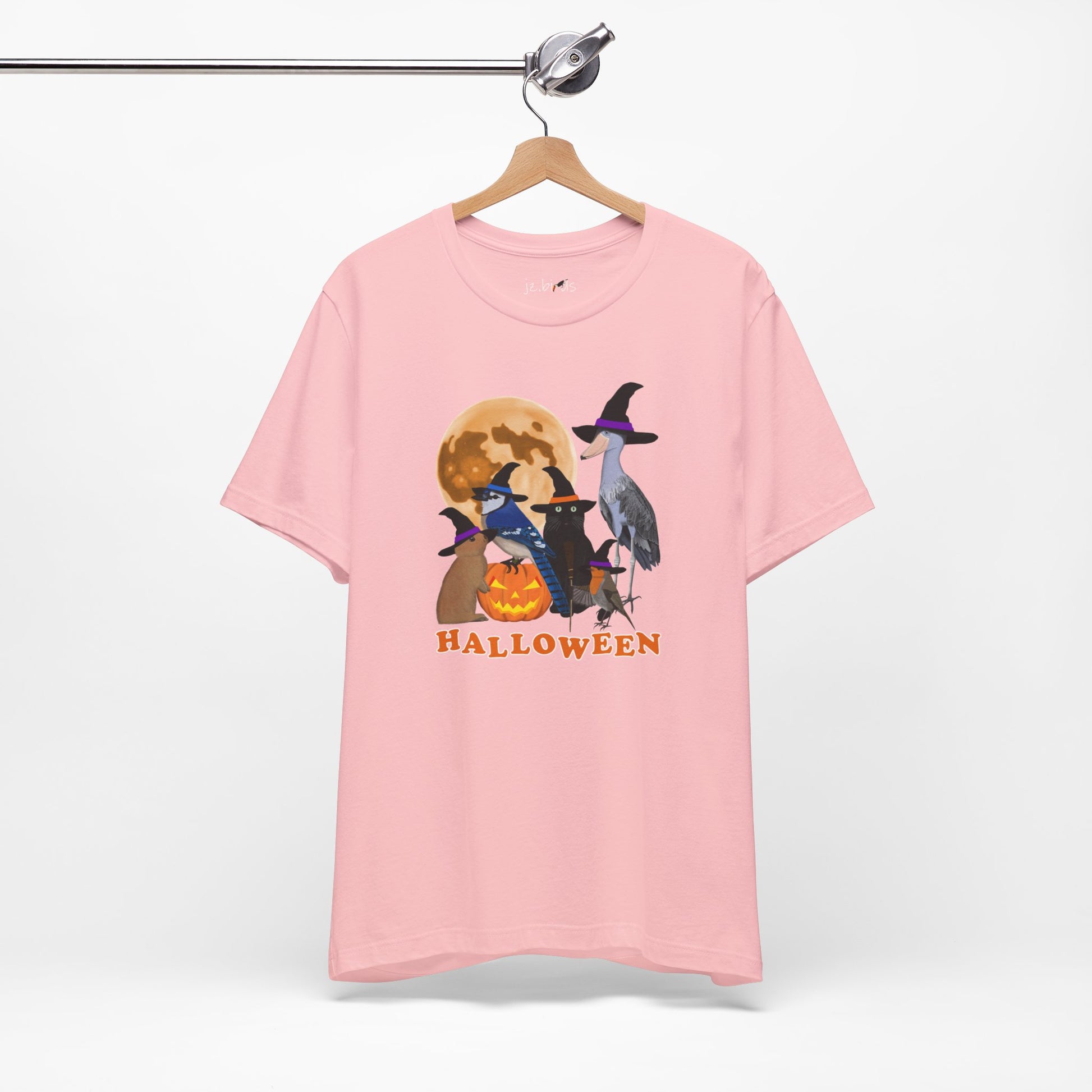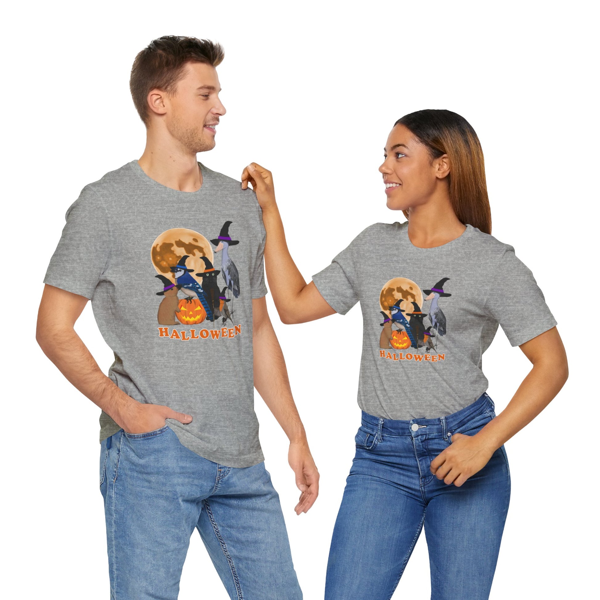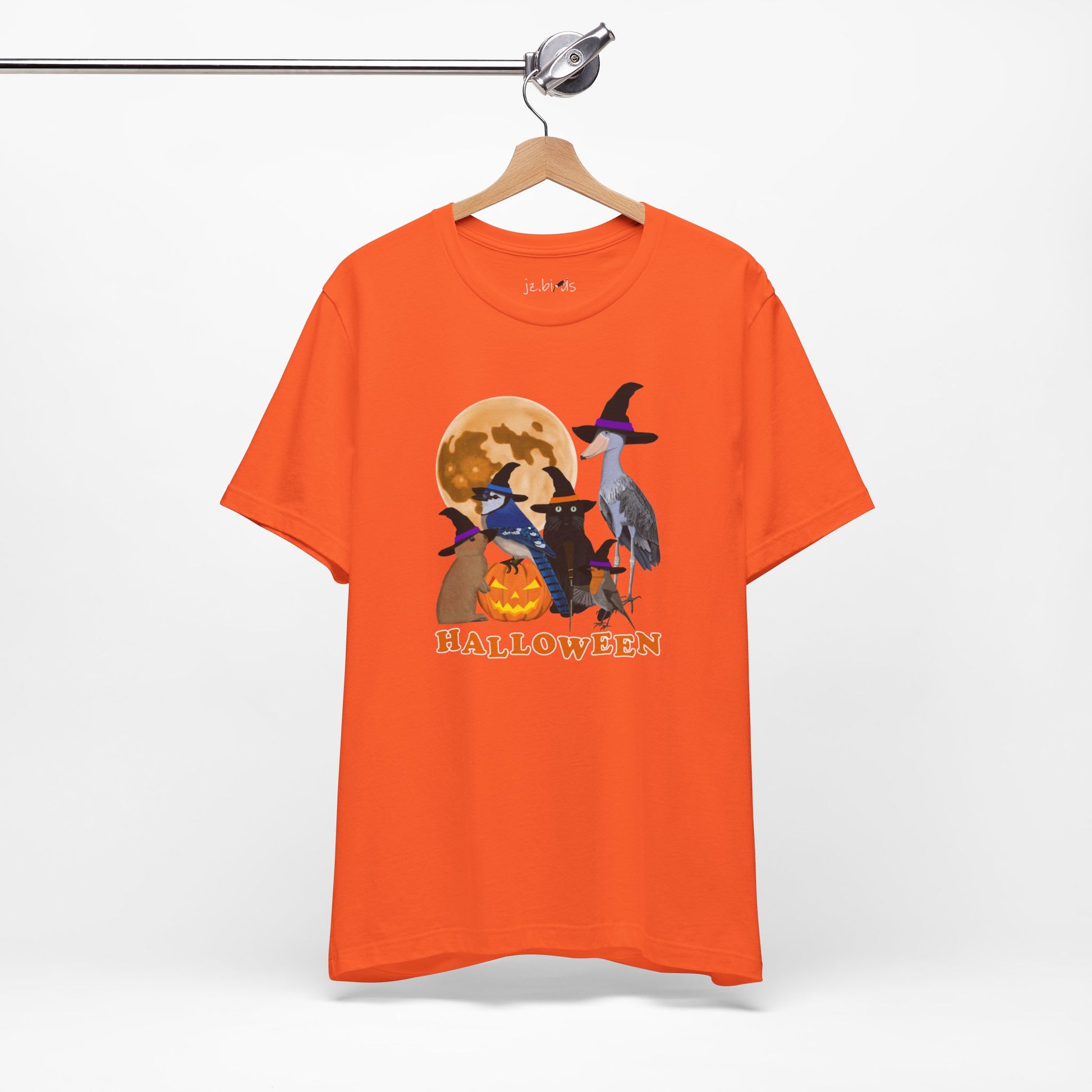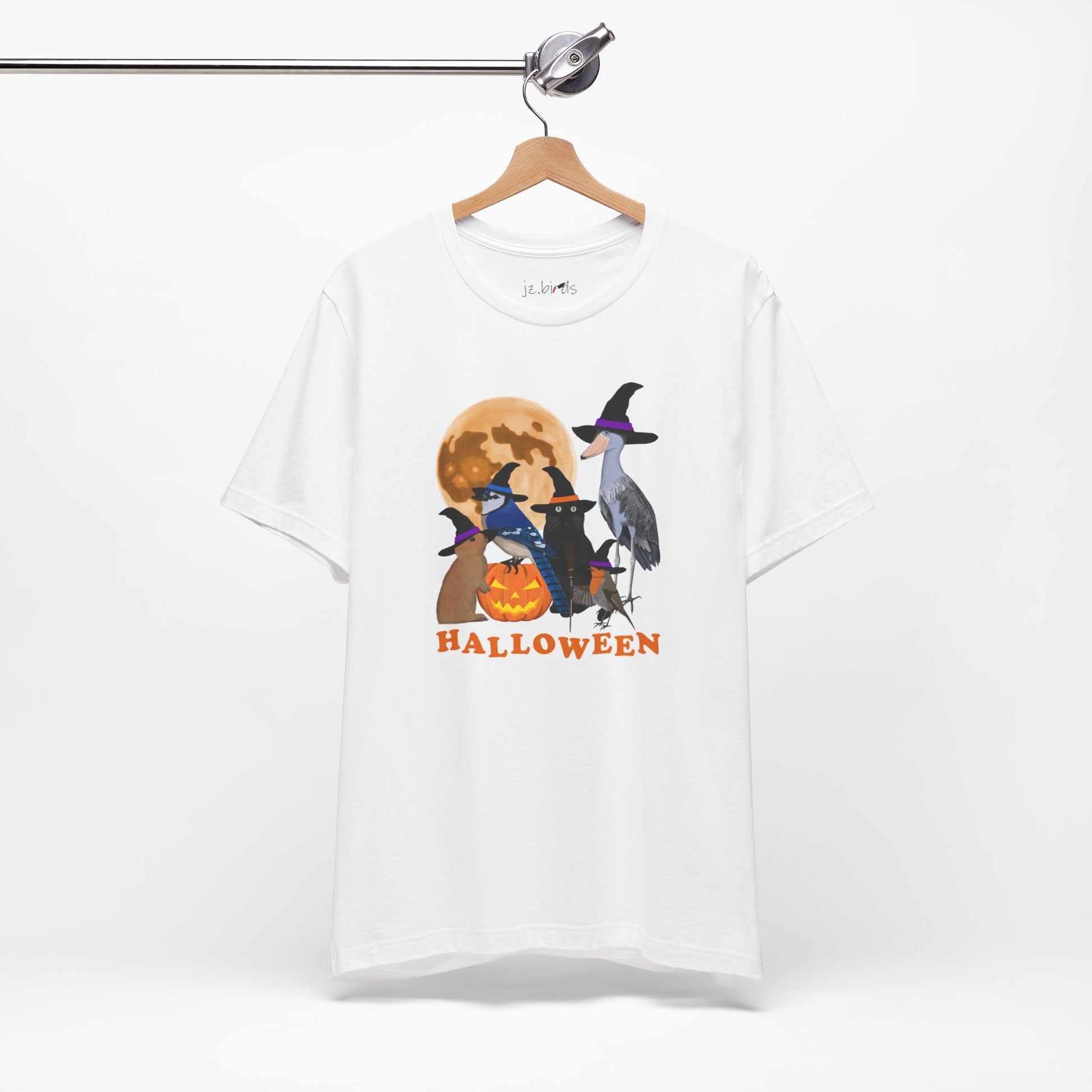 This Blue Jay, Robin, Shoebill with a Cat and Bunny Halloween bird t-shirt is a must-have for bird lovers. Featuring beautiful bird artwork, it's the perfect addition to any nature enthusiast's wardrobe. Made of high-quality material, this shirt is both comfortable and stylish. Show your love for birds and stand out in any crowd with this unique and eye-catching Halloween t-shirt.