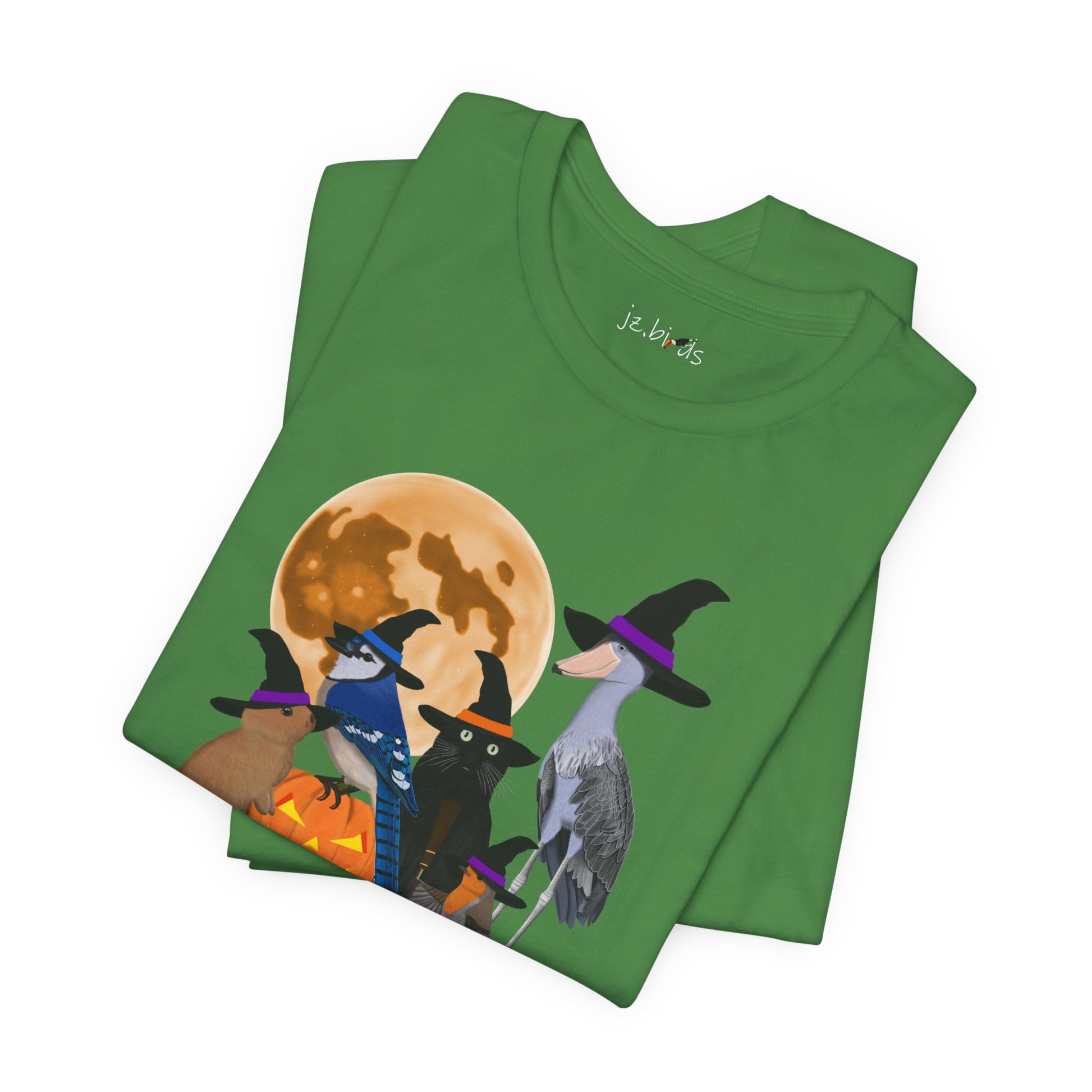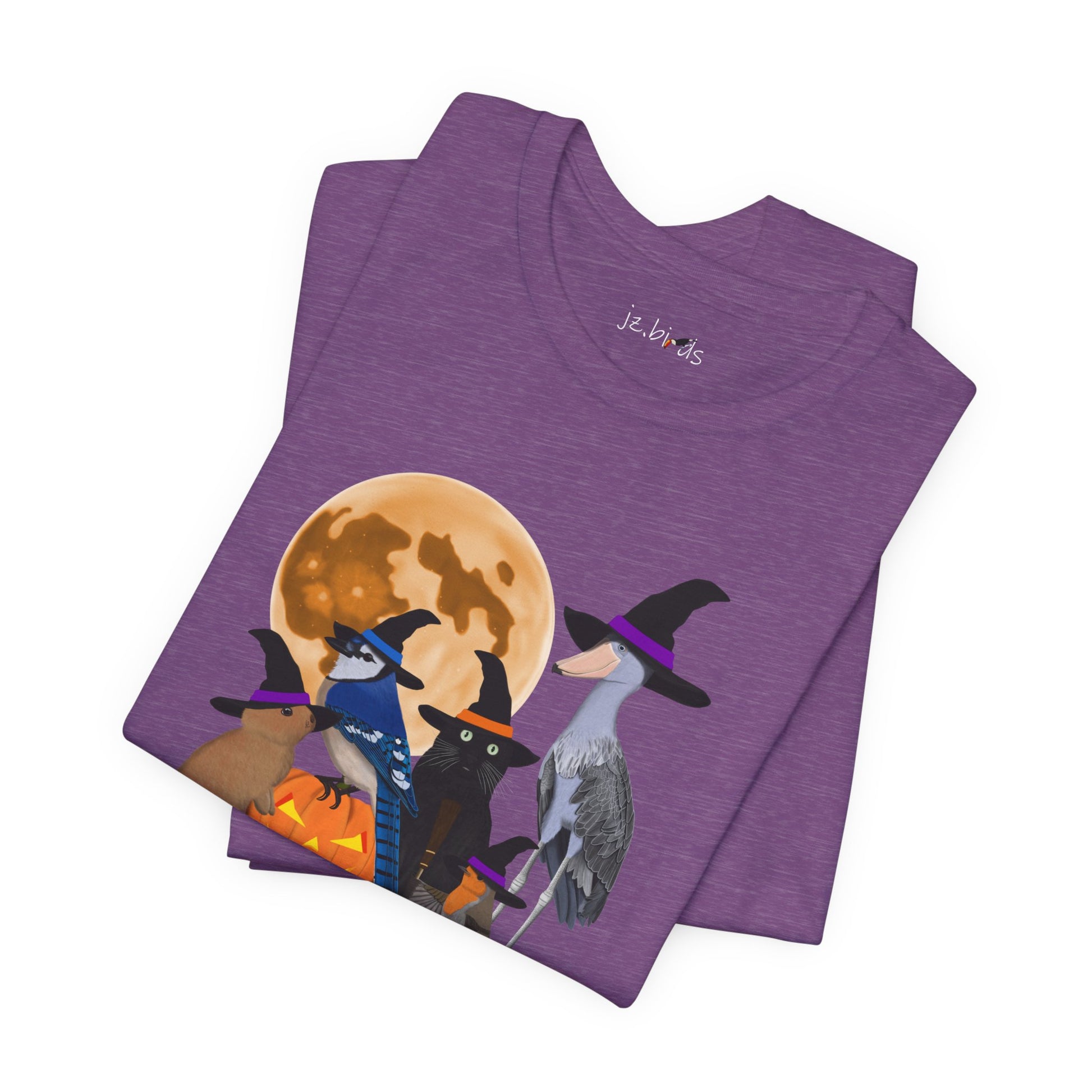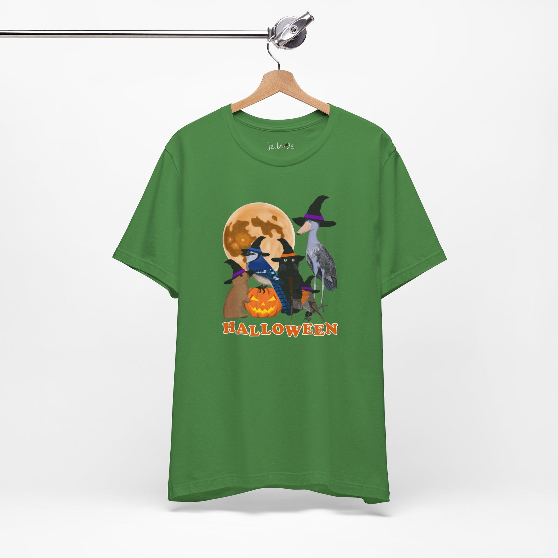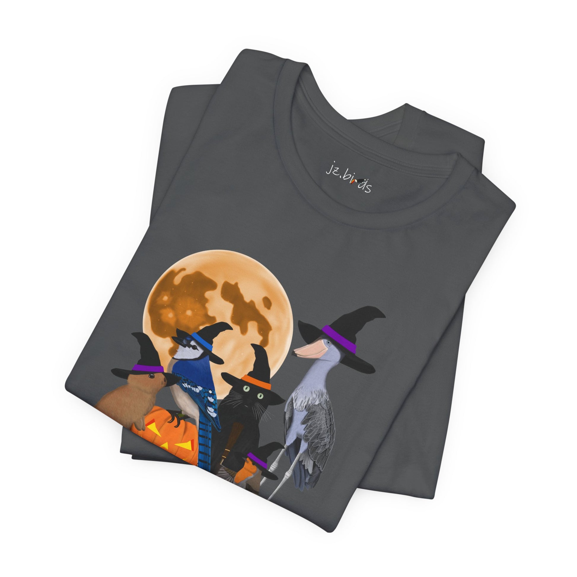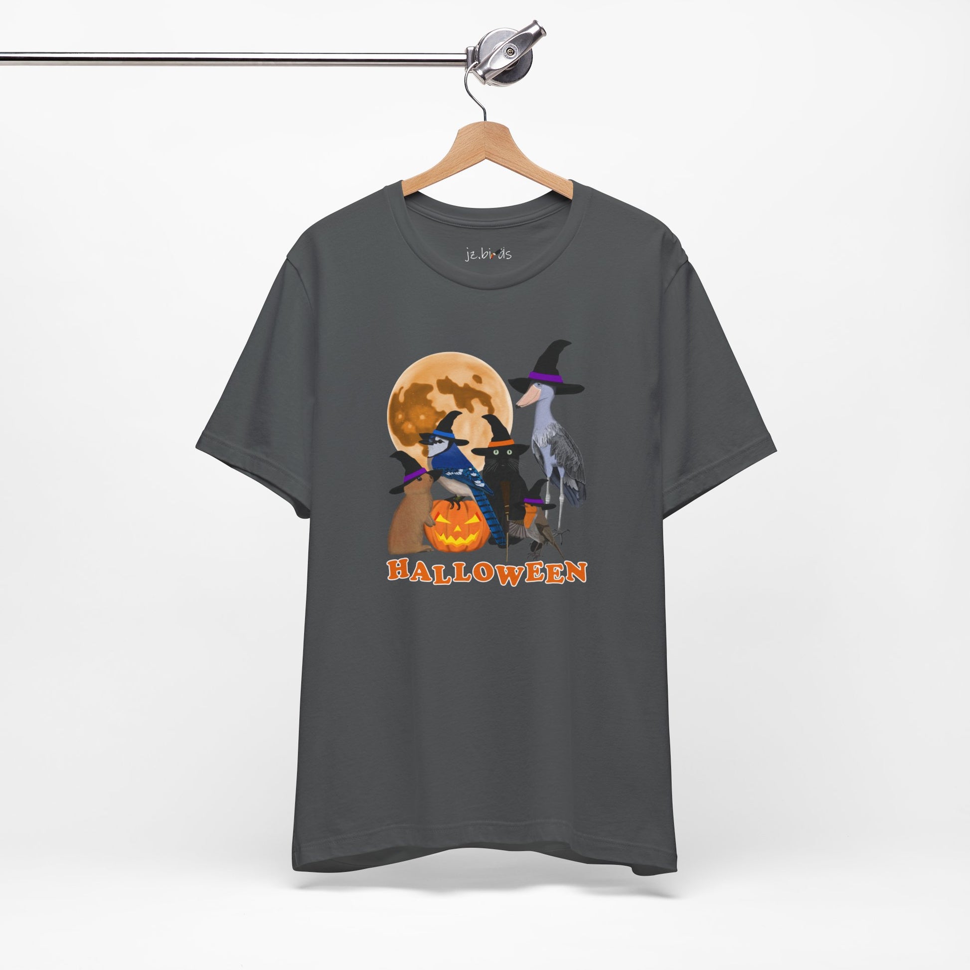 This Blue Jay, Robin, Shoebill with a Cat and Bunny Halloween bird t-shirt is a must-have for bird lovers. Featuring beautiful bird artwork, it's the perfect addition to any nature enthusiast's wardrobe. Made of high-quality material, this shirt is both comfortable and stylish. Show your love for birds and stand out in any crowd with this unique and eye-catching Halloween t-shirt.