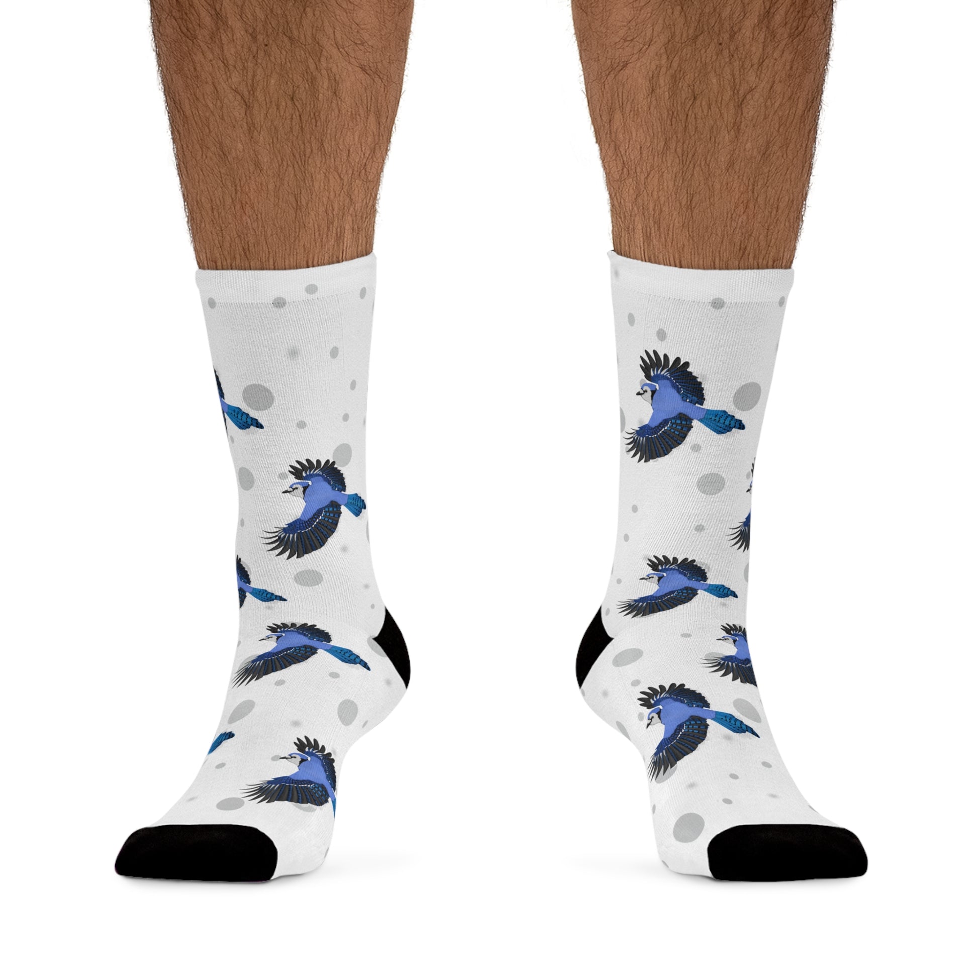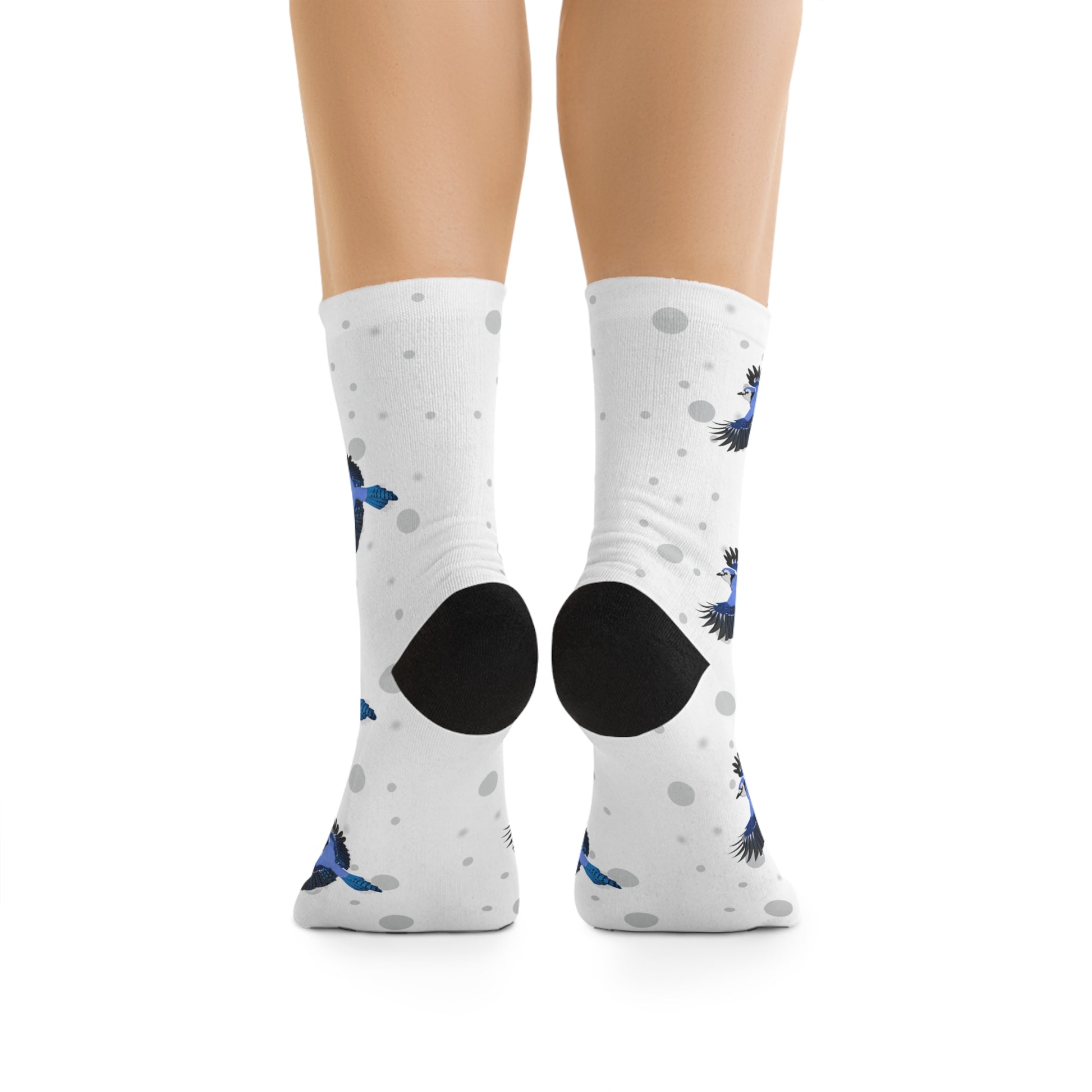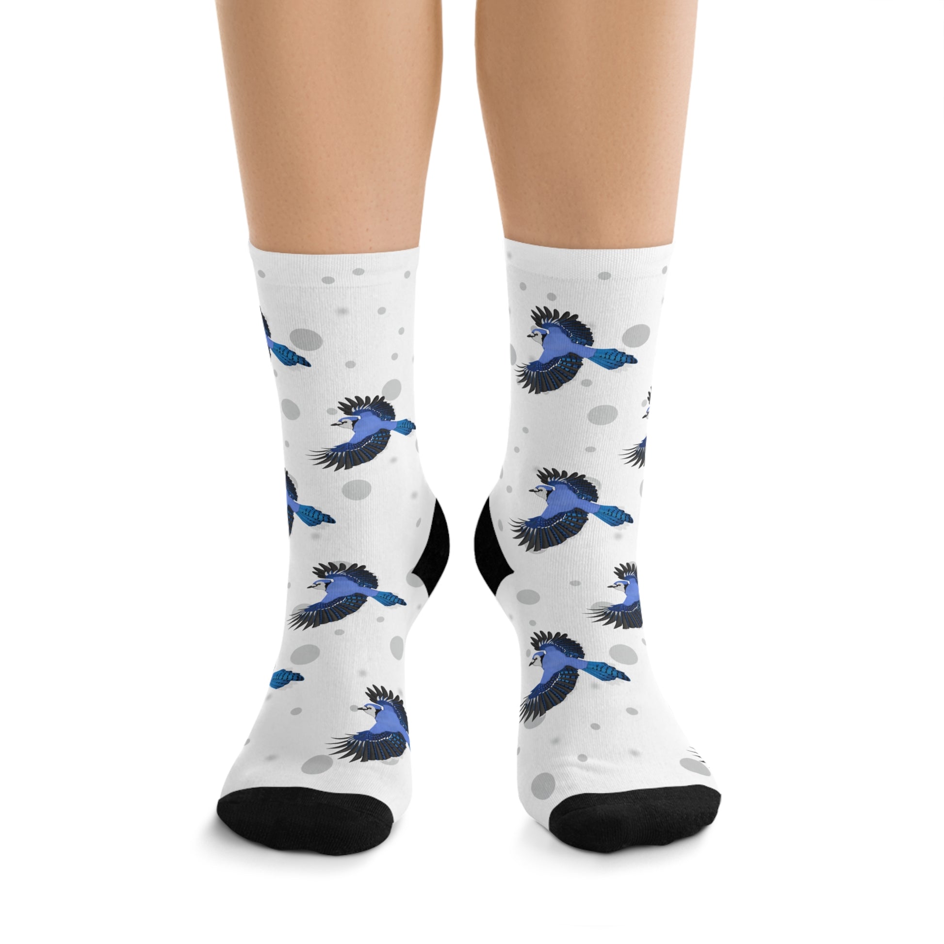 Blue Jay Socks White Bird Socks for Bird Lovers One Size