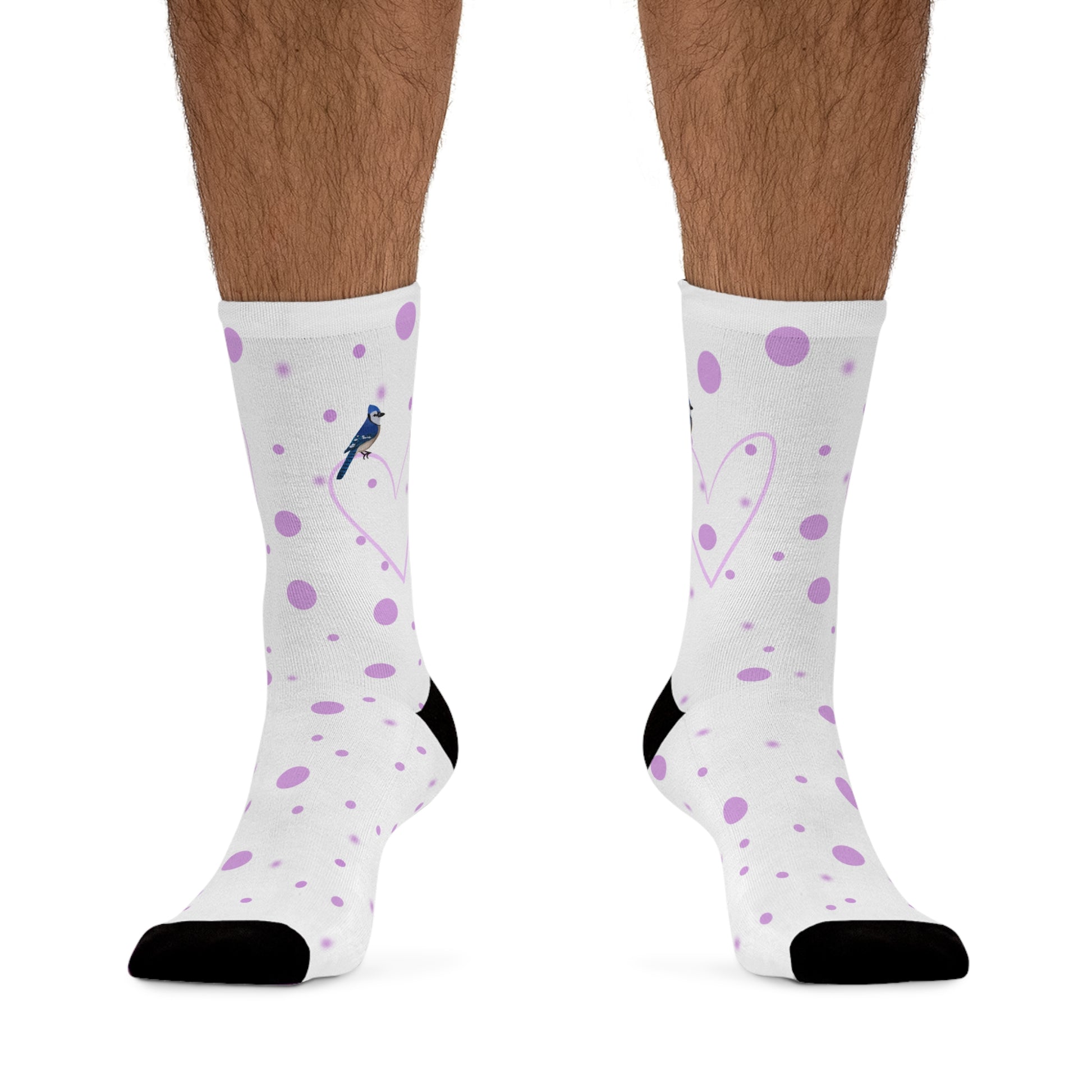 Blue Jay Valentine's Day Pink Heart and Dots Bird Socks White