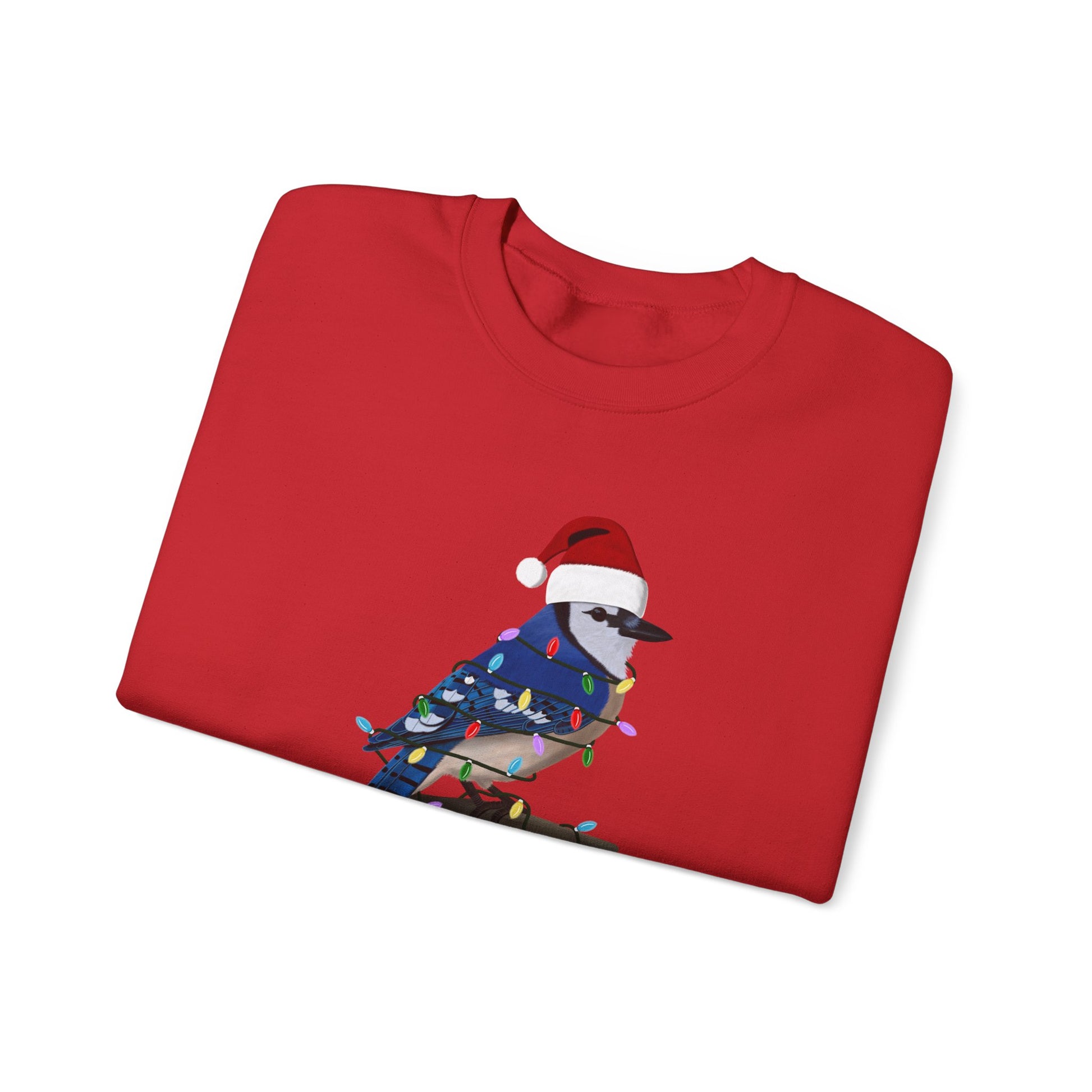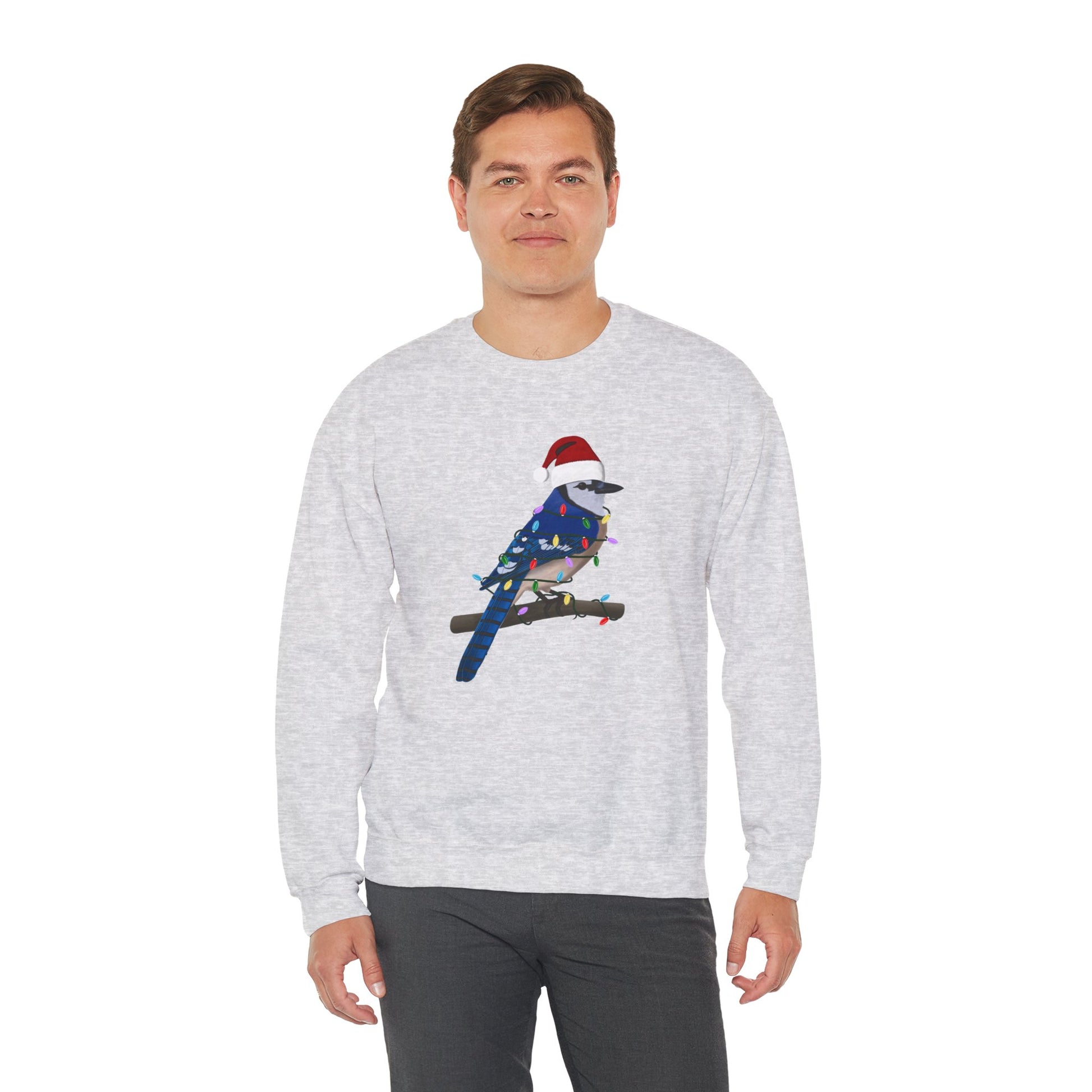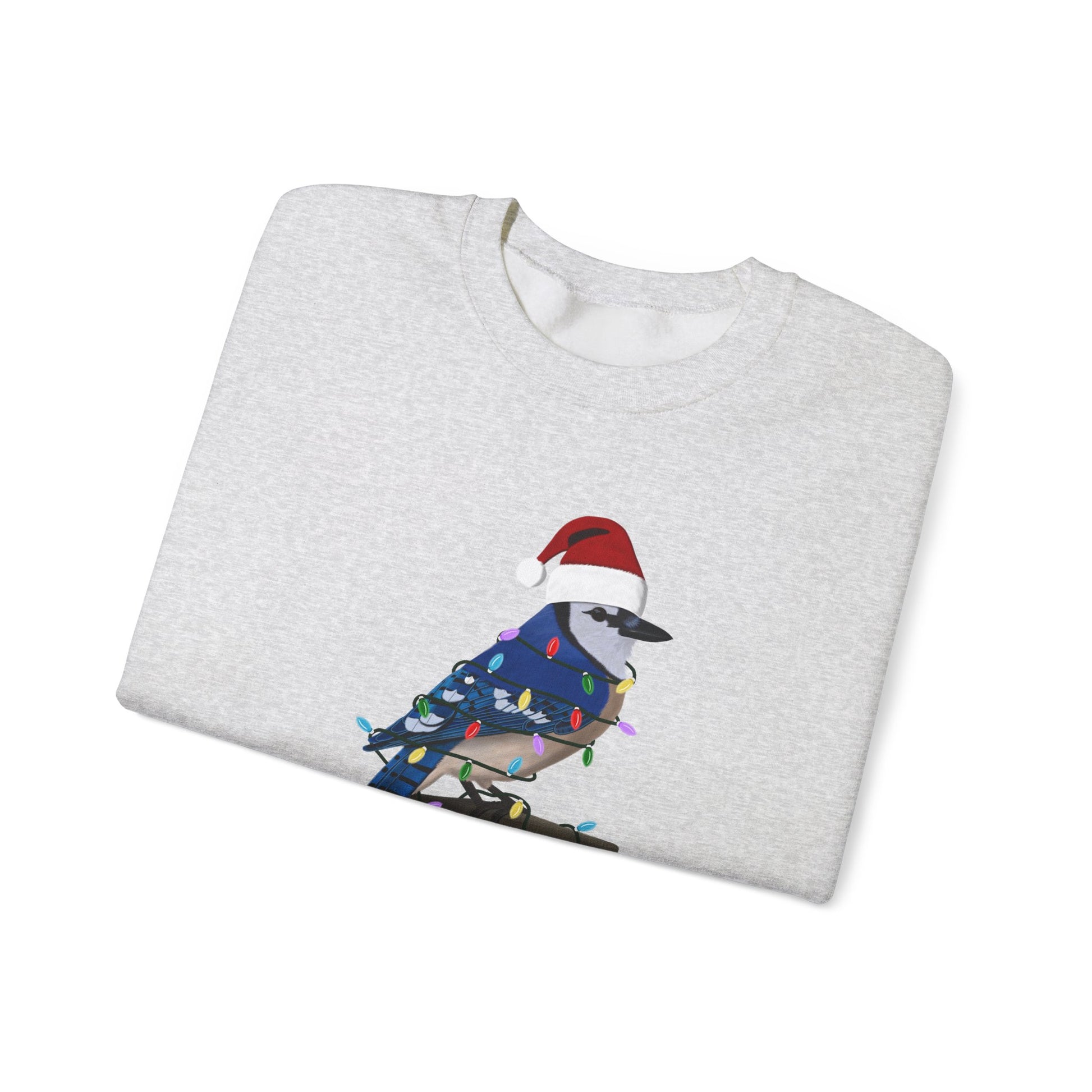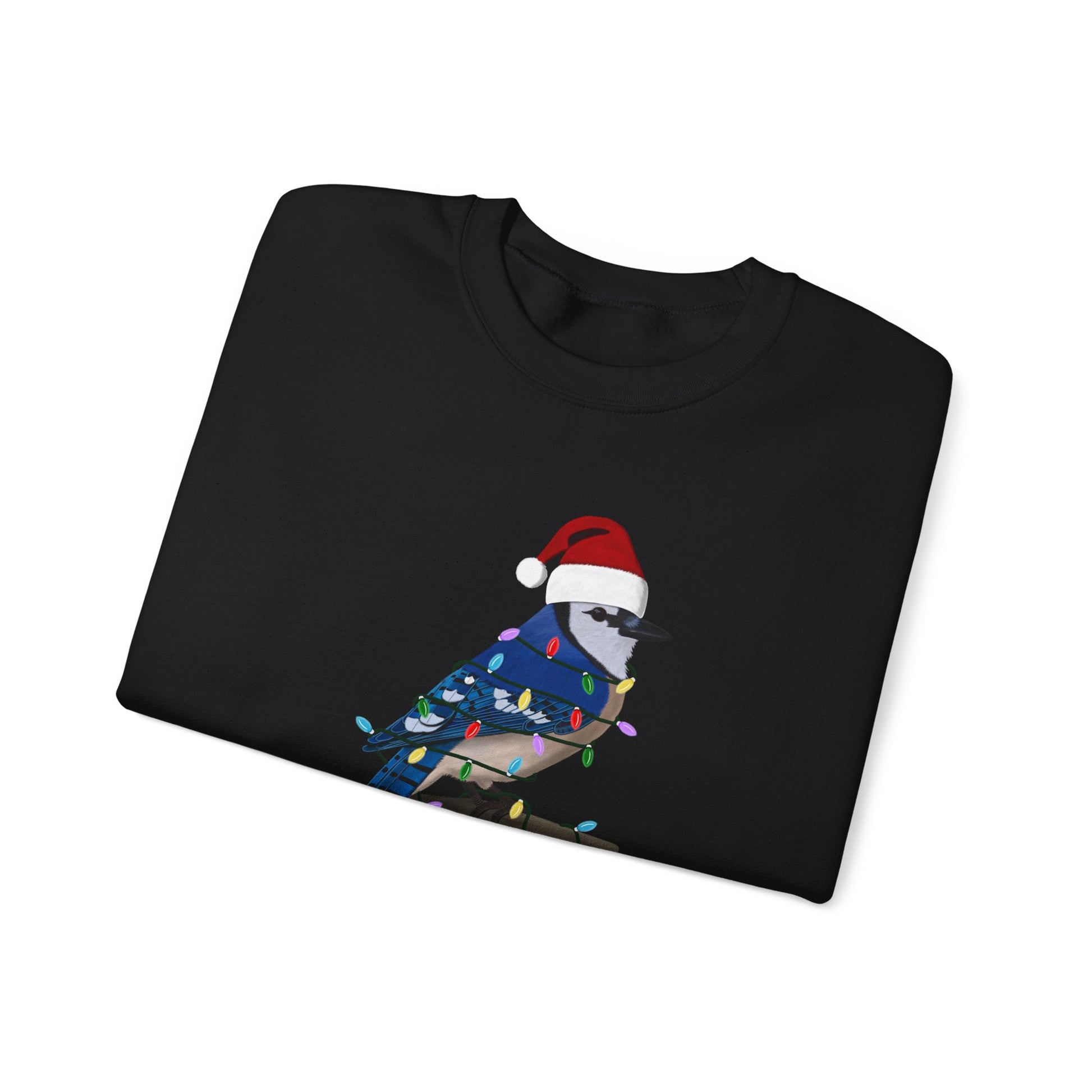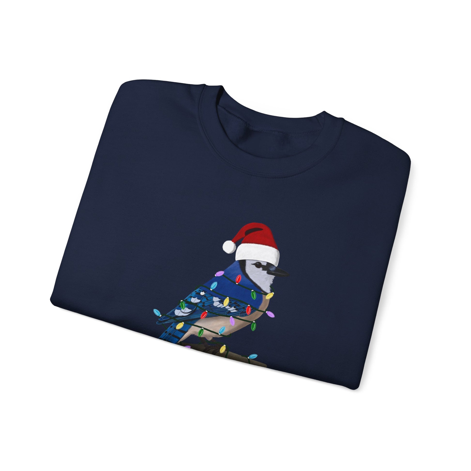 Blue Jay with Fairy Lights Santa Claus Christmas Bird Sweatshirt