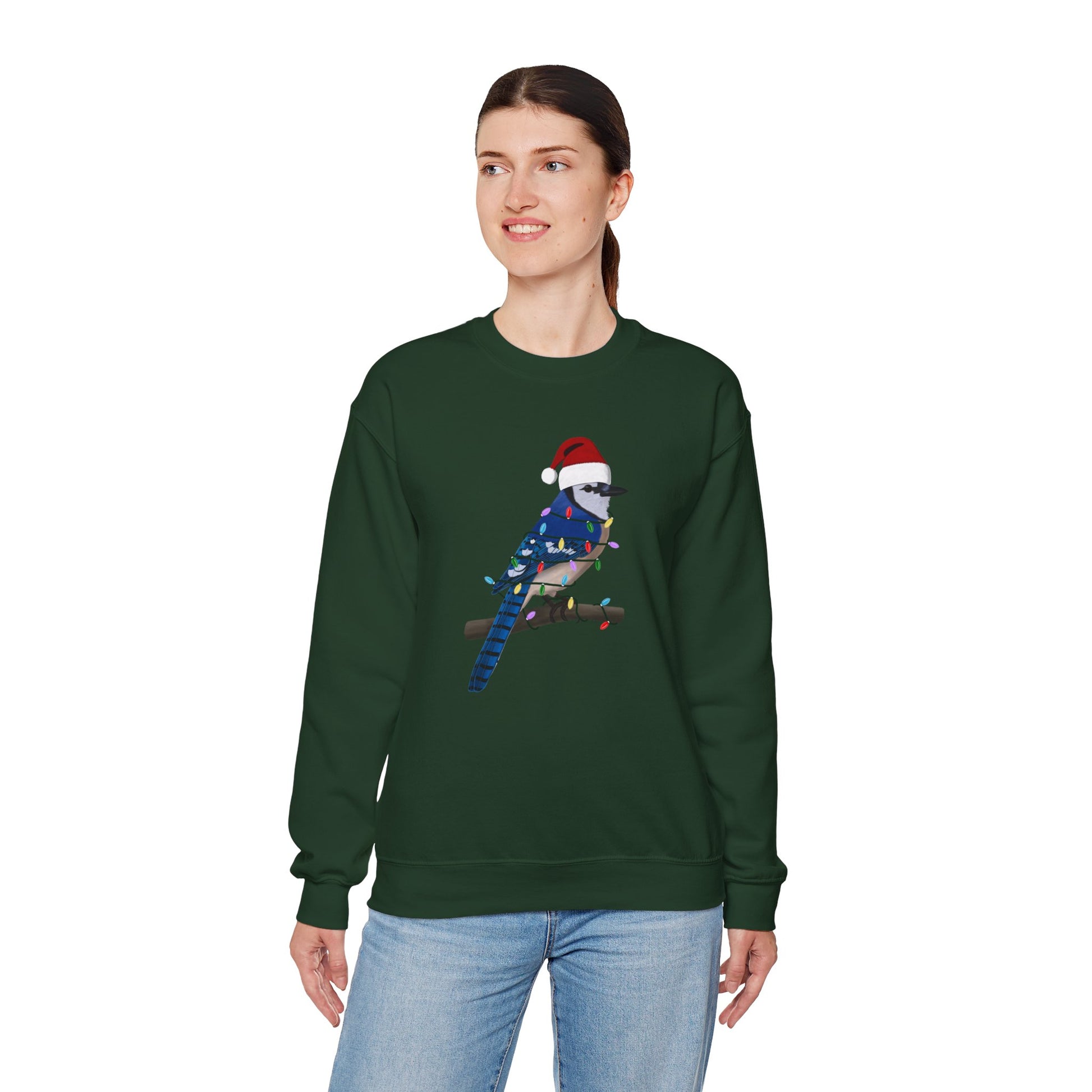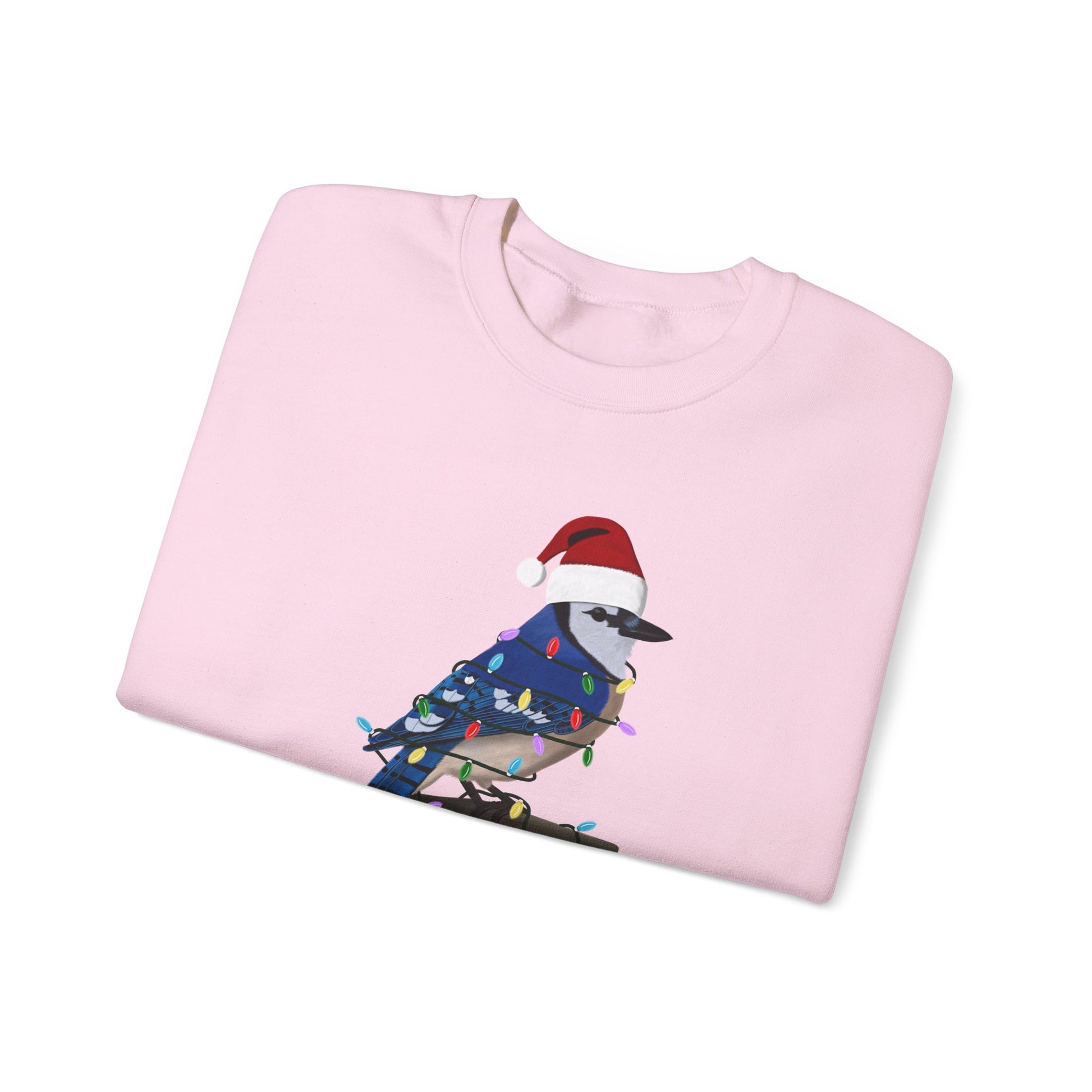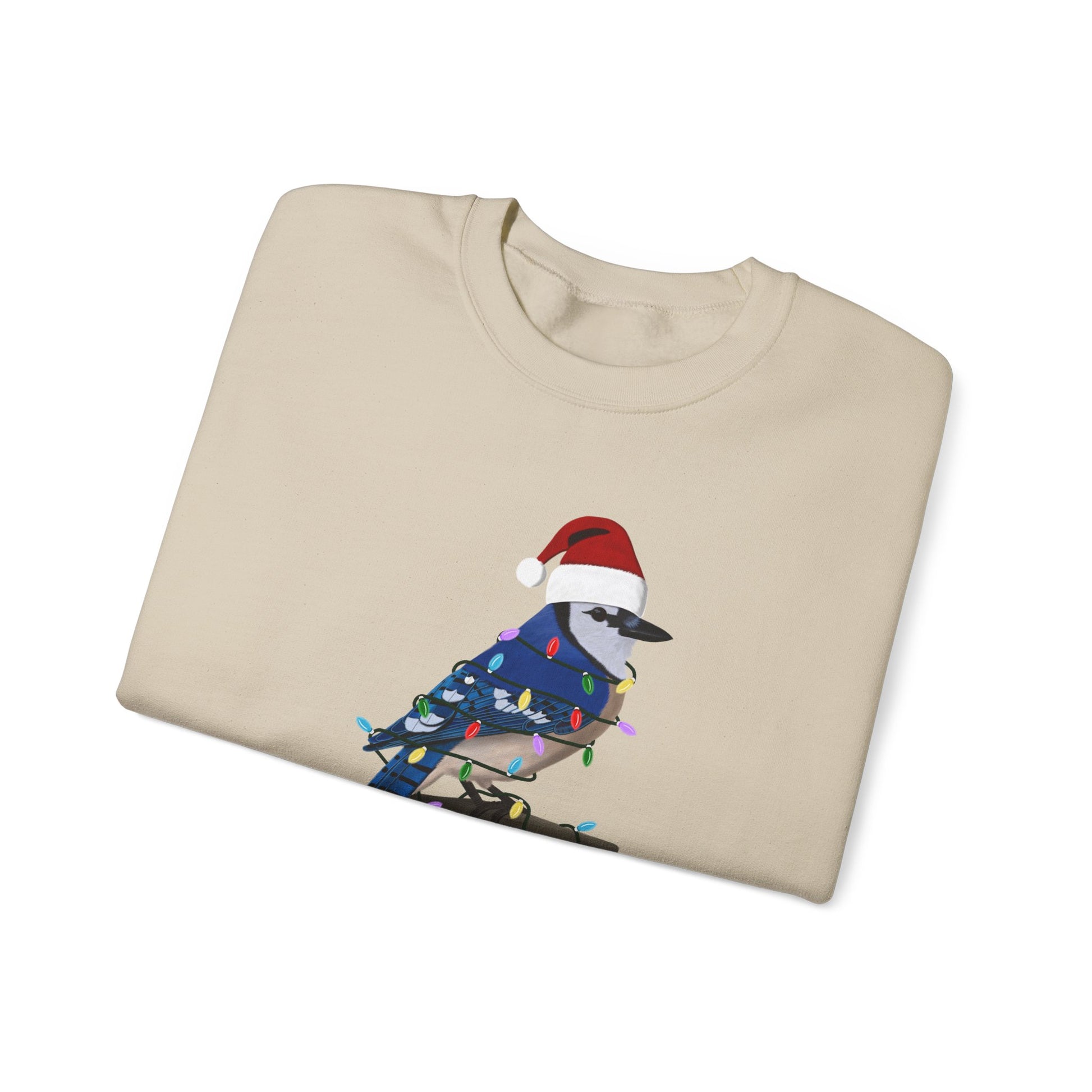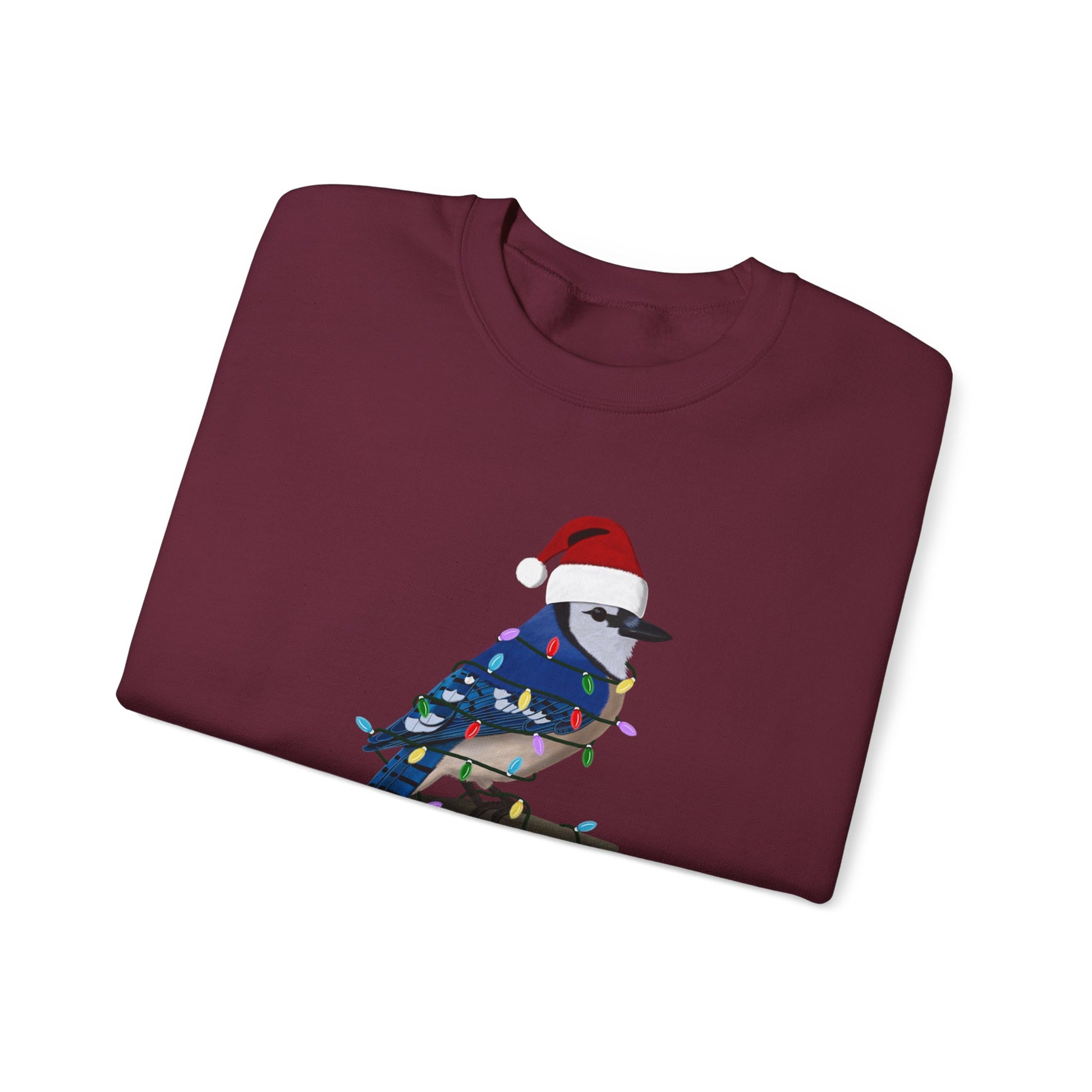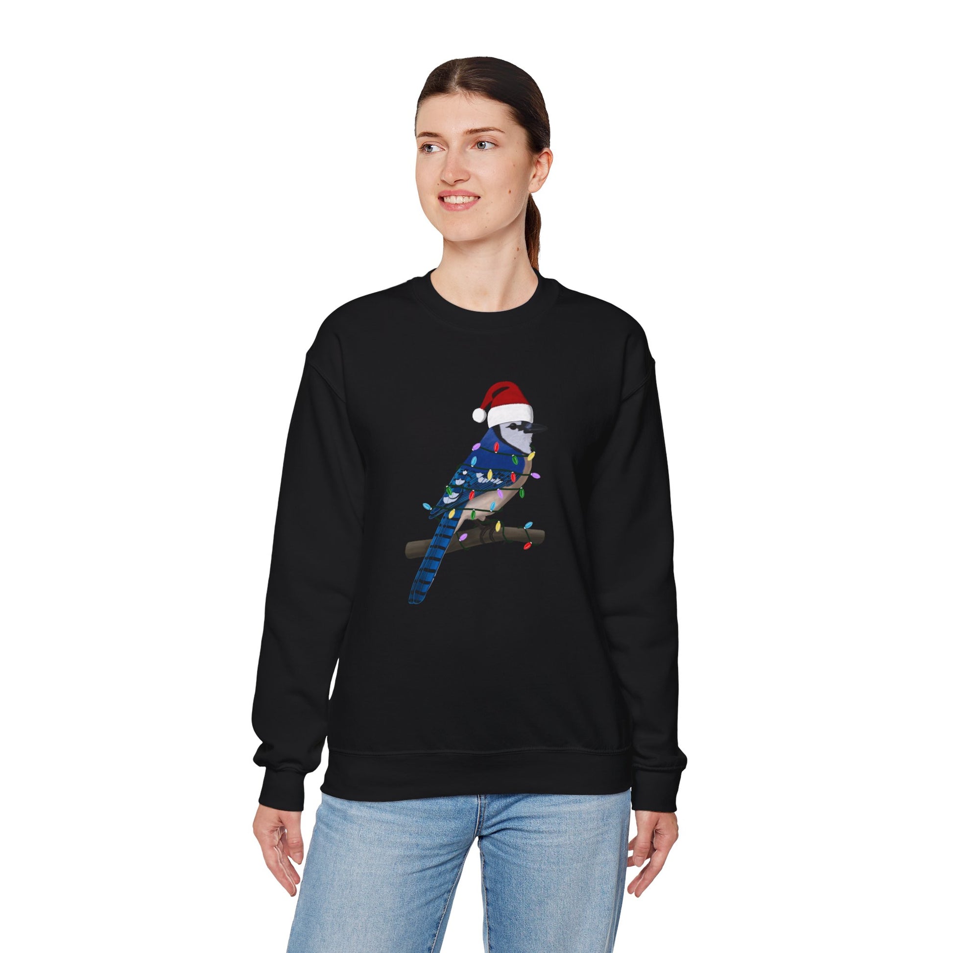 Blue Jay with Fairy Lights Santa Claus Christmas Bird Sweatshirt