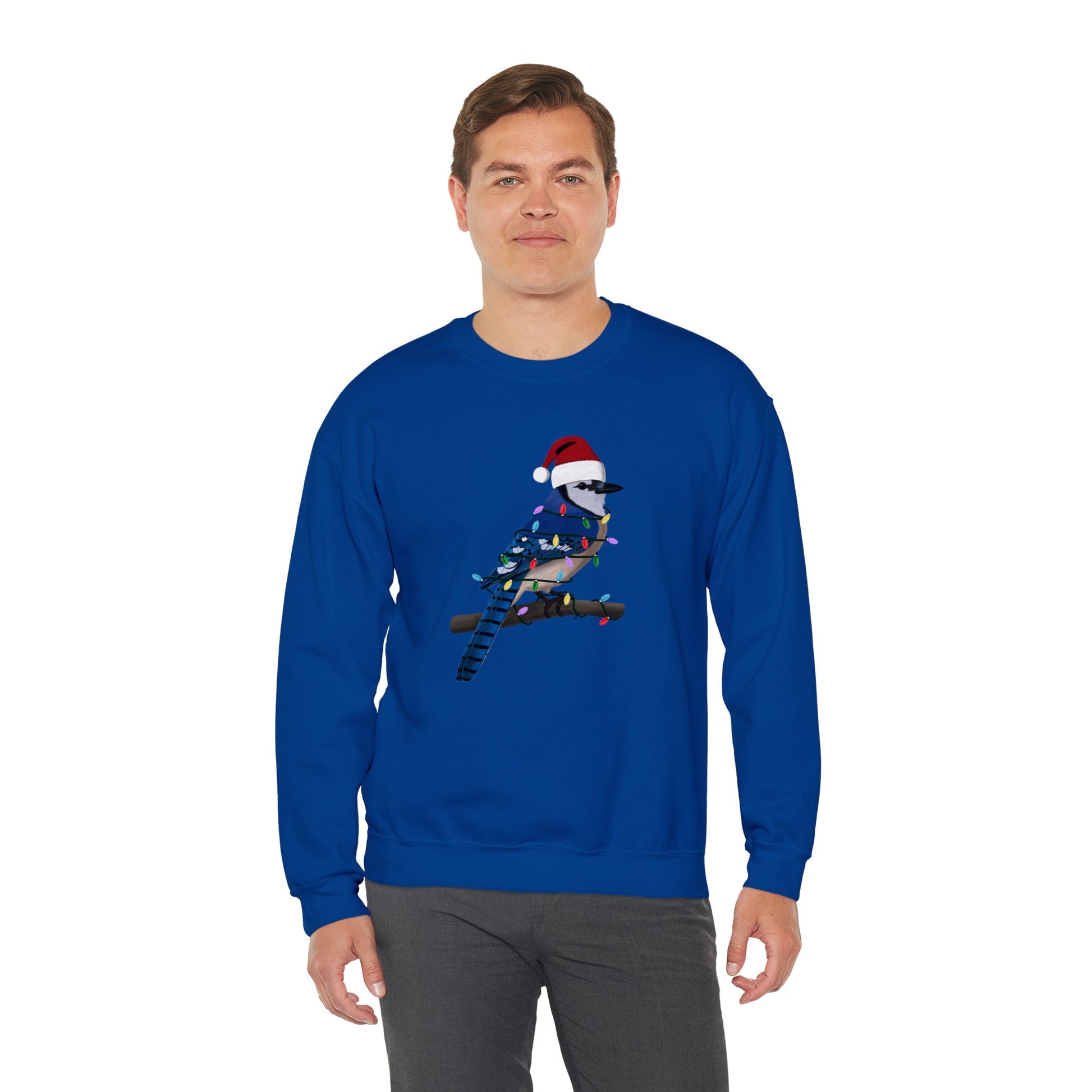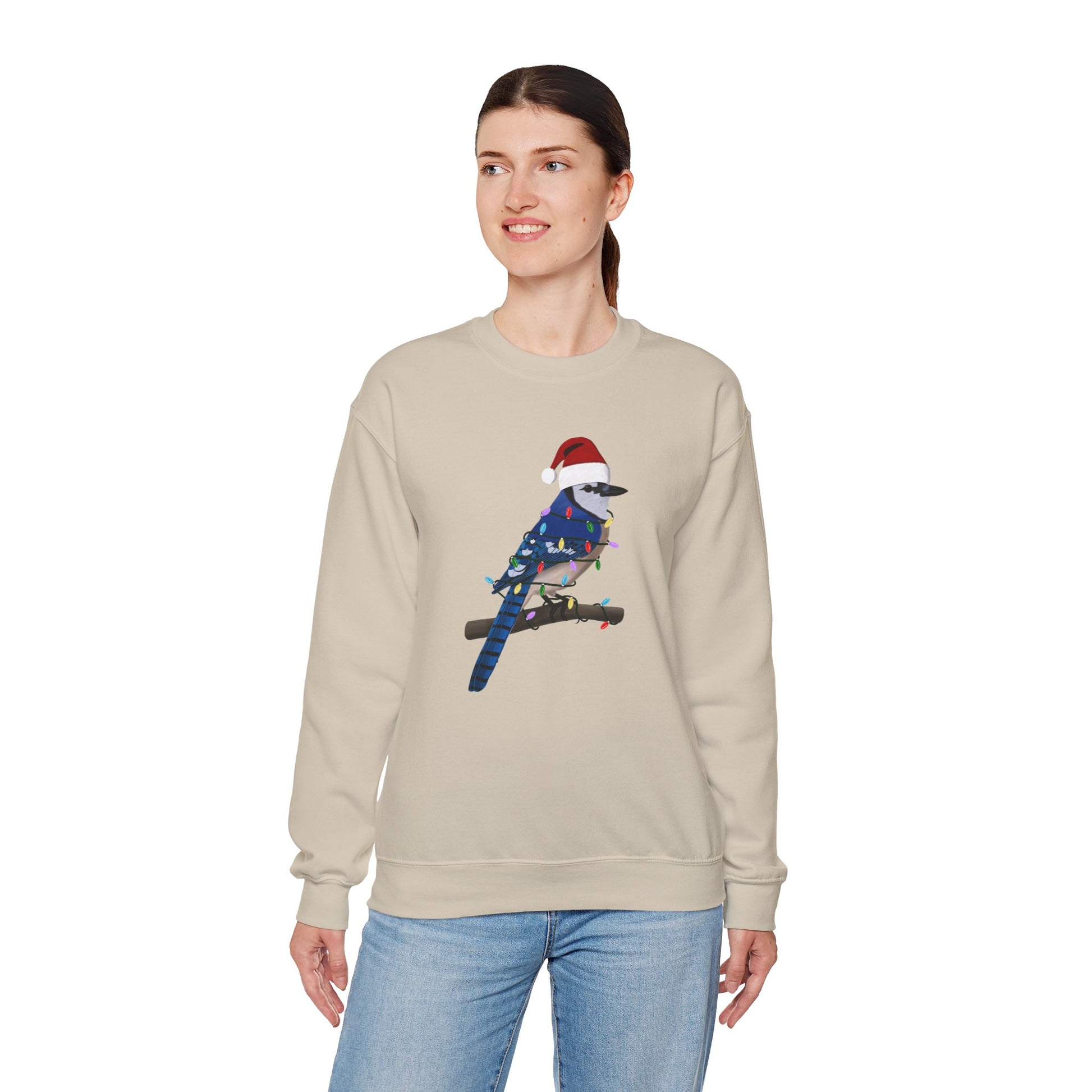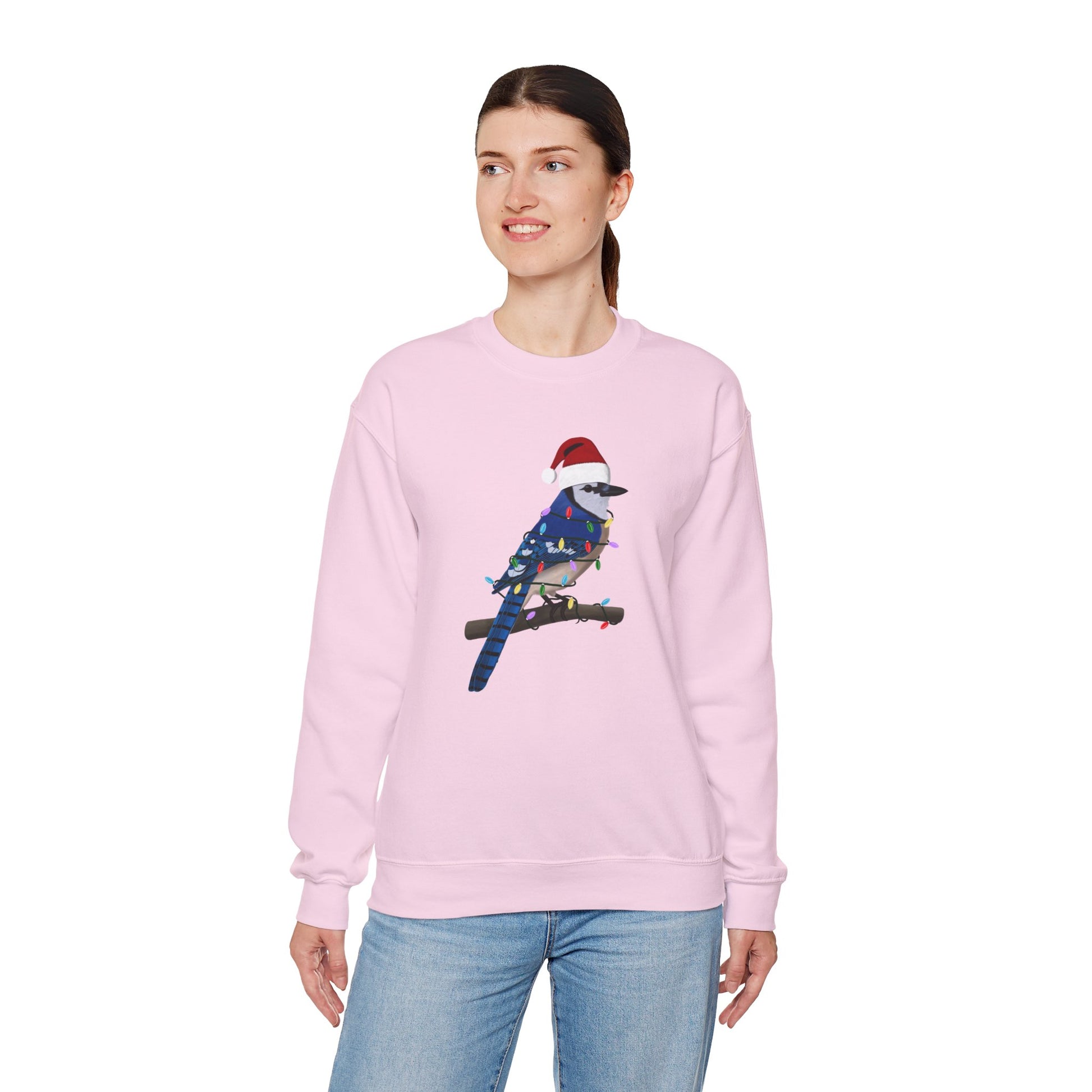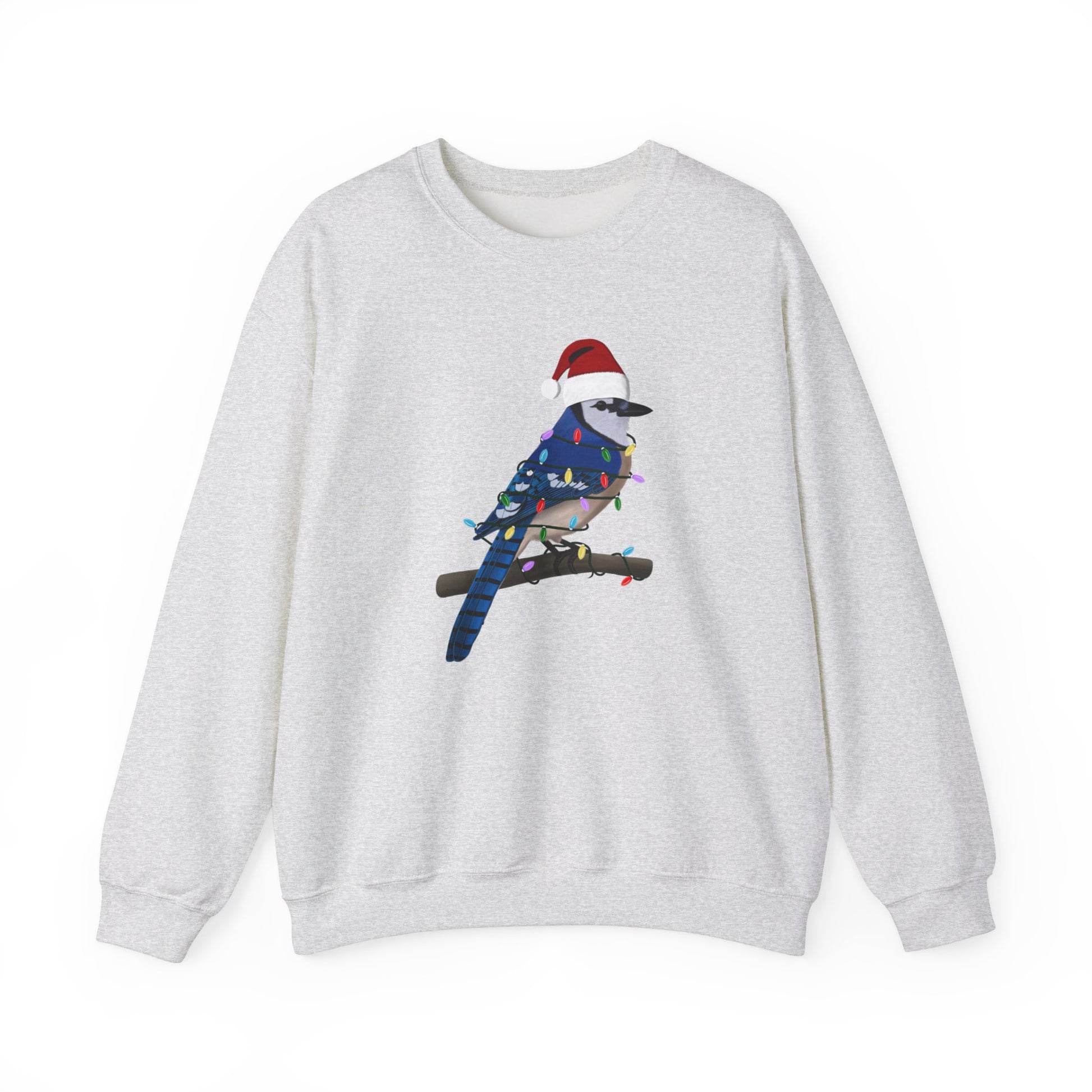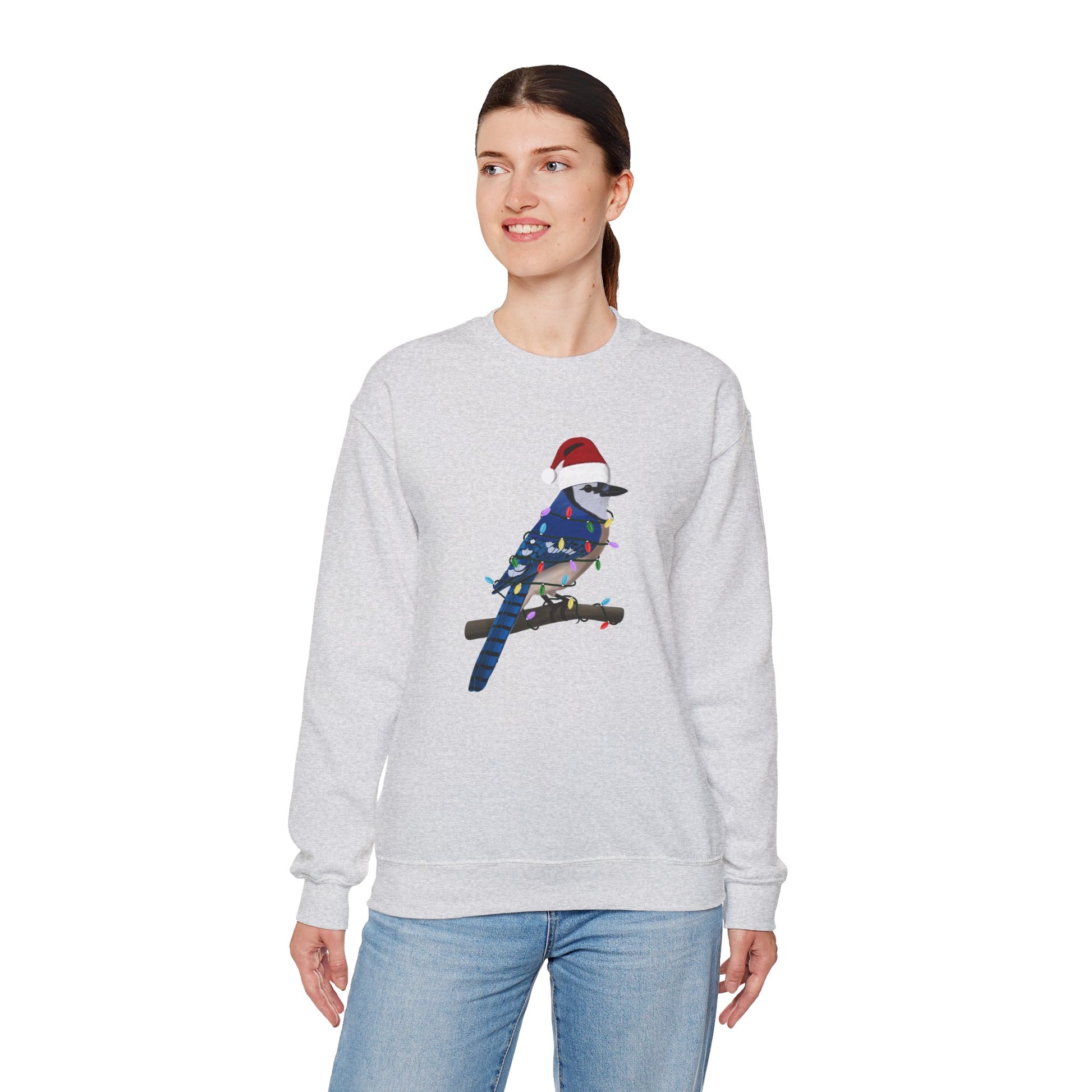 Blue Jay with Fairy Lights Santa Claus Christmas Bird Sweatshirt