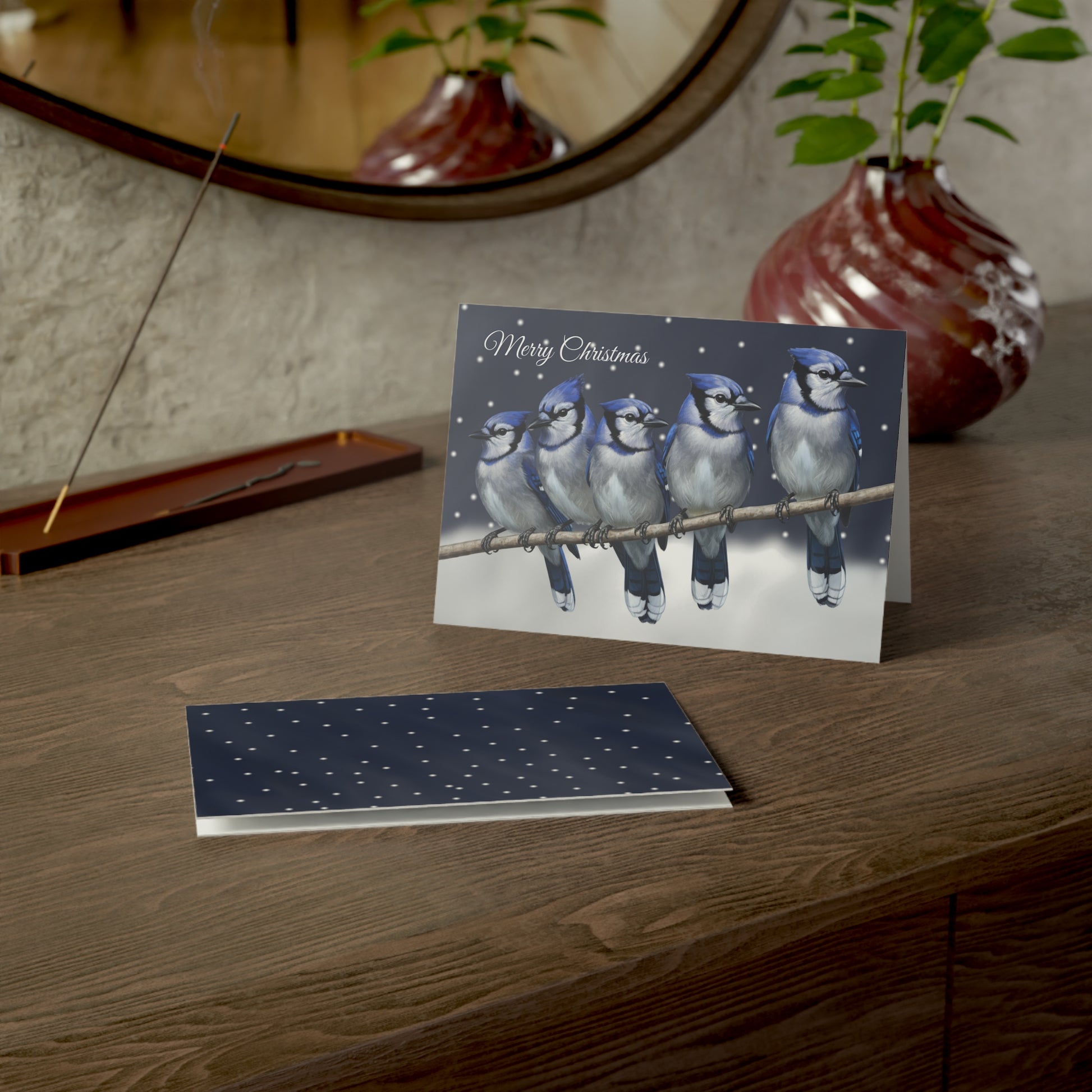 Make your holiday greetings truly memorable this year! Our beautiful Blue Jays Bird Art Christmas Cards are the perfect way for bird lovers and nature enthusiasts to share festive cheer. Featuring exclusive, charming bird illustrations, these cards offer a unique and heartfelt touch that stands out on any mantlepiece.
