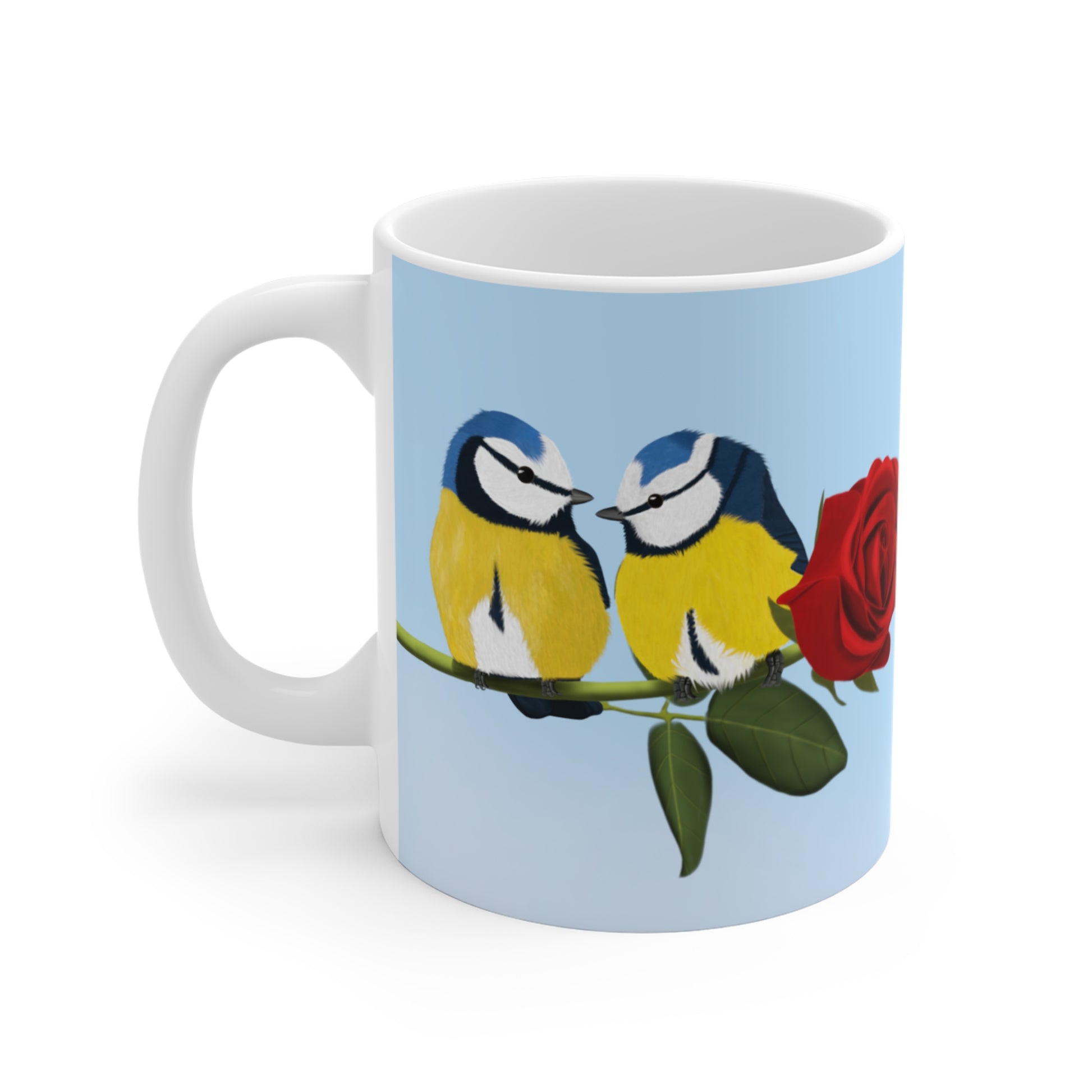 Blue Titmice on a Rose Valentine's Day Bird Ceramic Mug 11oz
