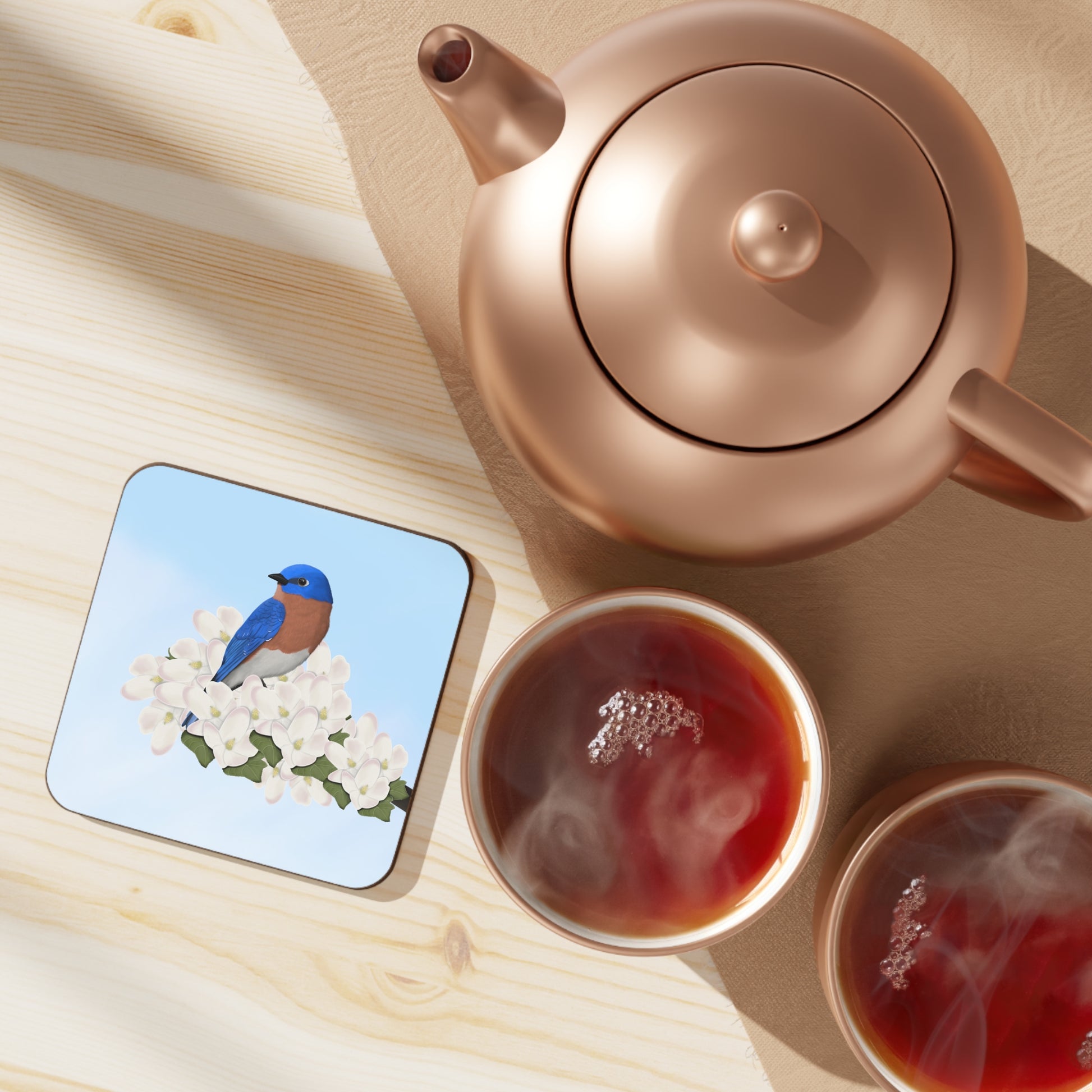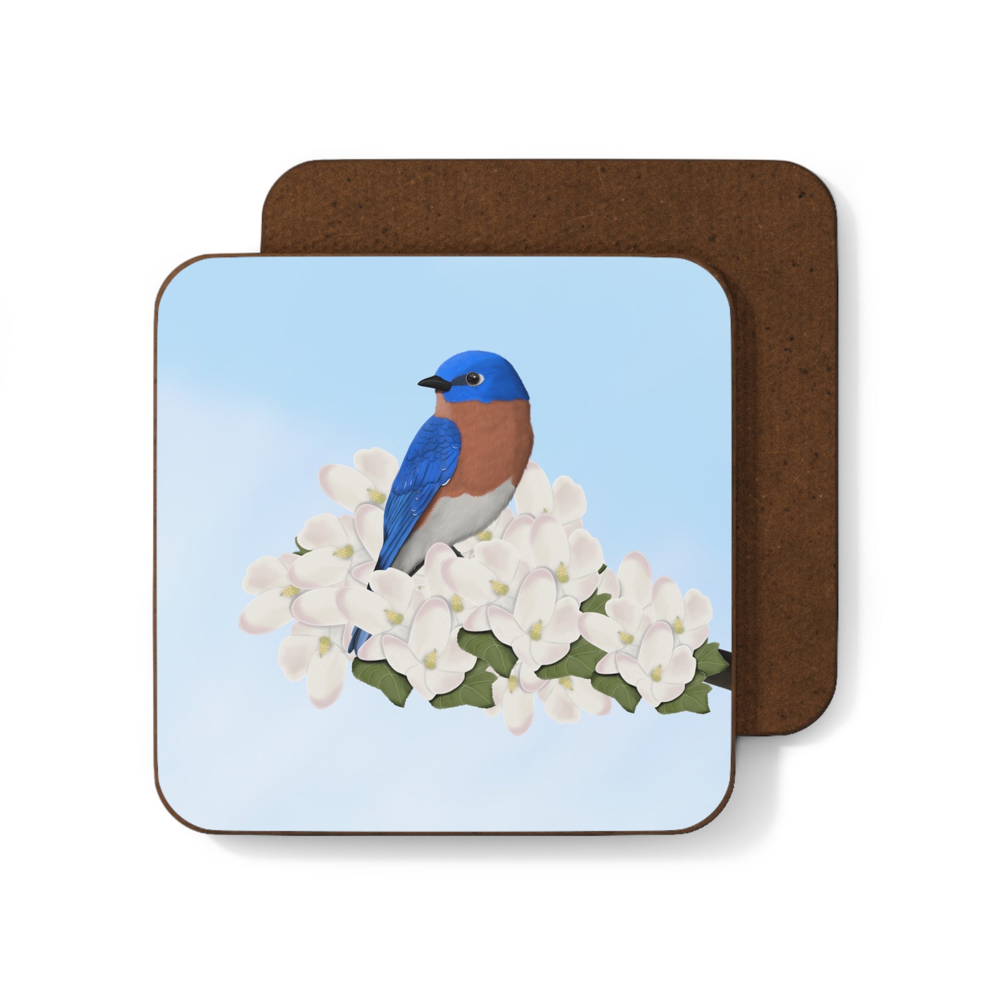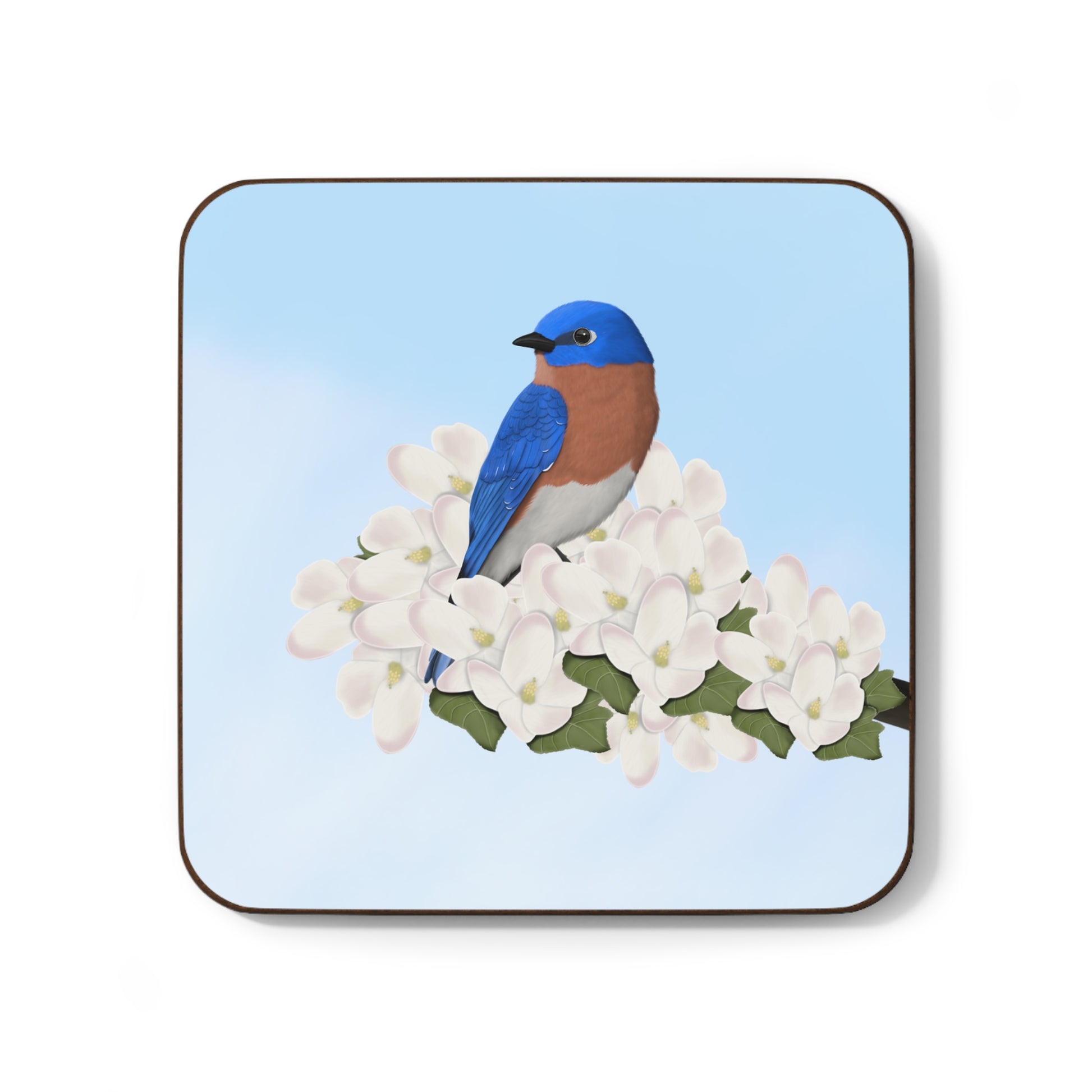 Bluebird Apple Blossoms Bird Hardboard Coaster