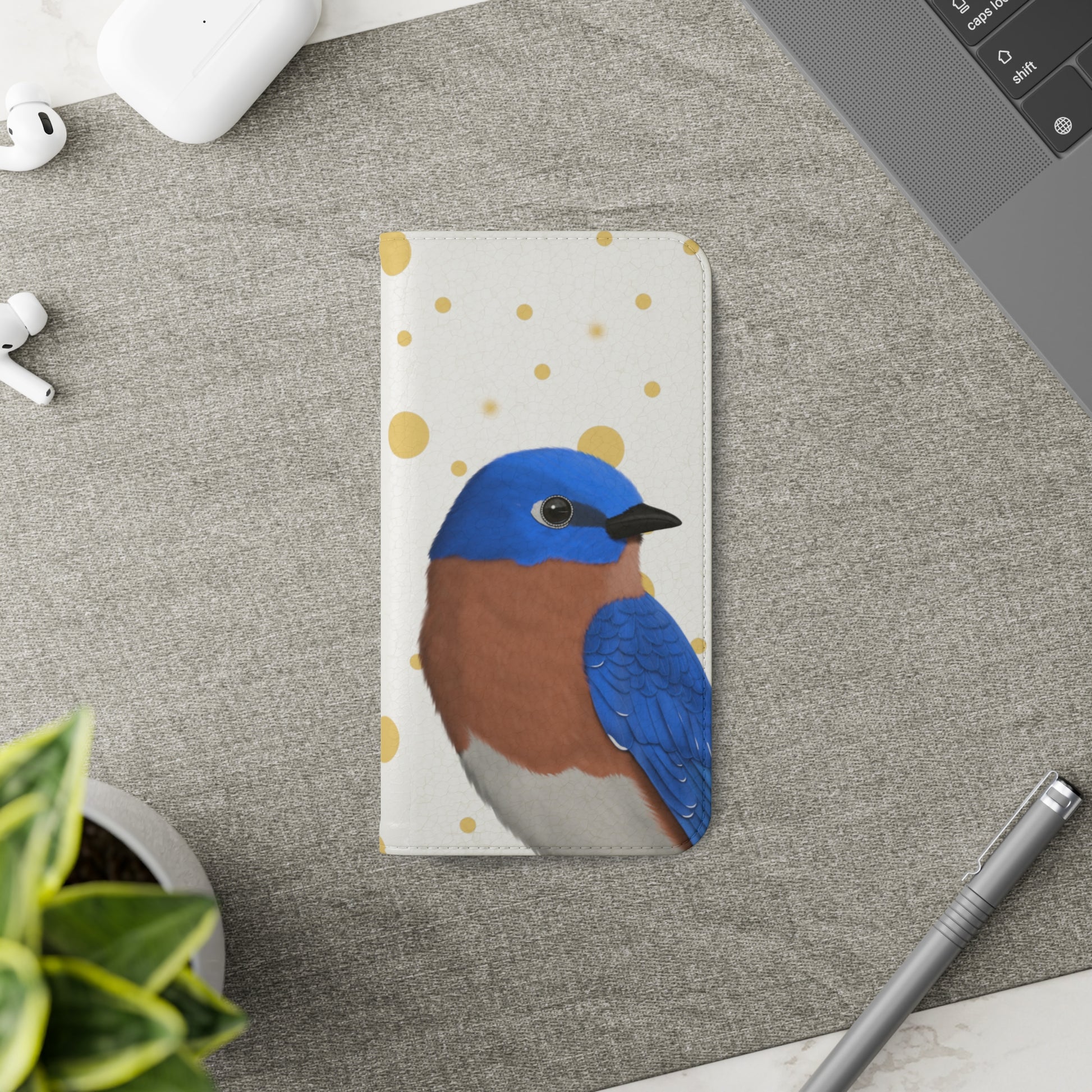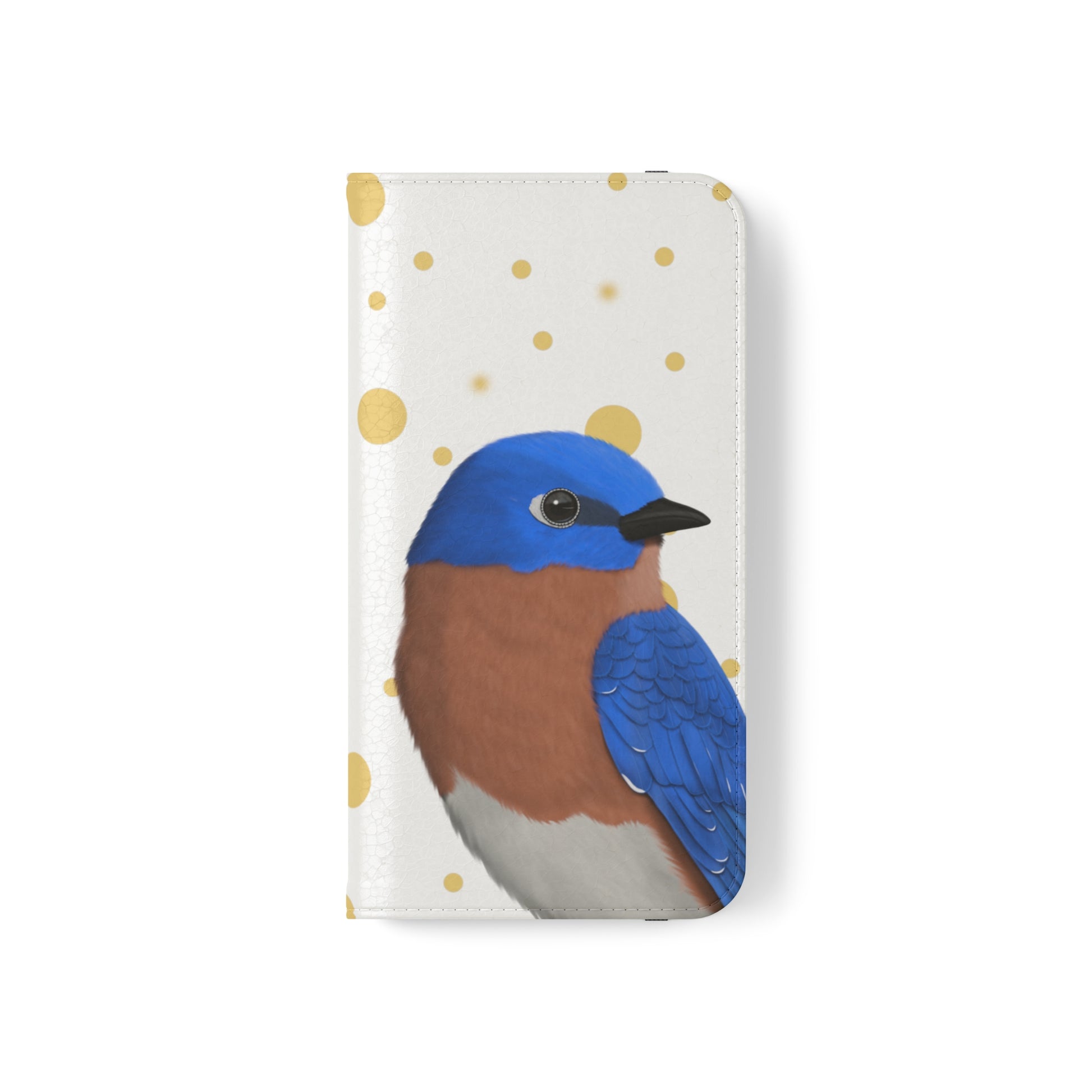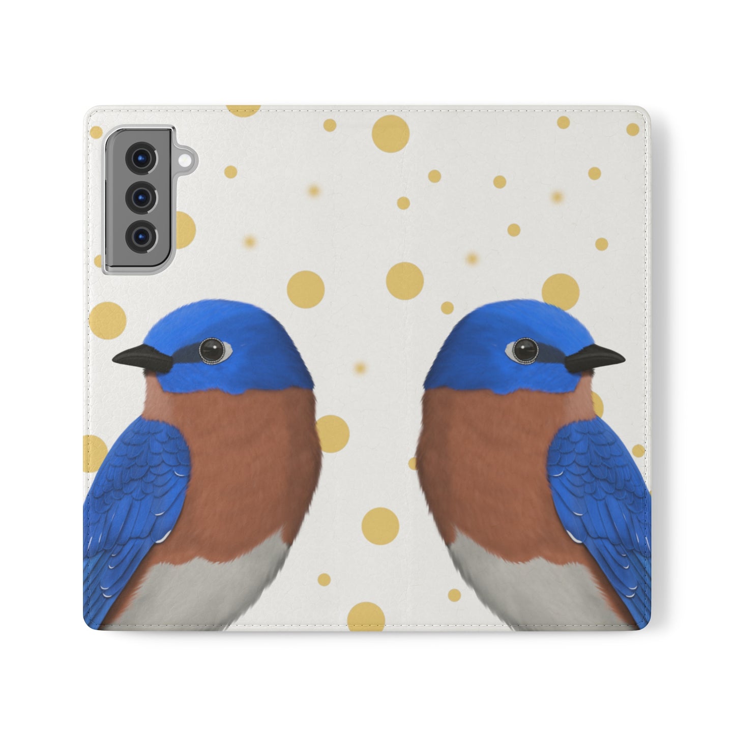 This flip phone case is crafted with faux vegan leather, featuring a stunning Bluebird bird art design. Perfect for birdlovers, it not only offers style and protection, but also contributes to a cruelty-free lifestyle. Enjoy the beauty of nature with this unique and functional case.