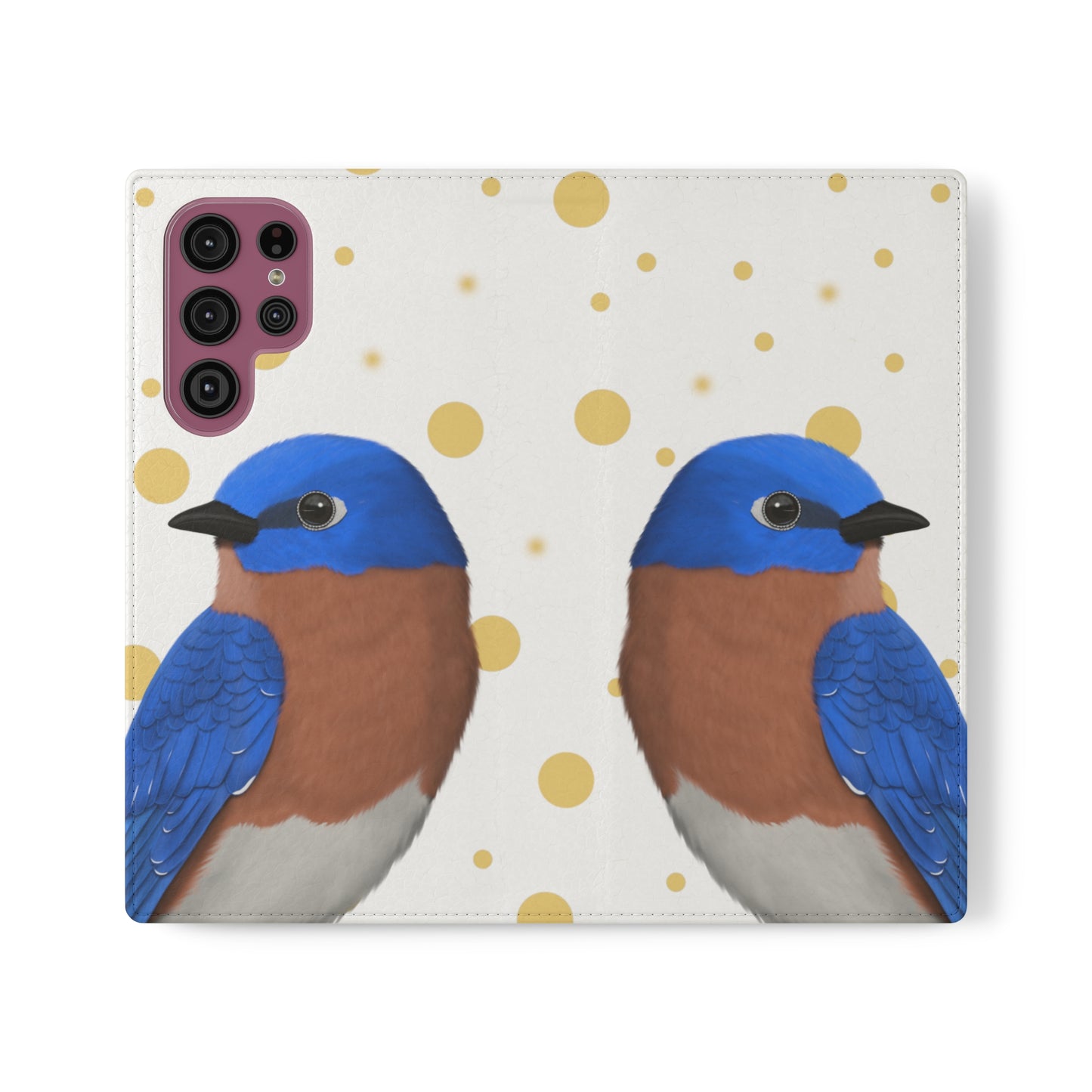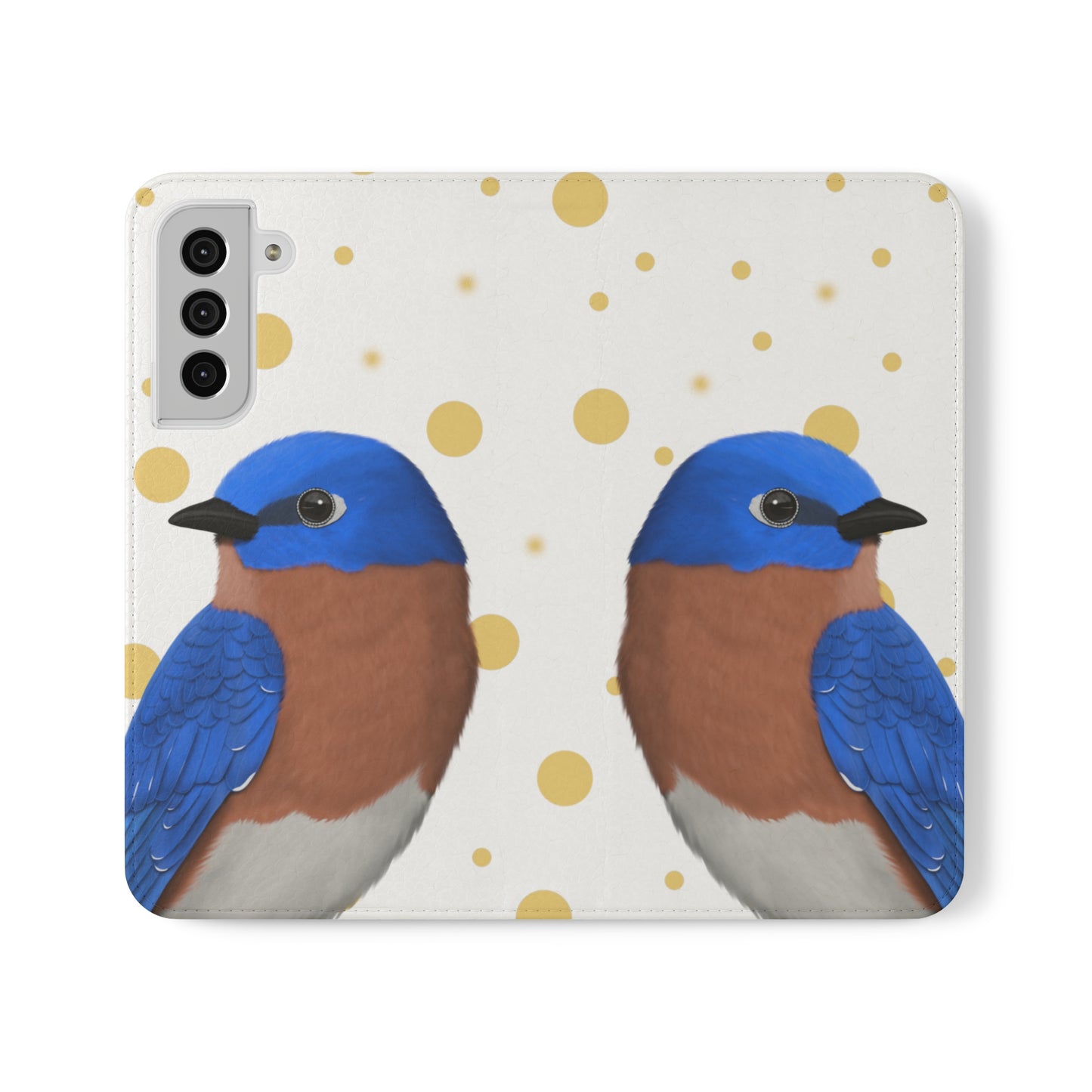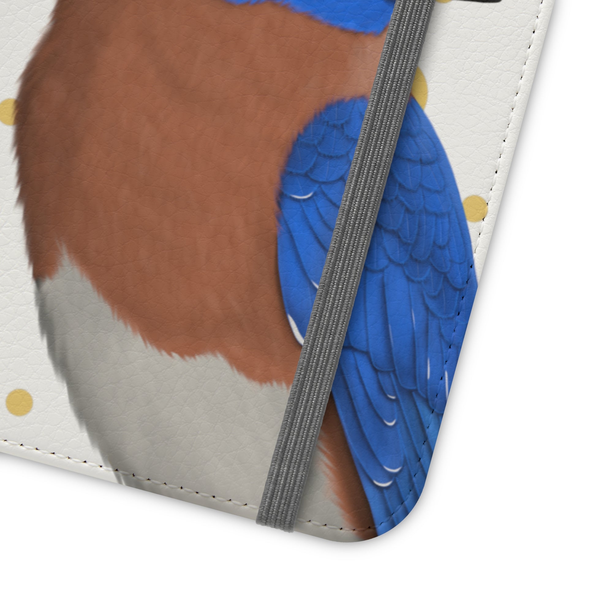 This flip phone case is crafted with faux vegan leather, featuring a stunning Bluebird bird art design. Perfect for birdlovers, it not only offers style and protection, but also contributes to a cruelty-free lifestyle. Enjoy the beauty of nature with this unique and functional case.