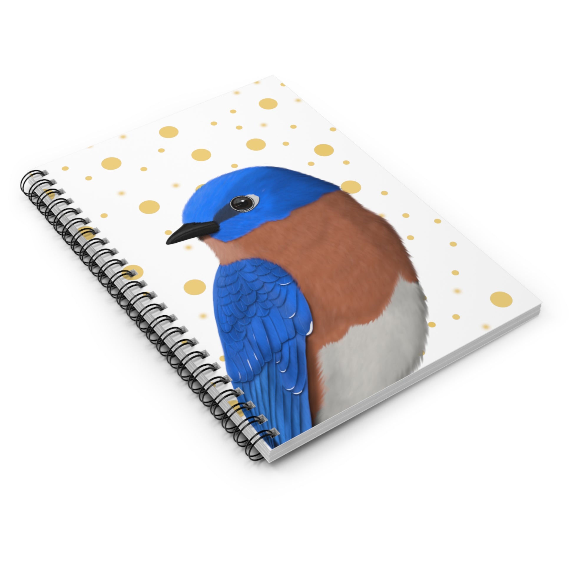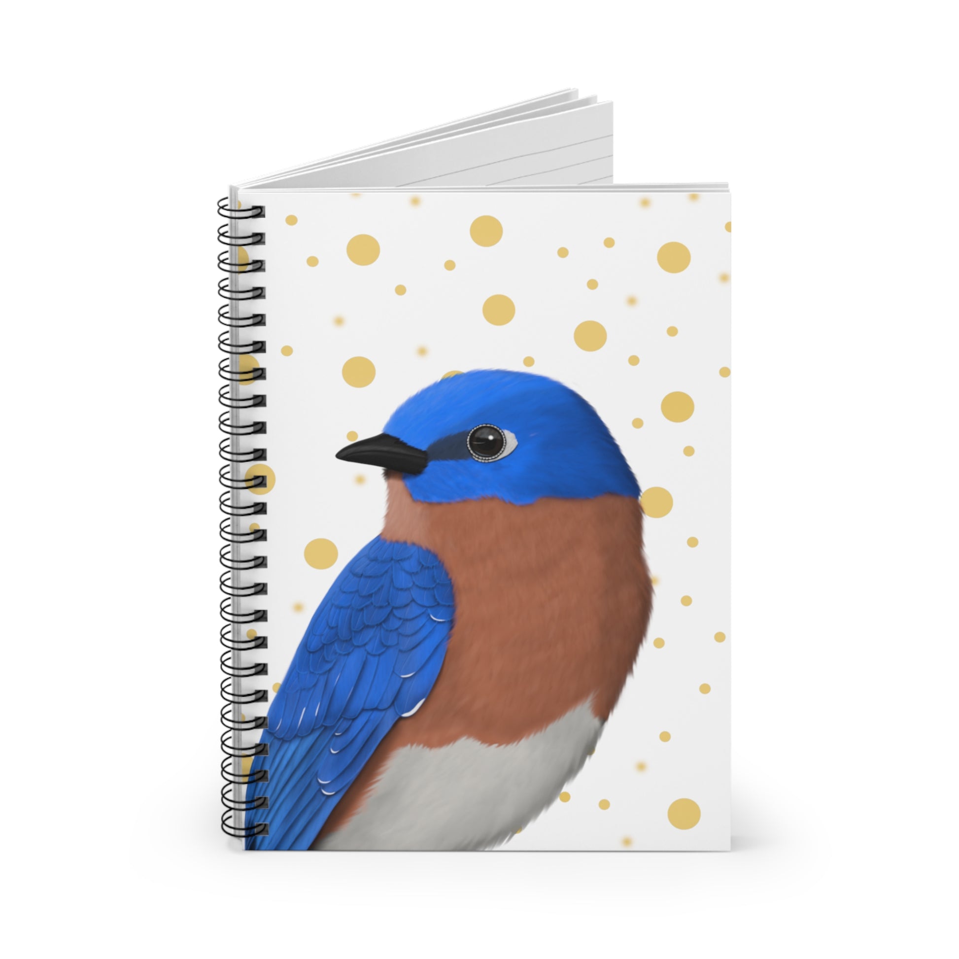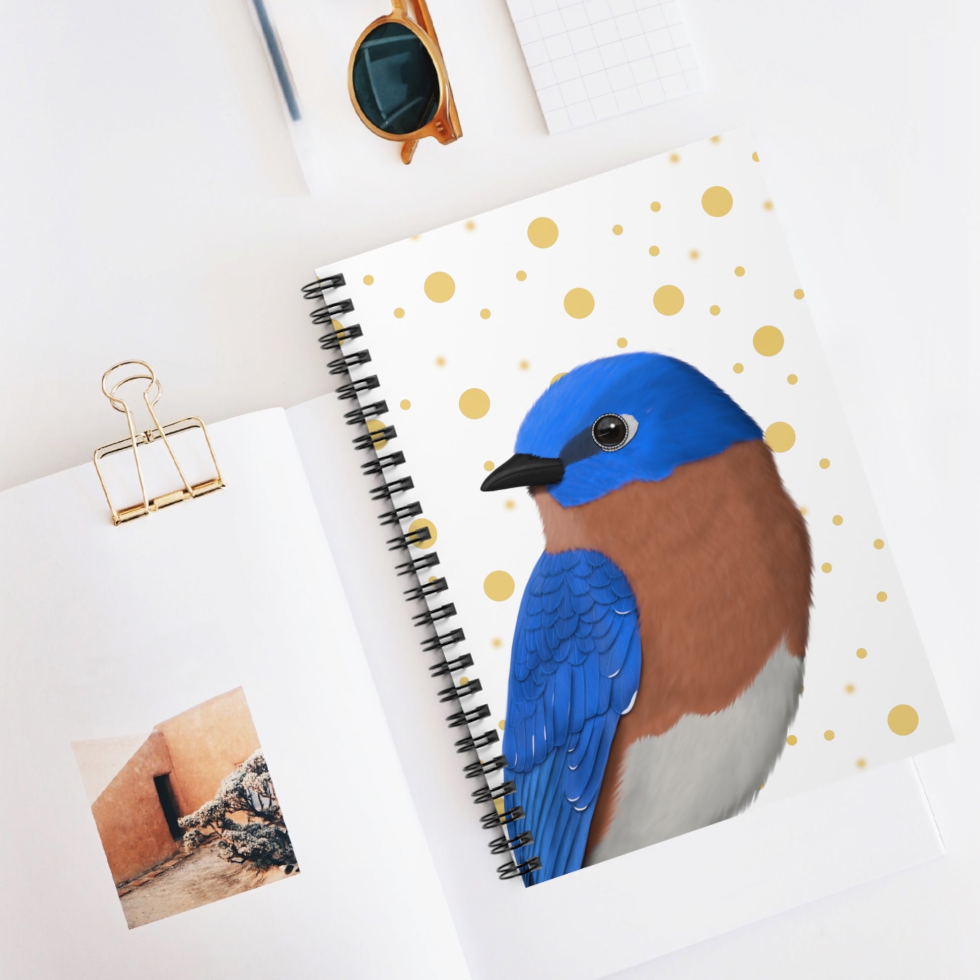 Bluebird Bird Birdlover Spiral Notebook White Golden Dots Ruled Line 6"x8"