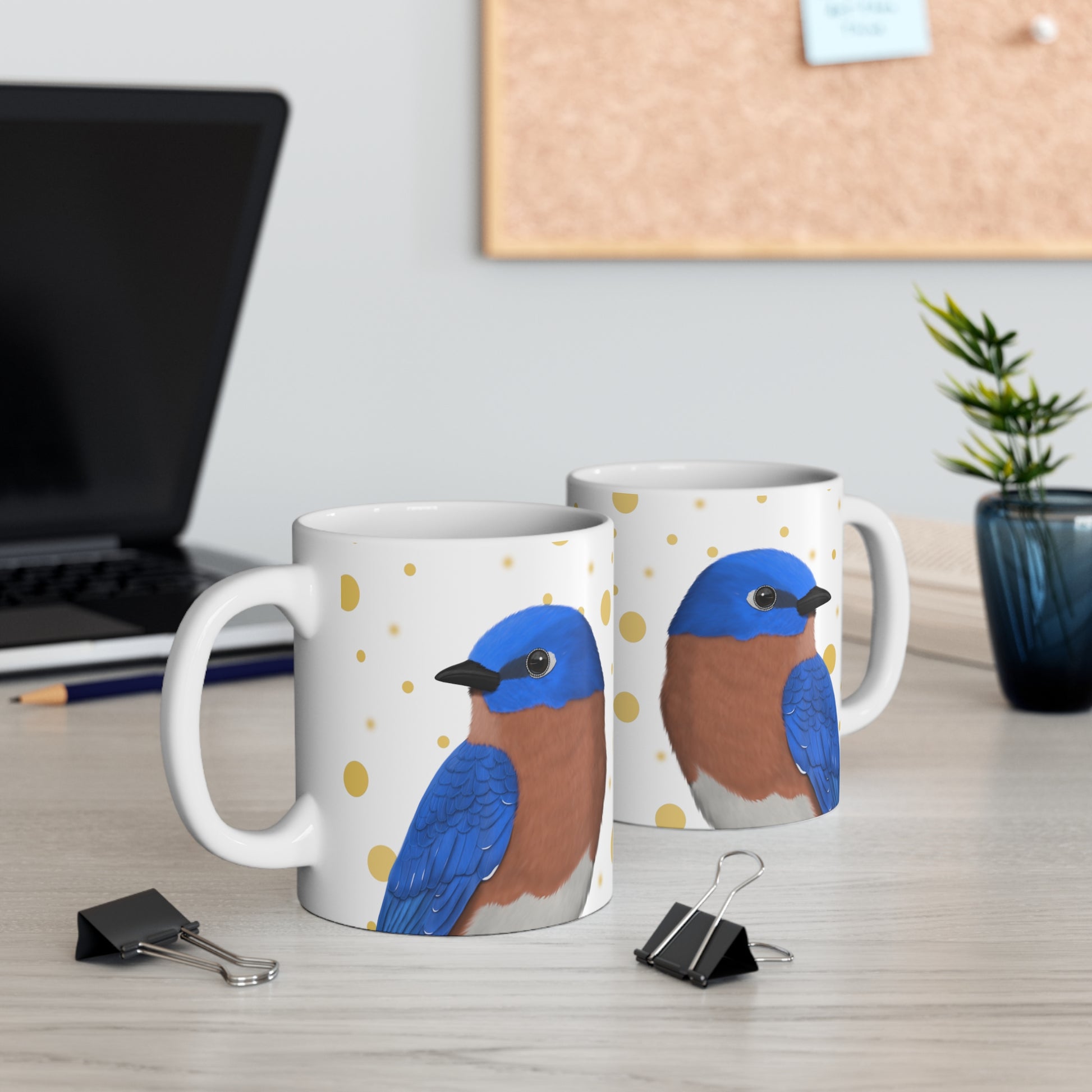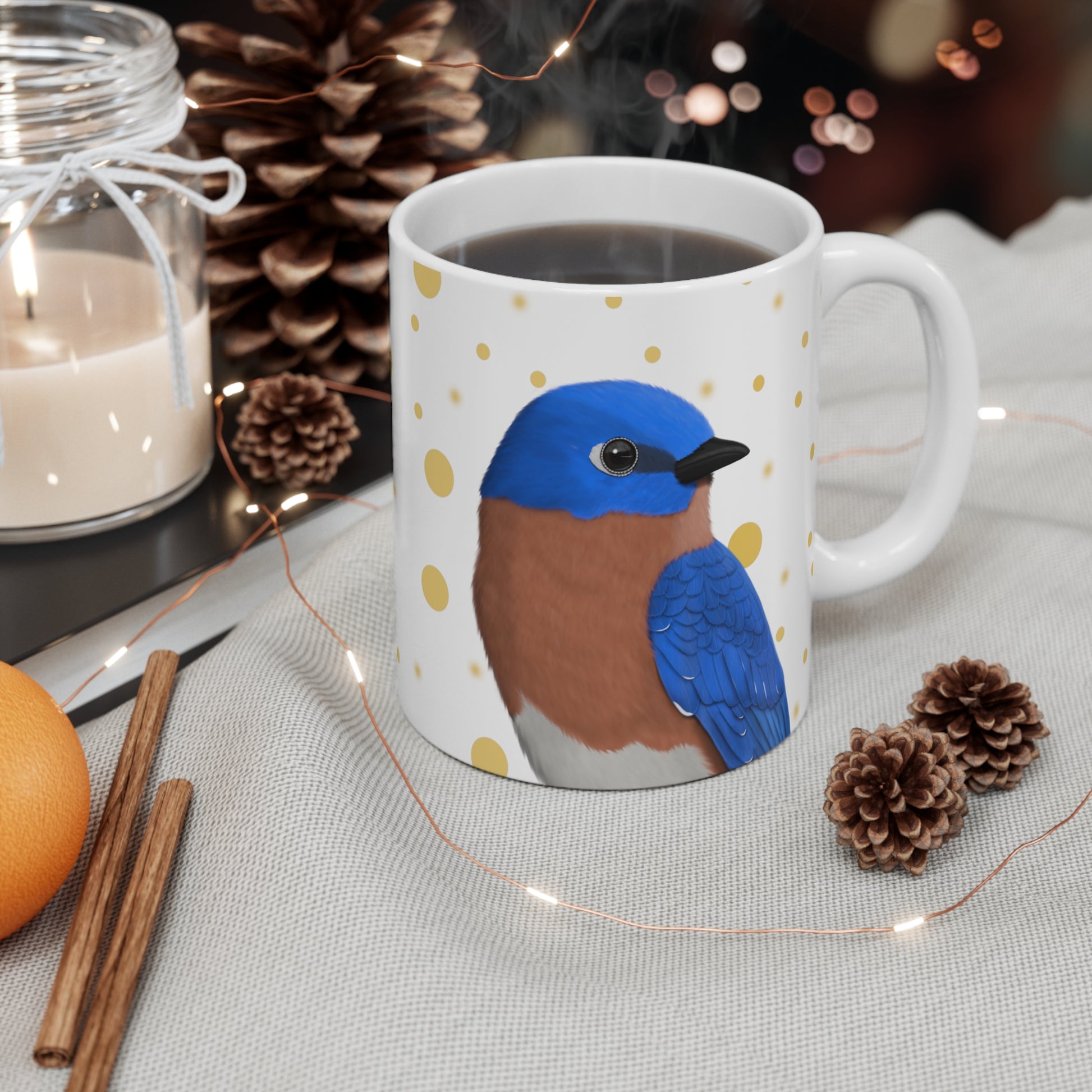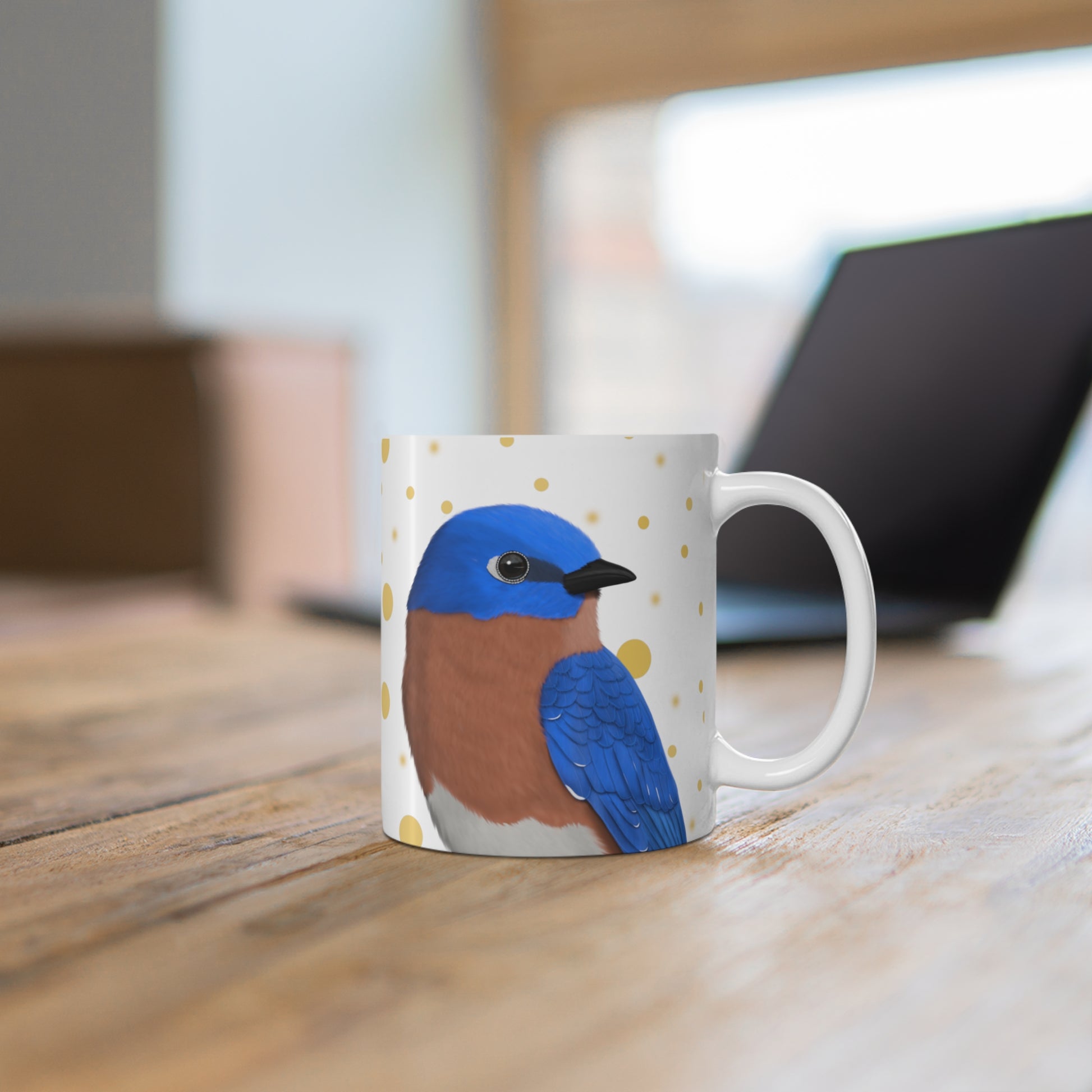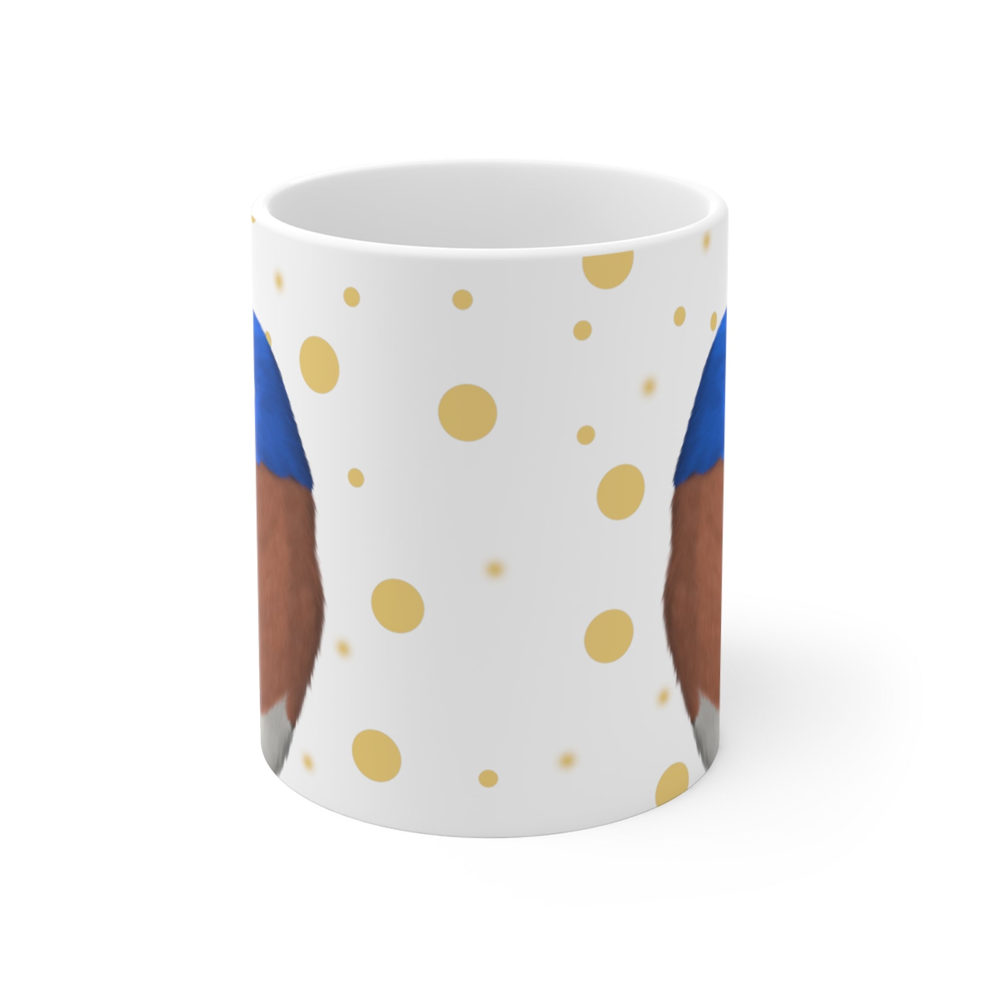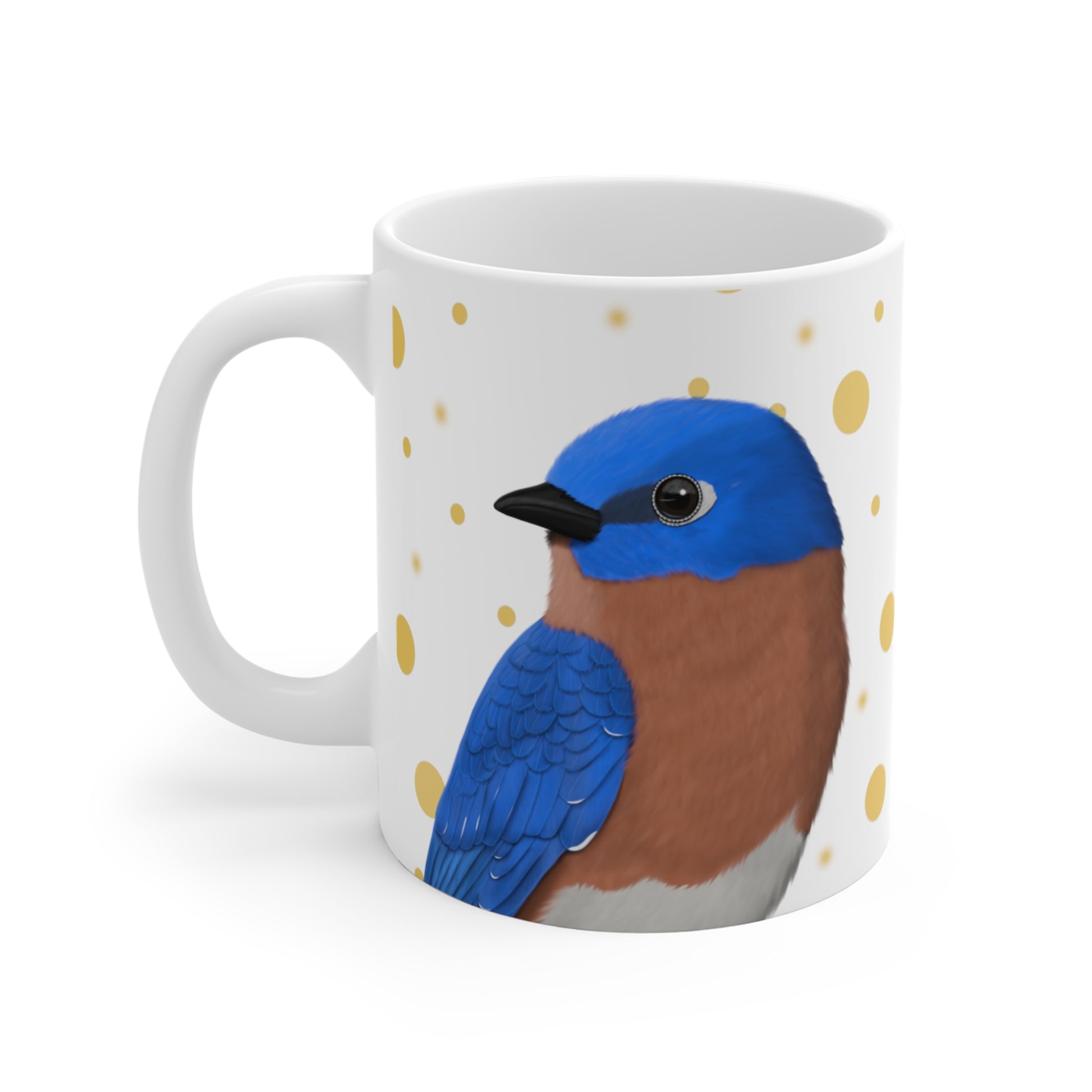 Bluebird Bird Ceramic Mug White Golden Dots 11oz