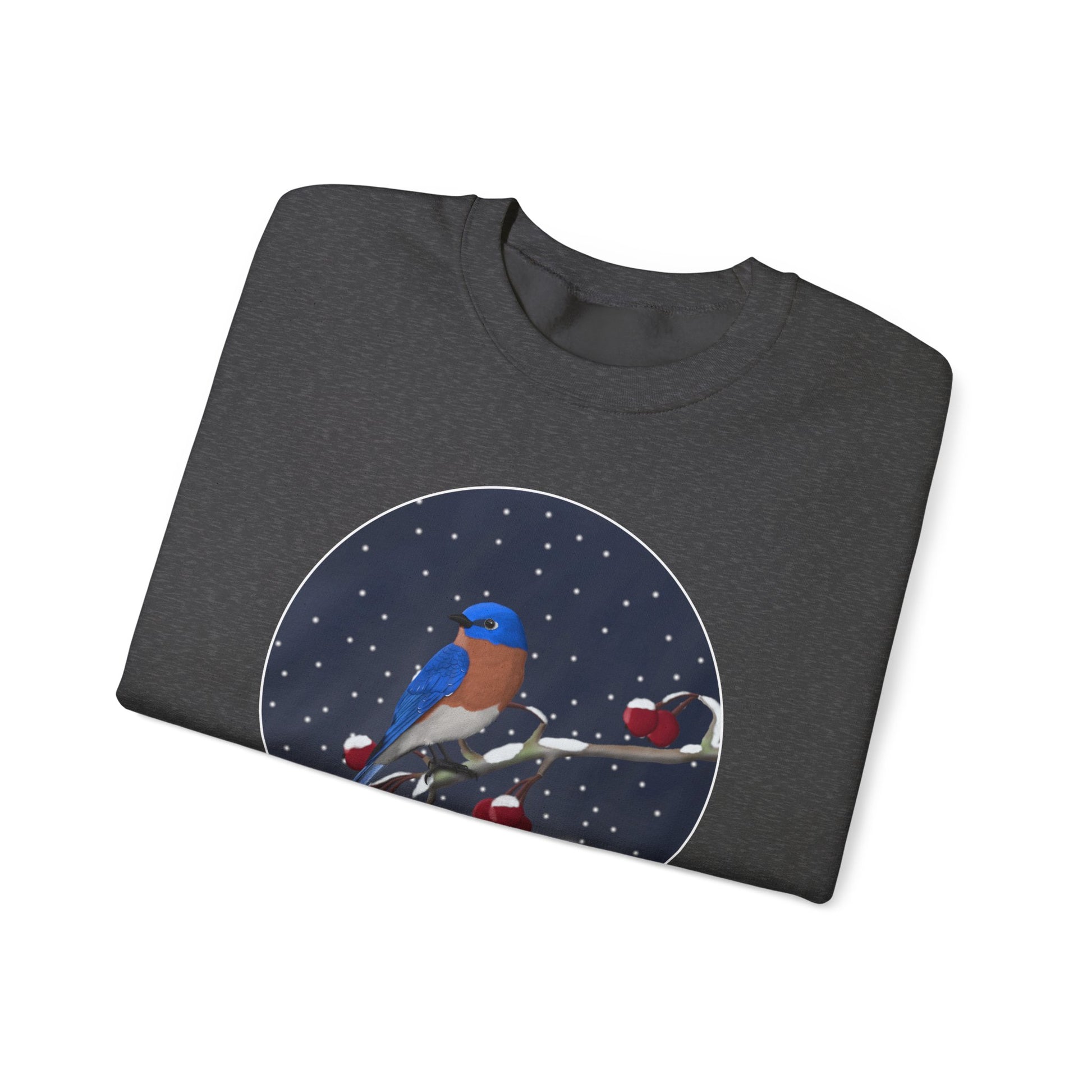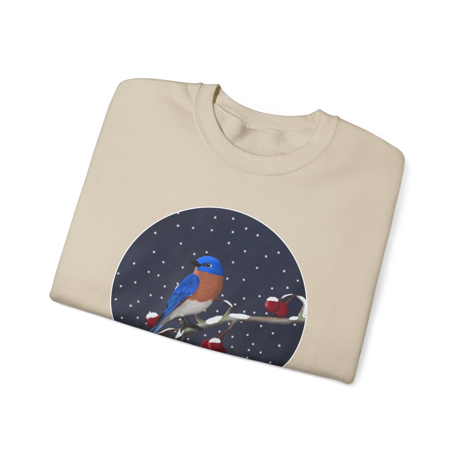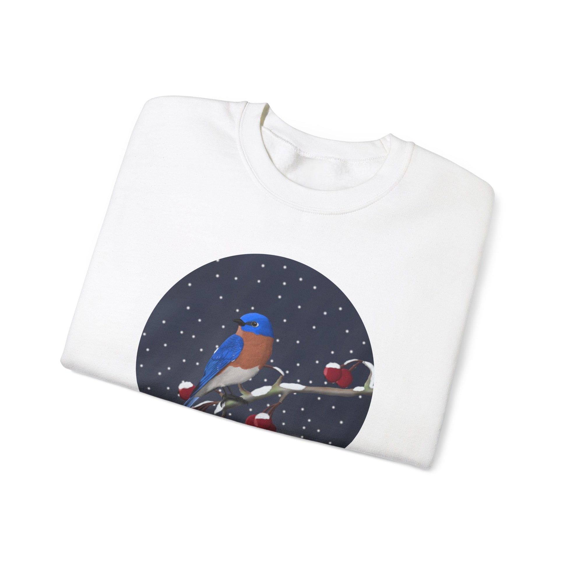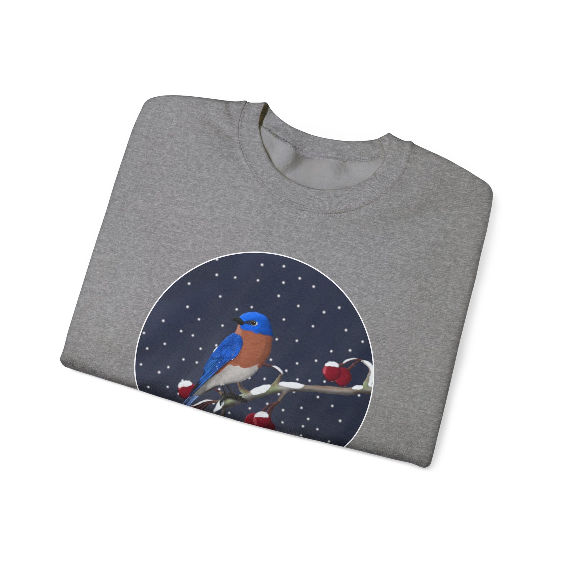 Bluebird on a Winter Branch Birdwatcher Christmas Bird Sweatshirt