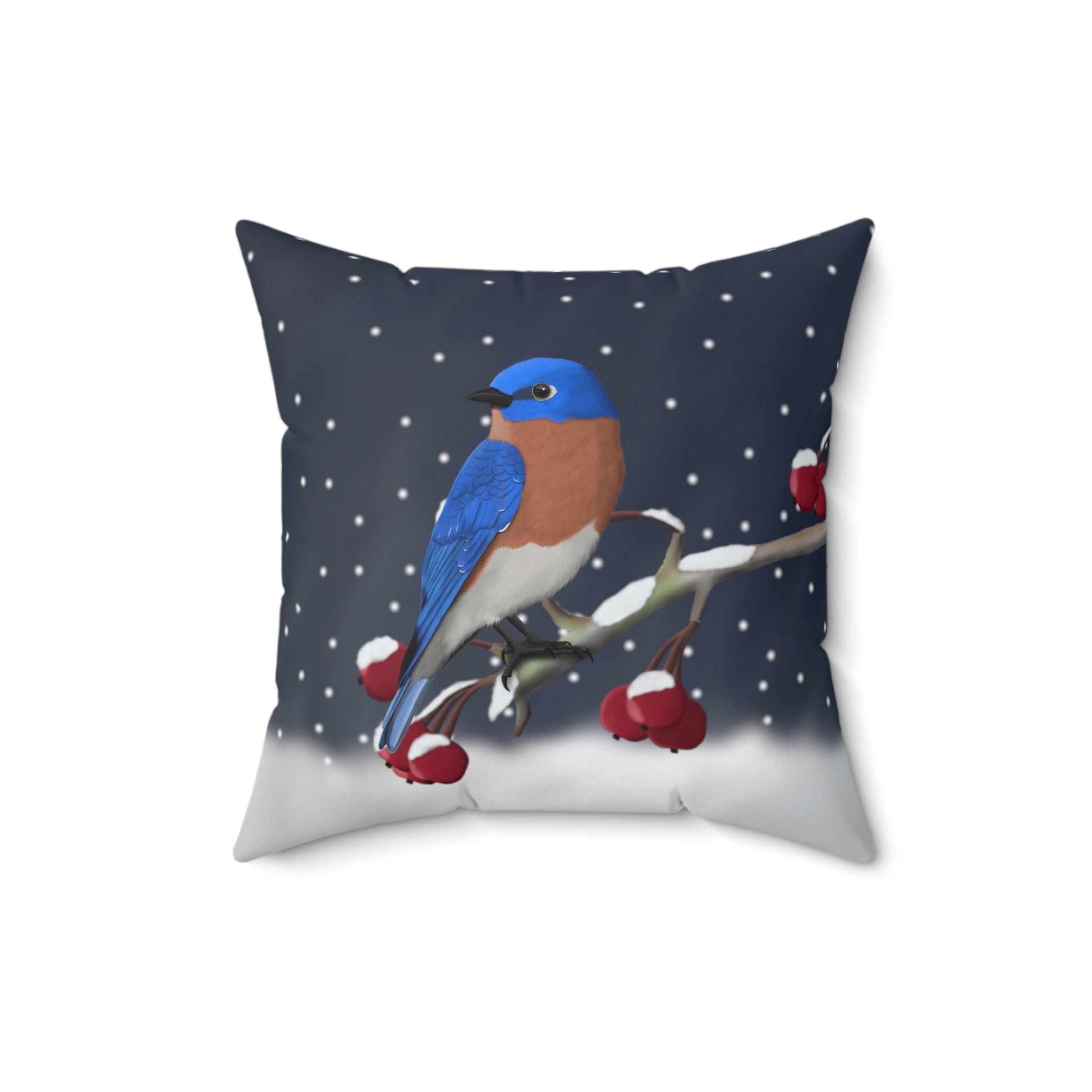 Bluebird on a Winter Branch Christmas Bird Pillow
