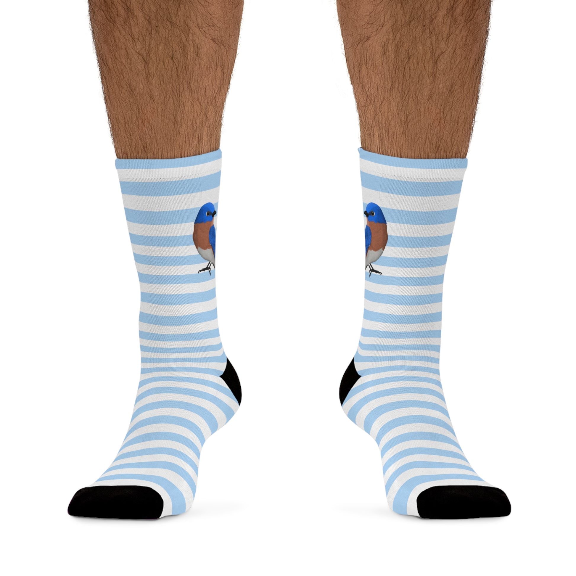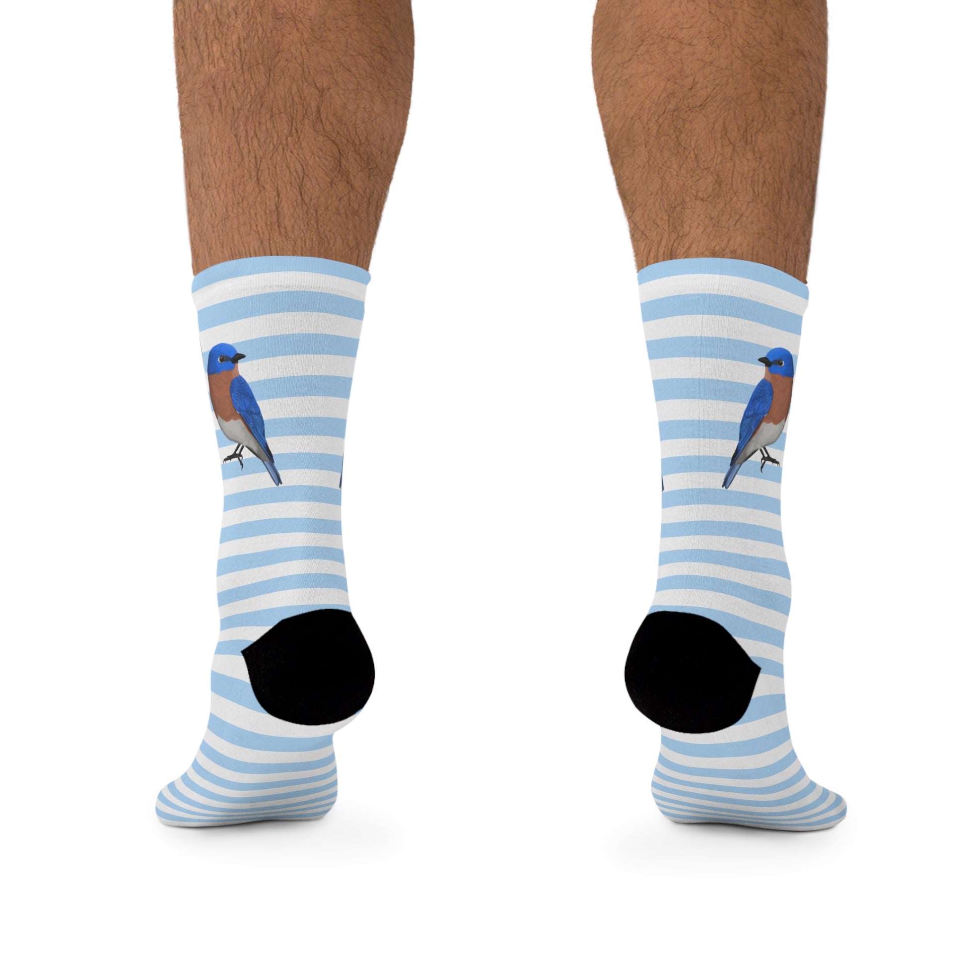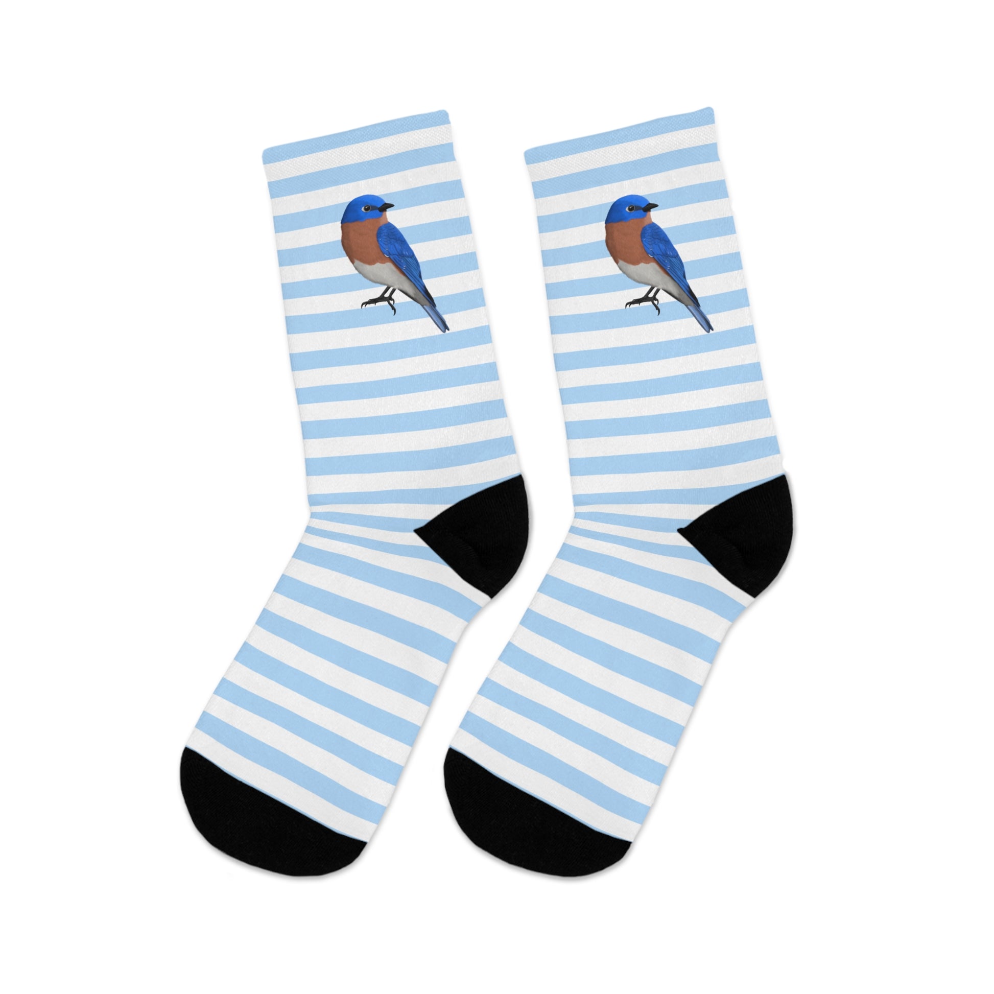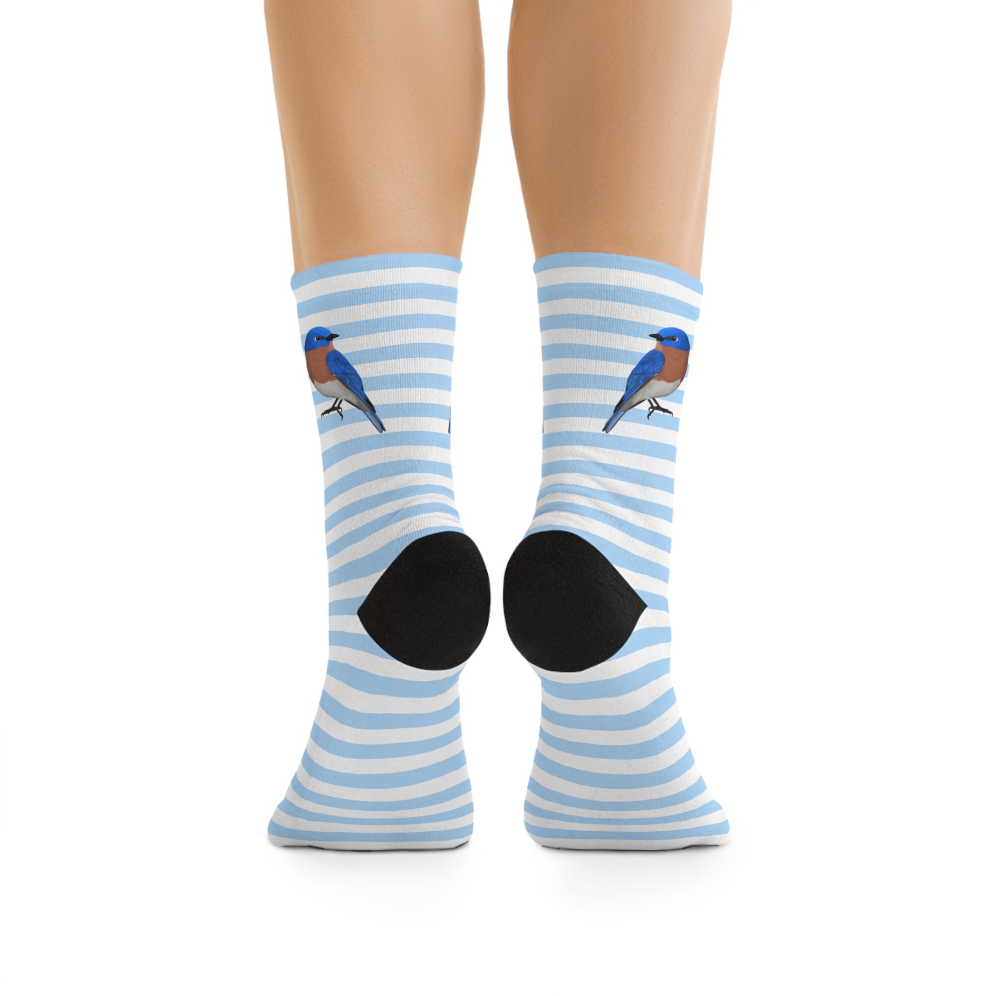 Bluebird Stripes Blue White Birding & Birdwatching Bird Socks