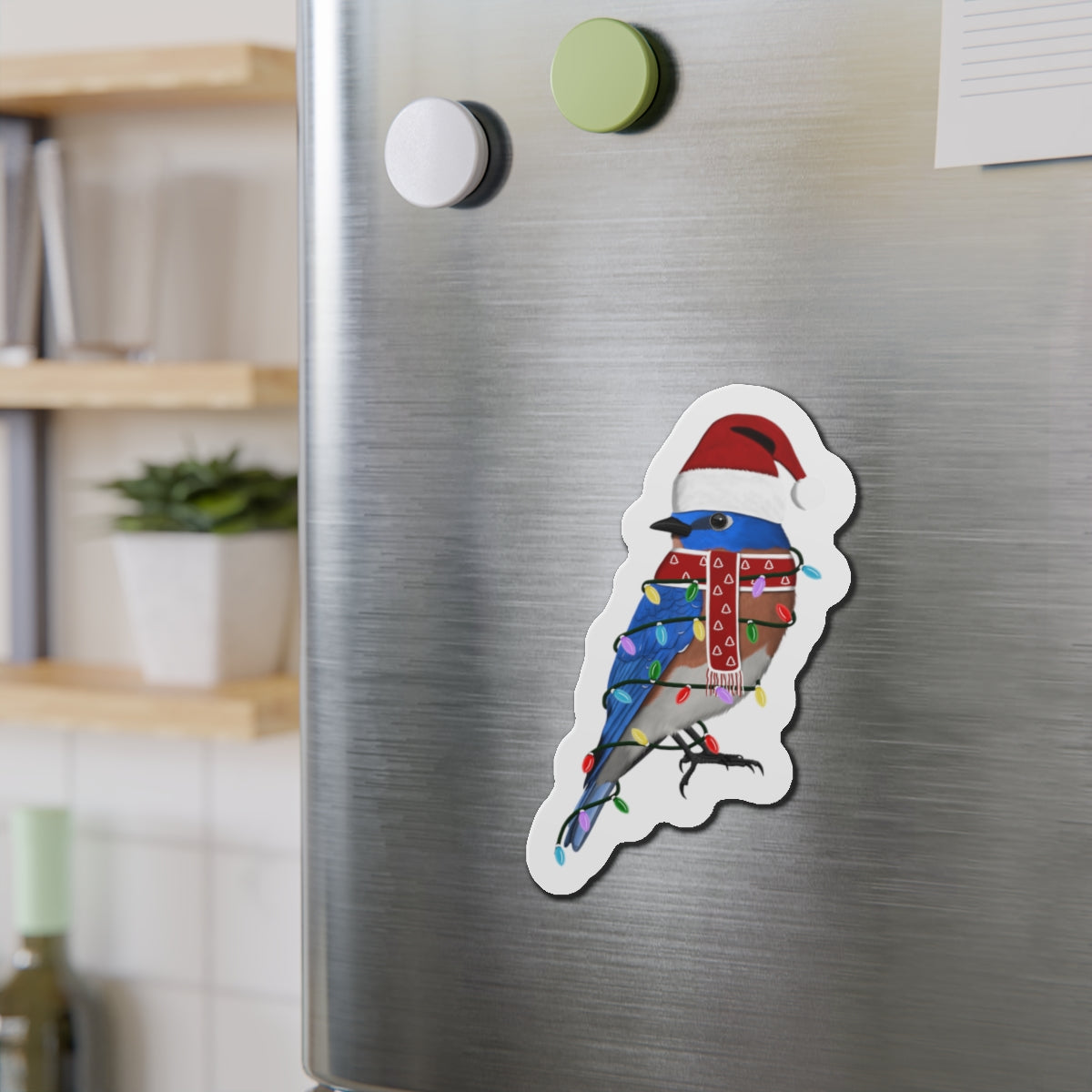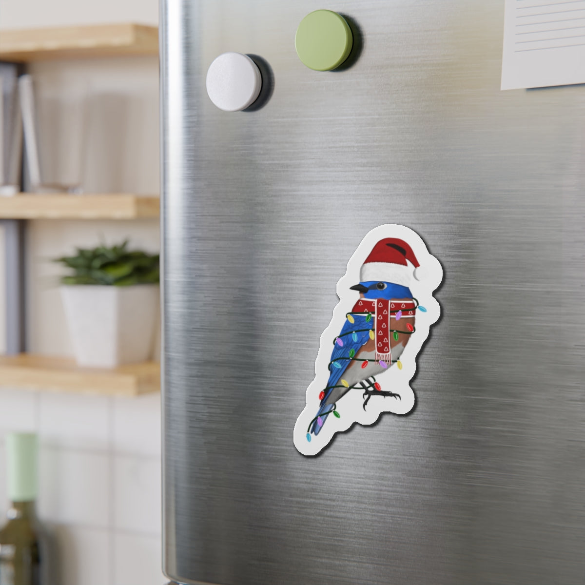 This magnet features a beautiful Bluebird with Fairy Lights Christmas bird illustration. It serves as both a useful tool and a lovely decoration for any home or office space. Made with high-quality materials, it is sure to add a touch of elegance to your Christmas decor.