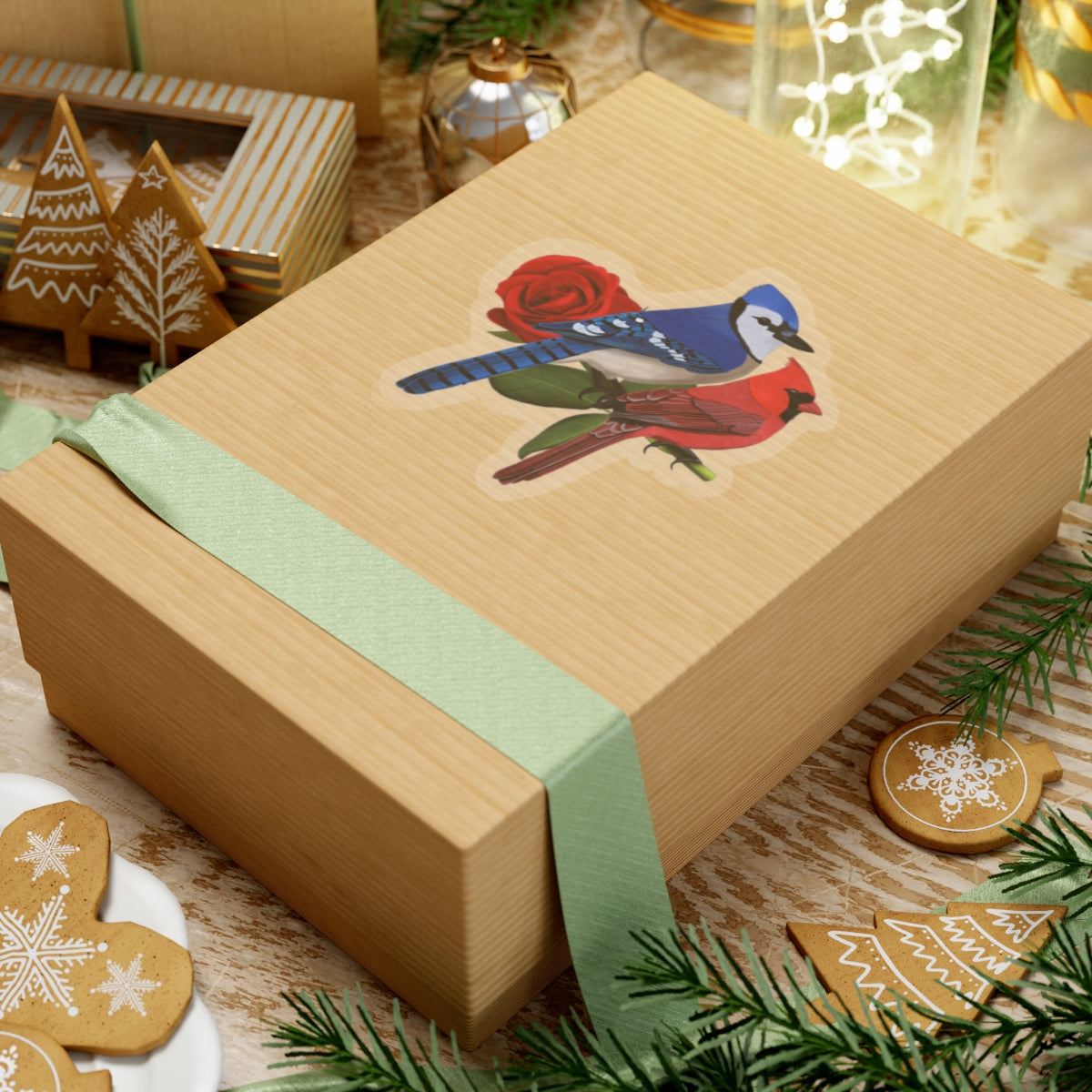 This Valentine's Day kiss-cut sticker features the jz.birds Blue Jay and Cardinal on a rose, perfect for any birder or ornithologist. Add some feathered bird fun to your life with this sticker! They're perfect for adding a little personality to your laptop, water bottle, or notebook. Get yours today and spread some bird love!