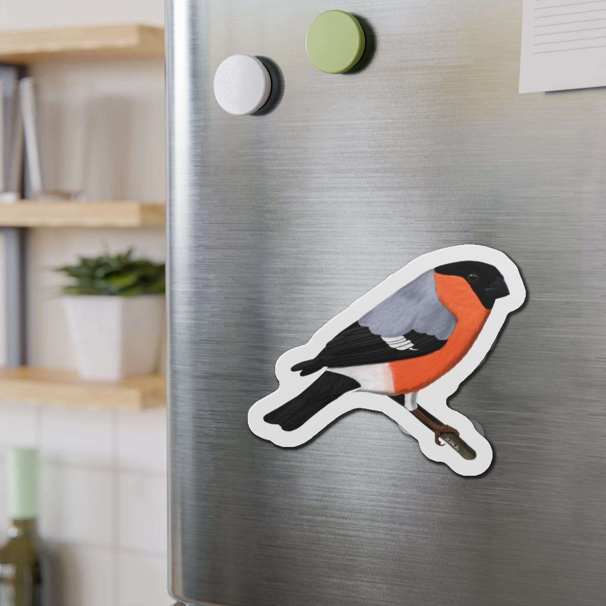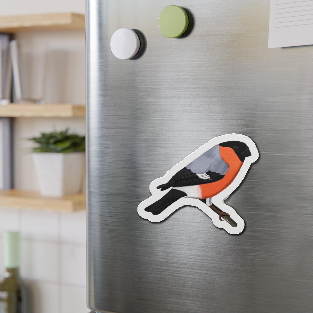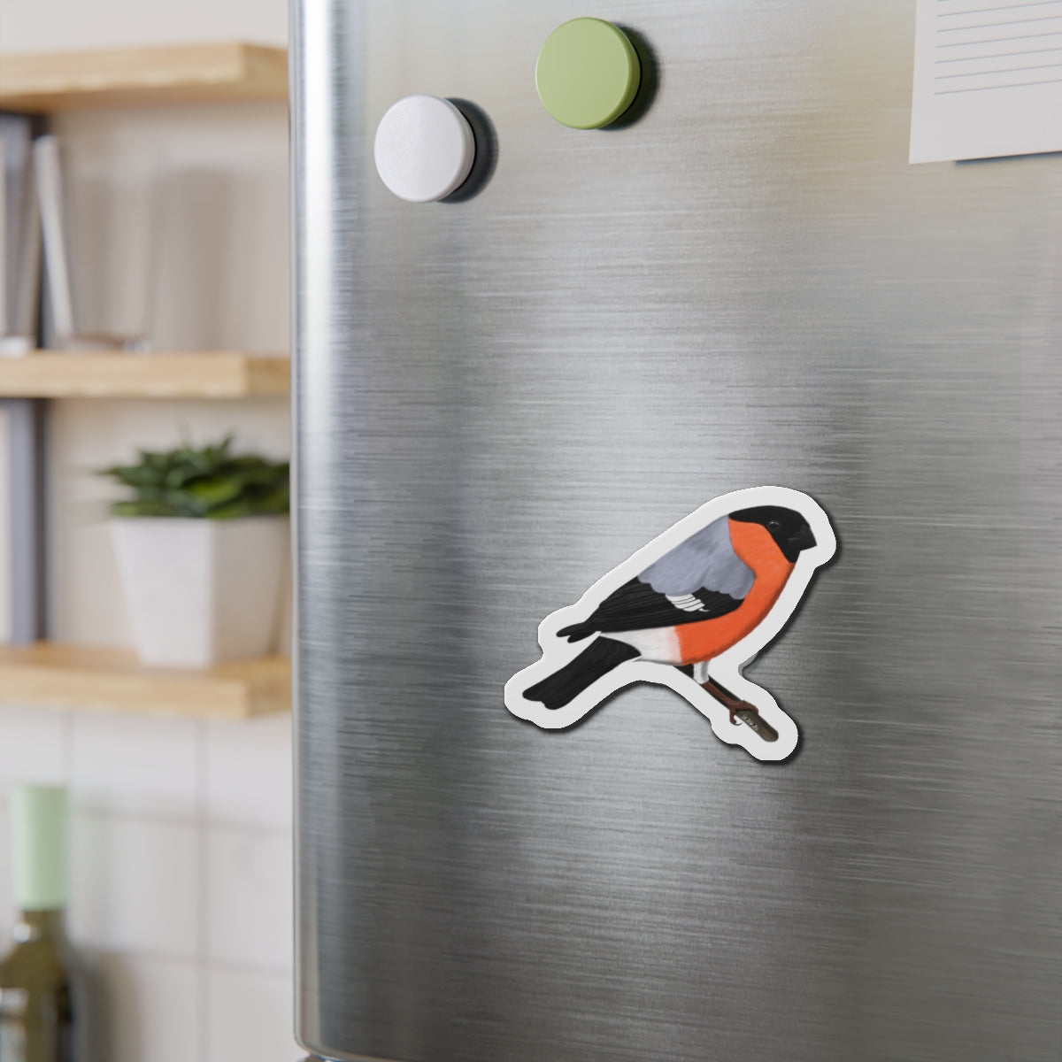 This magnet features a beautiful Bullfinch bird illustration. It serves as both a useful tool and a lovely decoration for any home or office space. Made with high-quality materials, it is sure to add a touch of elegance to any setting.