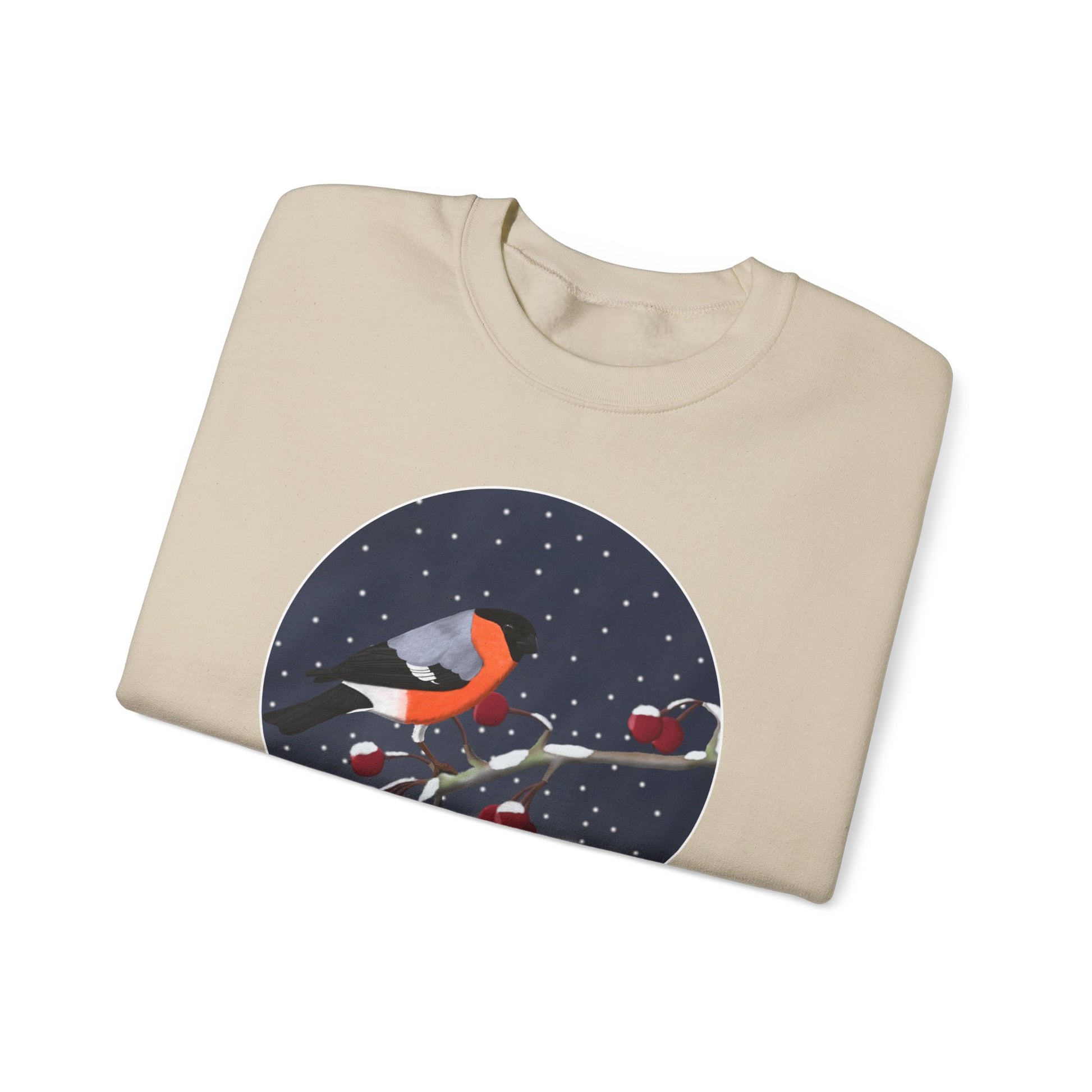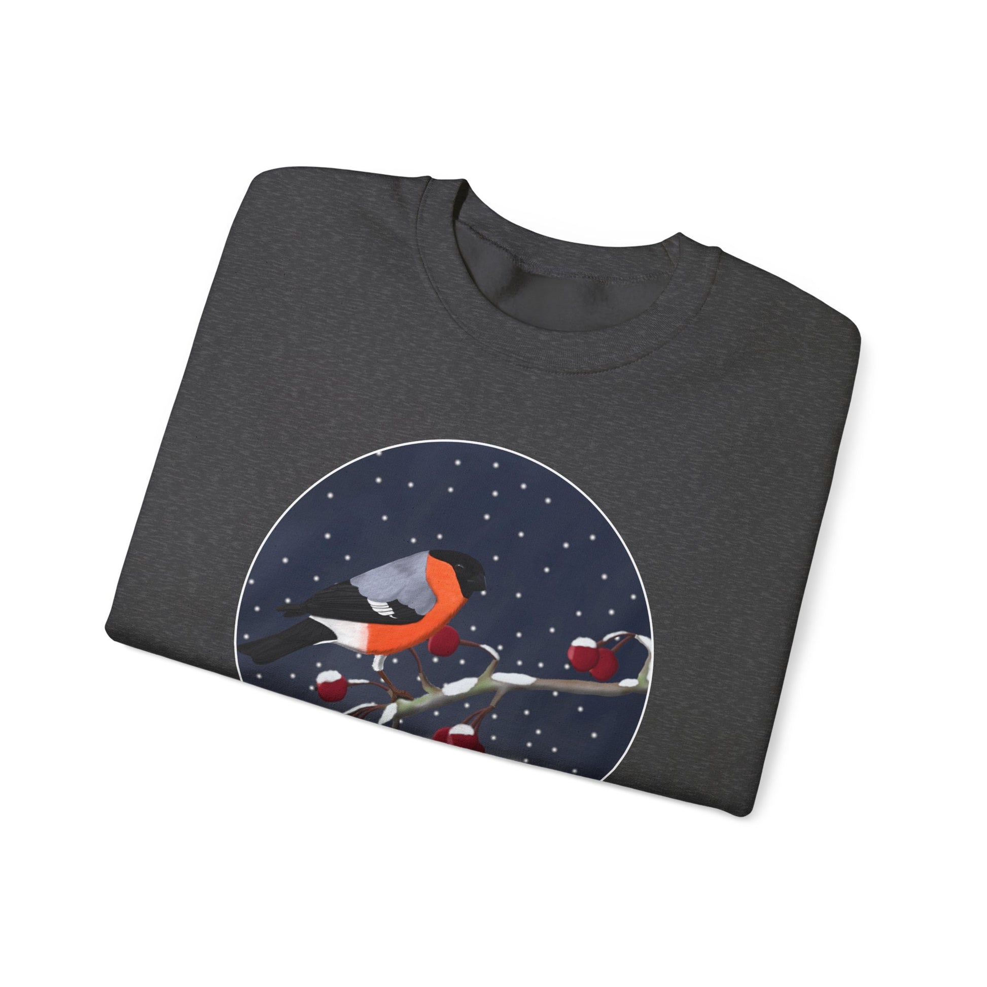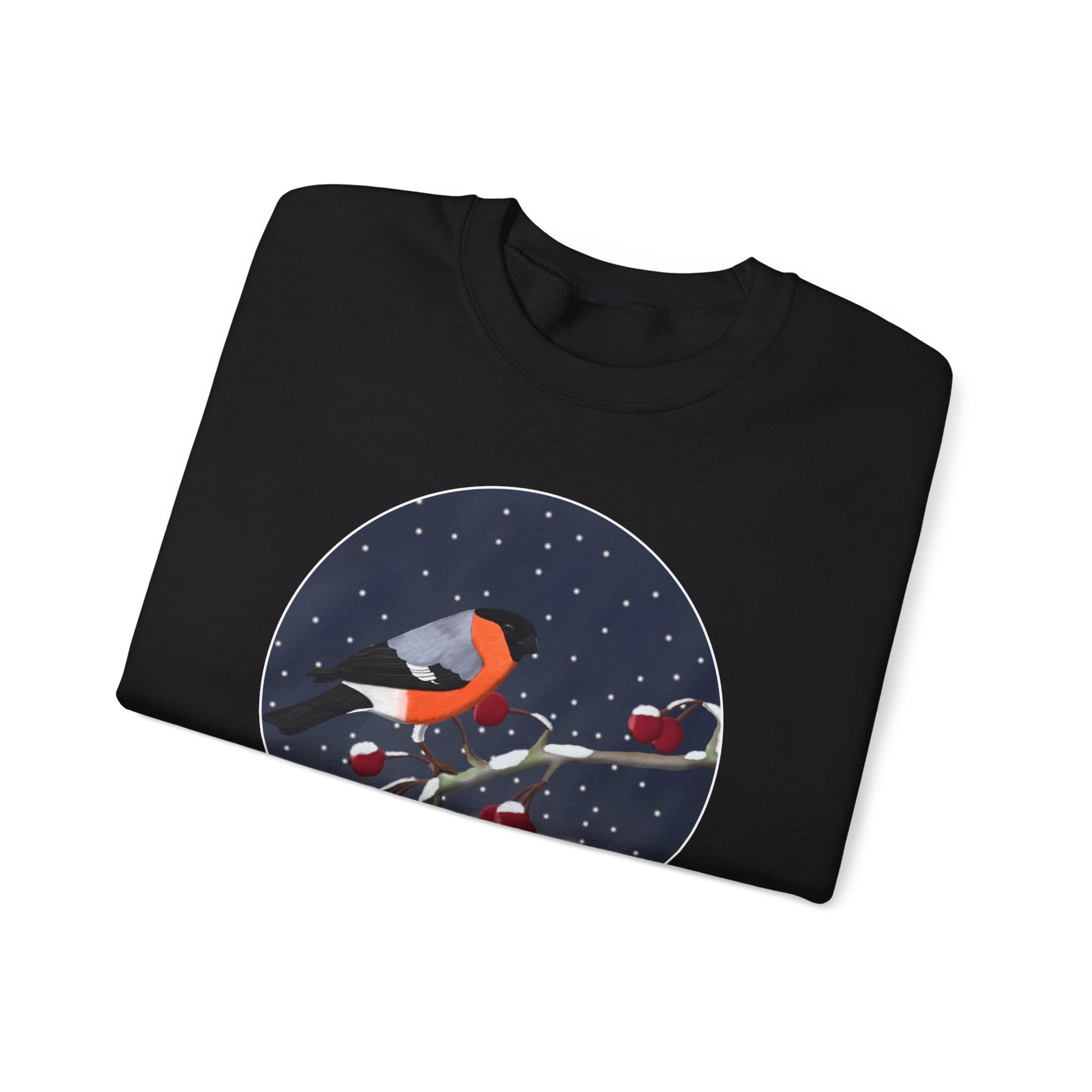 Bullfinch on a Winter Branch Birdwatcher Christmas Bird Sweatshirt