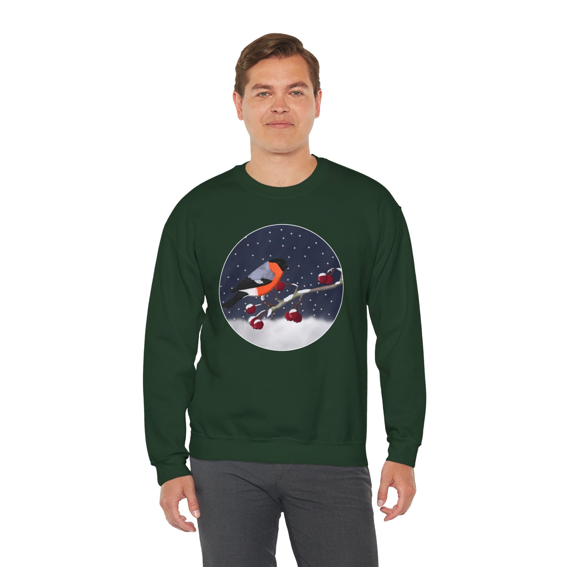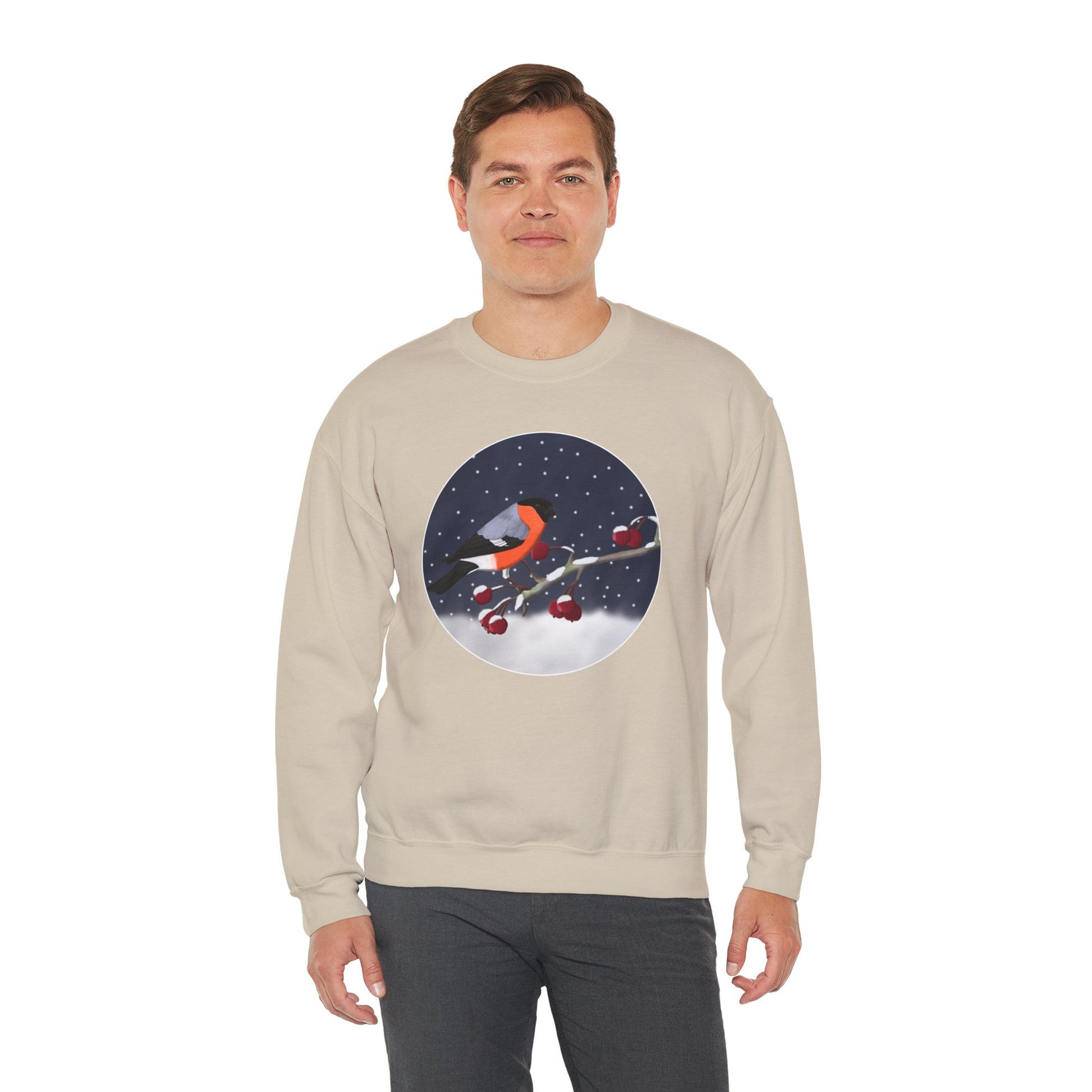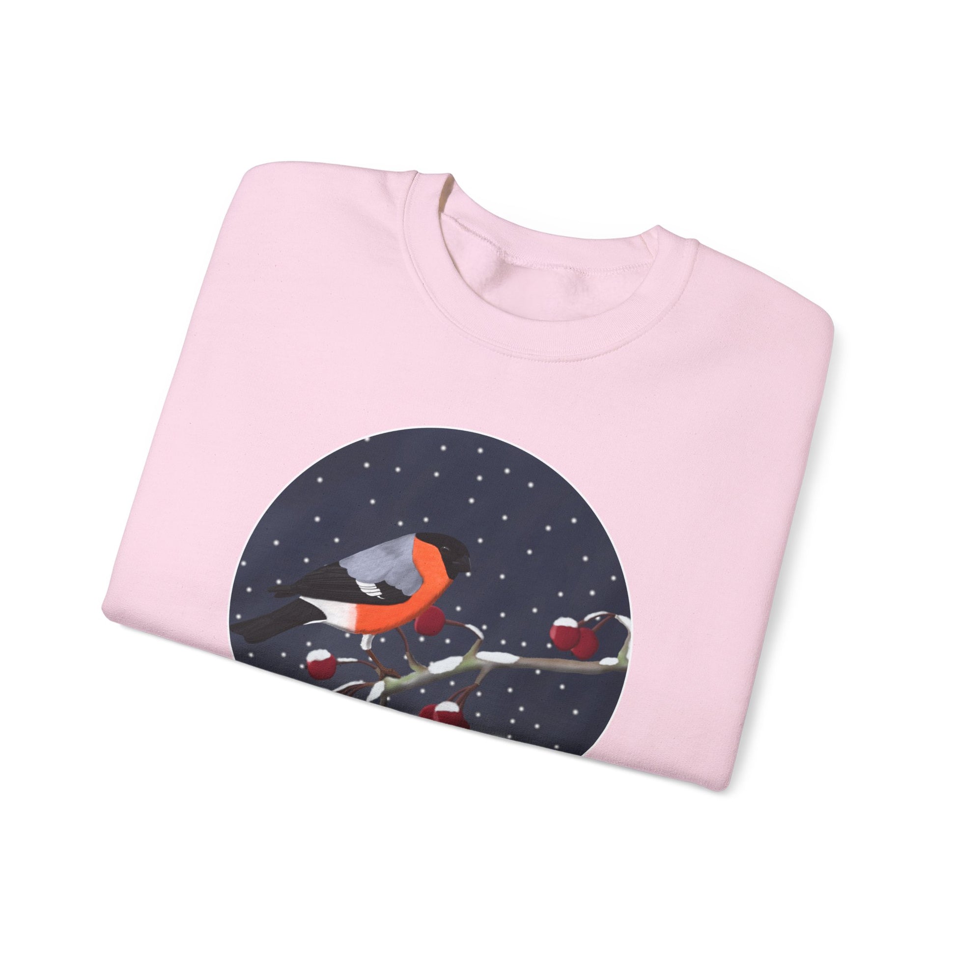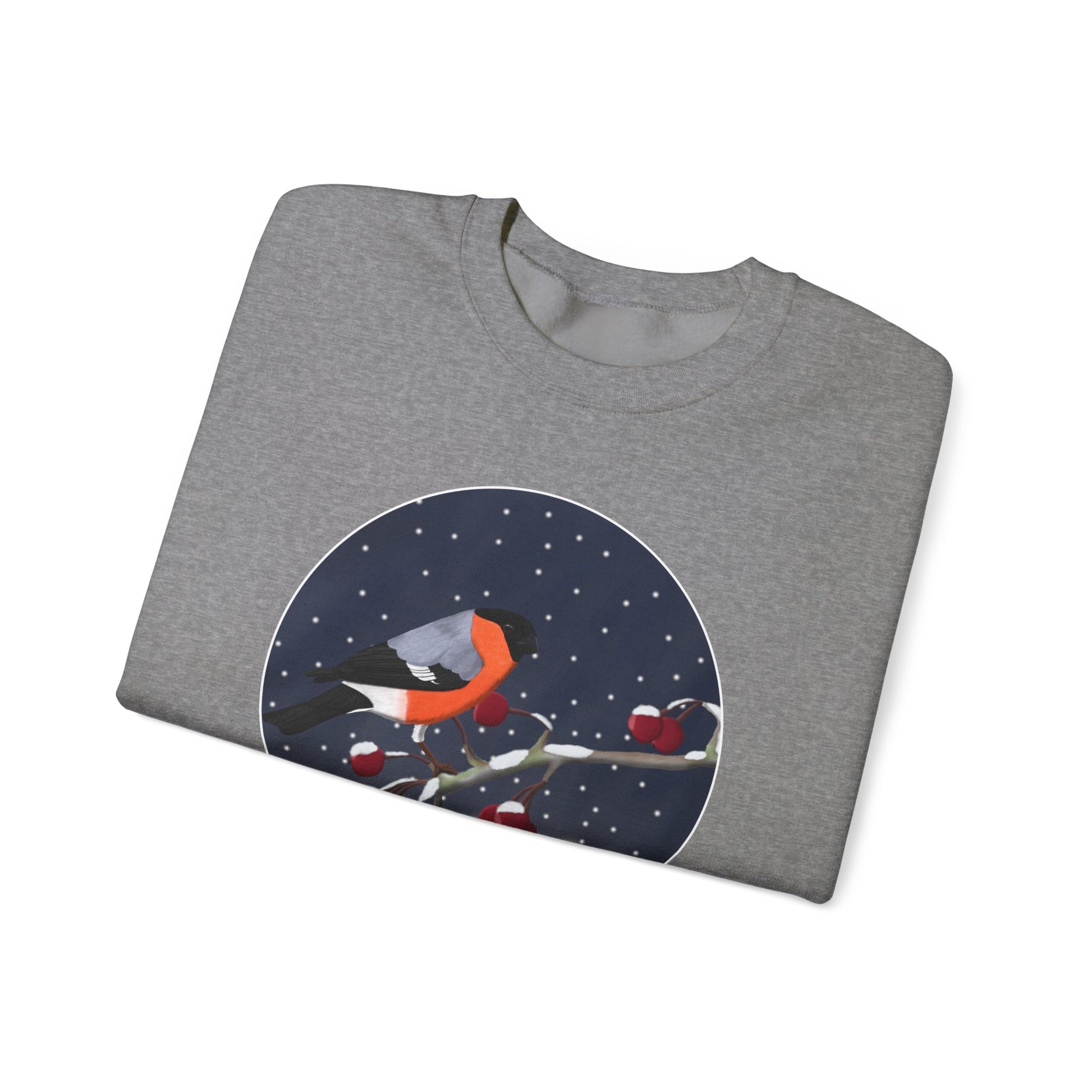 Bullfinch on a Winter Branch Birdwatcher Christmas Bird Sweatshirt