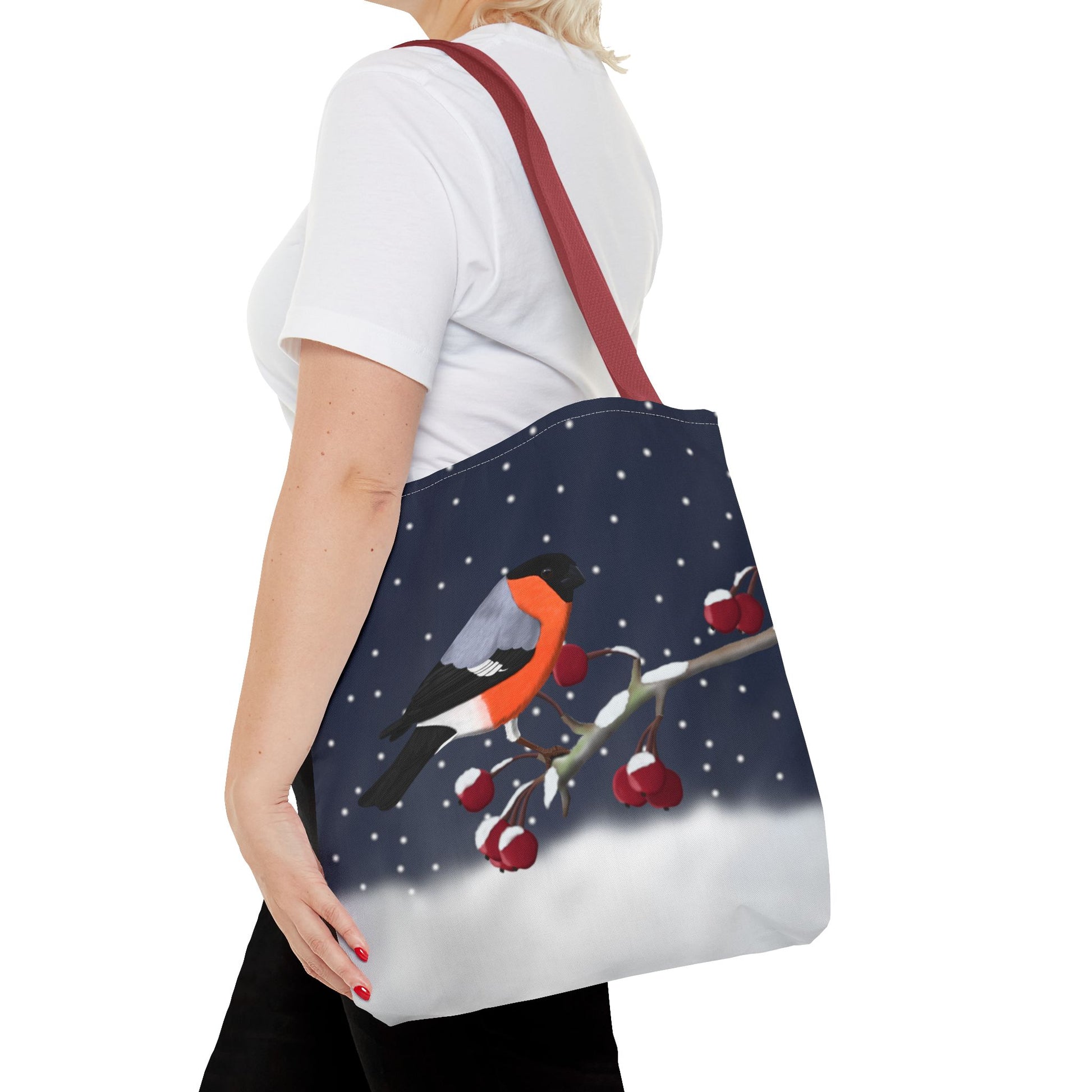 Experience the joy of birdwatching with our Bullfinch on a Winter Branch Christmas Bird Tote Bag! Measuring 16"x16", this stylish bag features a vibrant Christmas design and is perfect for carrying all your birdwatching essentials. Whether you're a seasoned birder or just starting out, this bag is a must-have for all bird enthusiasts.