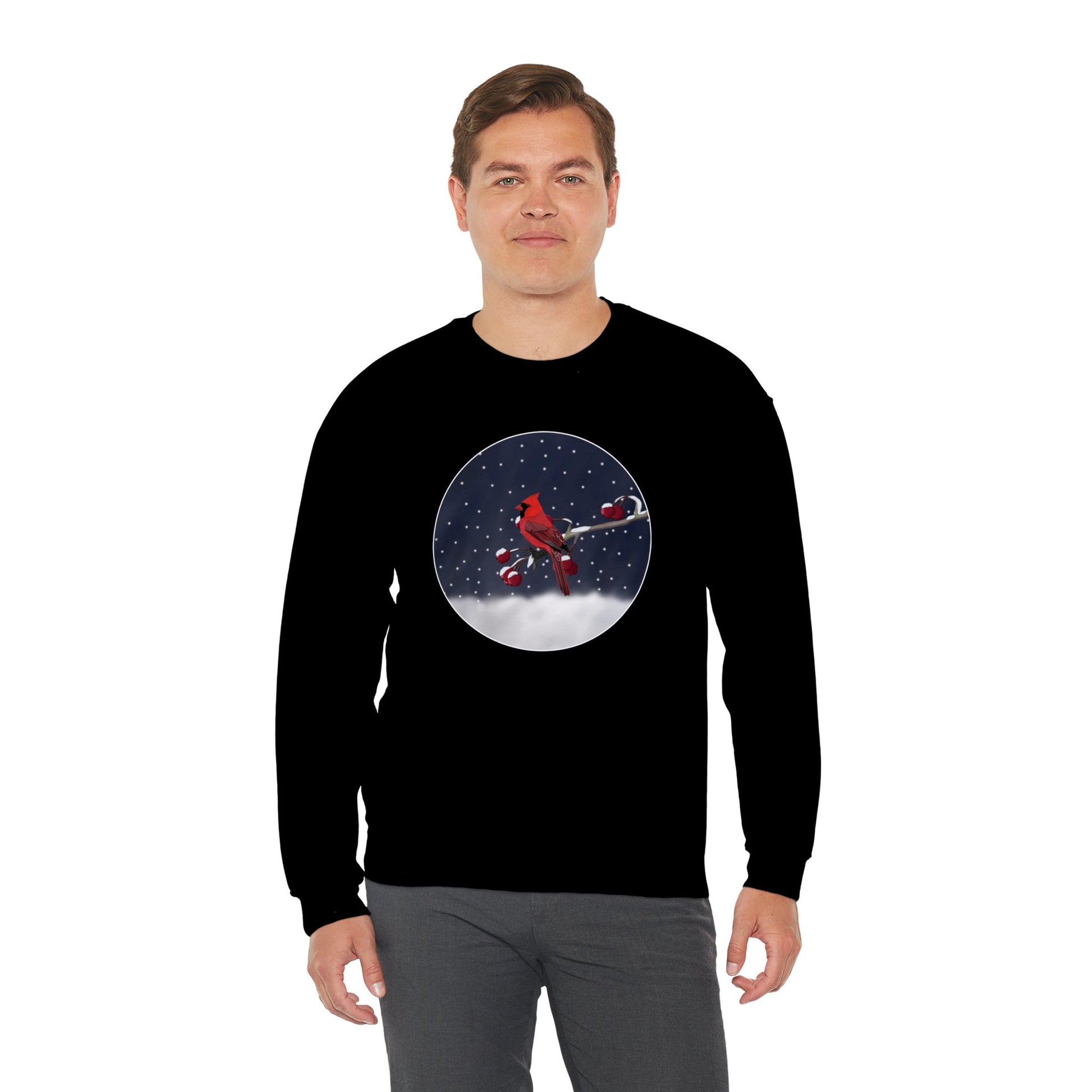 Cardinal on a Winter Branch Christmas Bird Sweatshirt