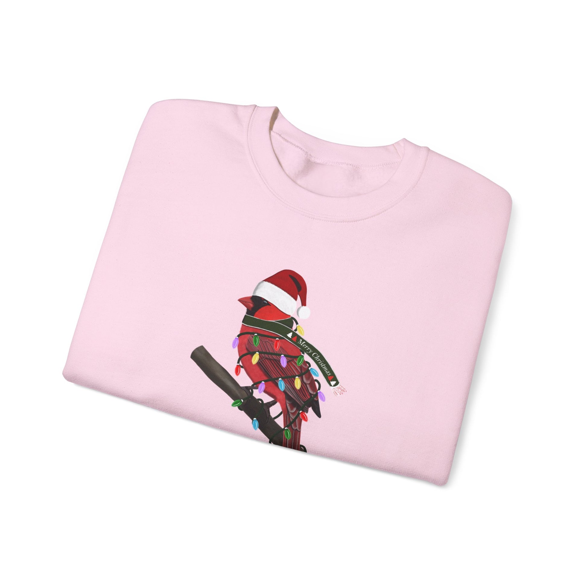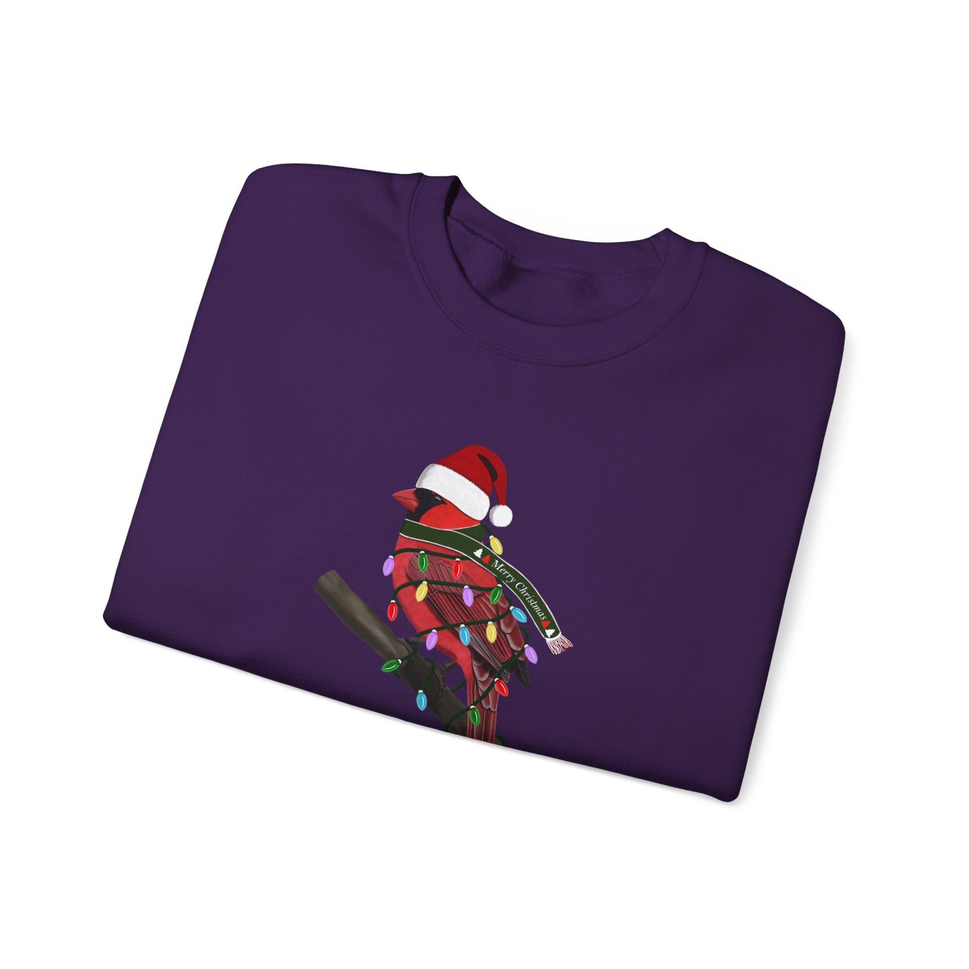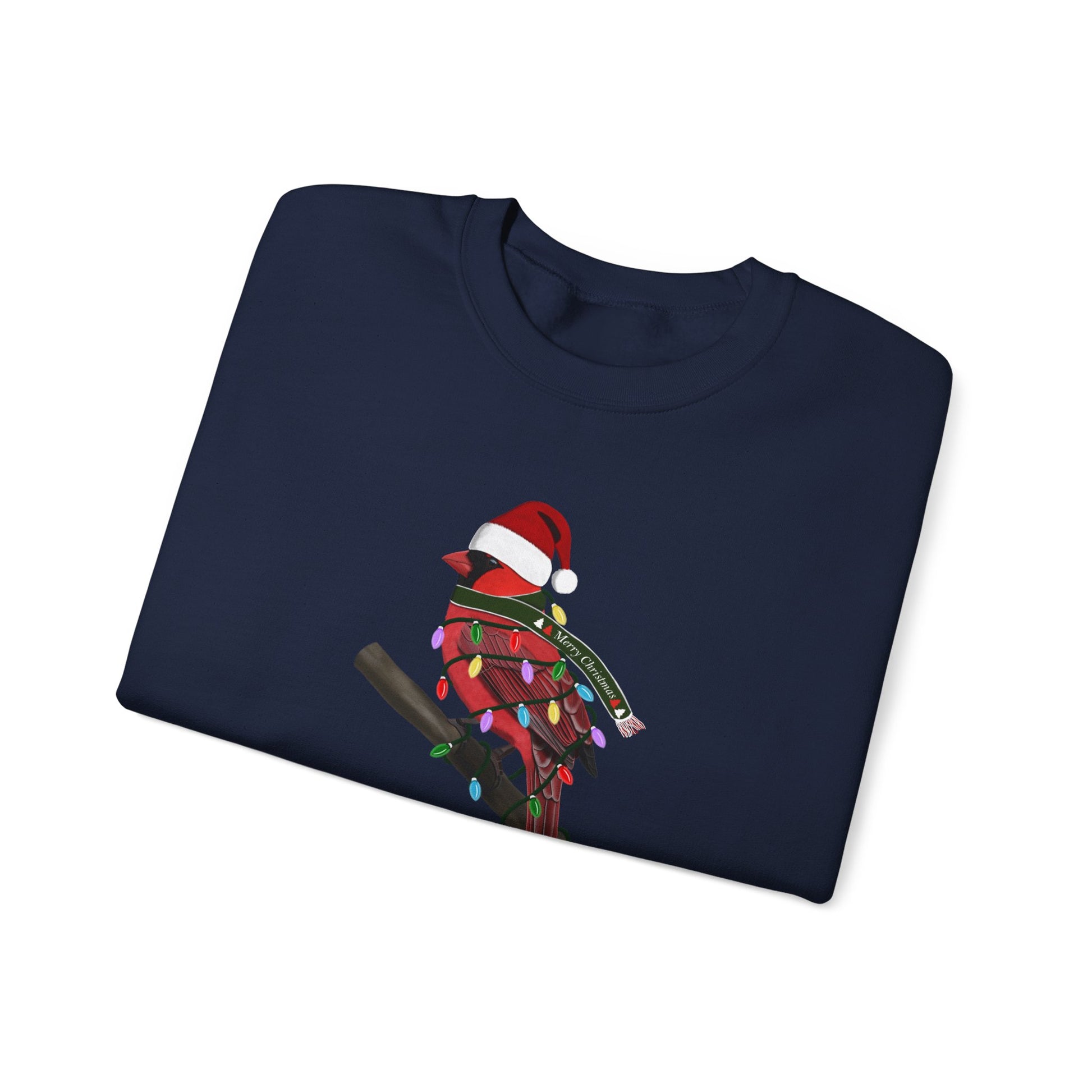Cardinal with Fairy Lights as Santa Happy Holidays Birdwatcher Christmas Bird Sweatshirt