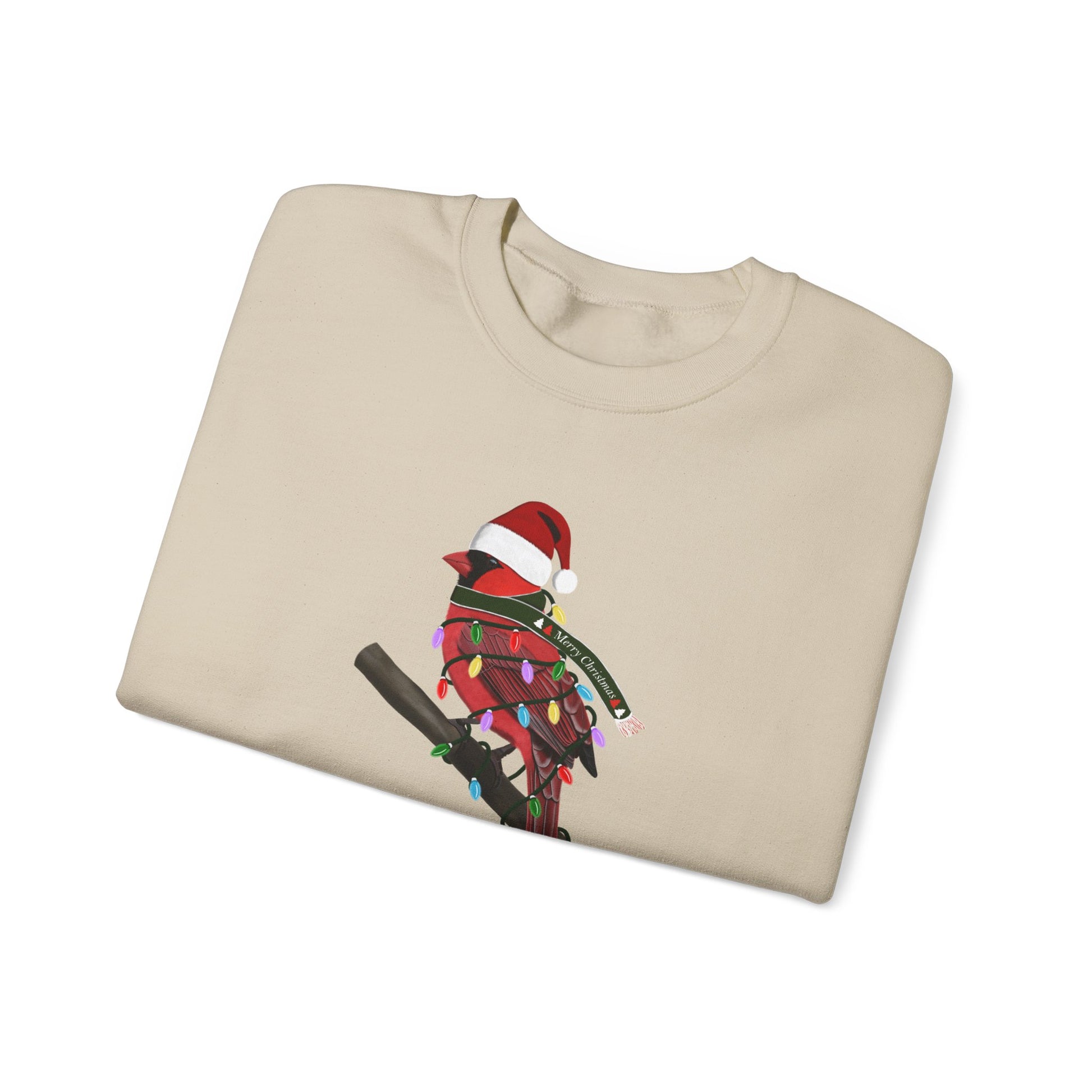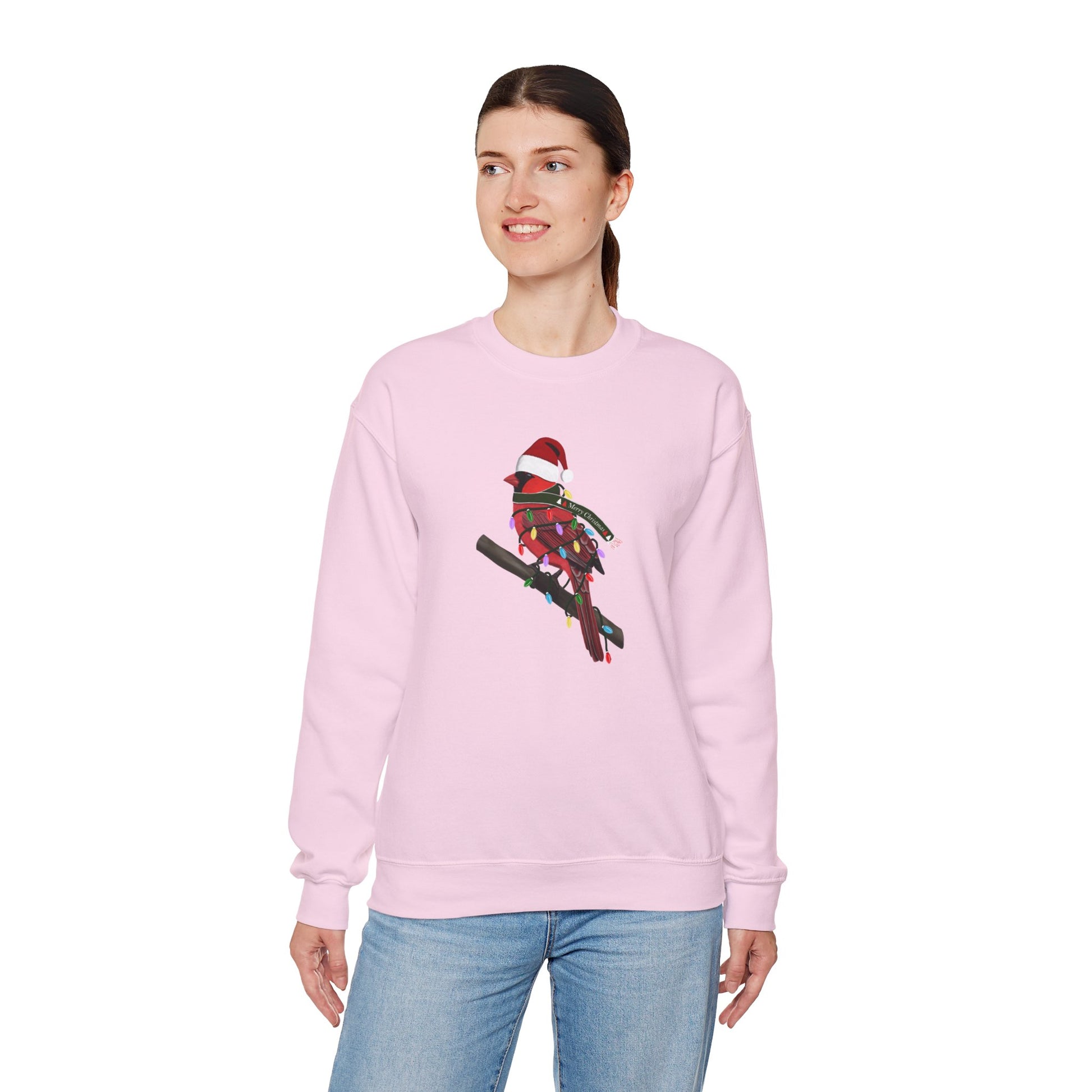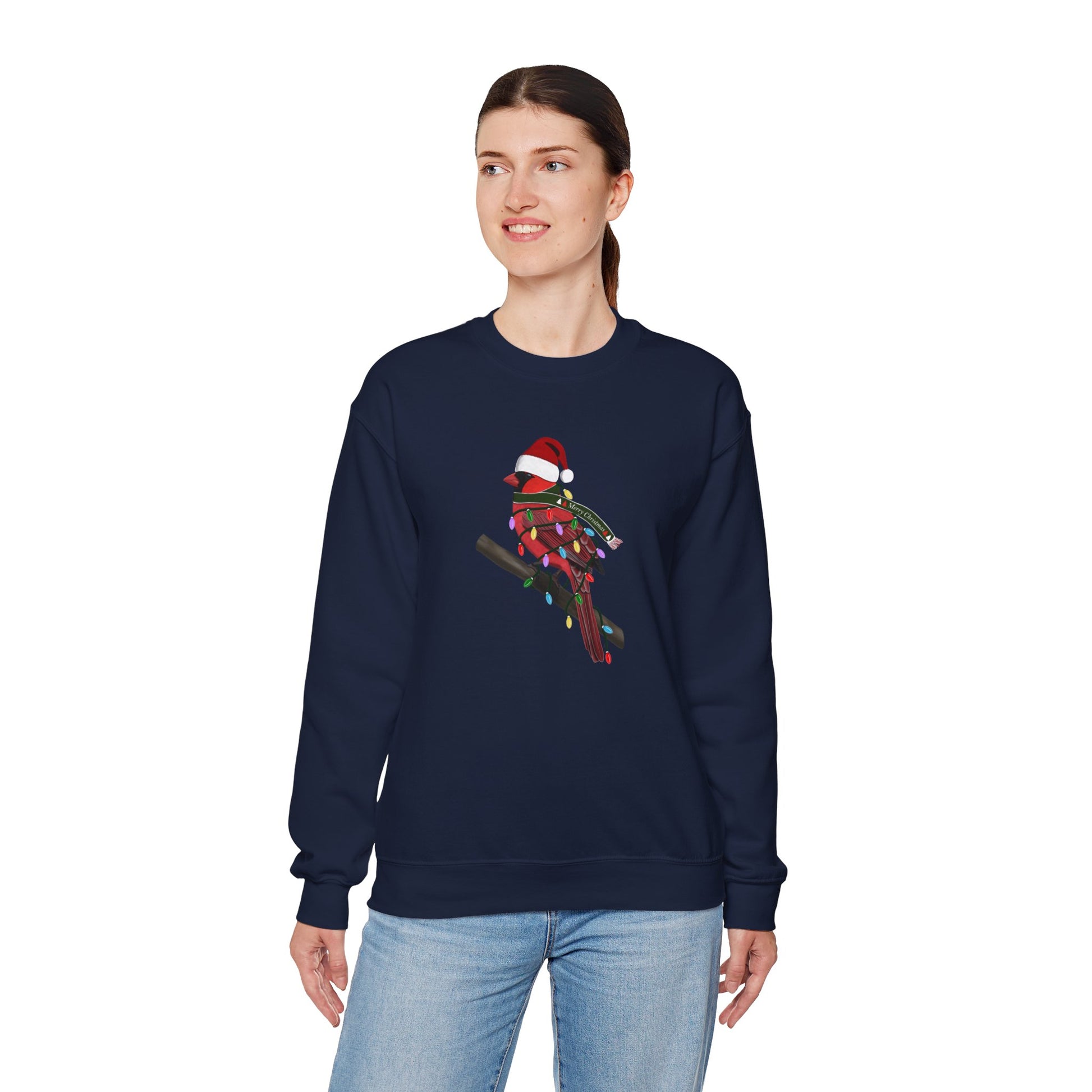 Cardinal with Fairy Lights Santa Claus Christmas Bird Sweatshirt