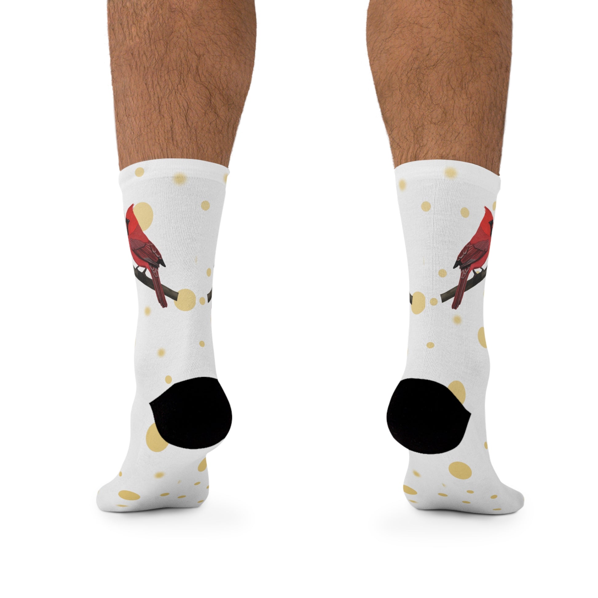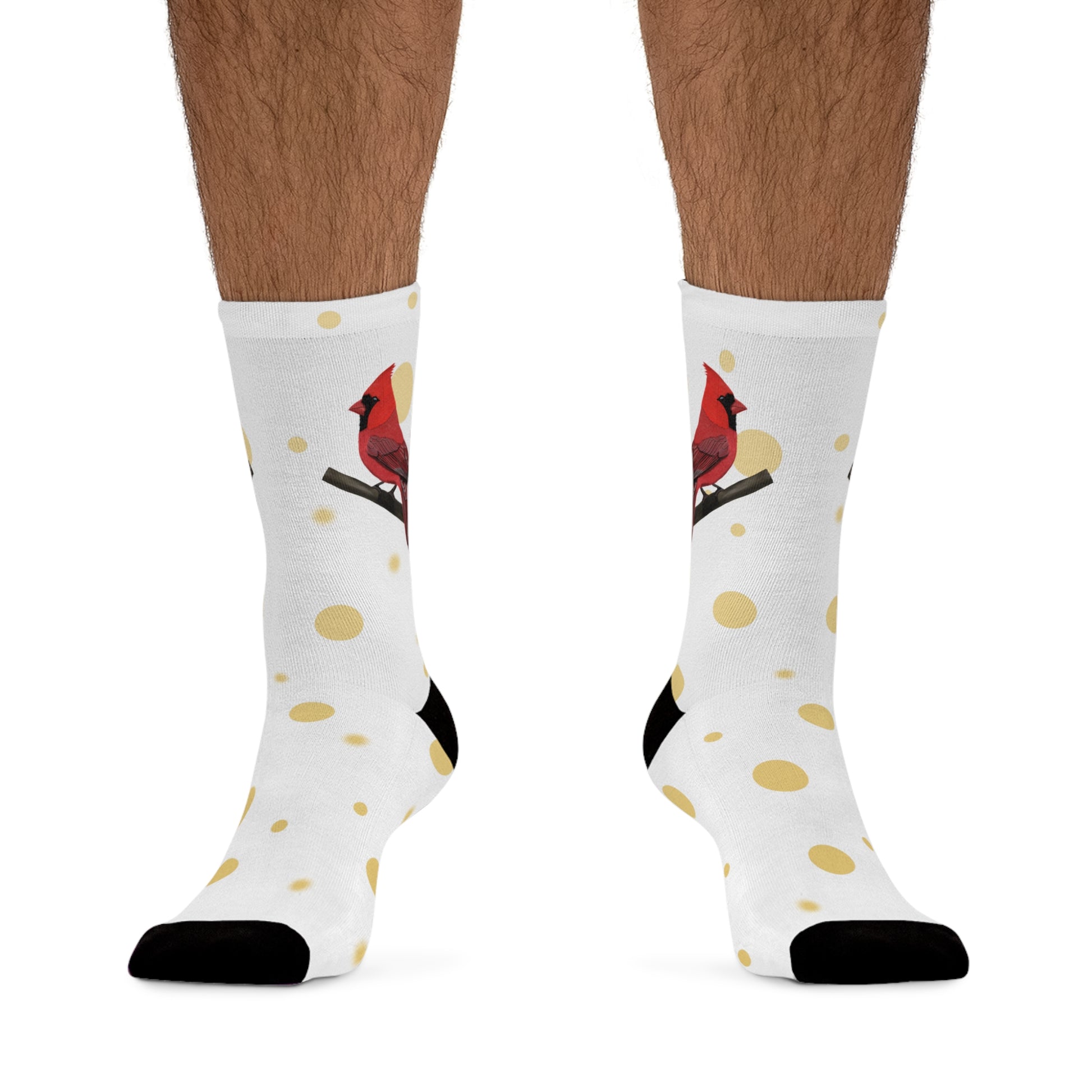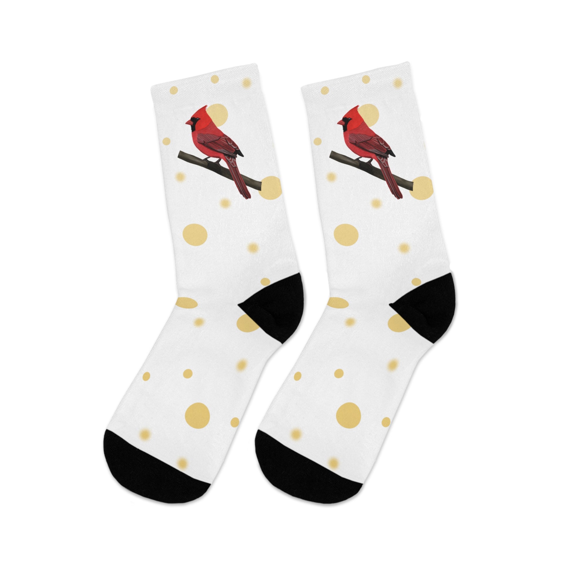 Cardinal with Golden Dots Birding & Birdwatching Bird Socks White